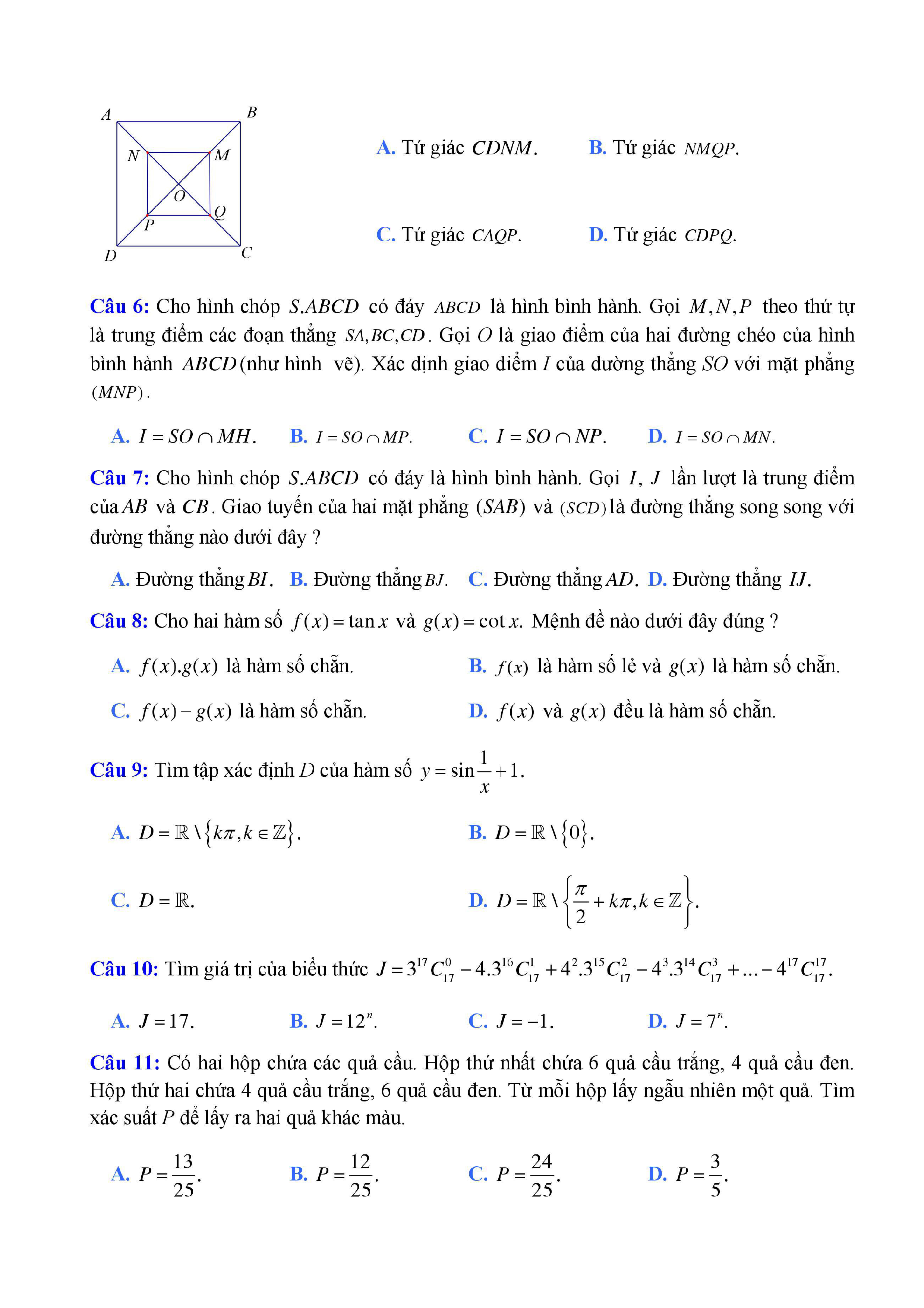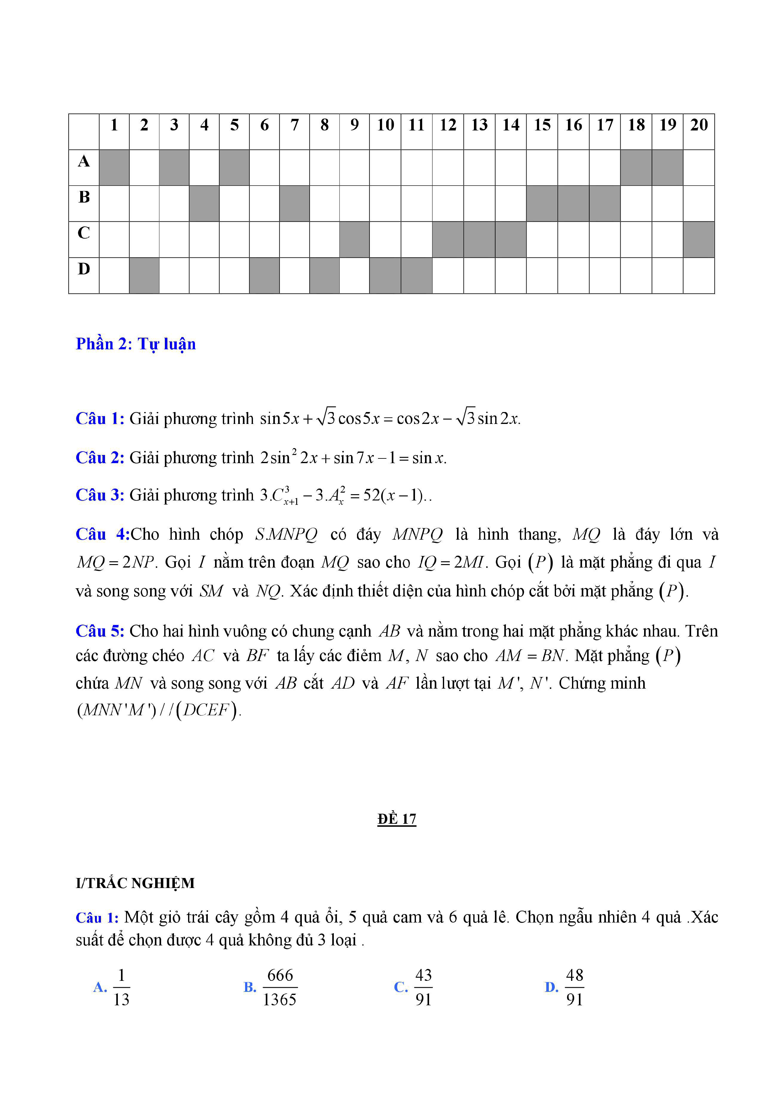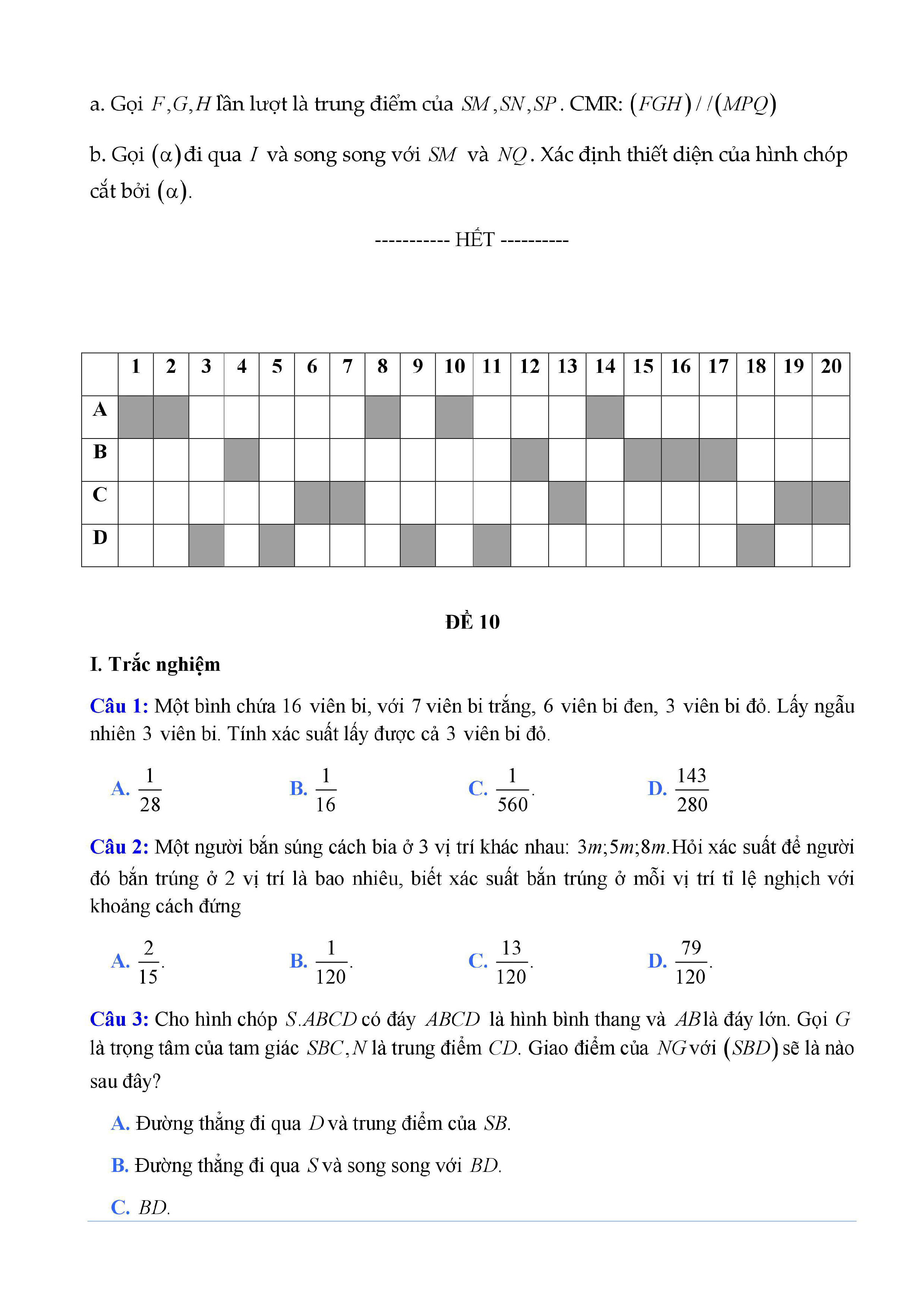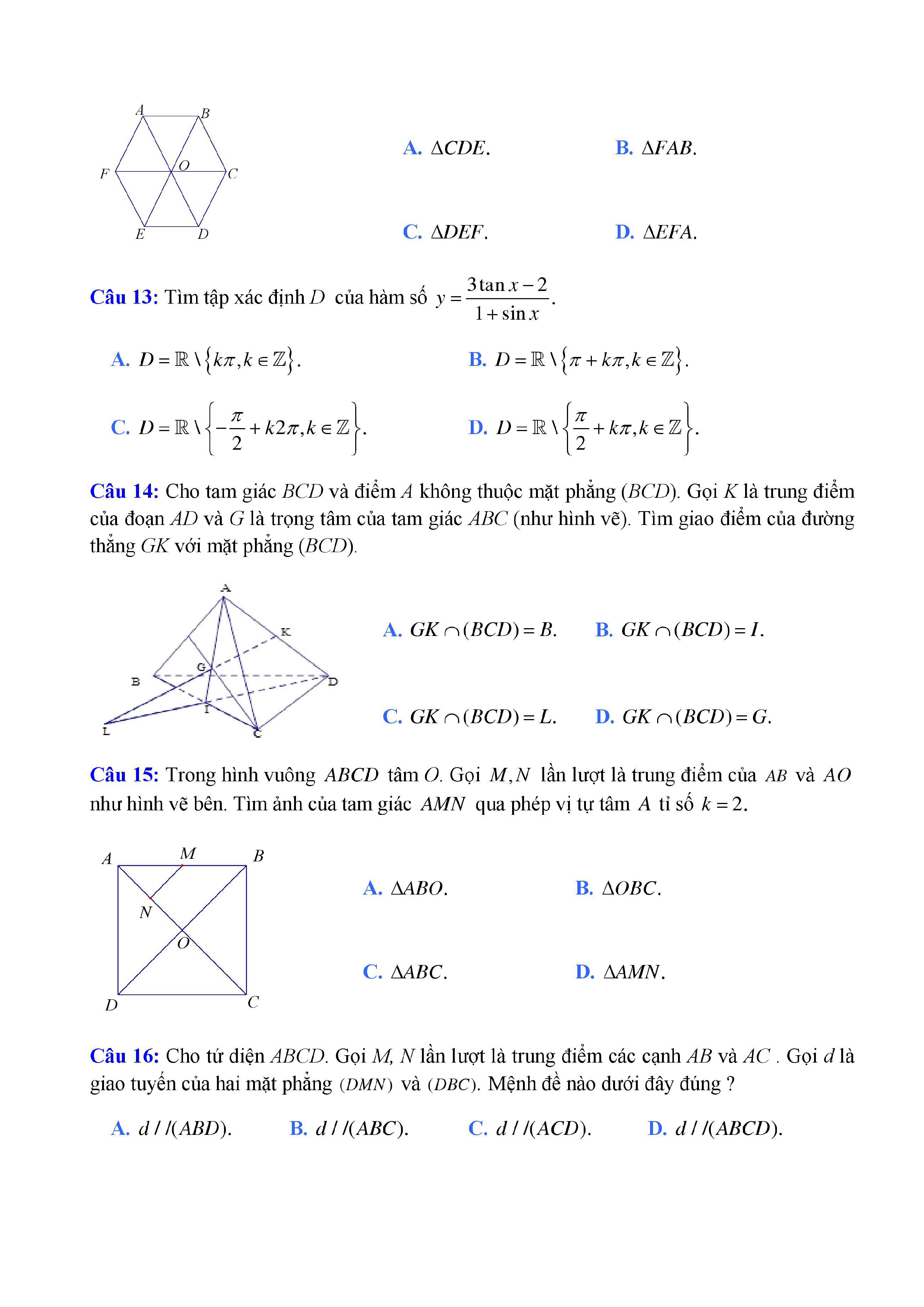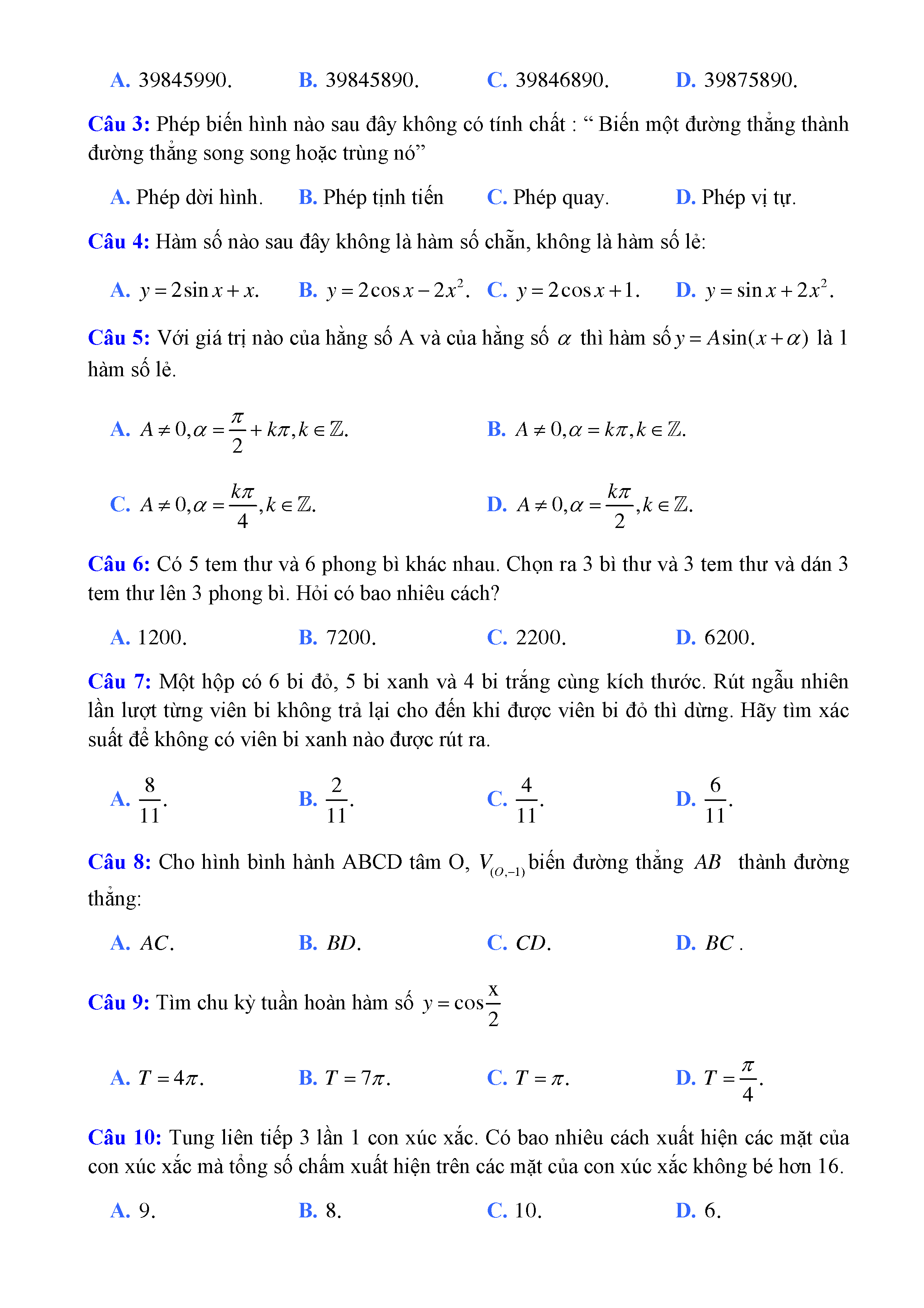 20 đề Toán ôn thi học kì 1 lớp 11