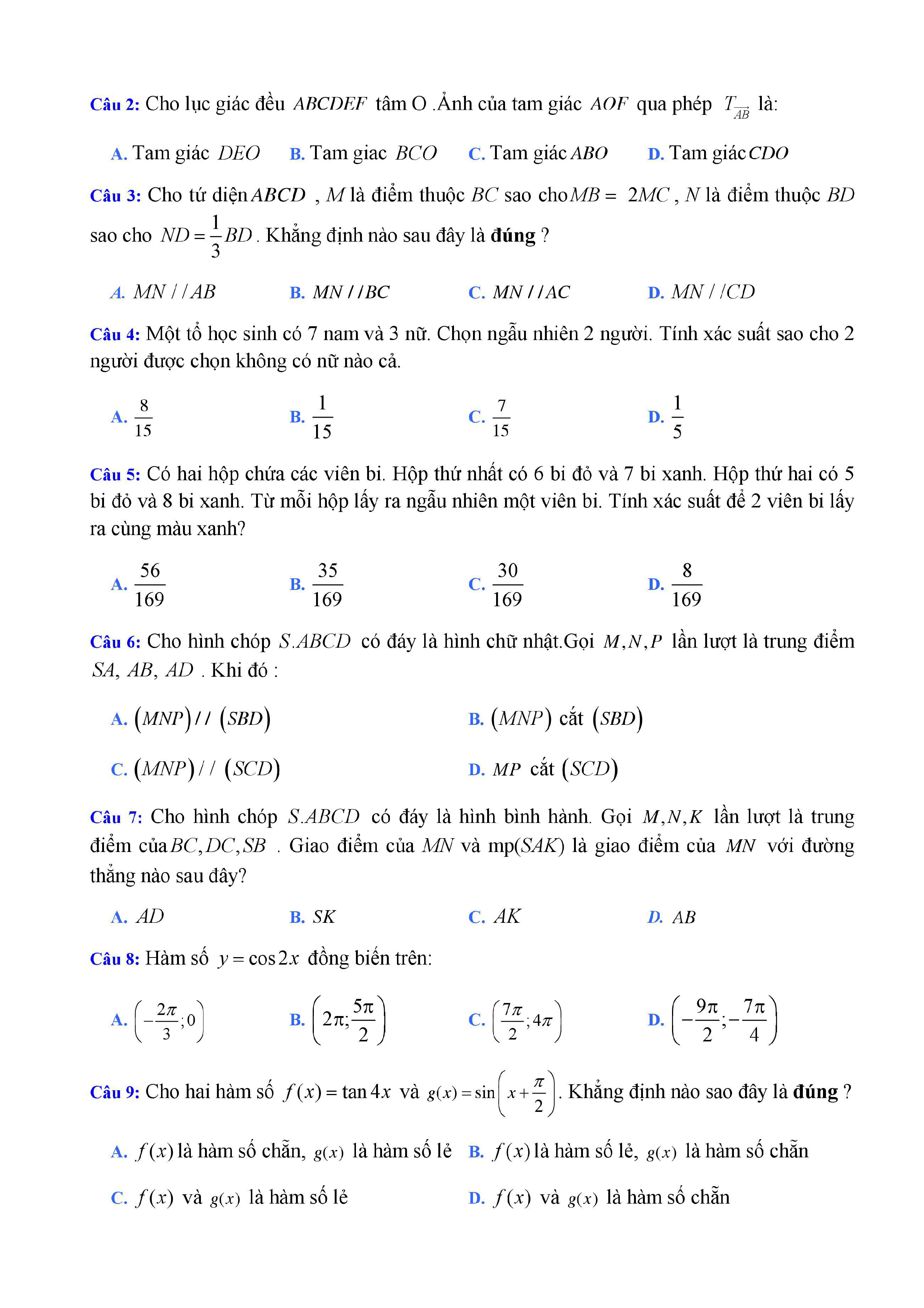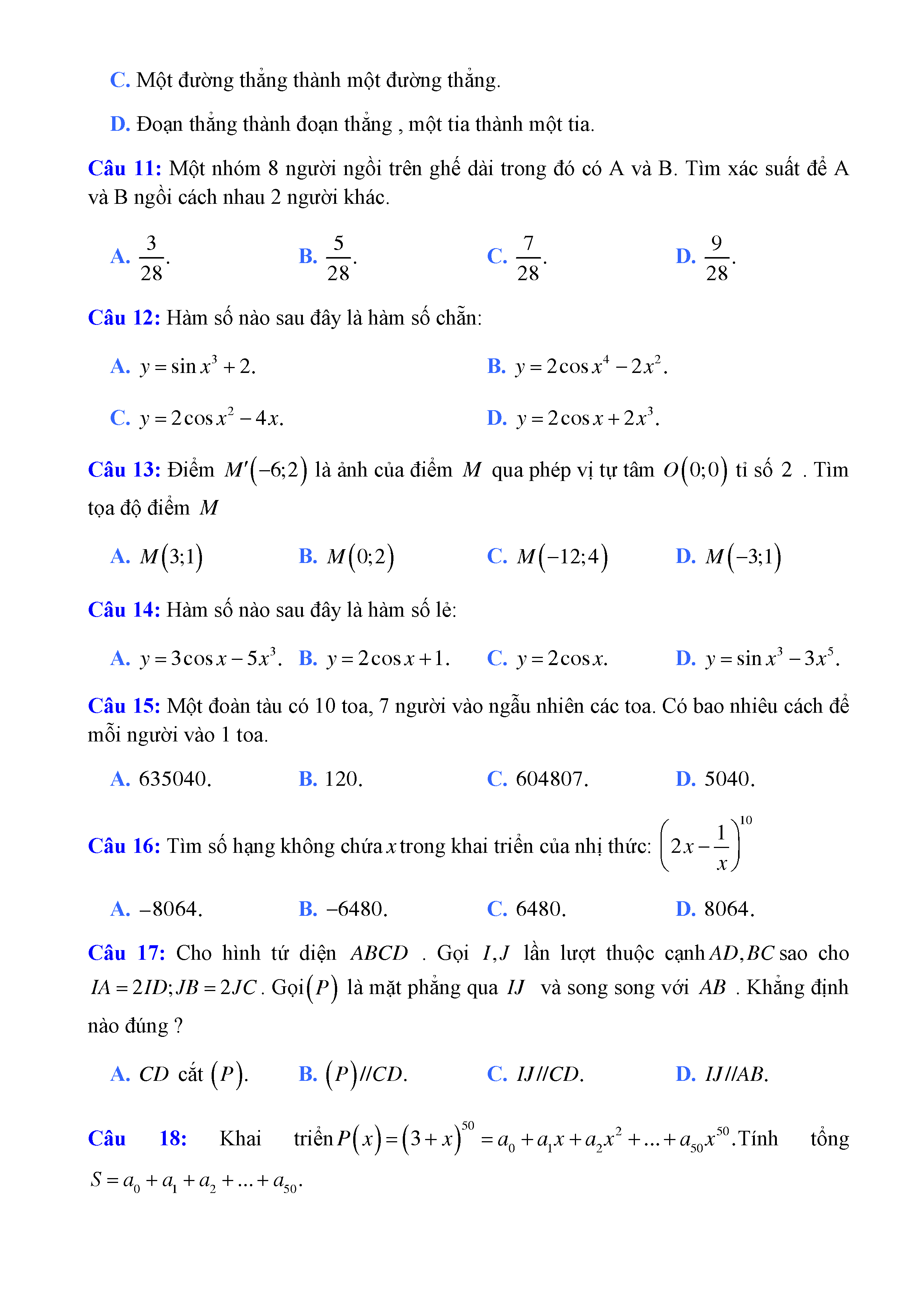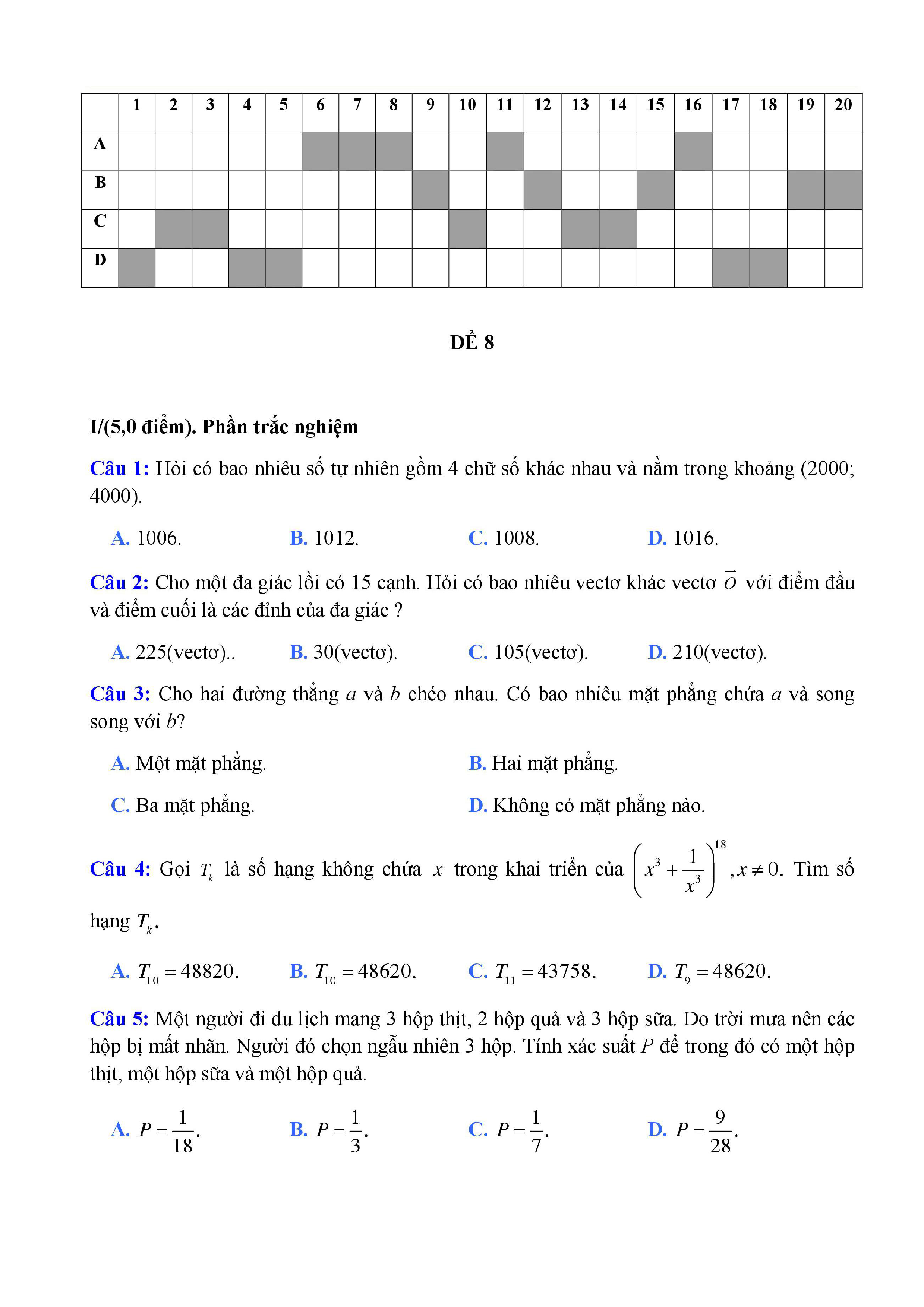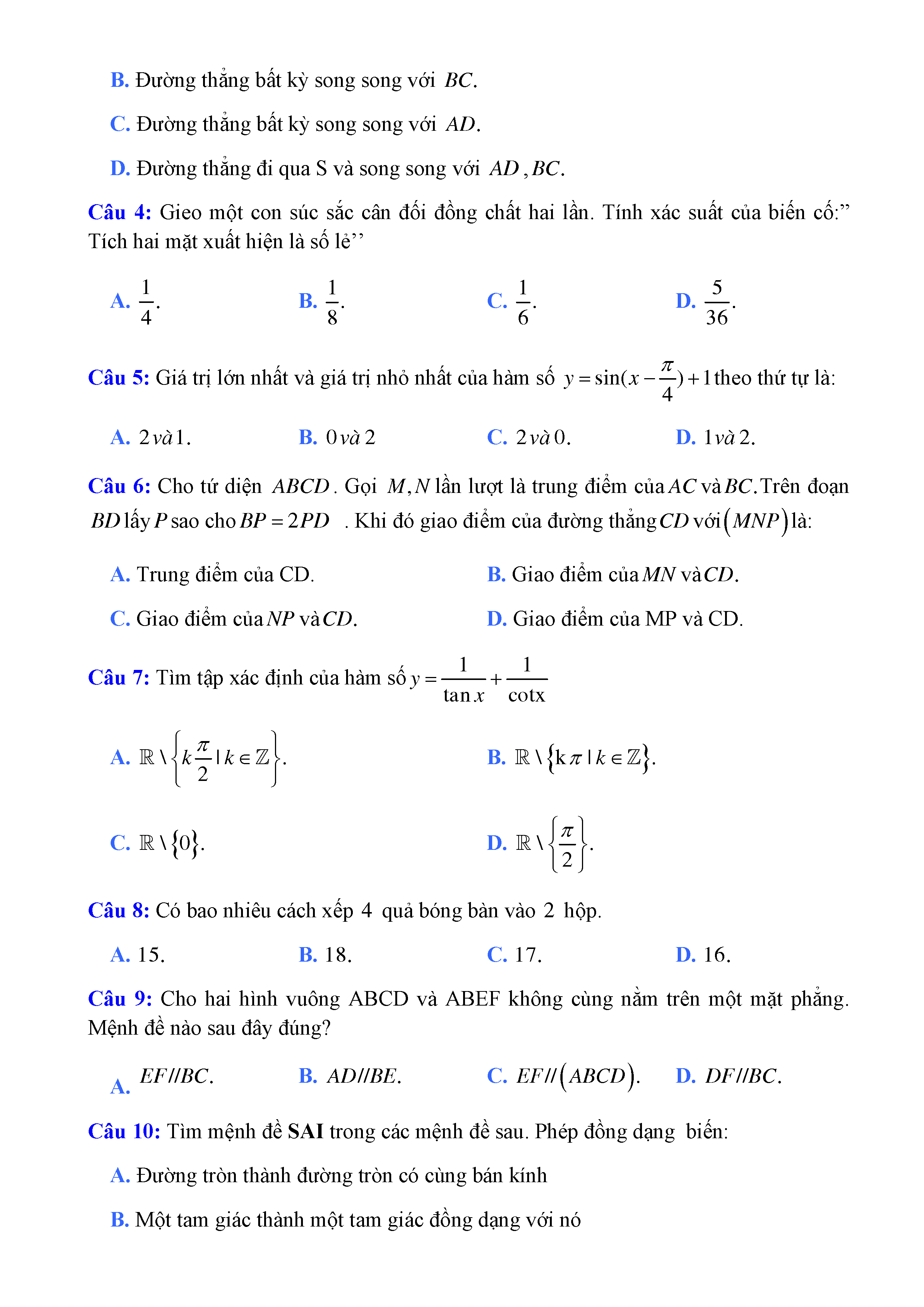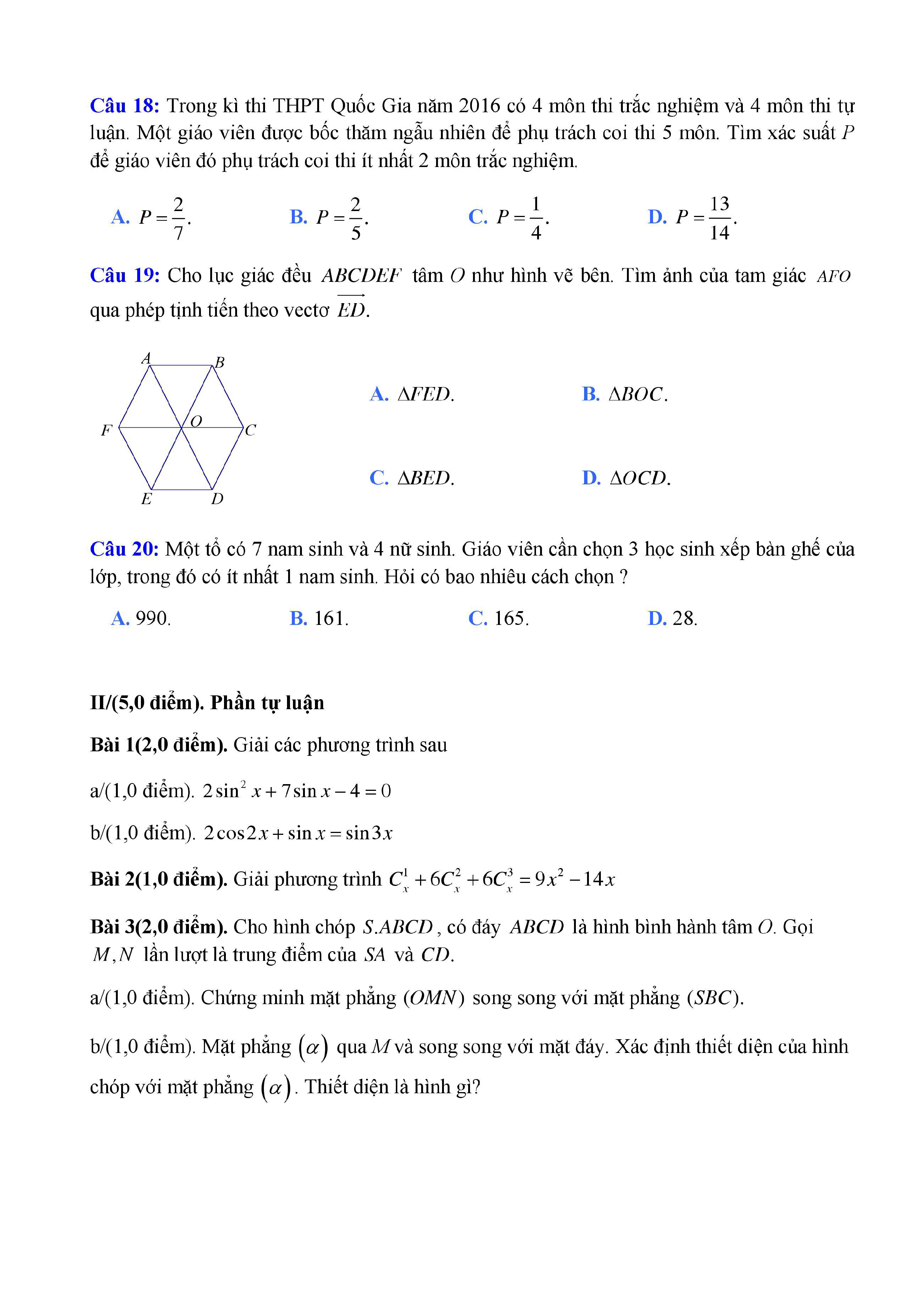 20 đề Toán ôn thi học kì 1 lớp 11