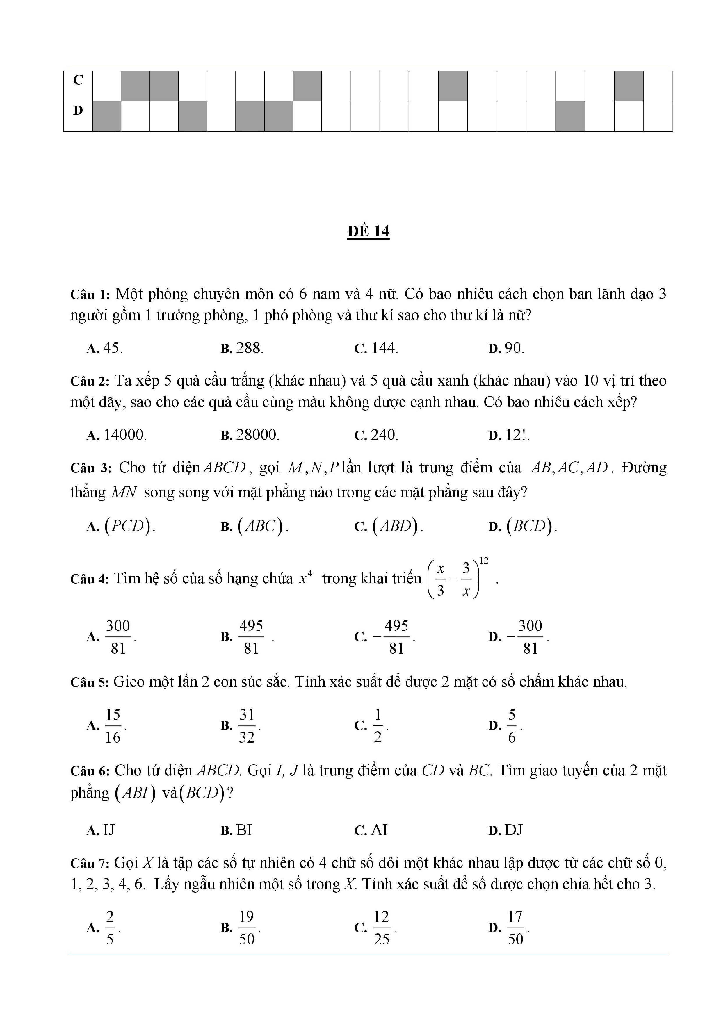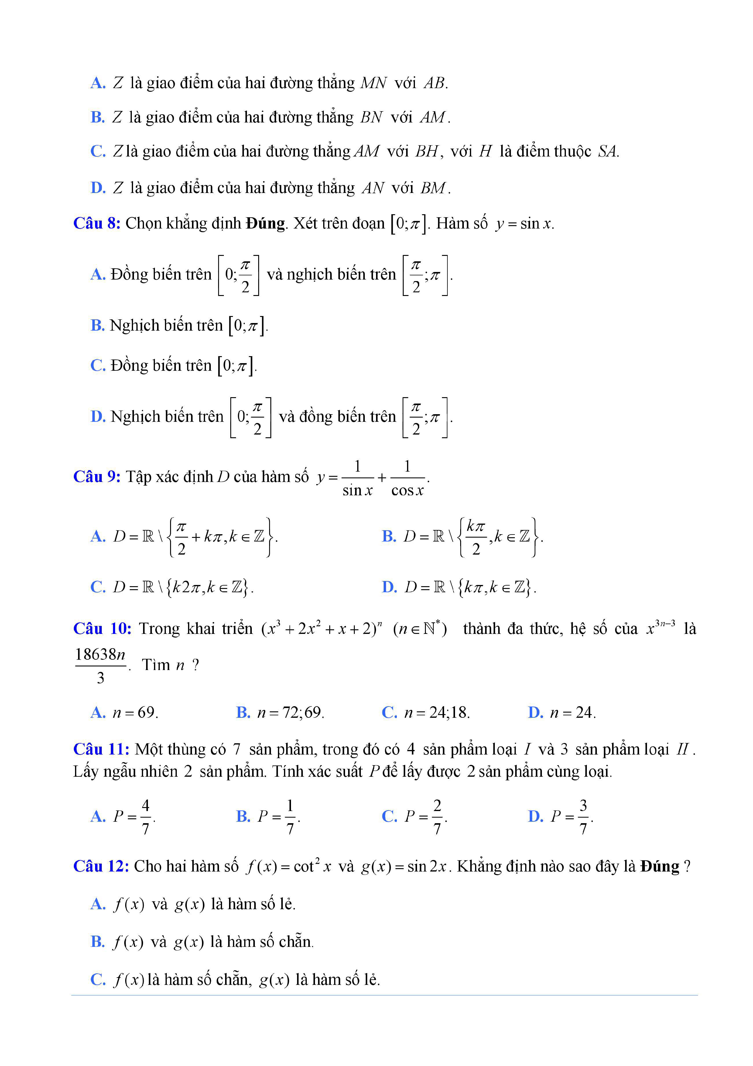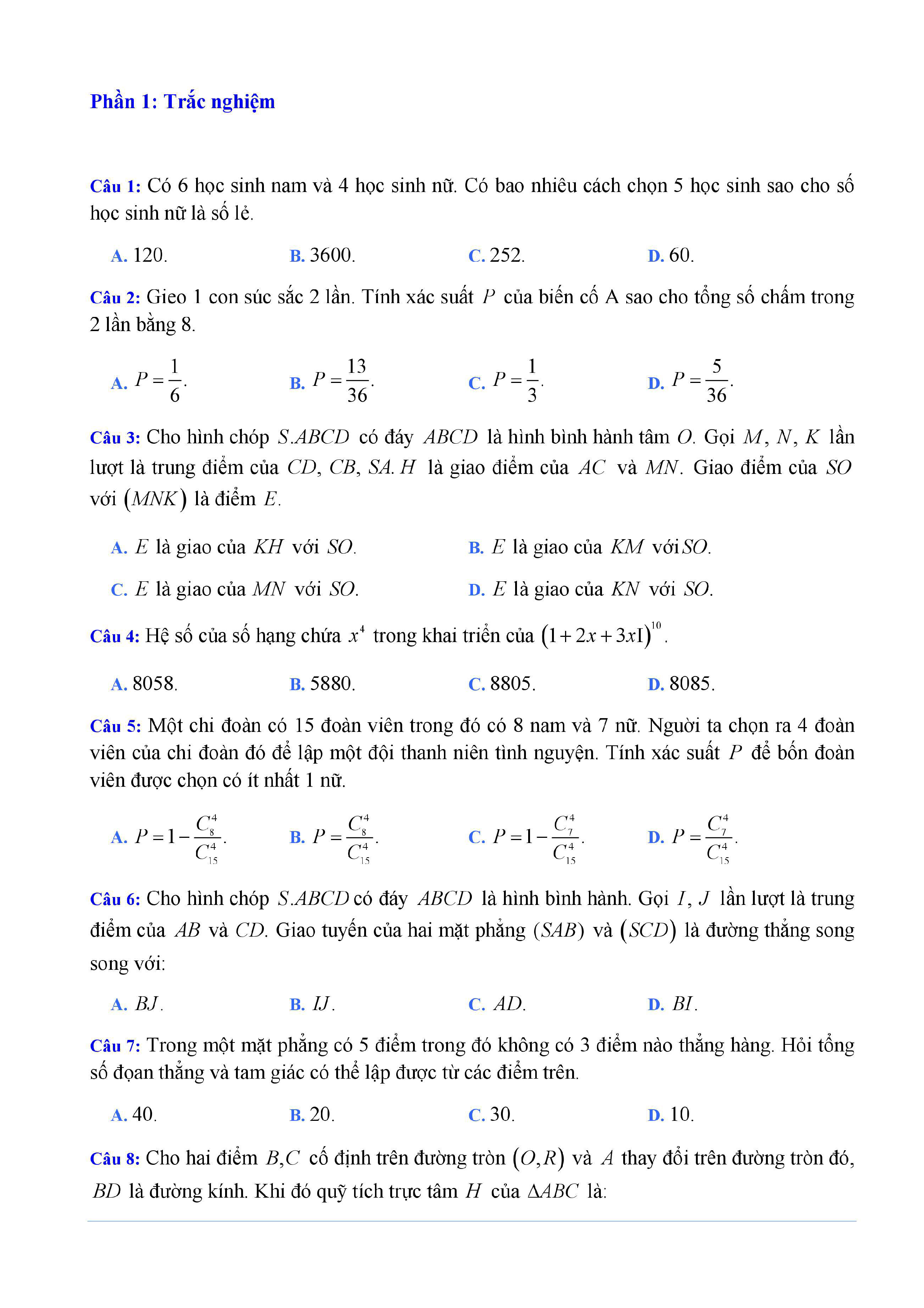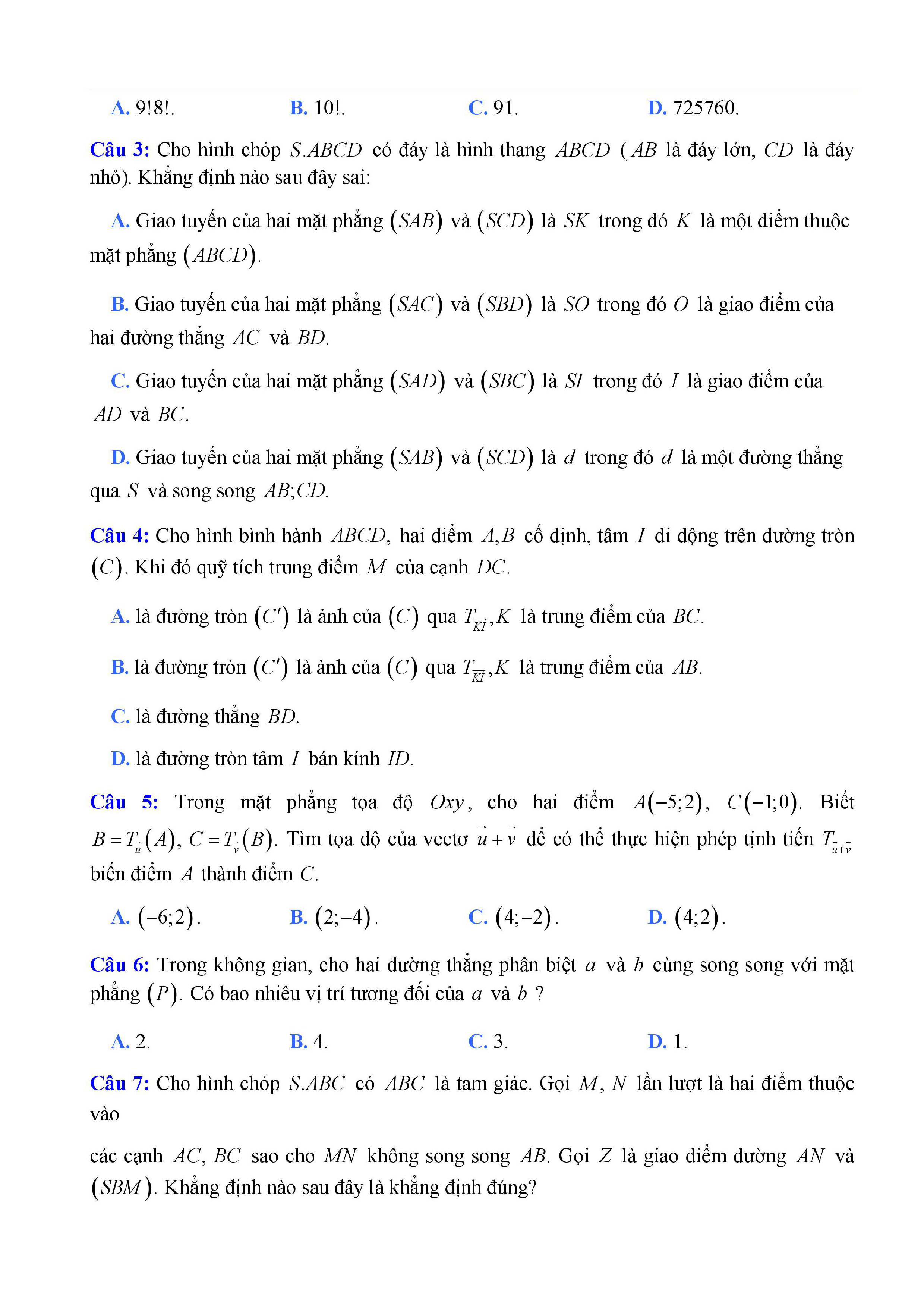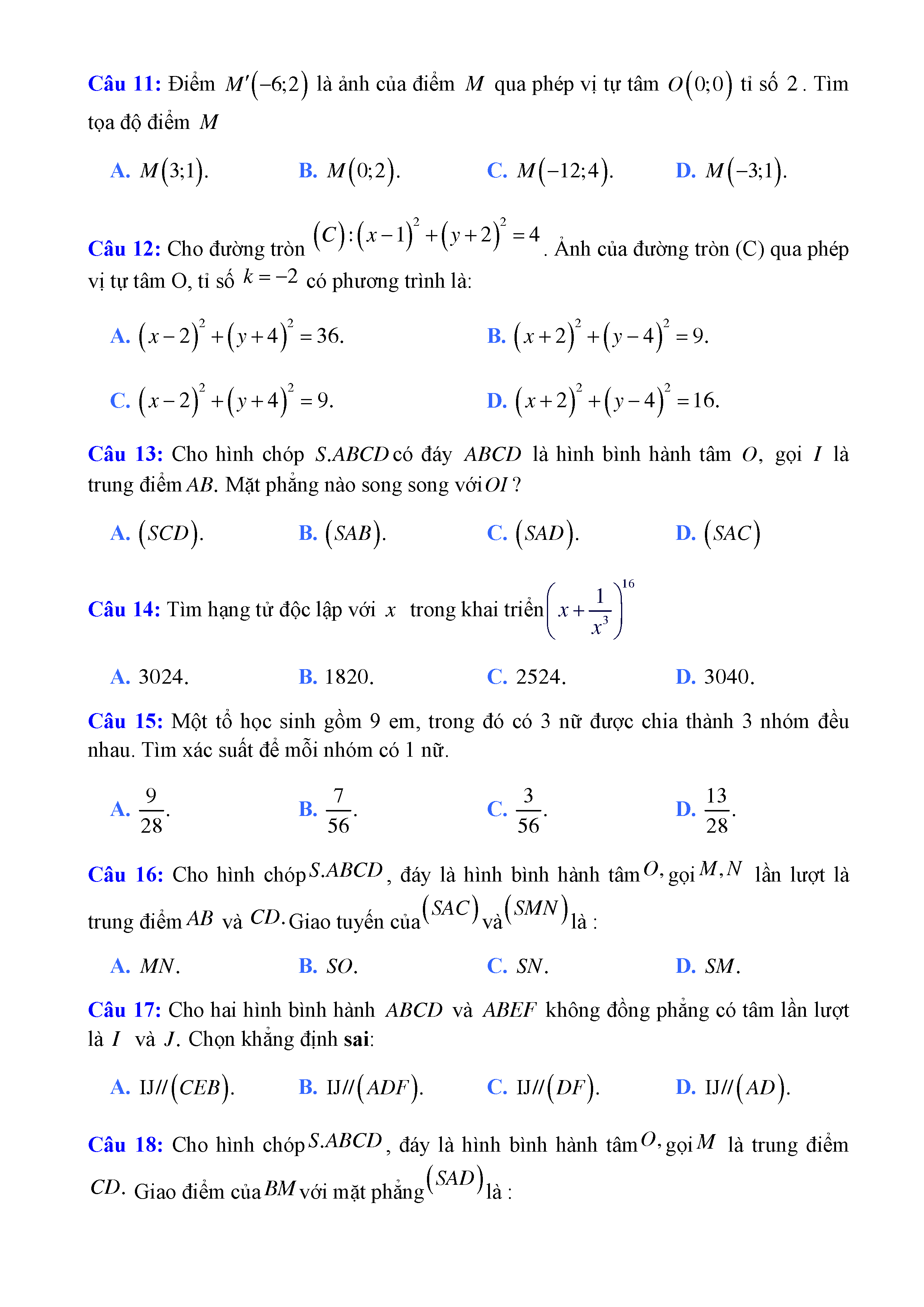 20 đề Toán ôn thi học kì 1 lớp 11