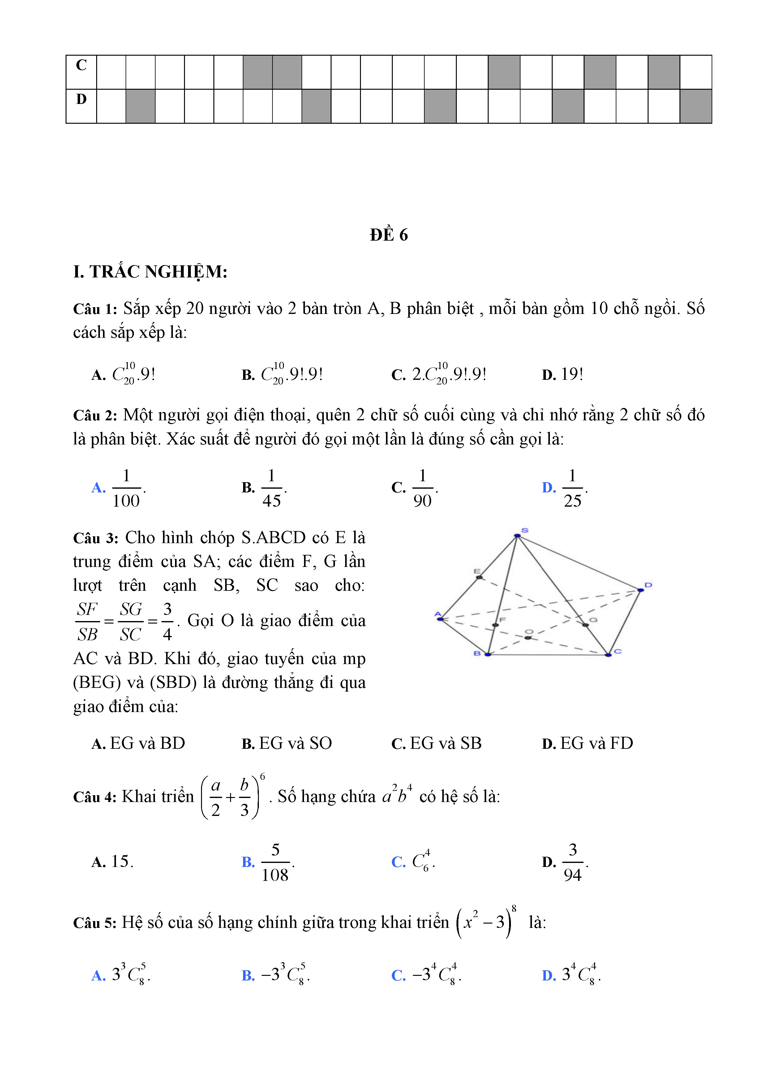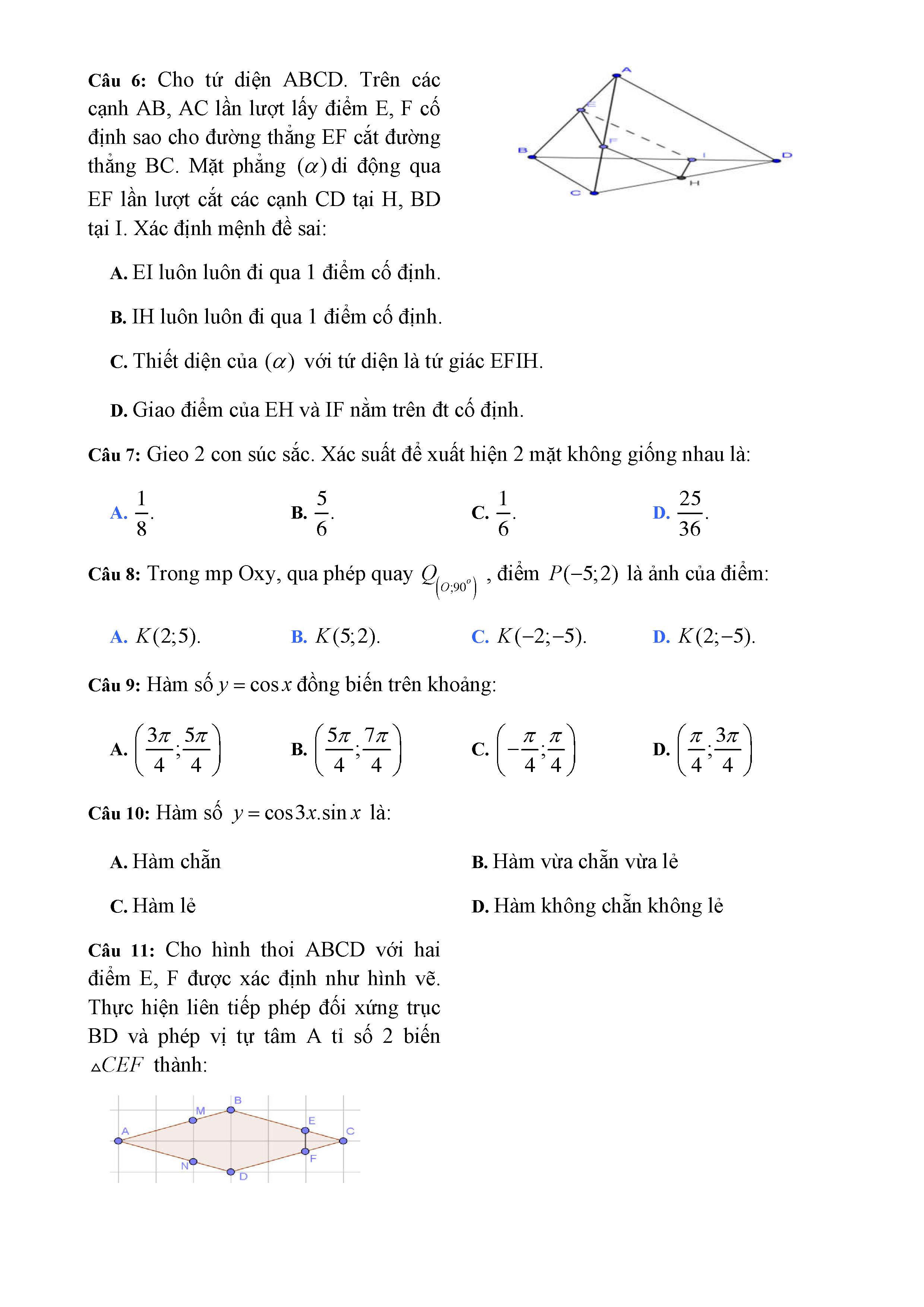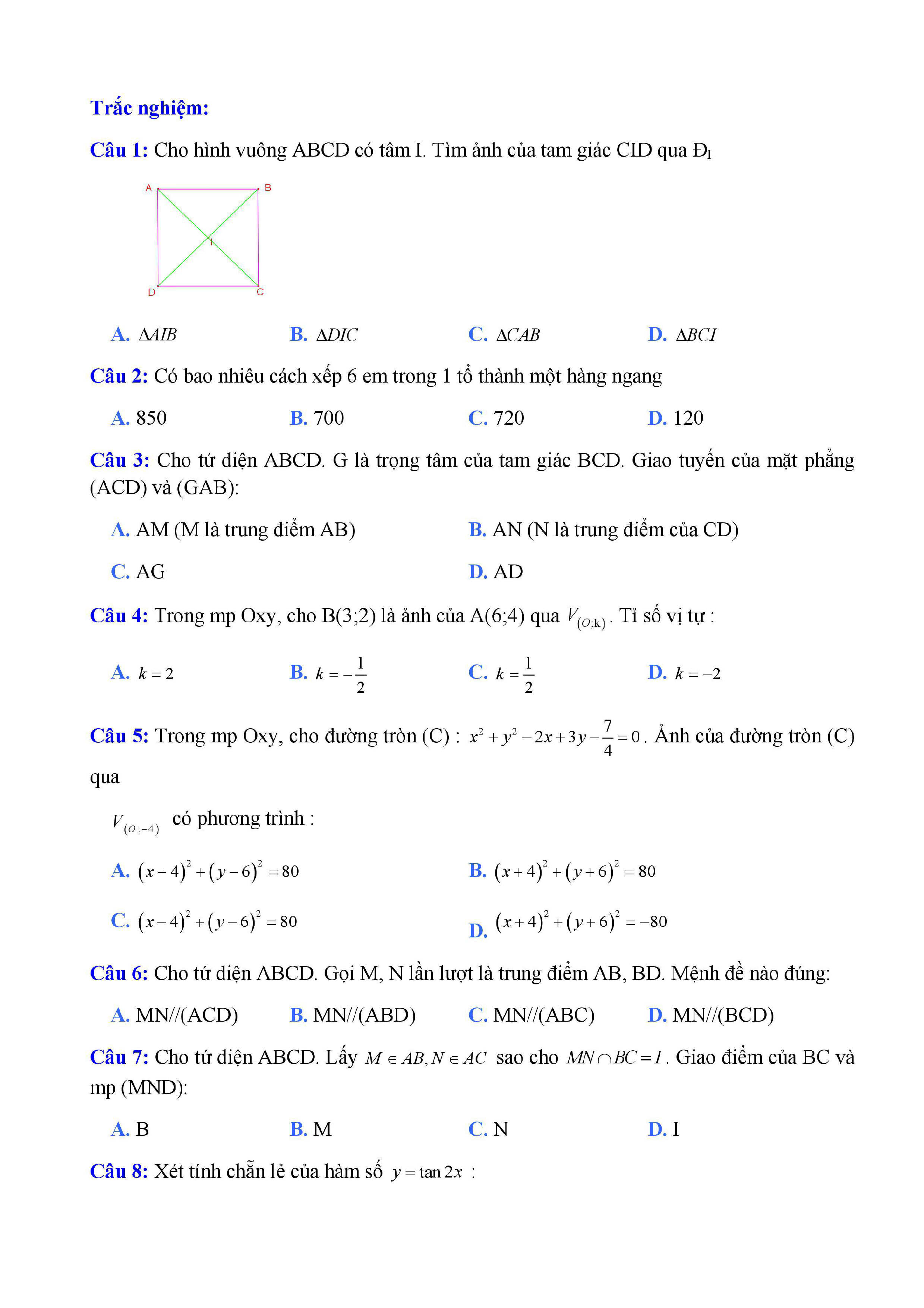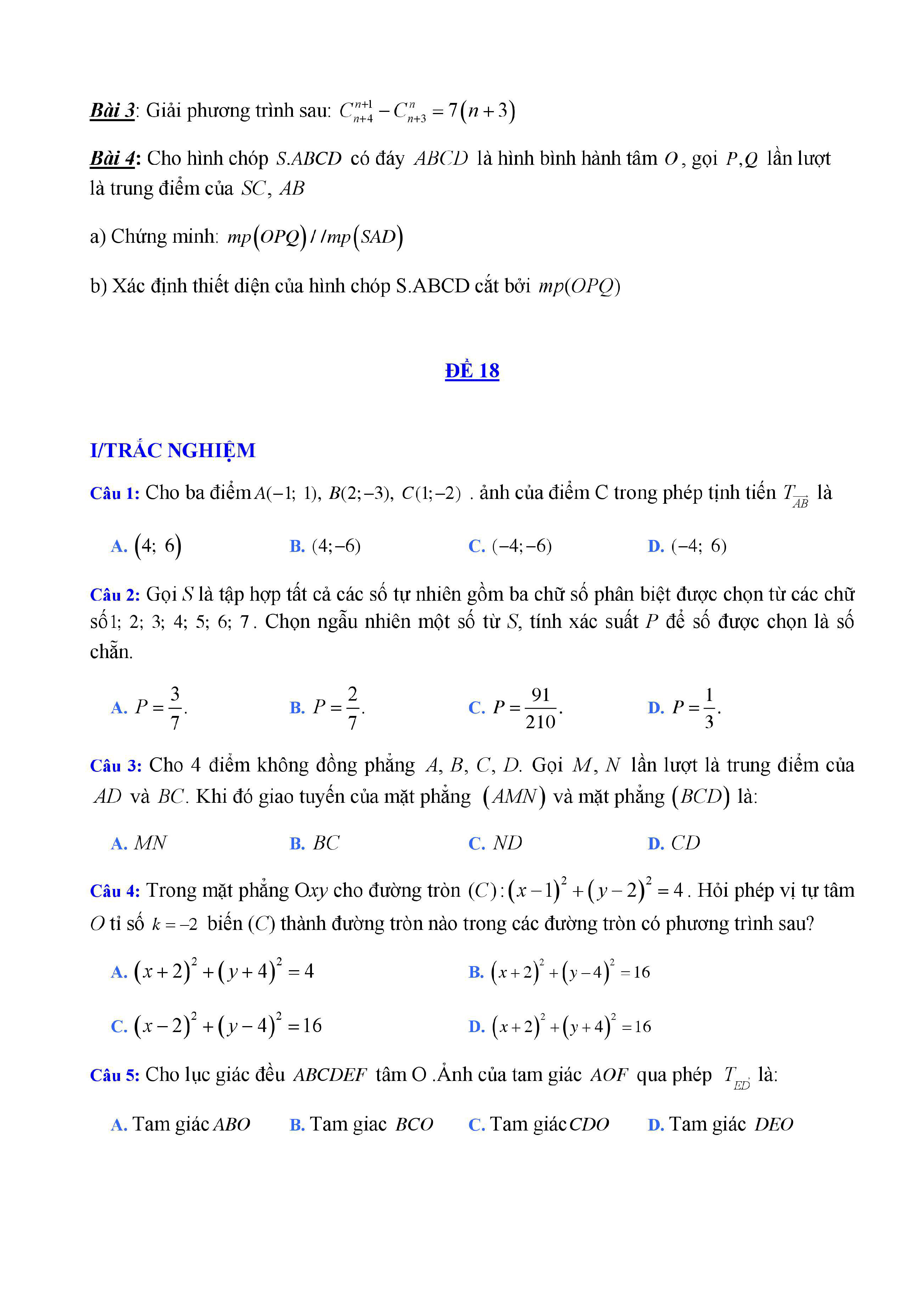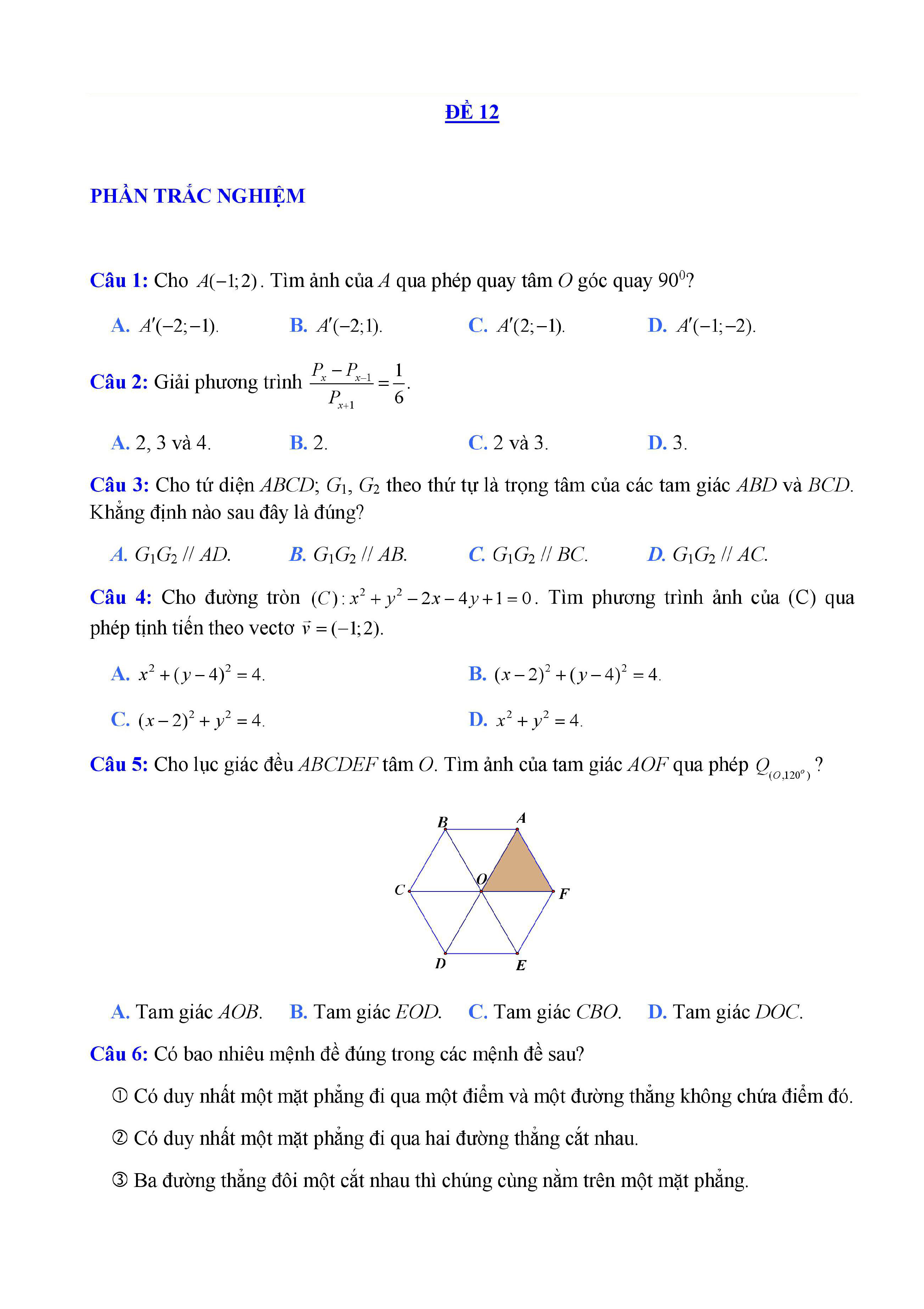 20 đề Toán ôn thi học kì 1 lớp 11