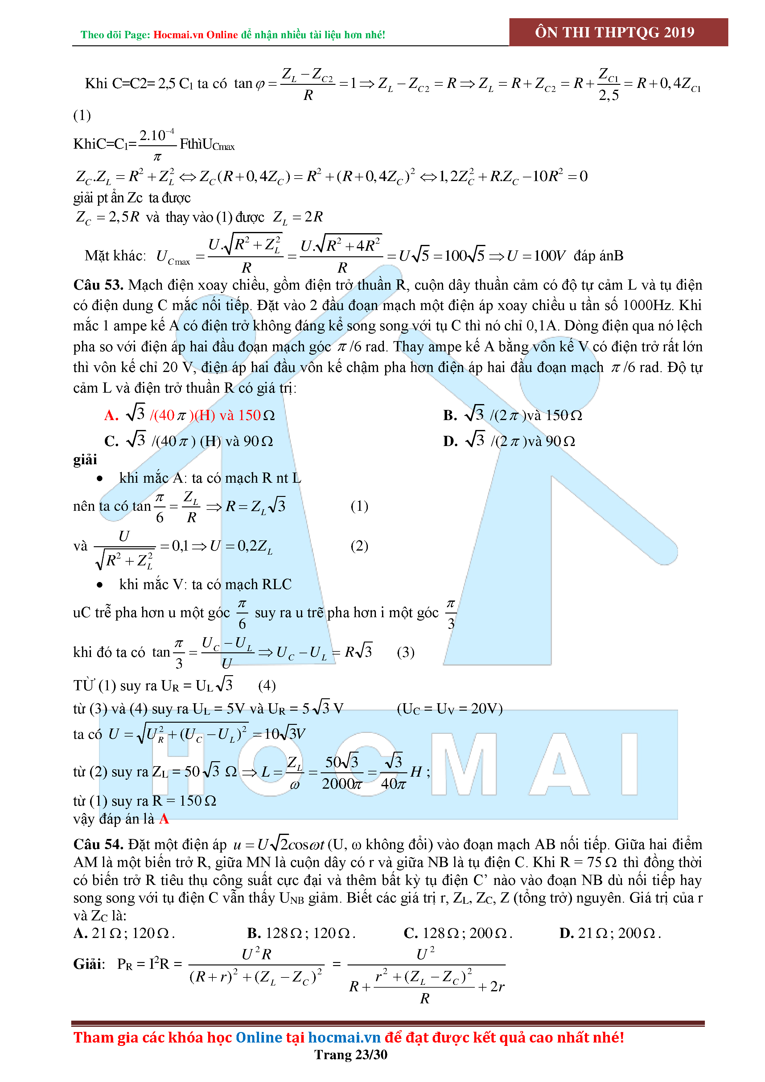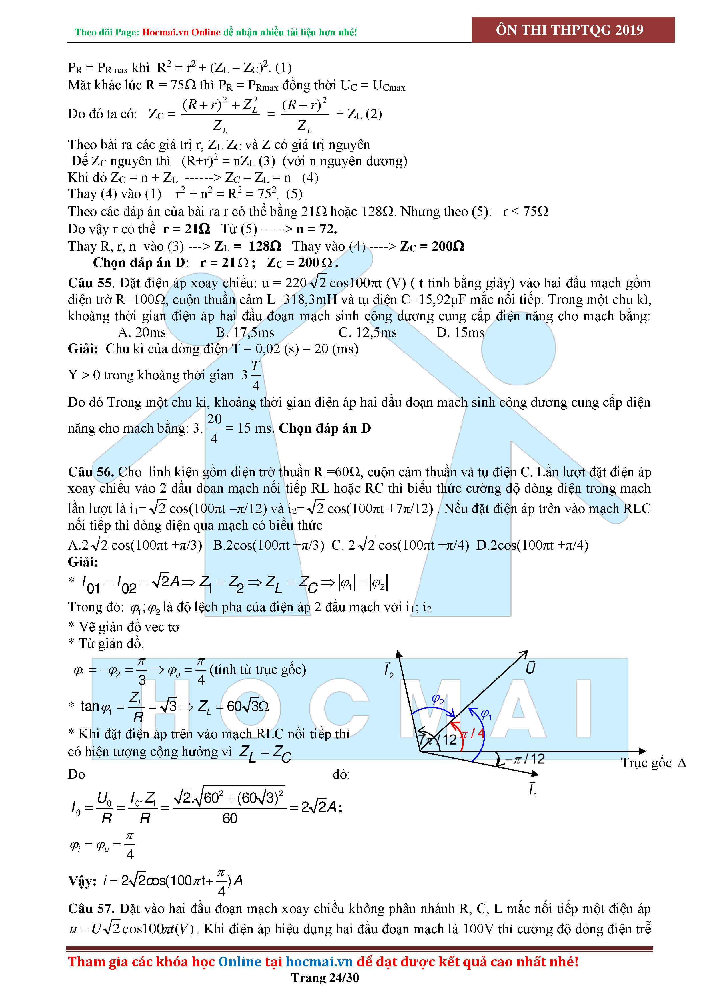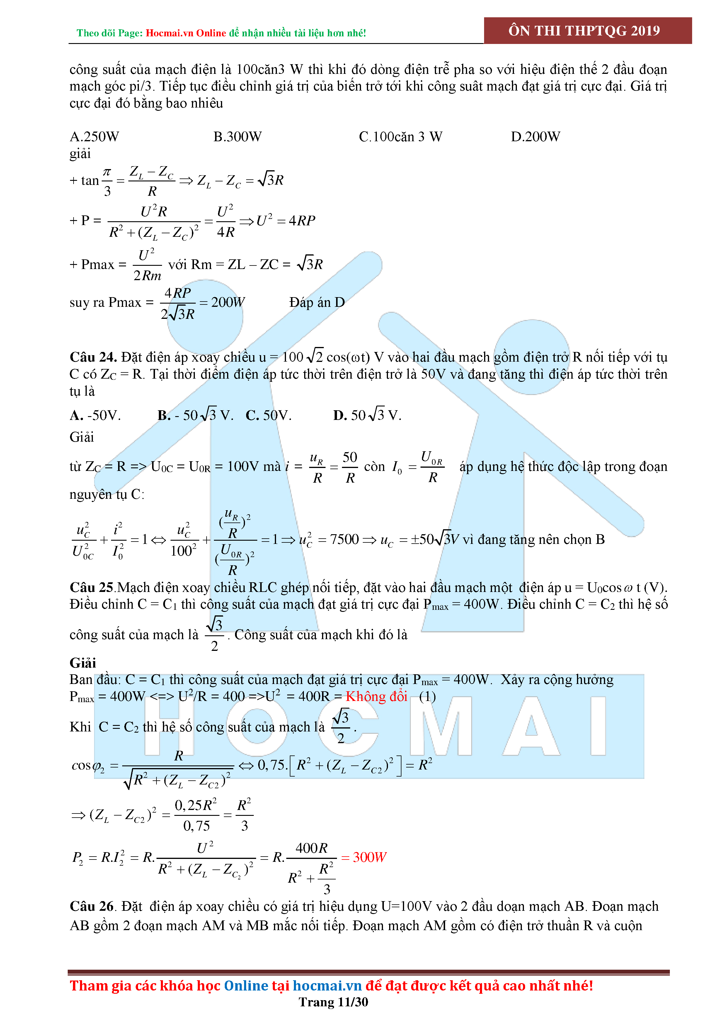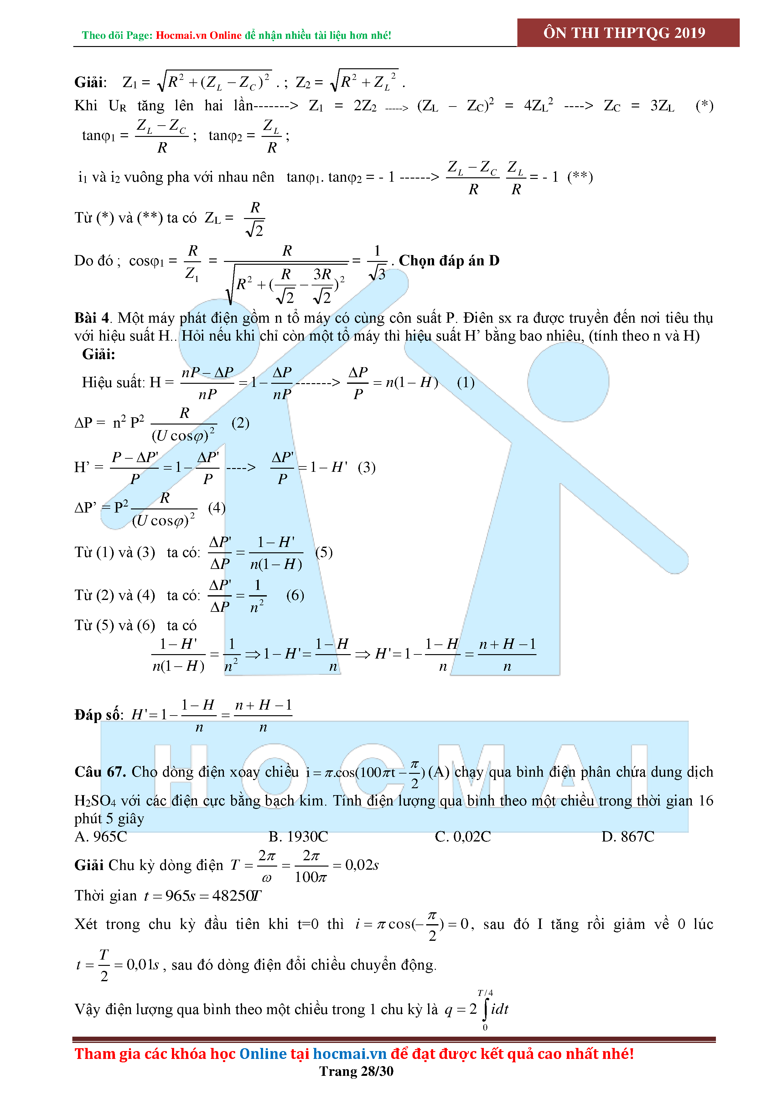 Dòng điện xoay chiều khó - có lời giải chi tiết