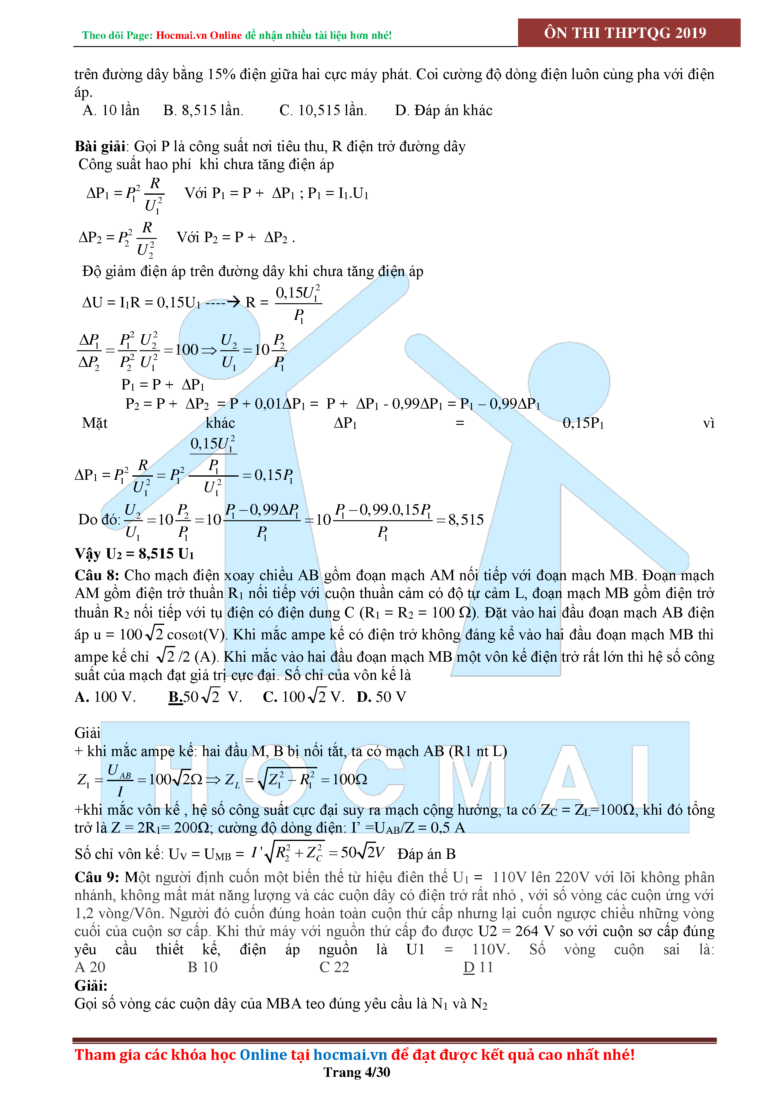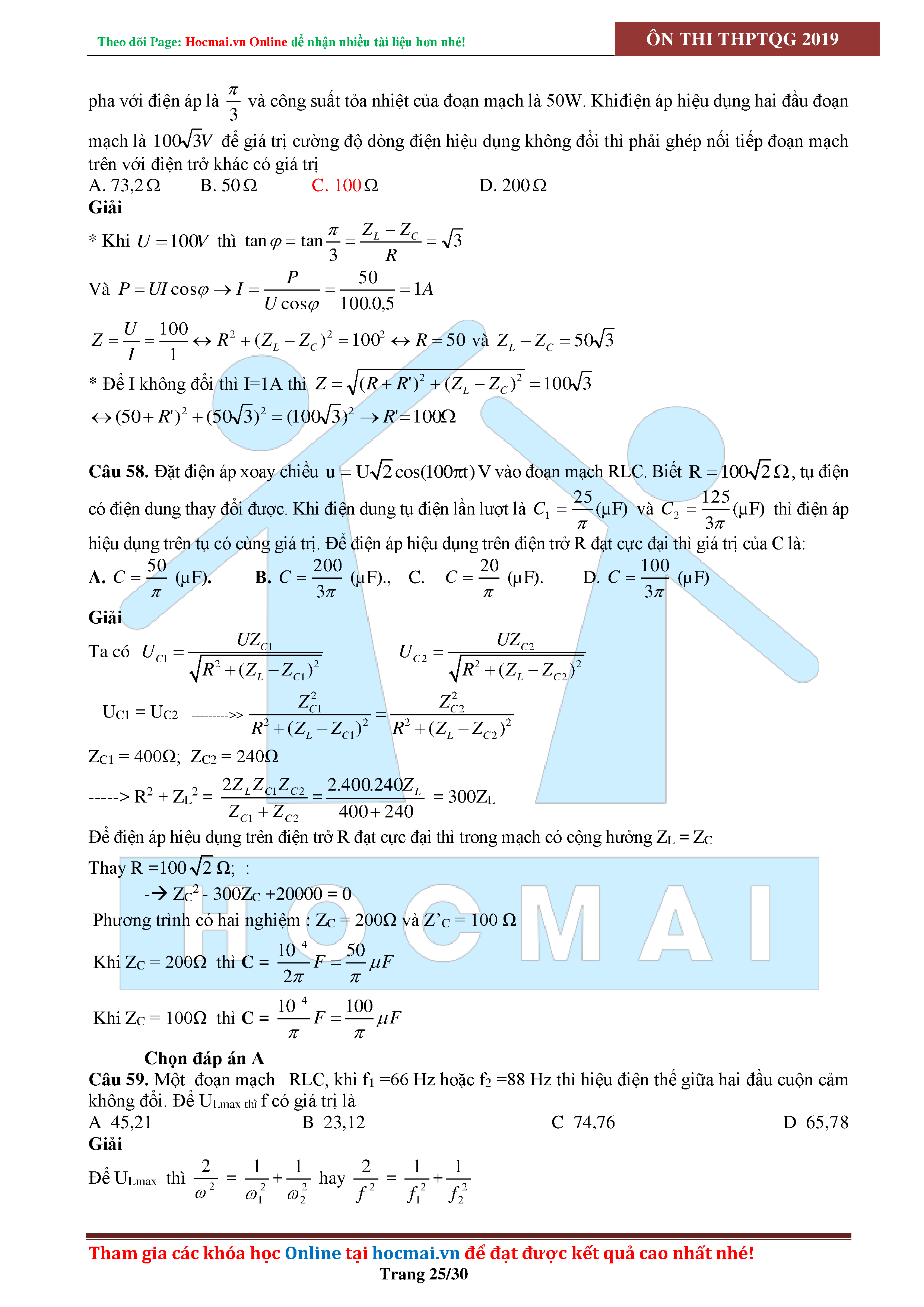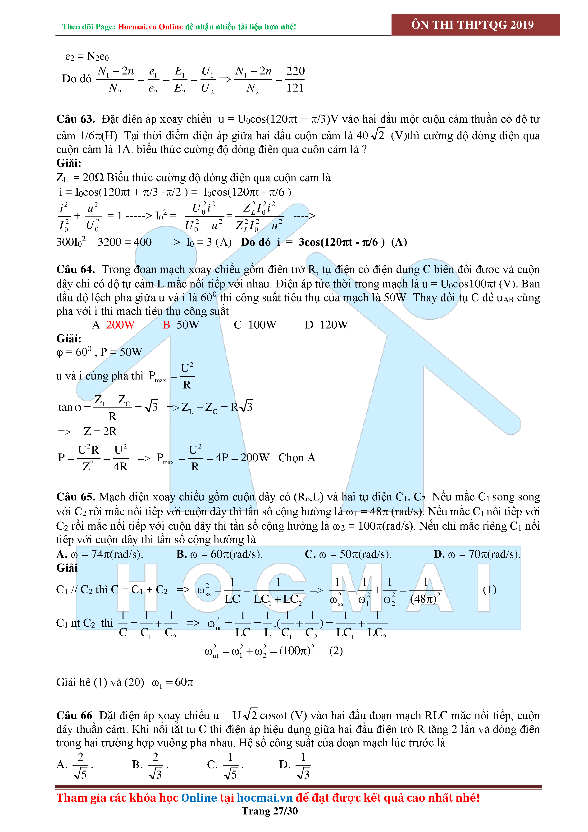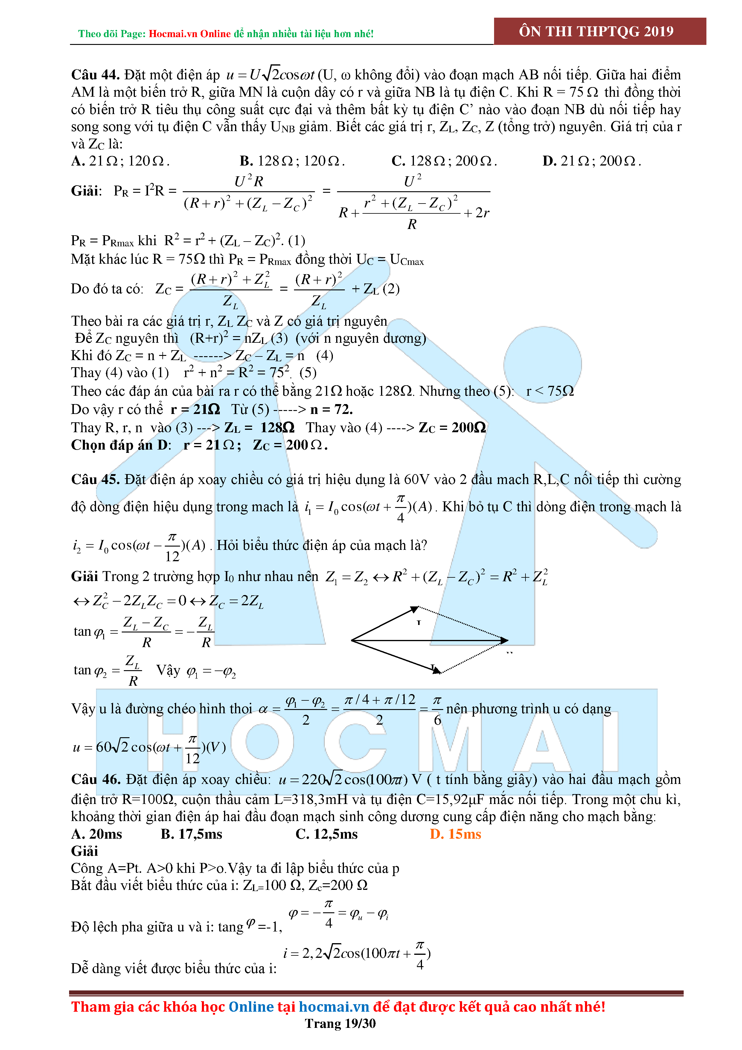 Dòng điện xoay chiều khó - có lời giải chi tiết