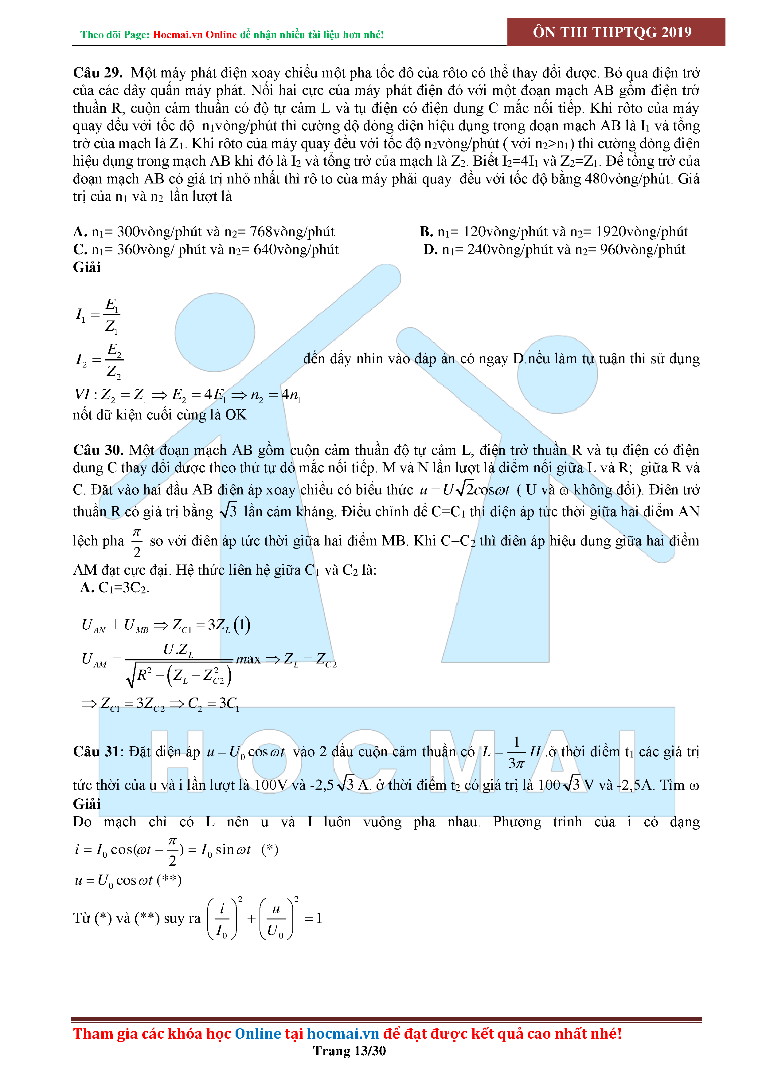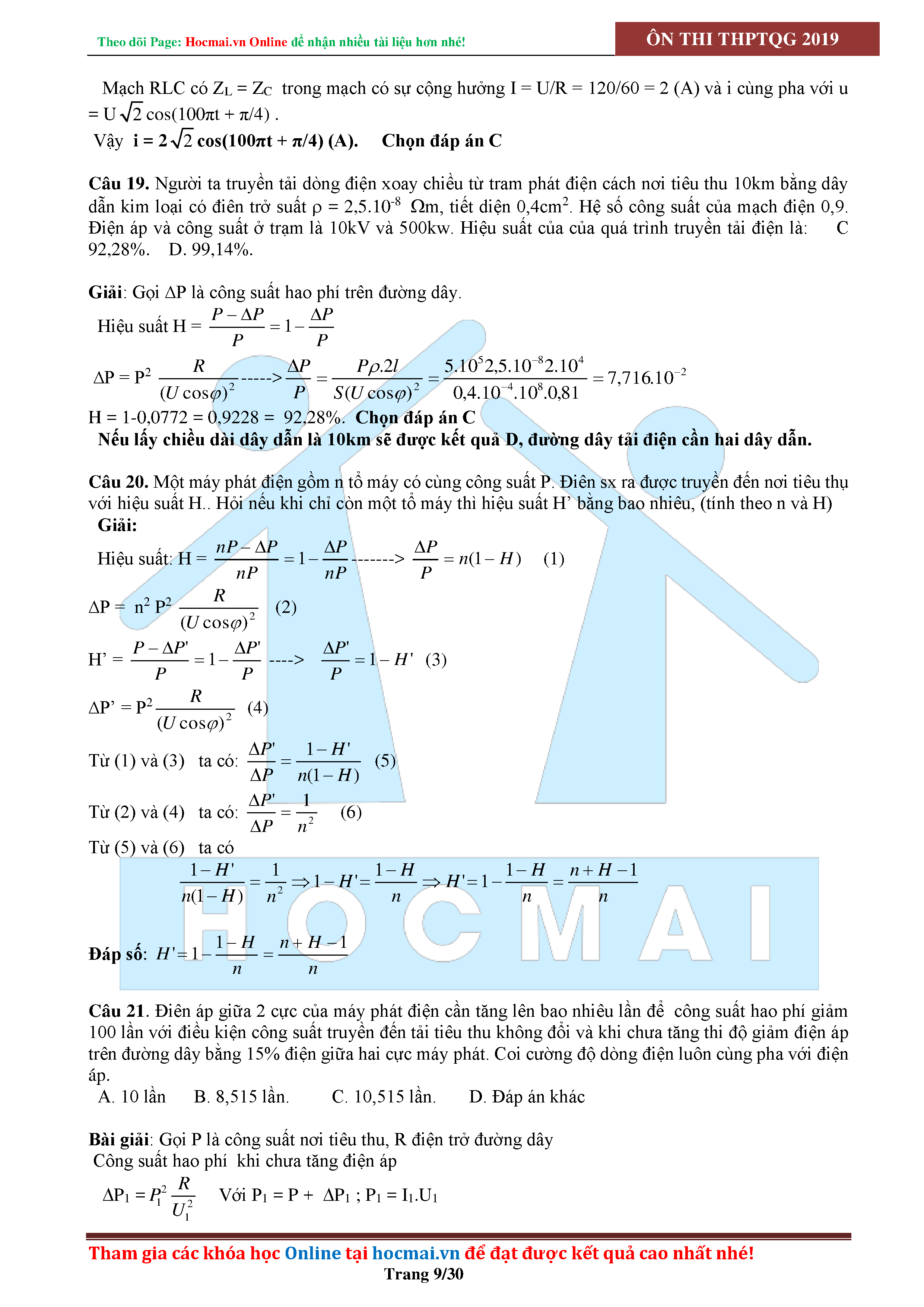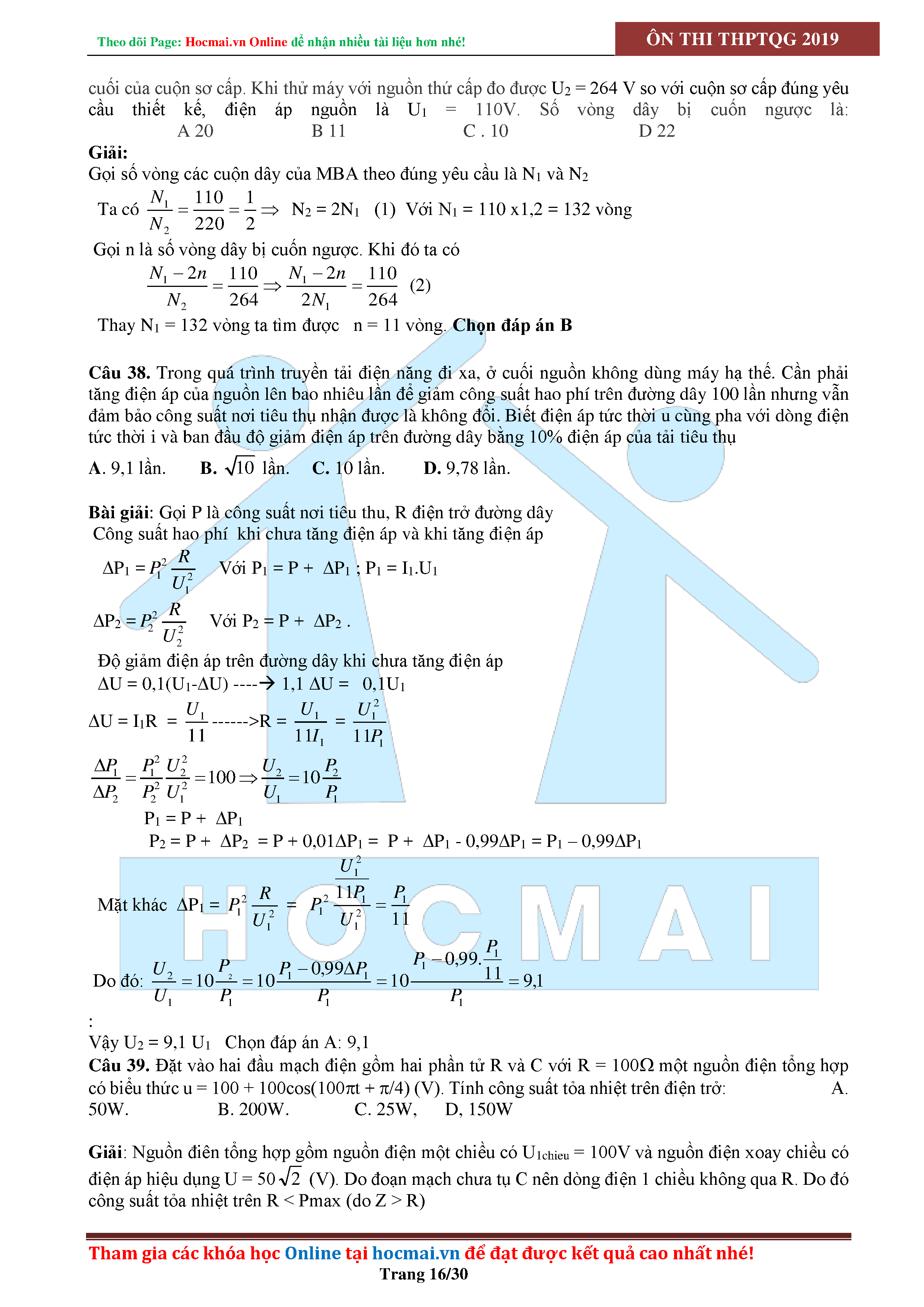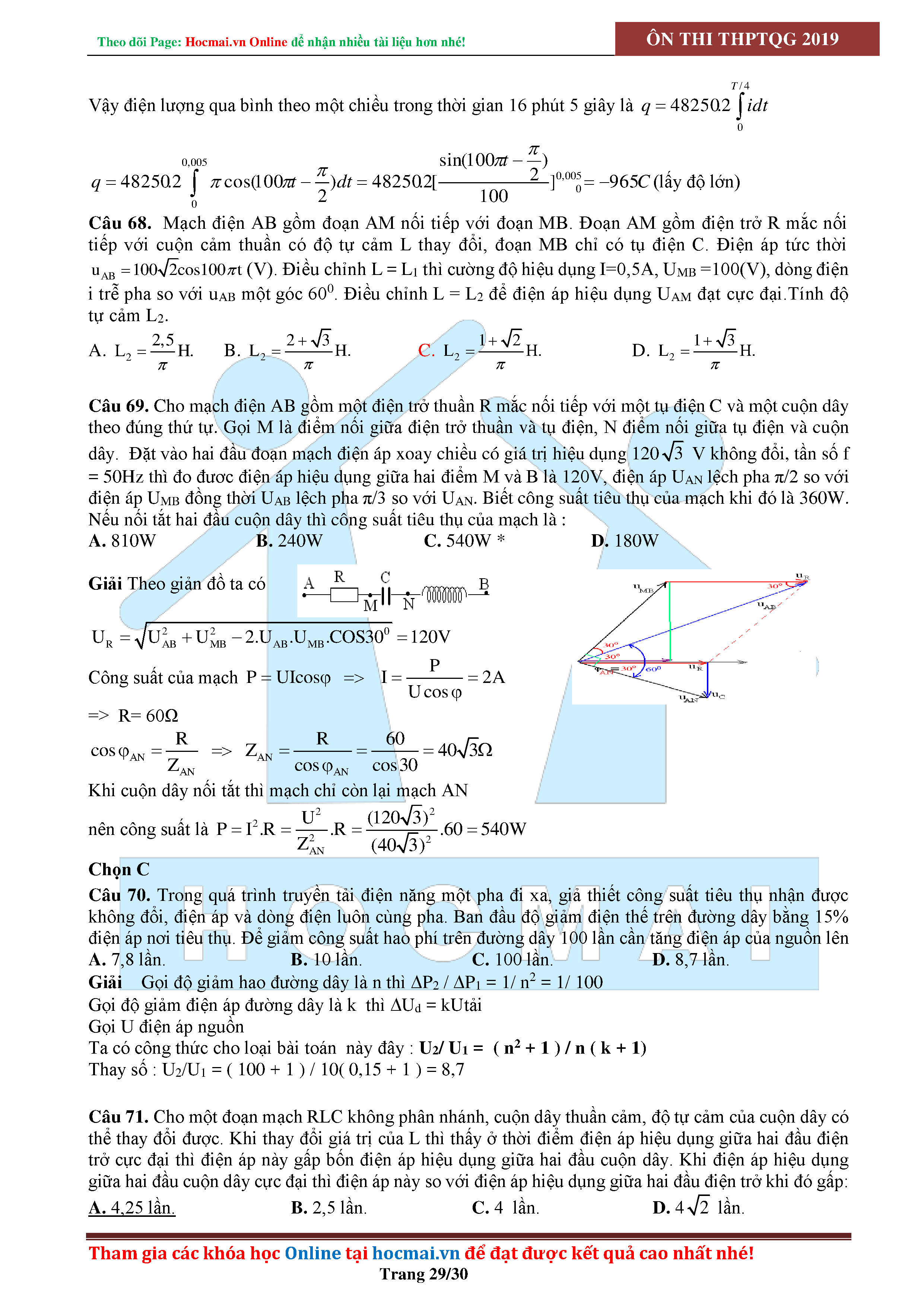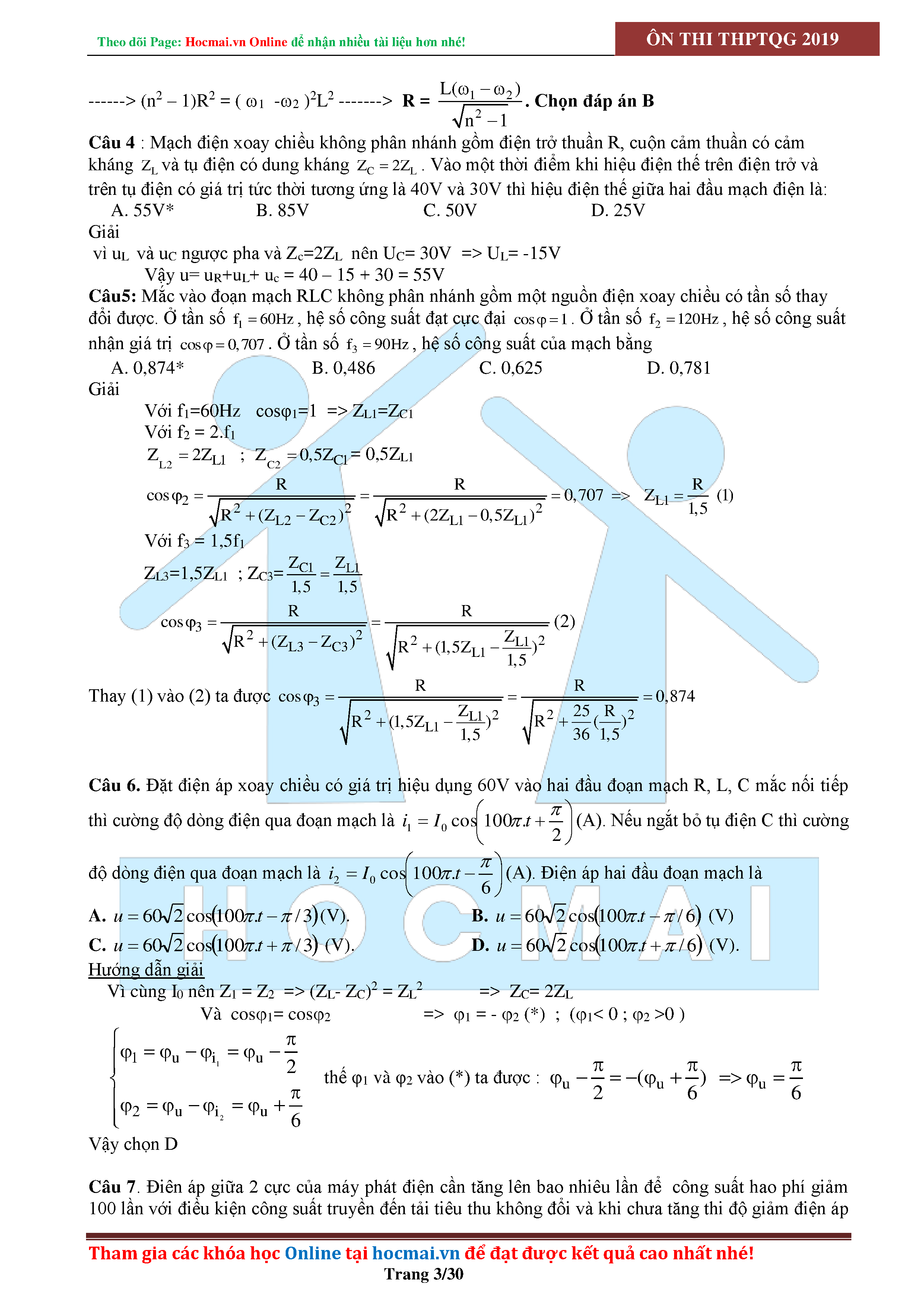 Dòng điện xoay chiều khó - có lời giải chi tiết