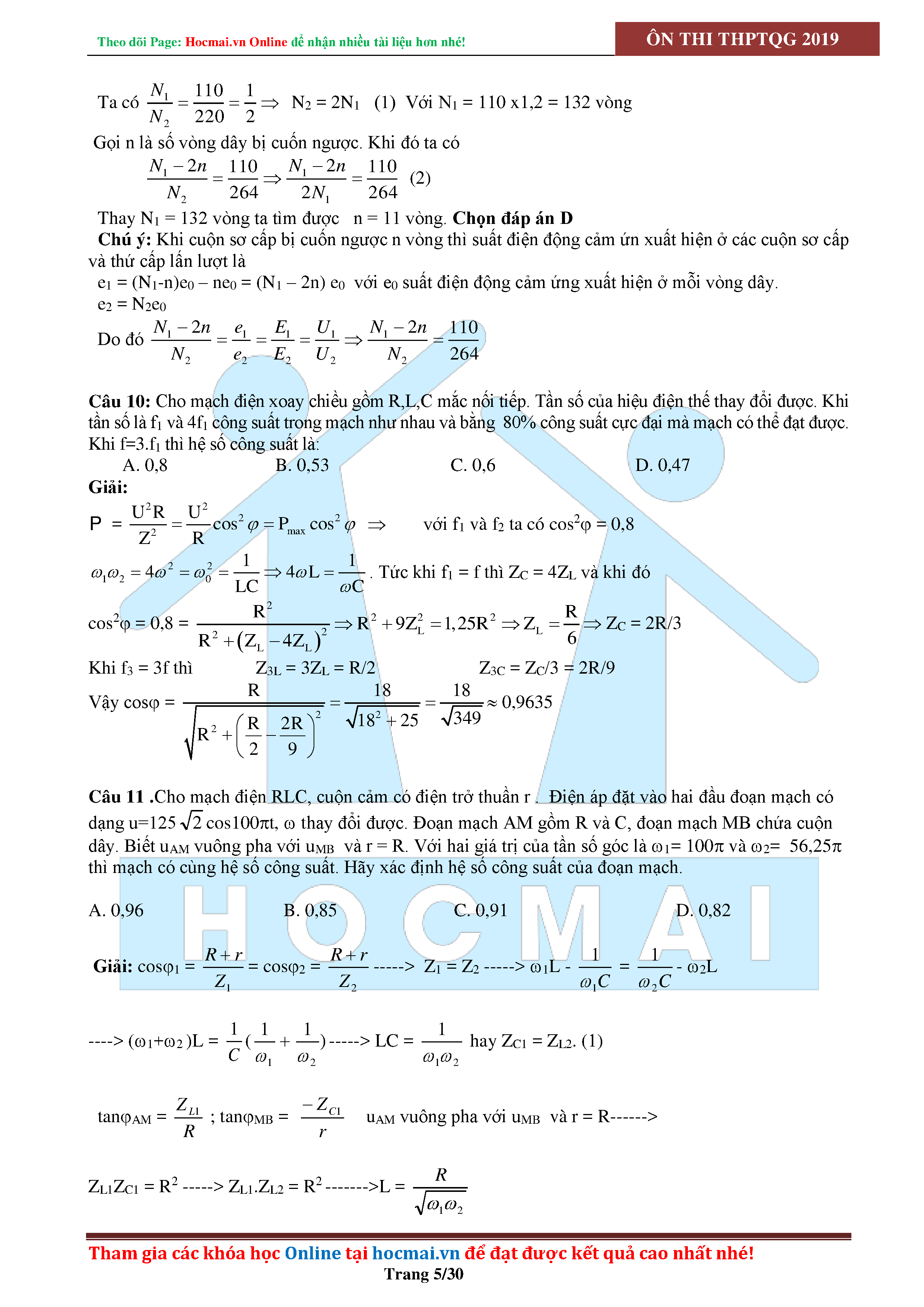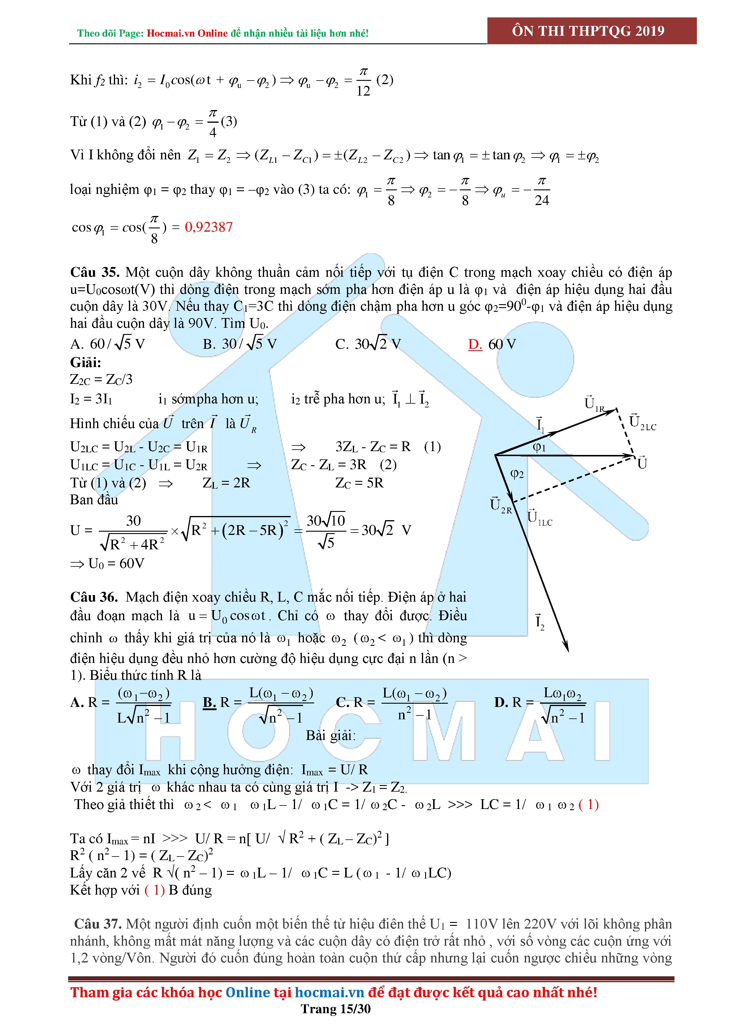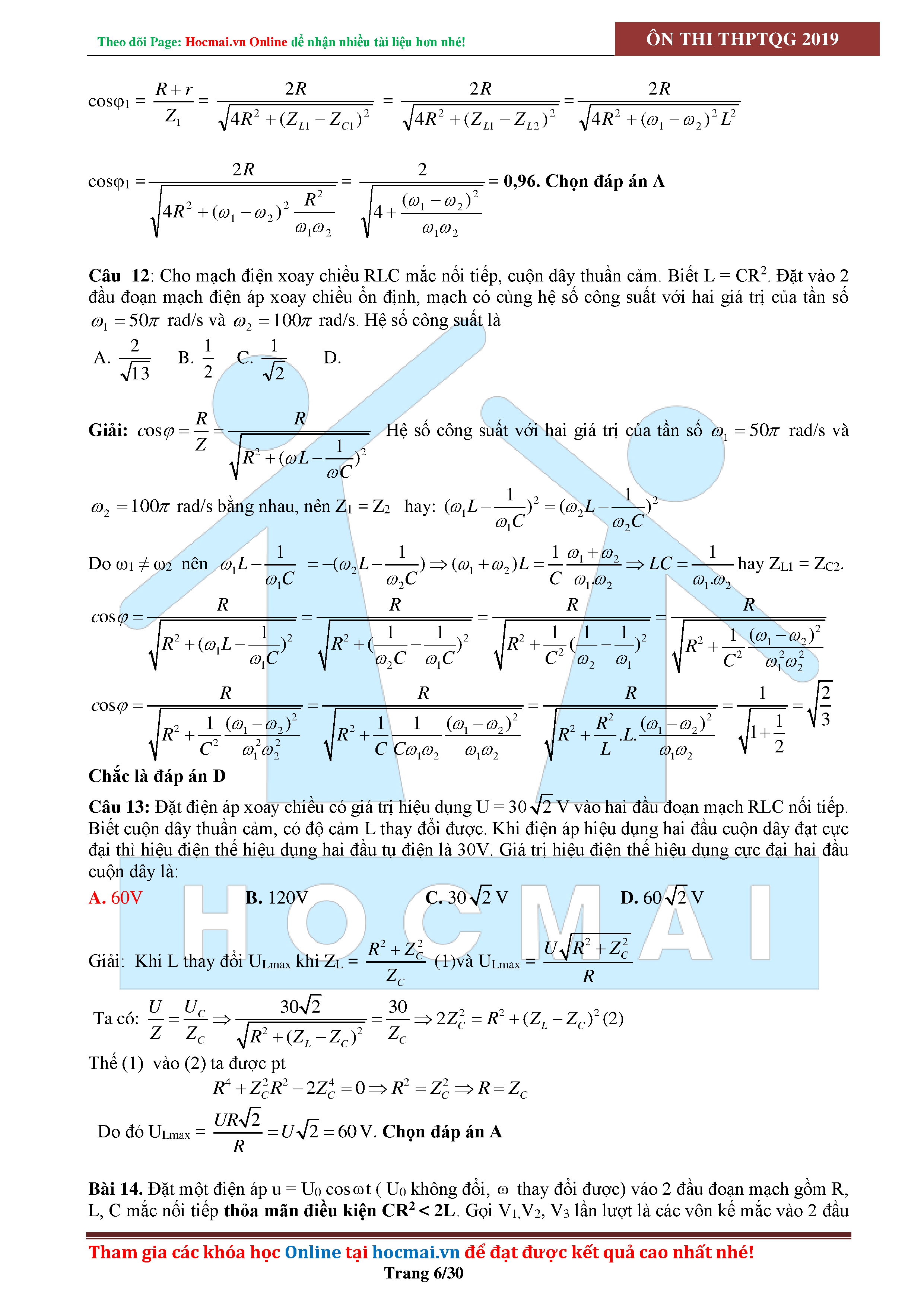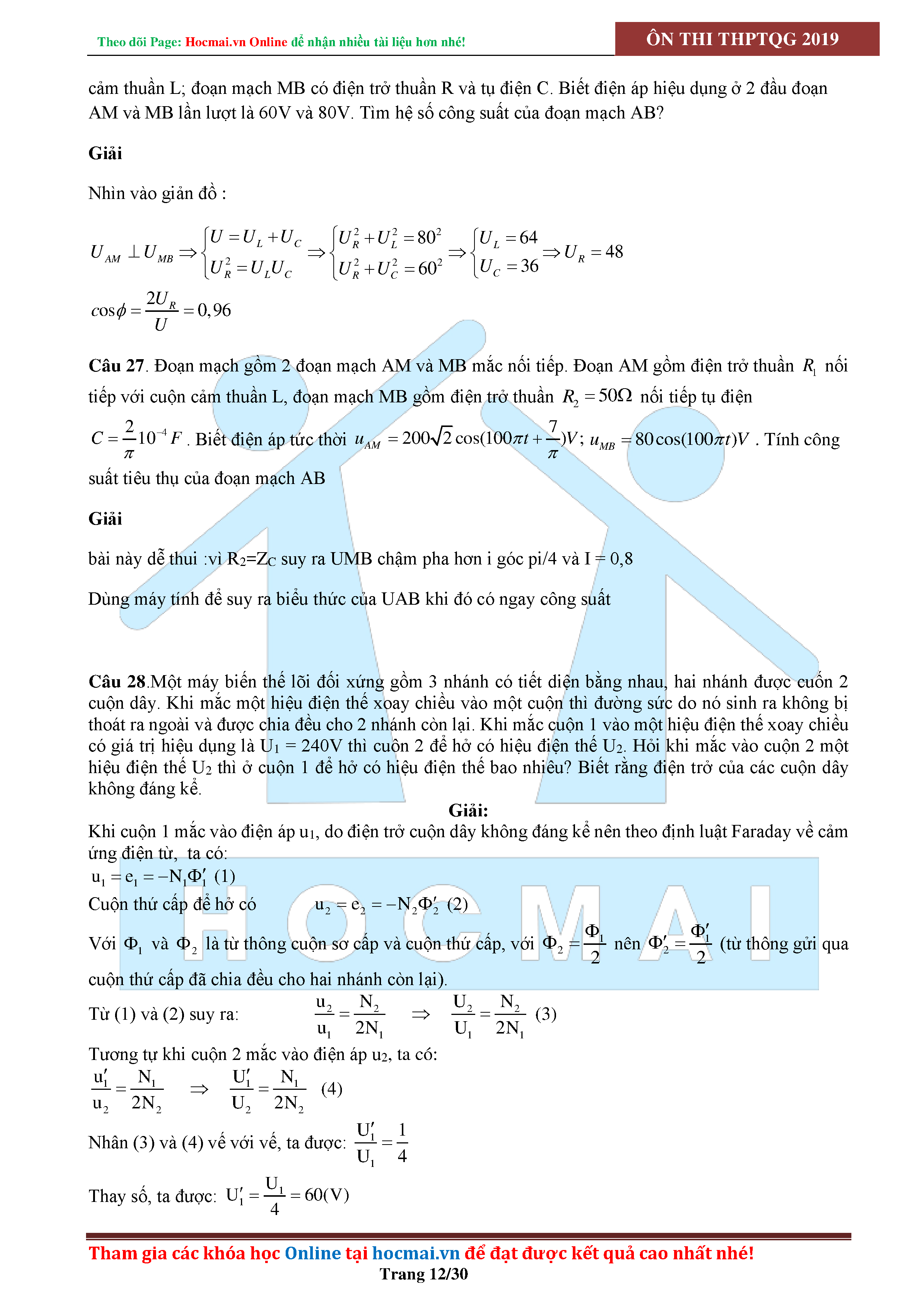 Dòng điện xoay chiều khó - có lời giải chi tiết