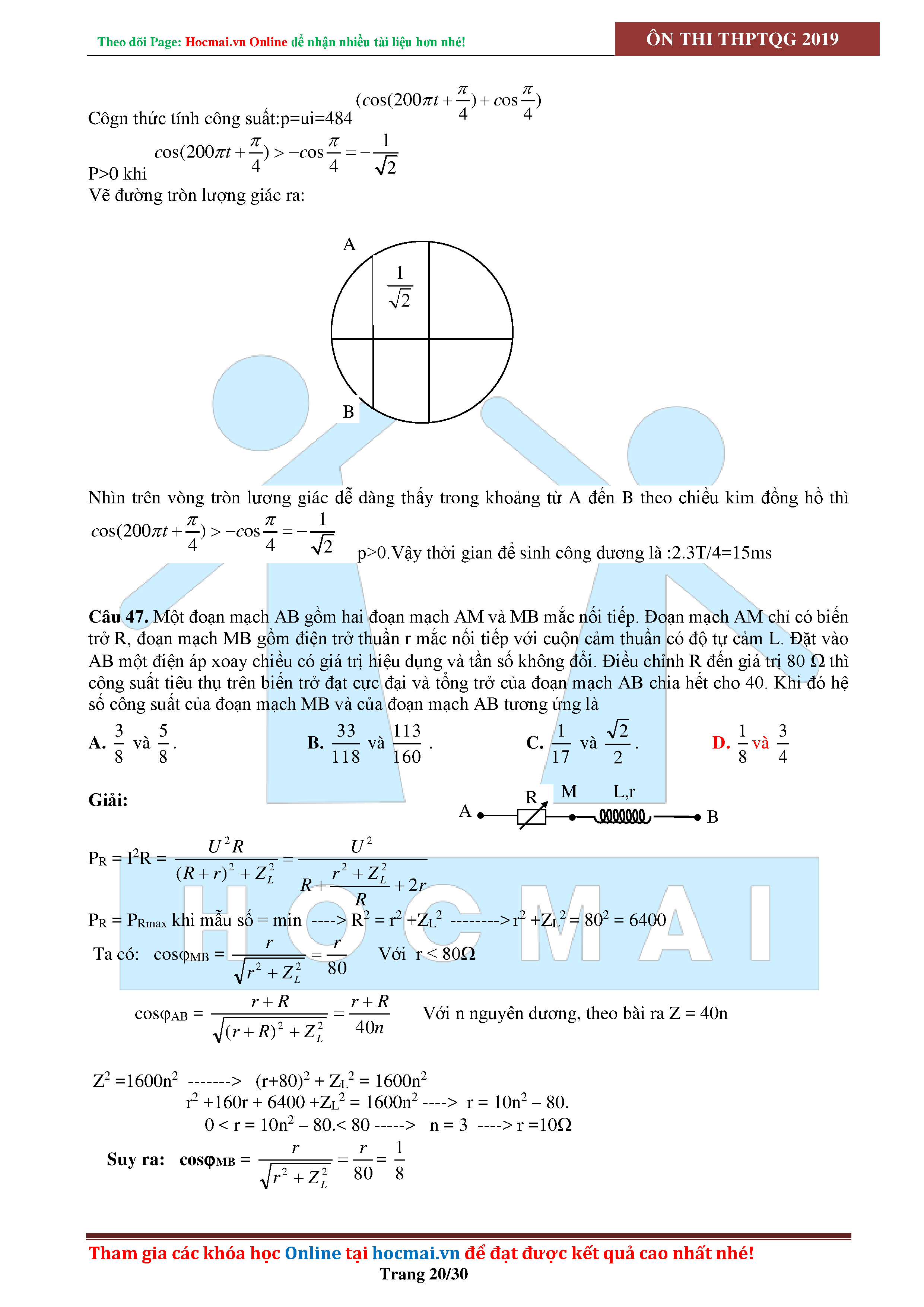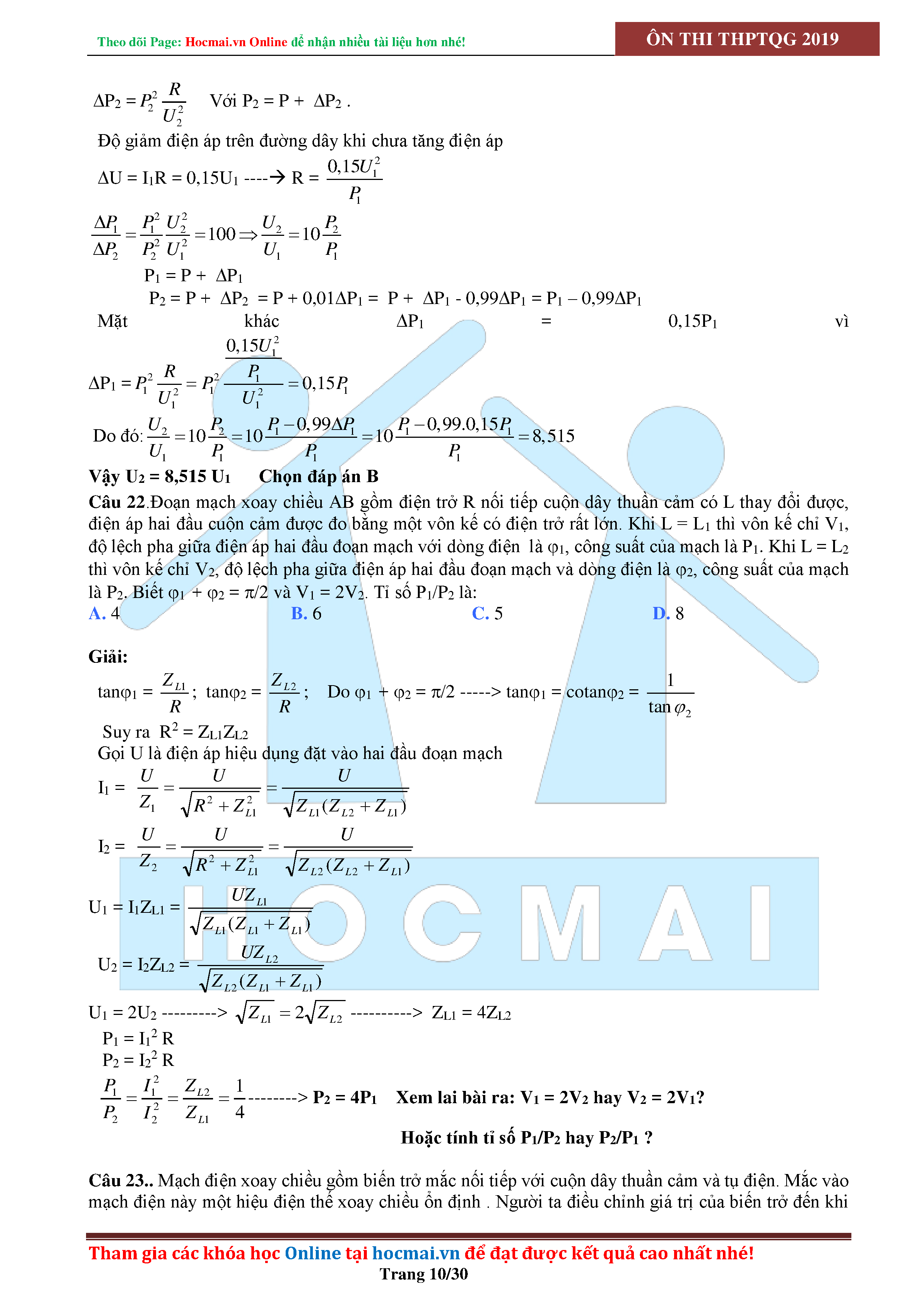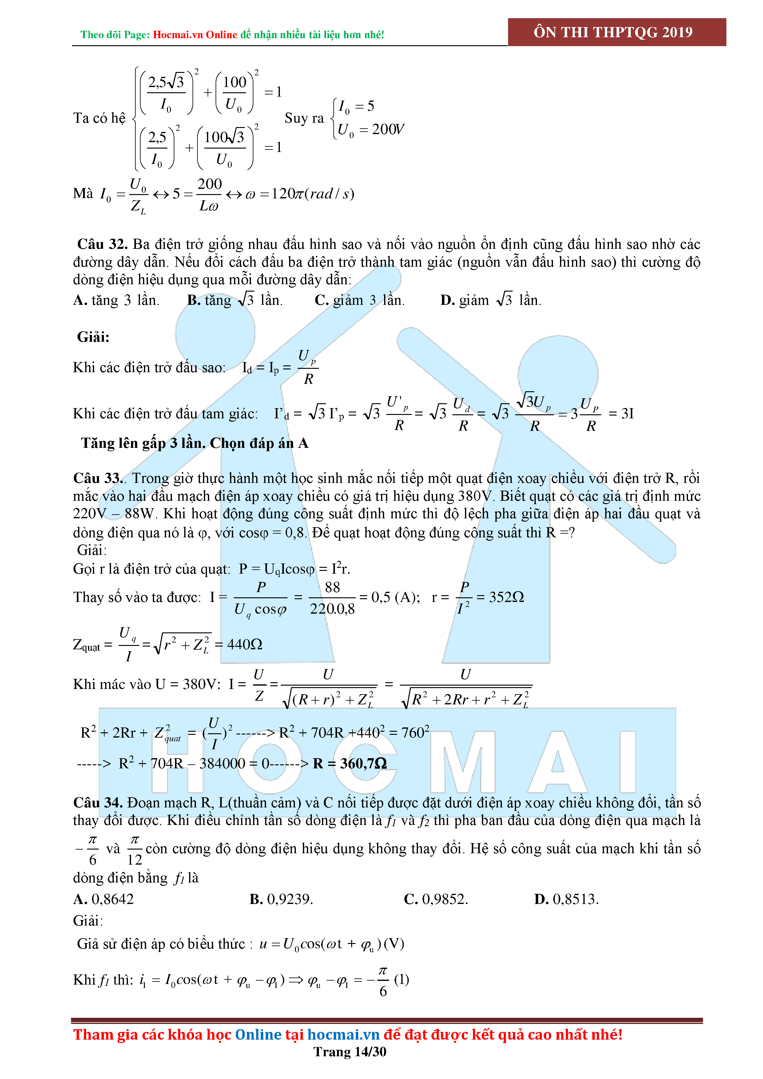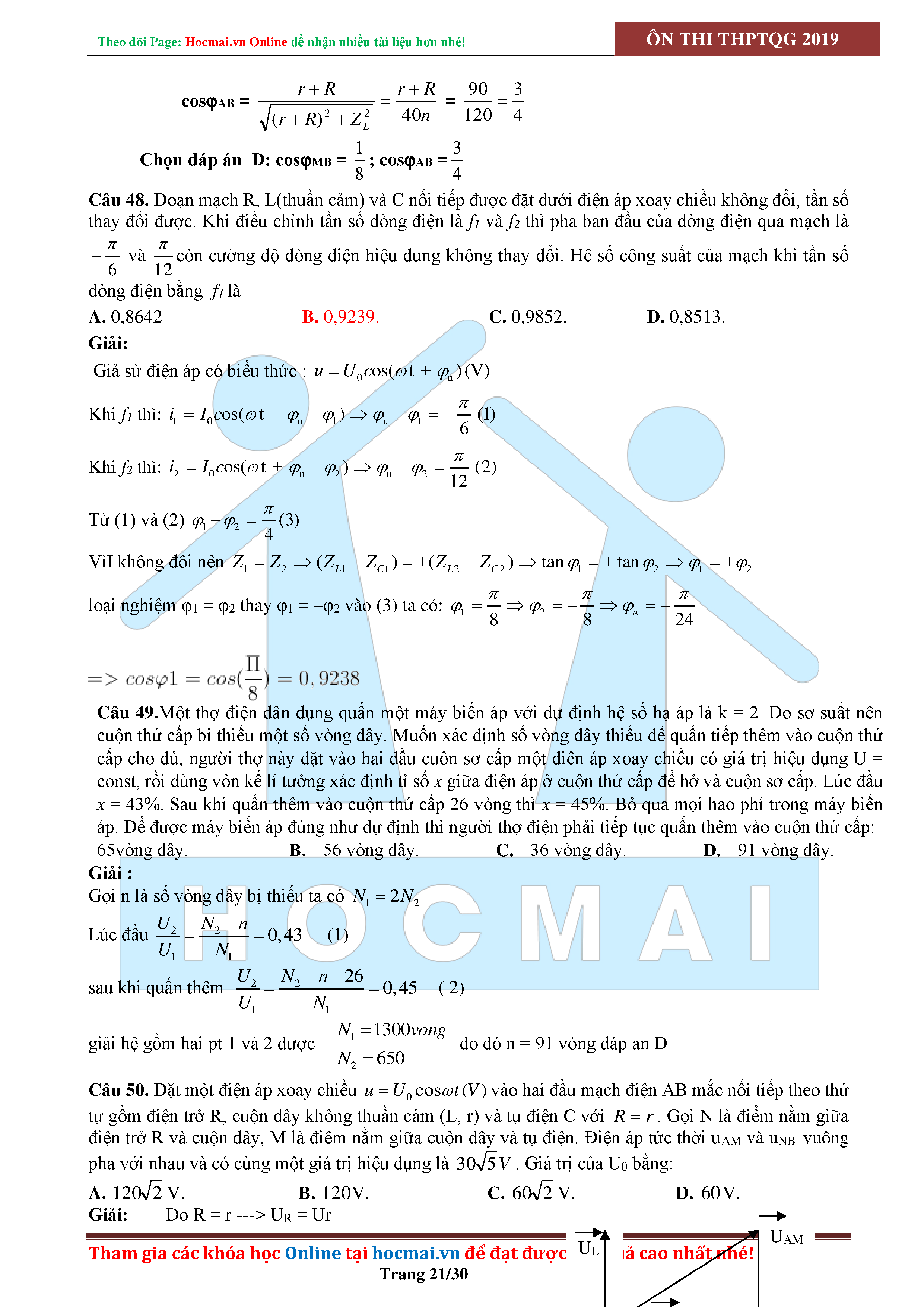 Dòng điện xoay chiều khó - có lời giải chi tiết