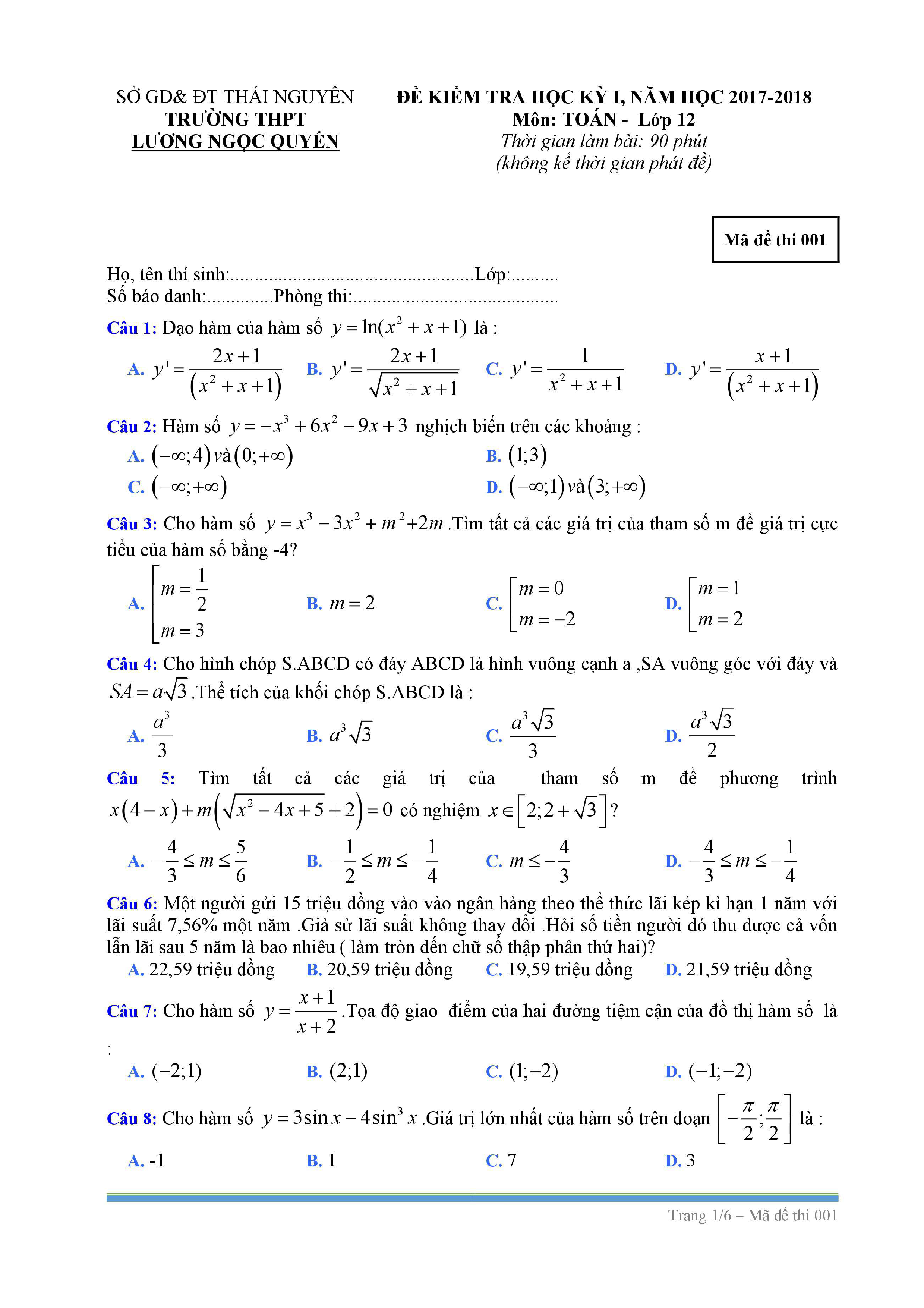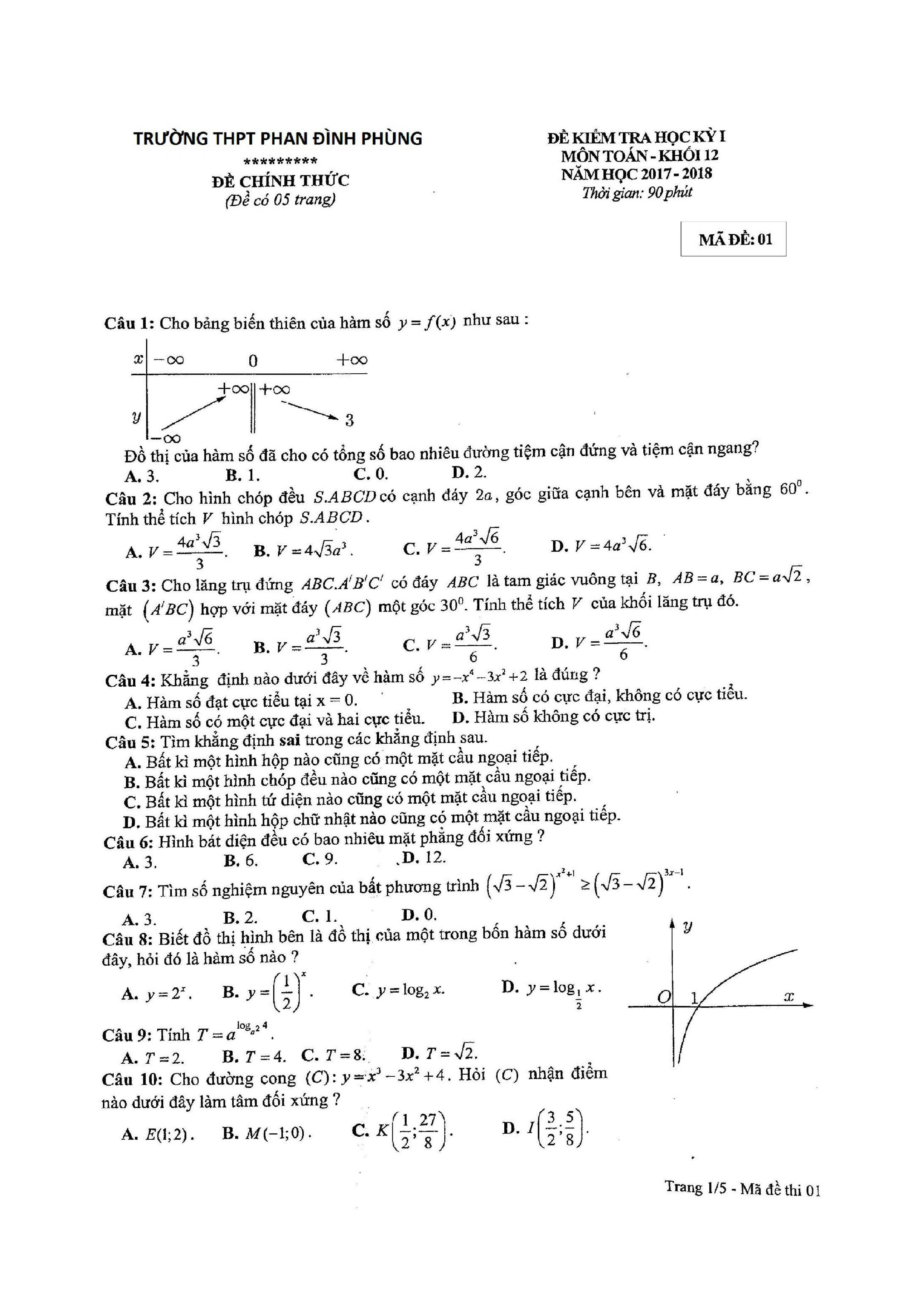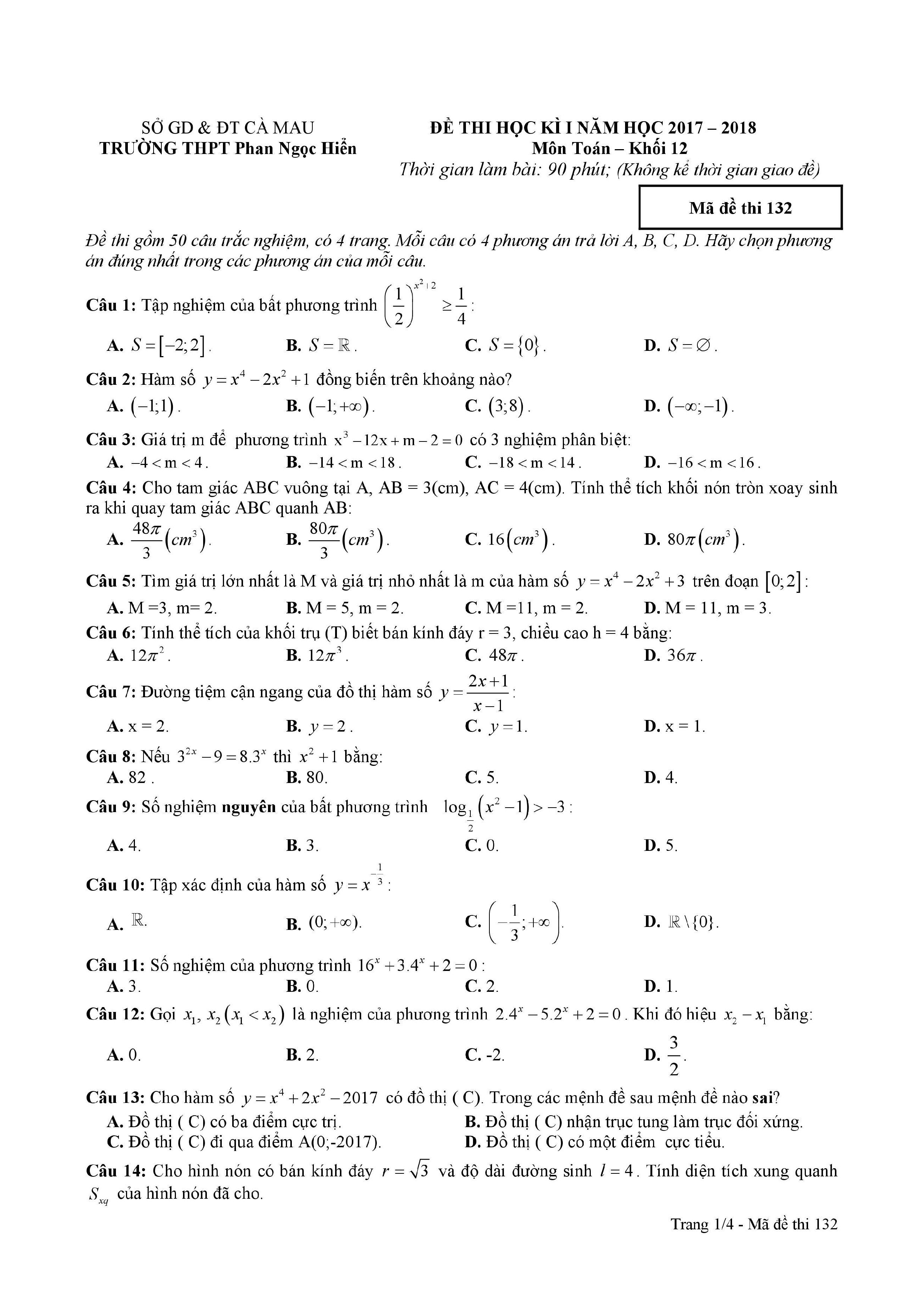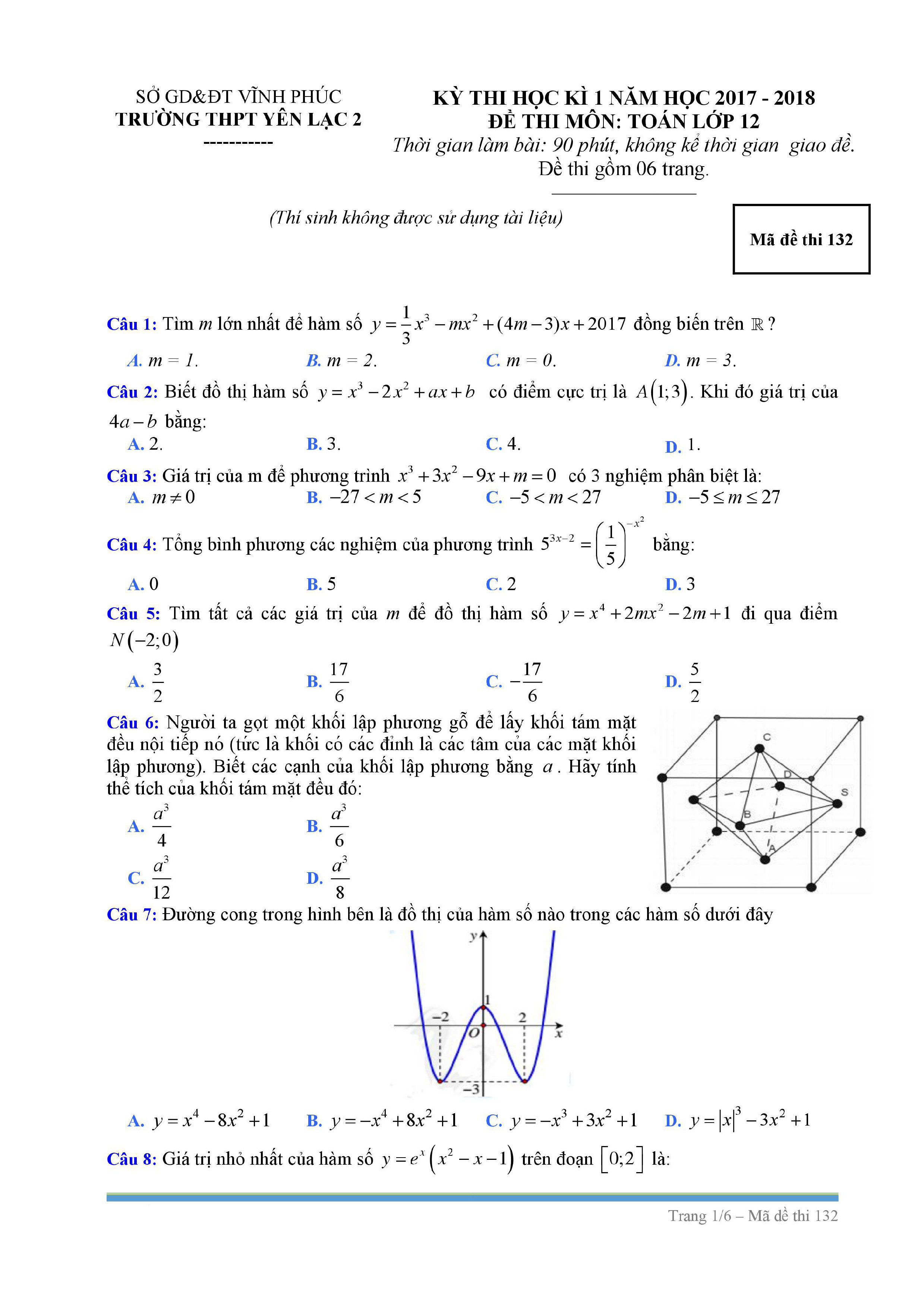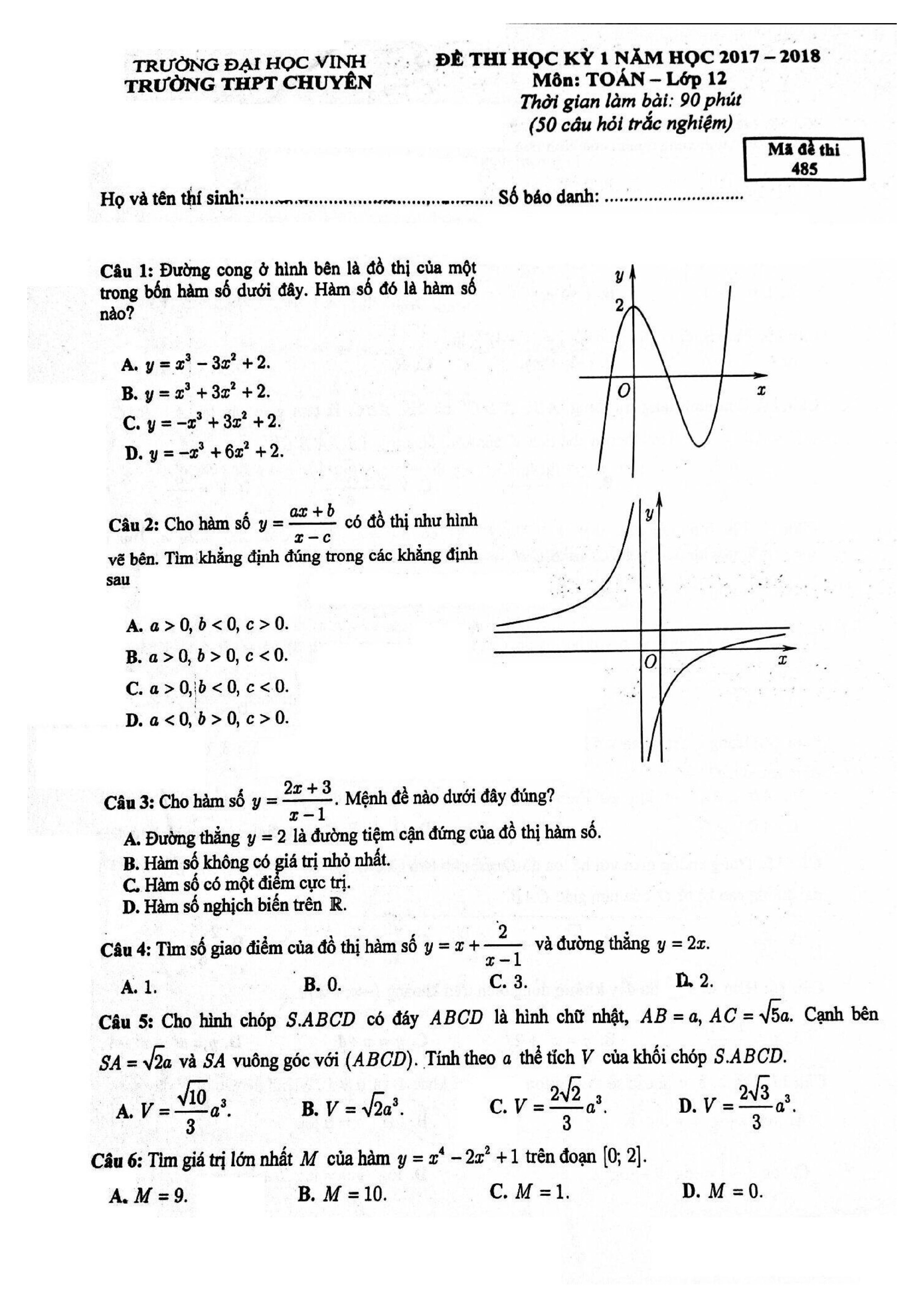 Tuyển tập đề thi HK1 môn Toán 12 (năm học 2017-2018)