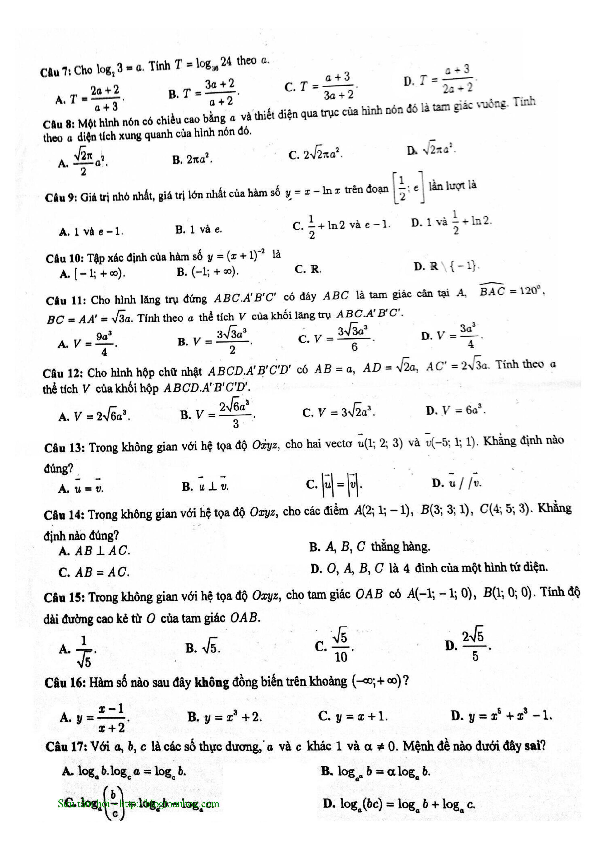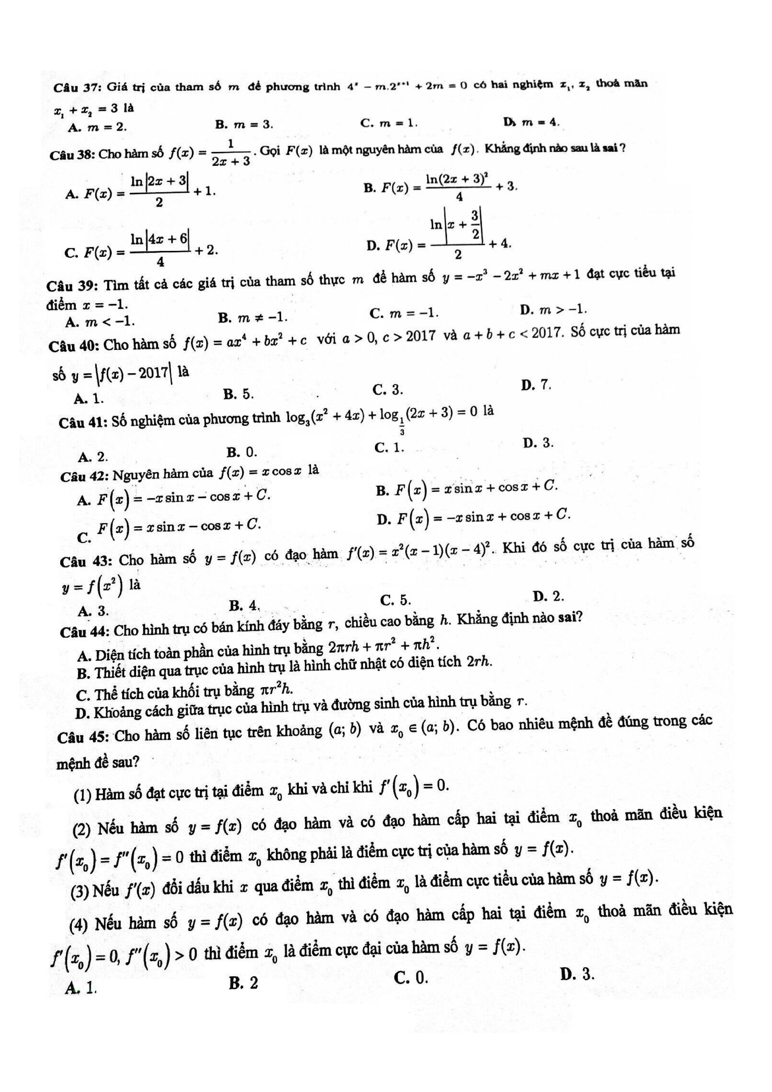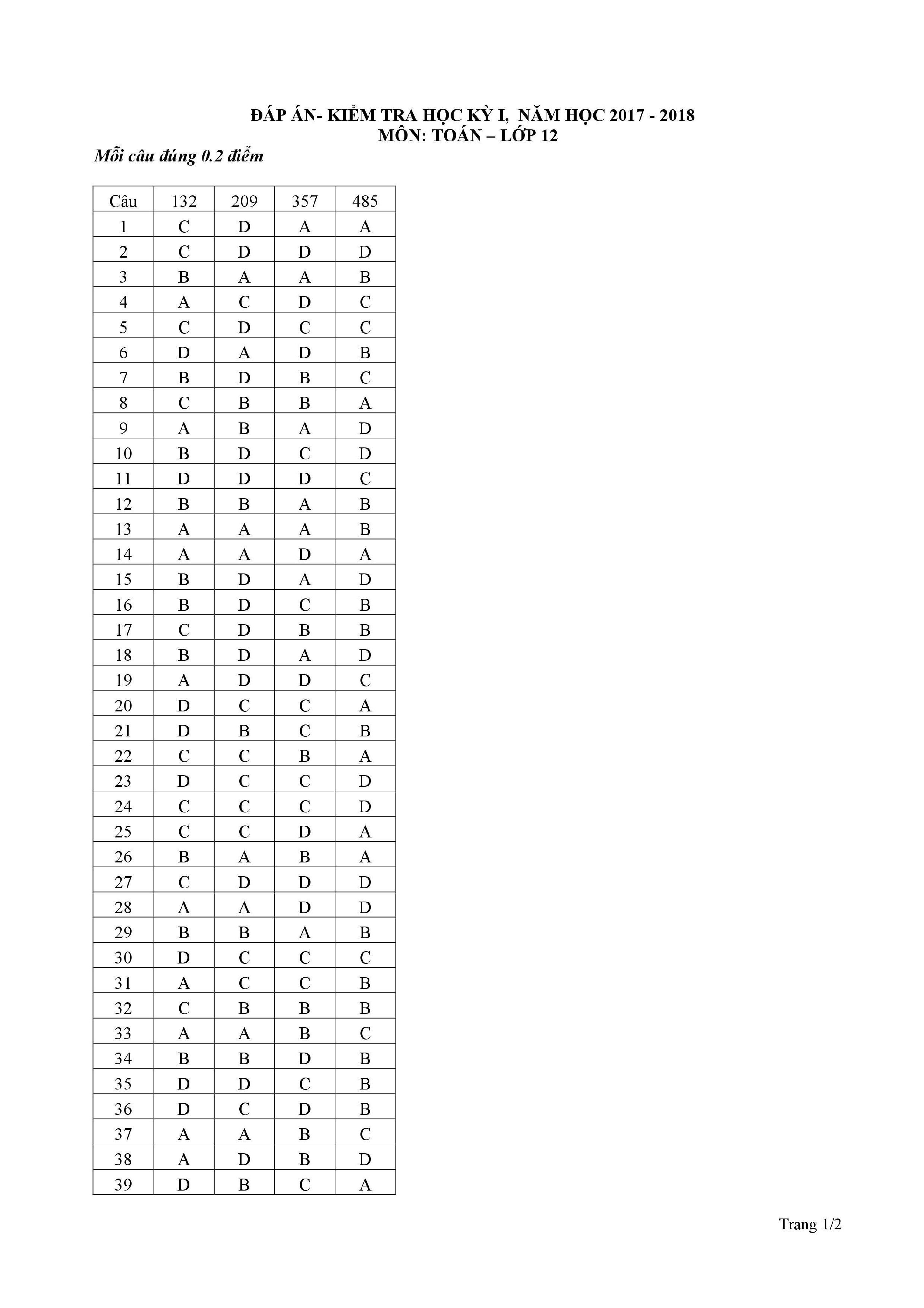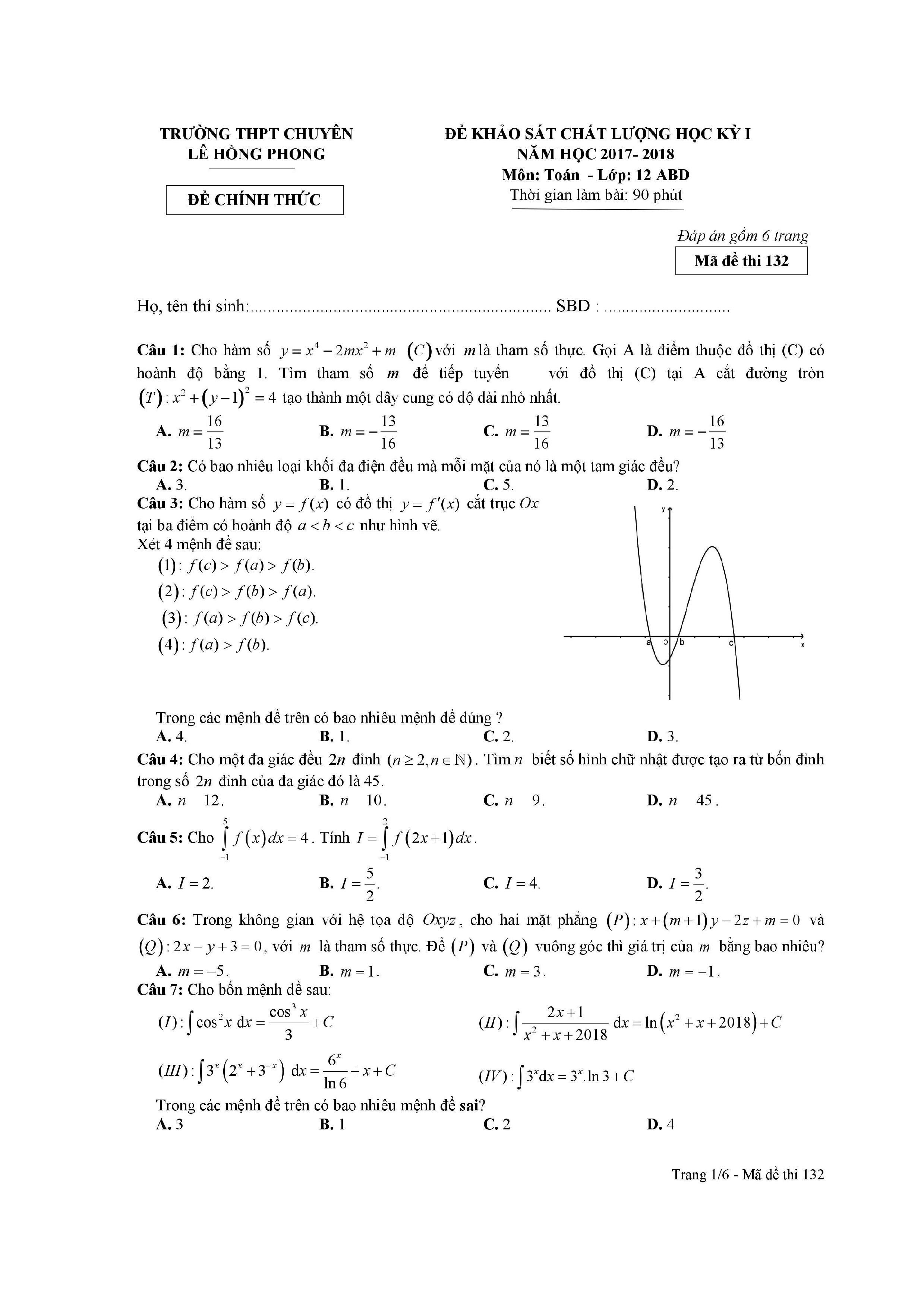 Tuyển tập đề thi HK1 môn Toán 12 (năm học 2017-2018)