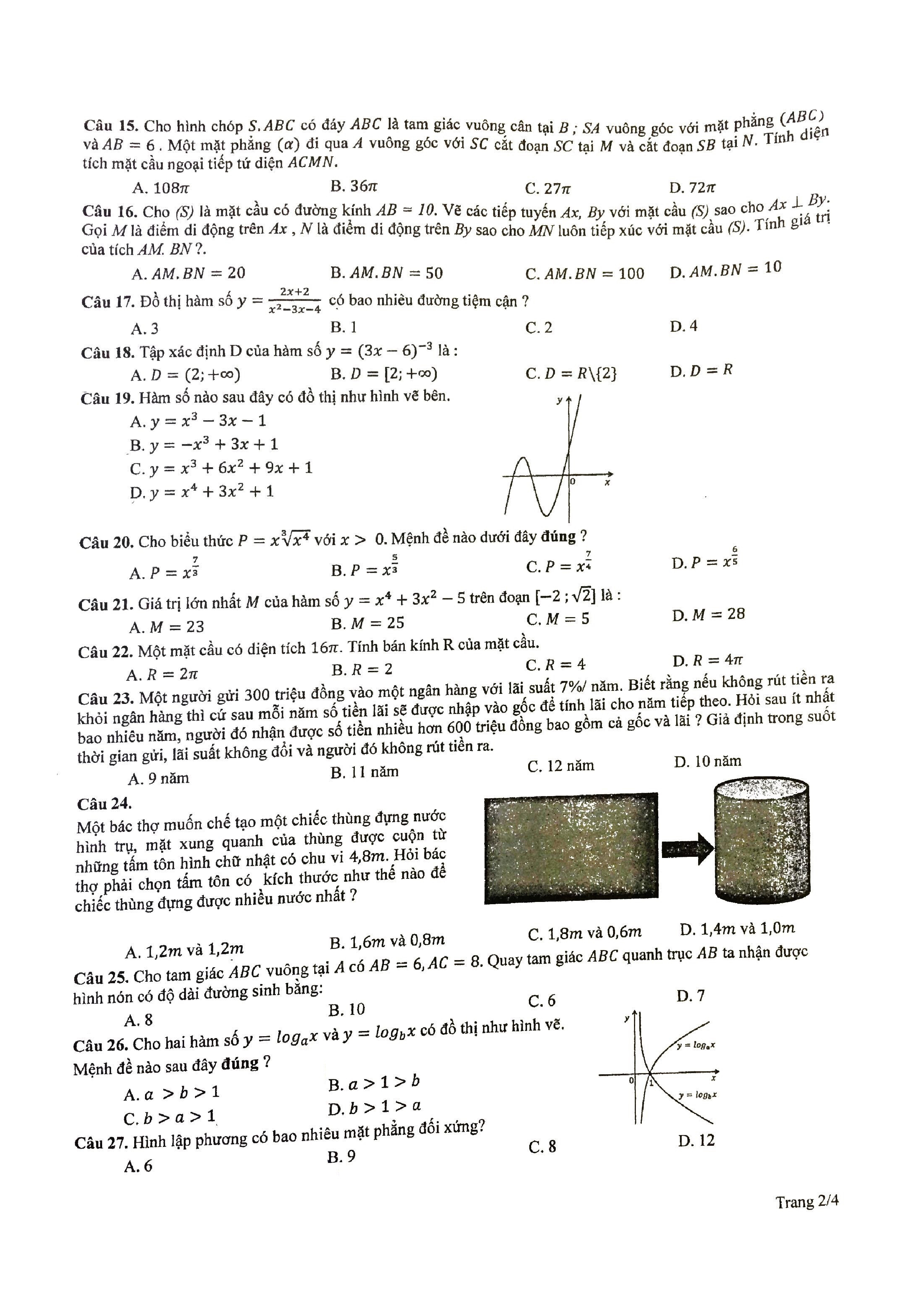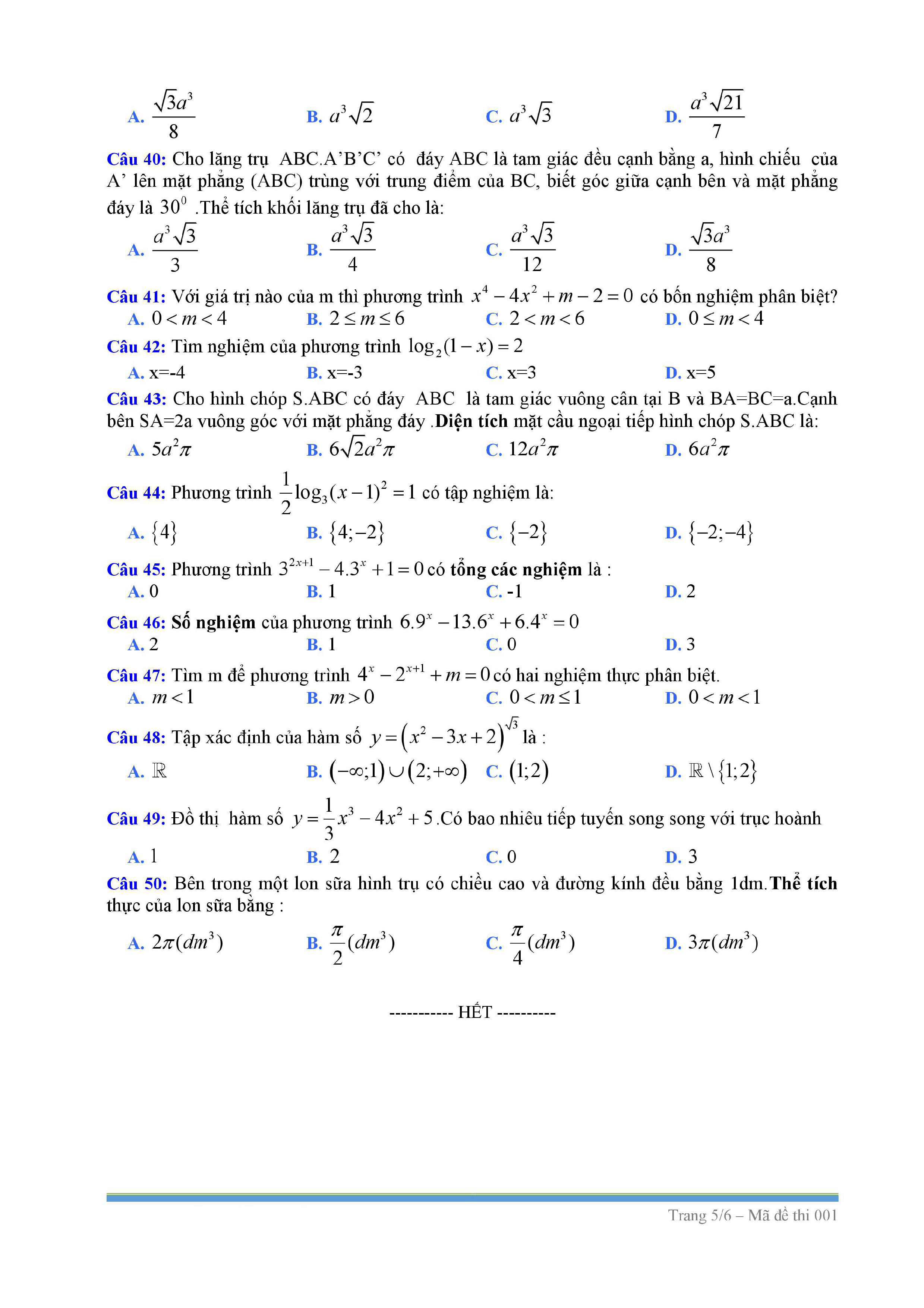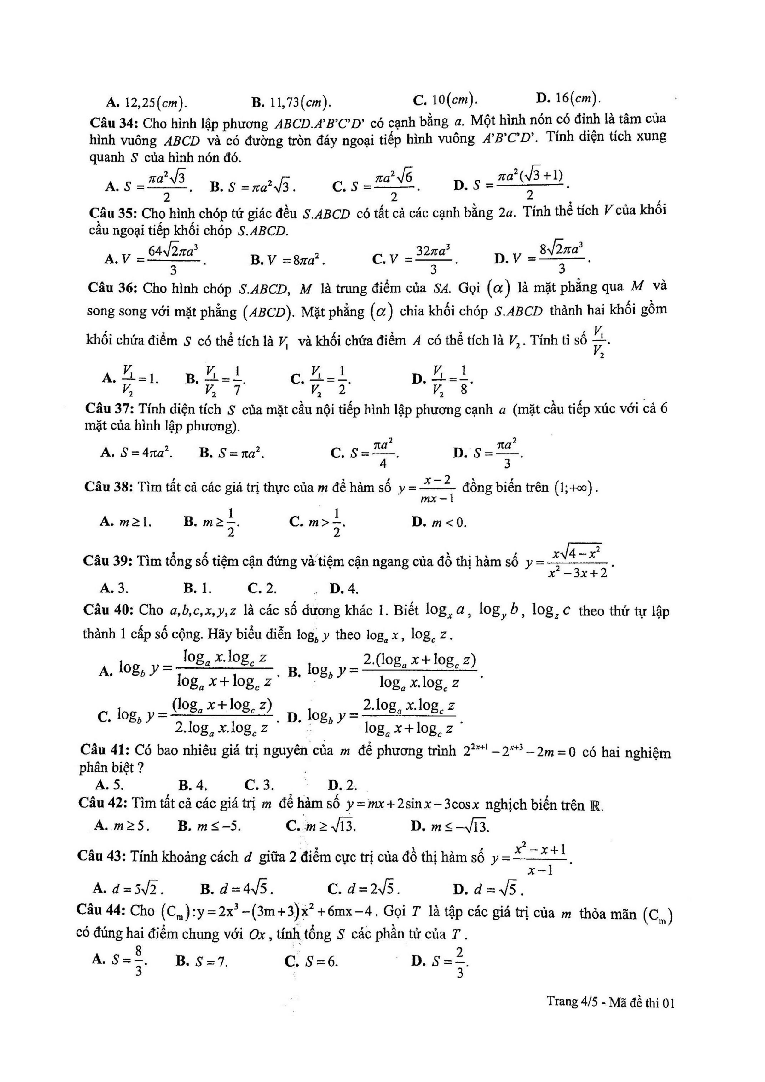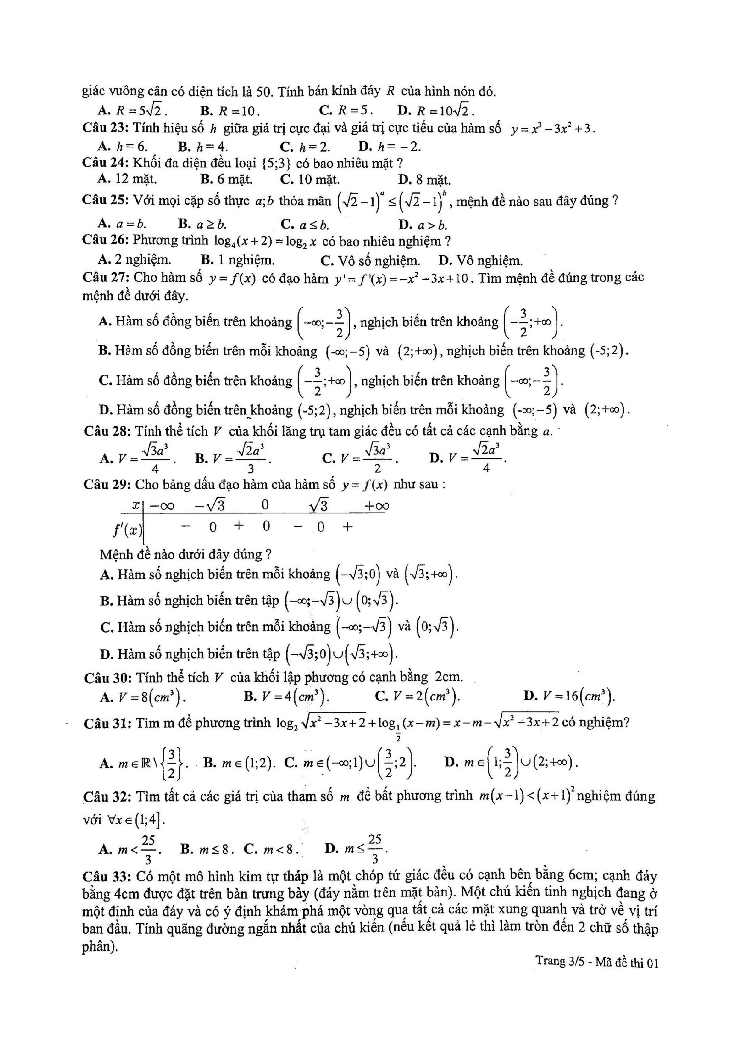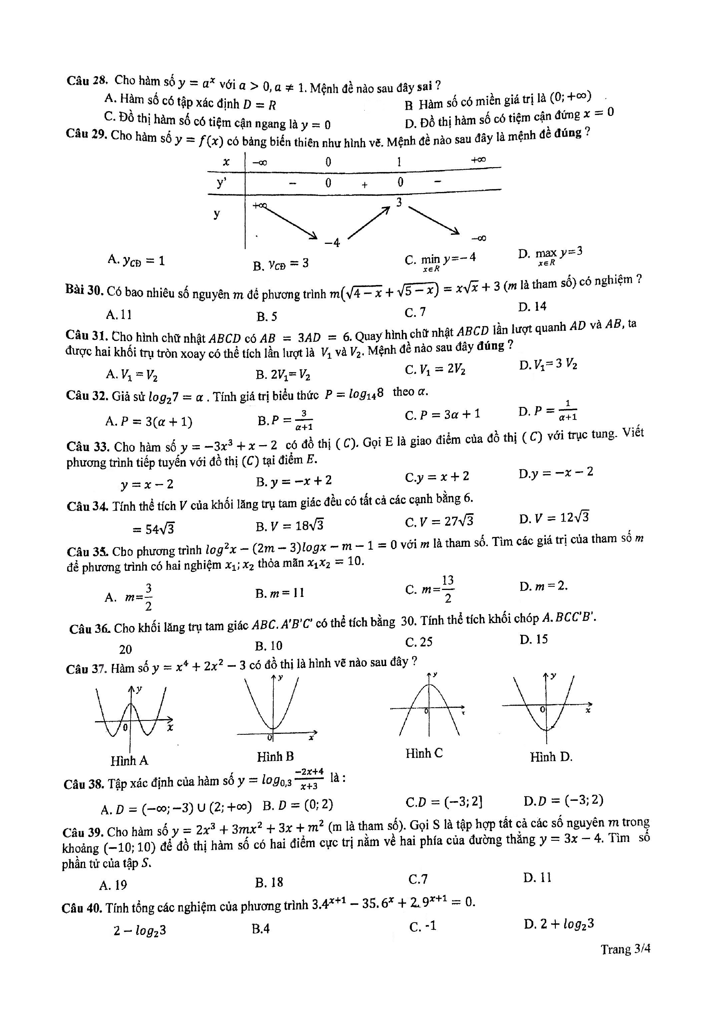 Tuyển tập đề thi HK1 môn Toán 12 (năm học 2017-2018)