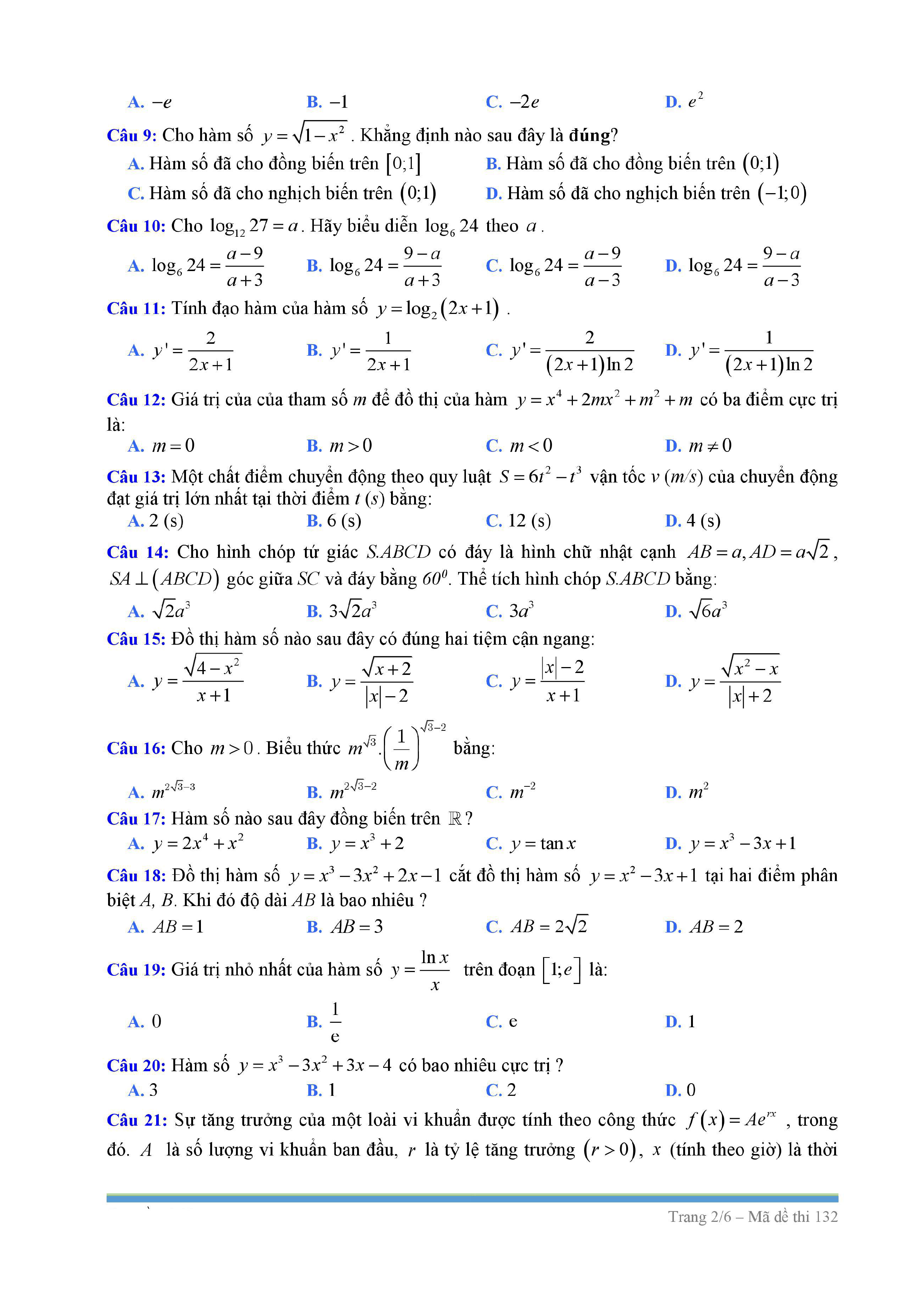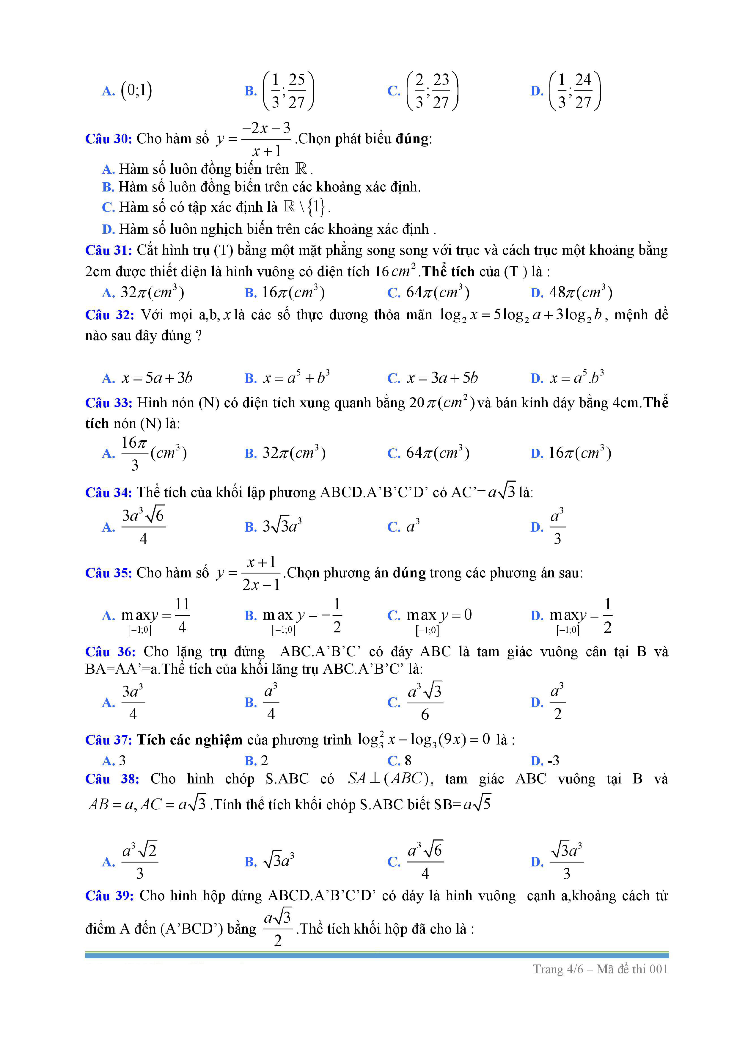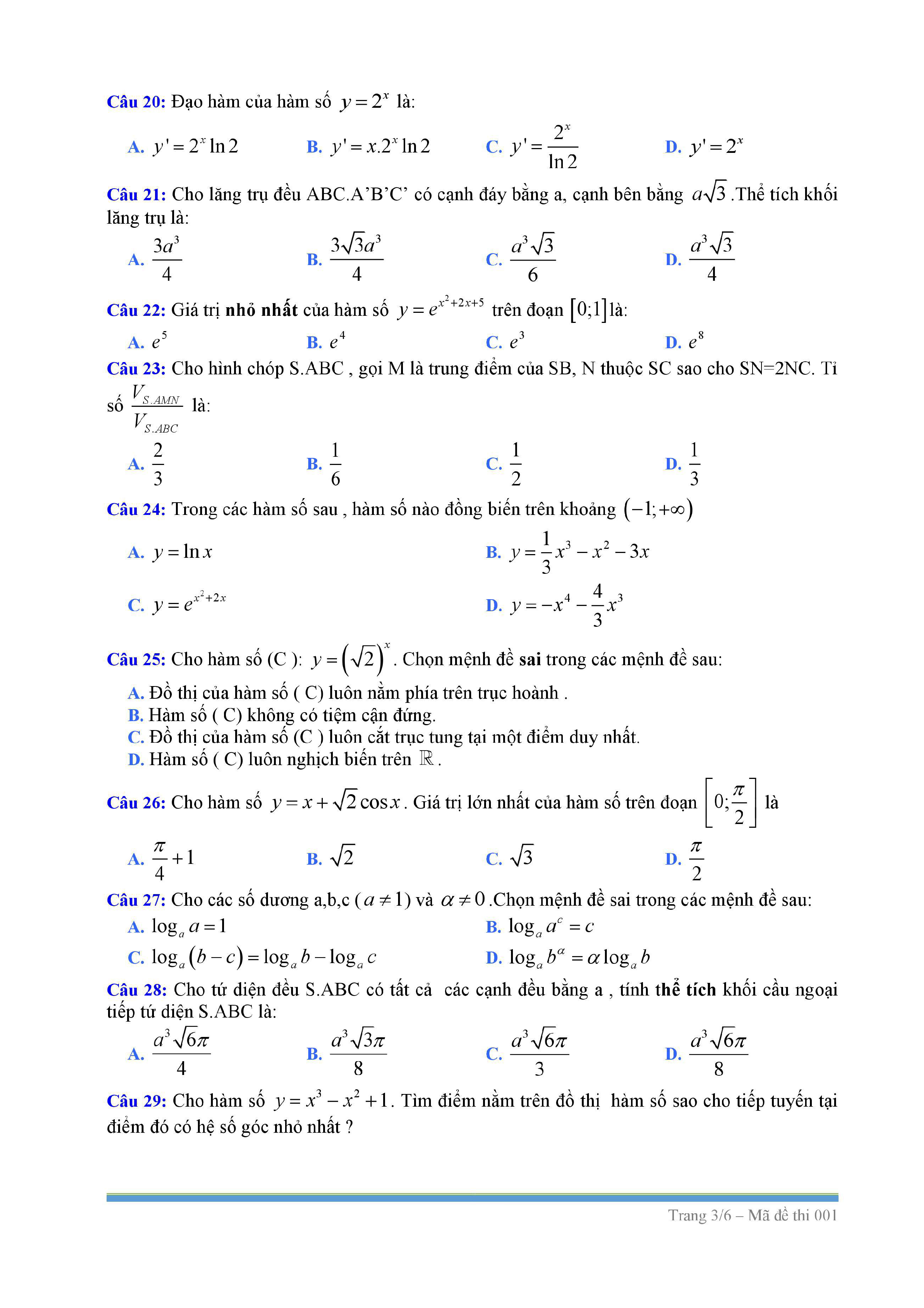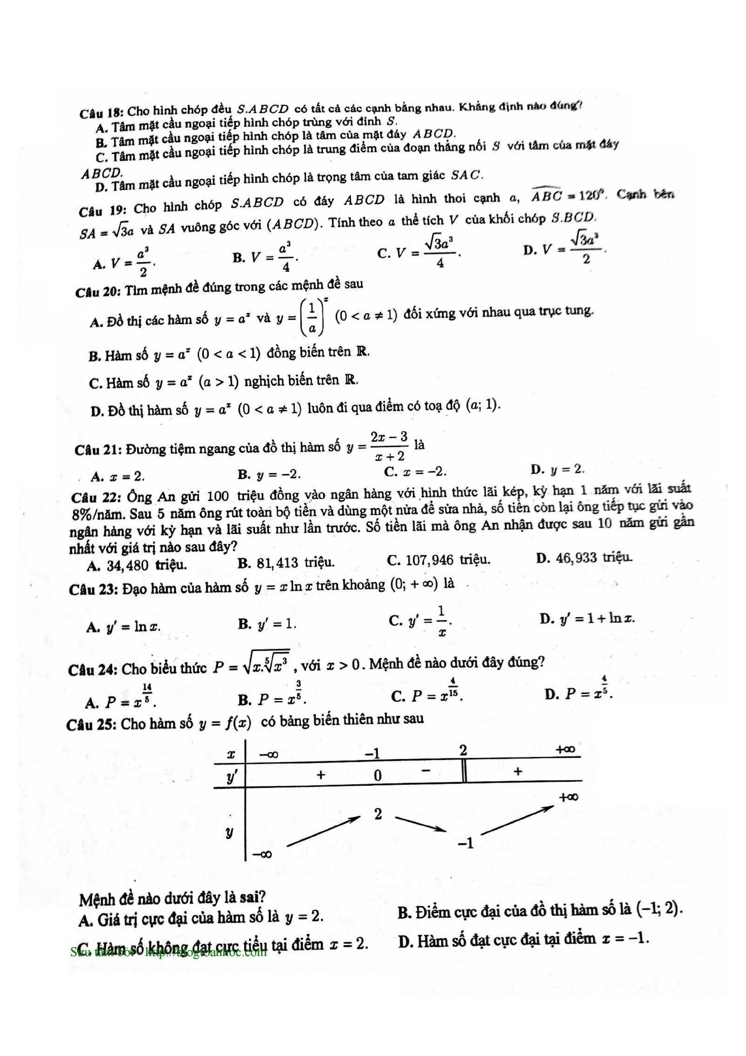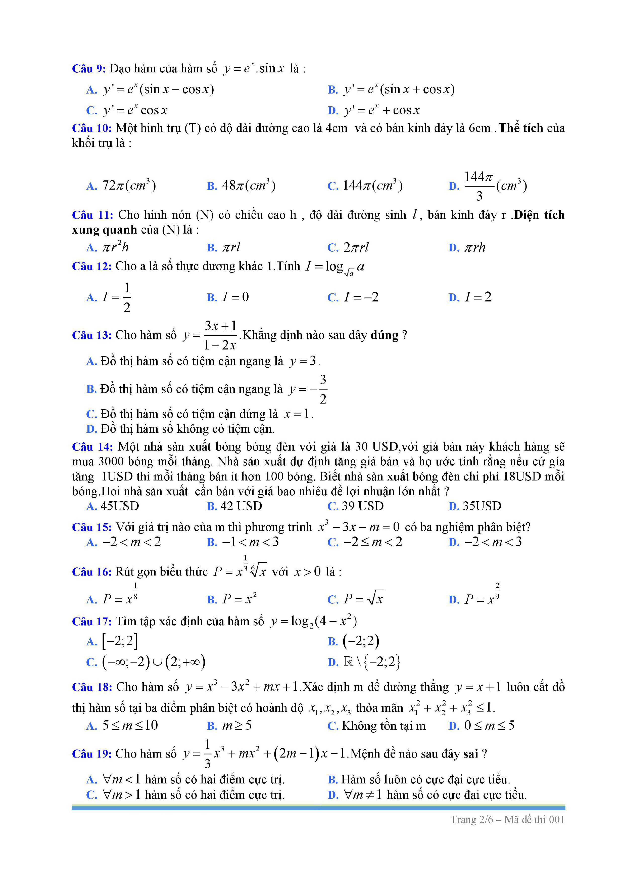 Tuyển tập đề thi HK1 môn Toán 12 (năm học 2017-2018)