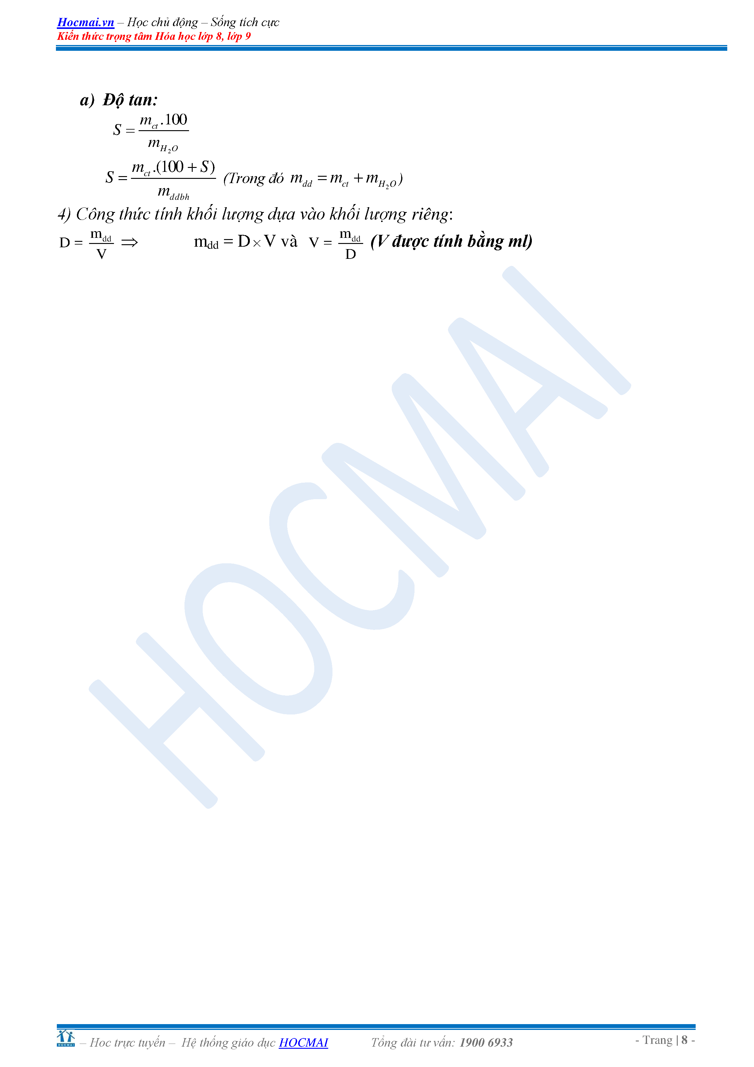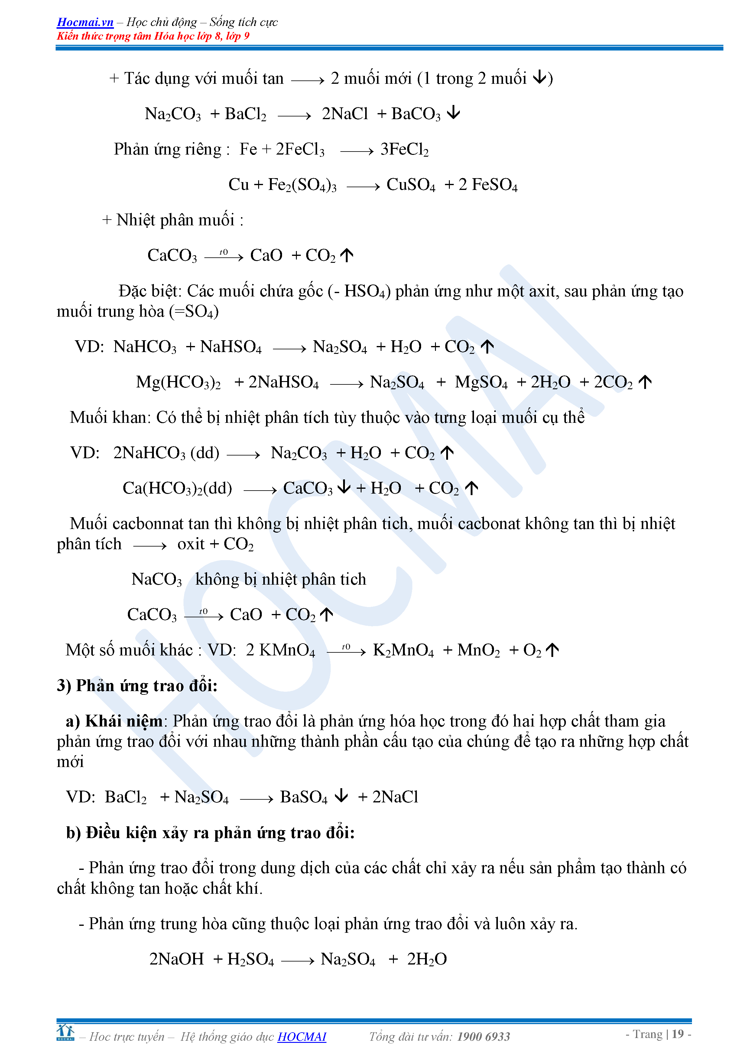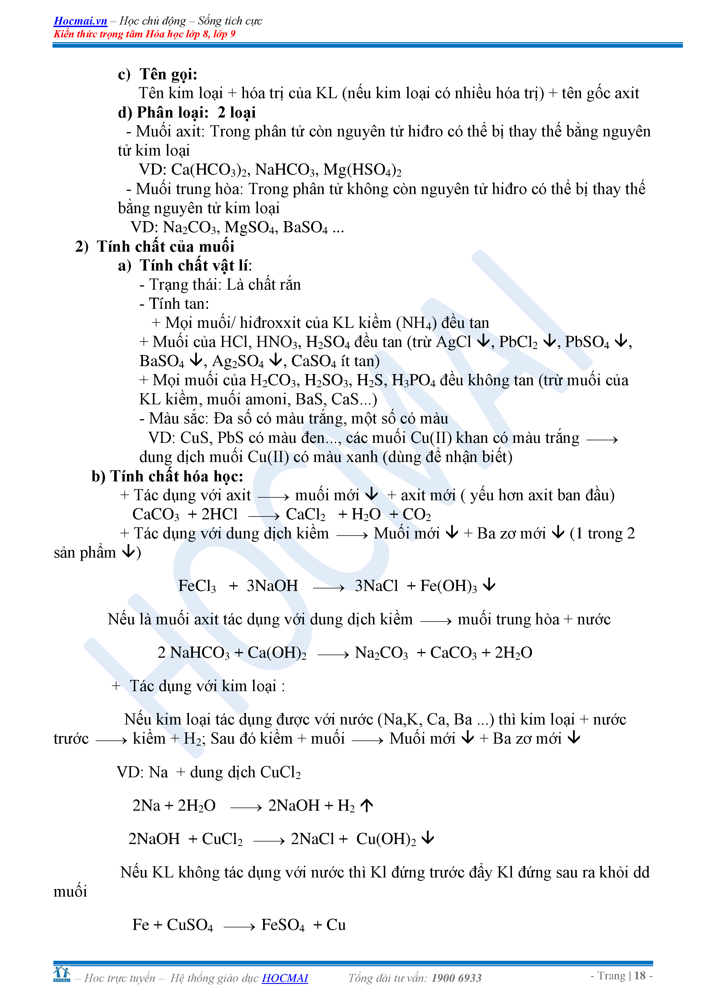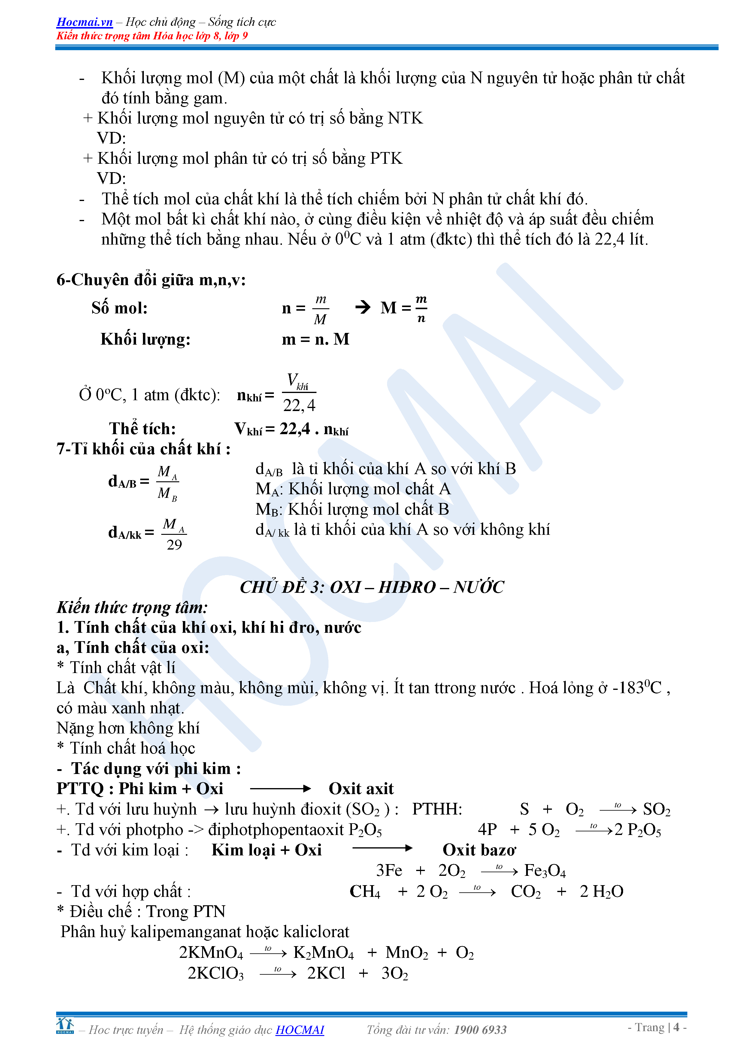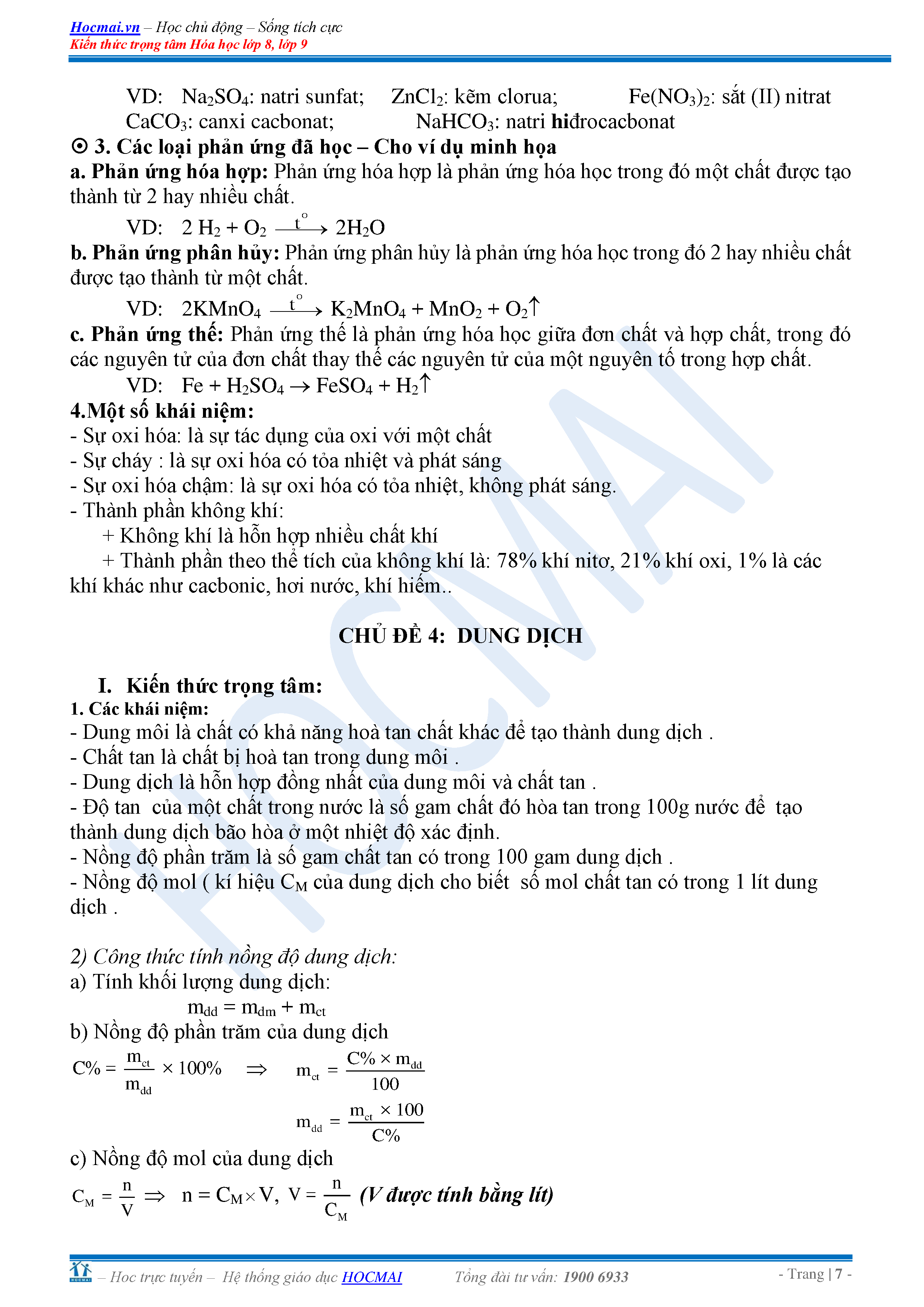KIẾN THỨC TRỌNG TÂM HÓA LỚP 8 VÀ 9
