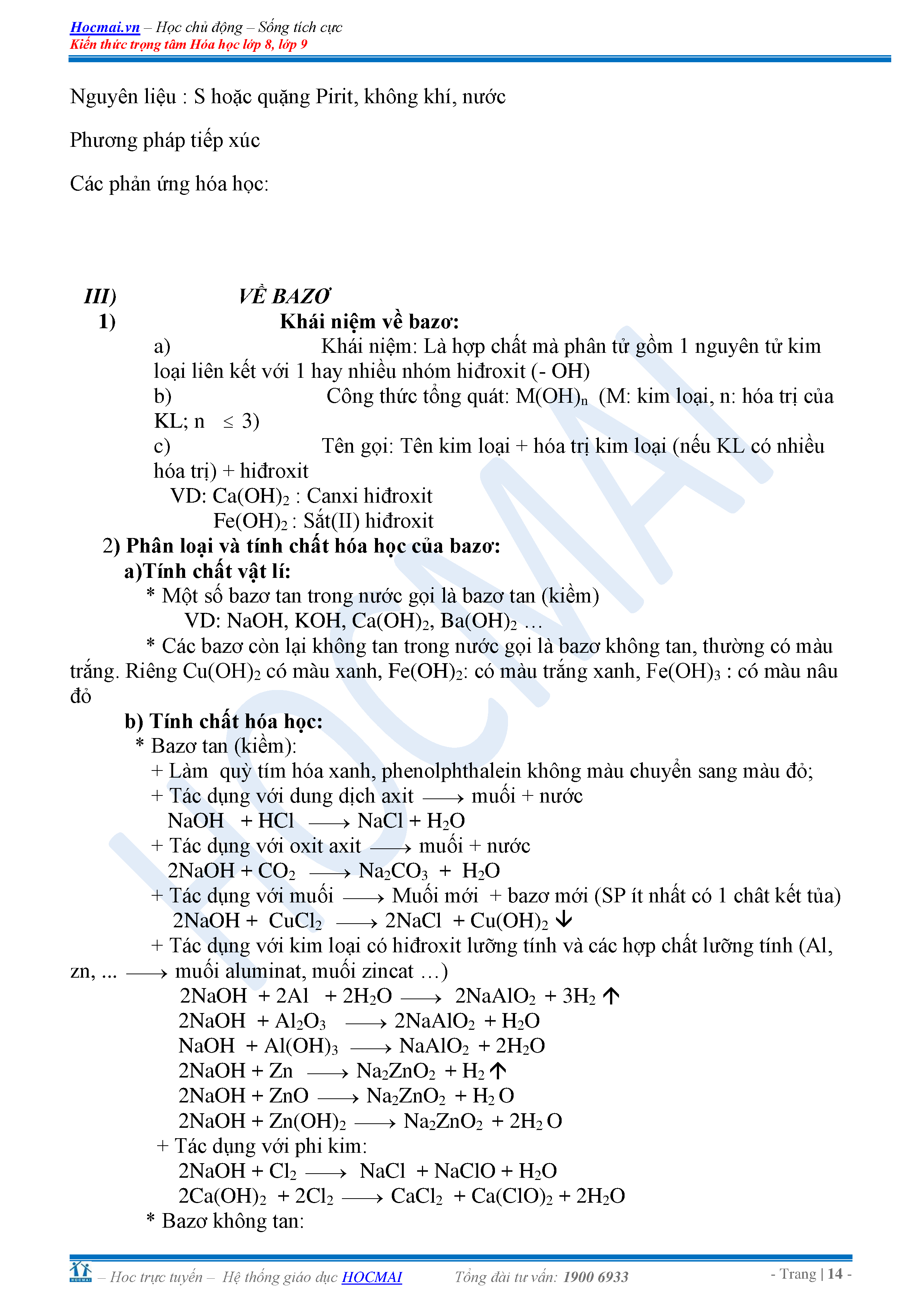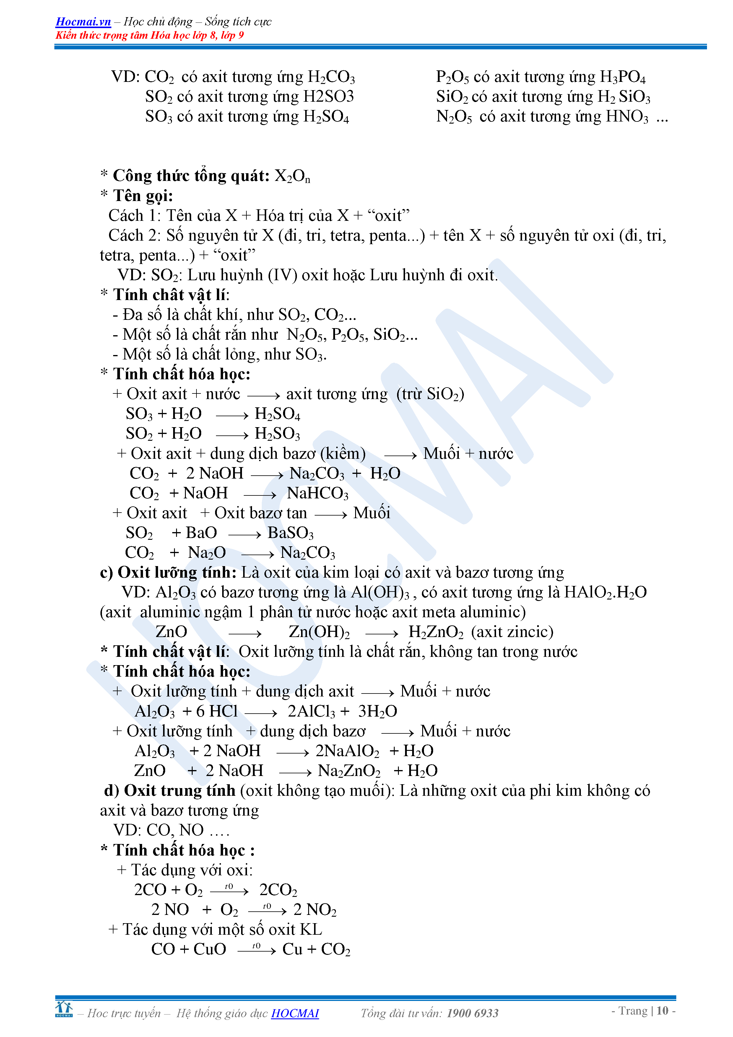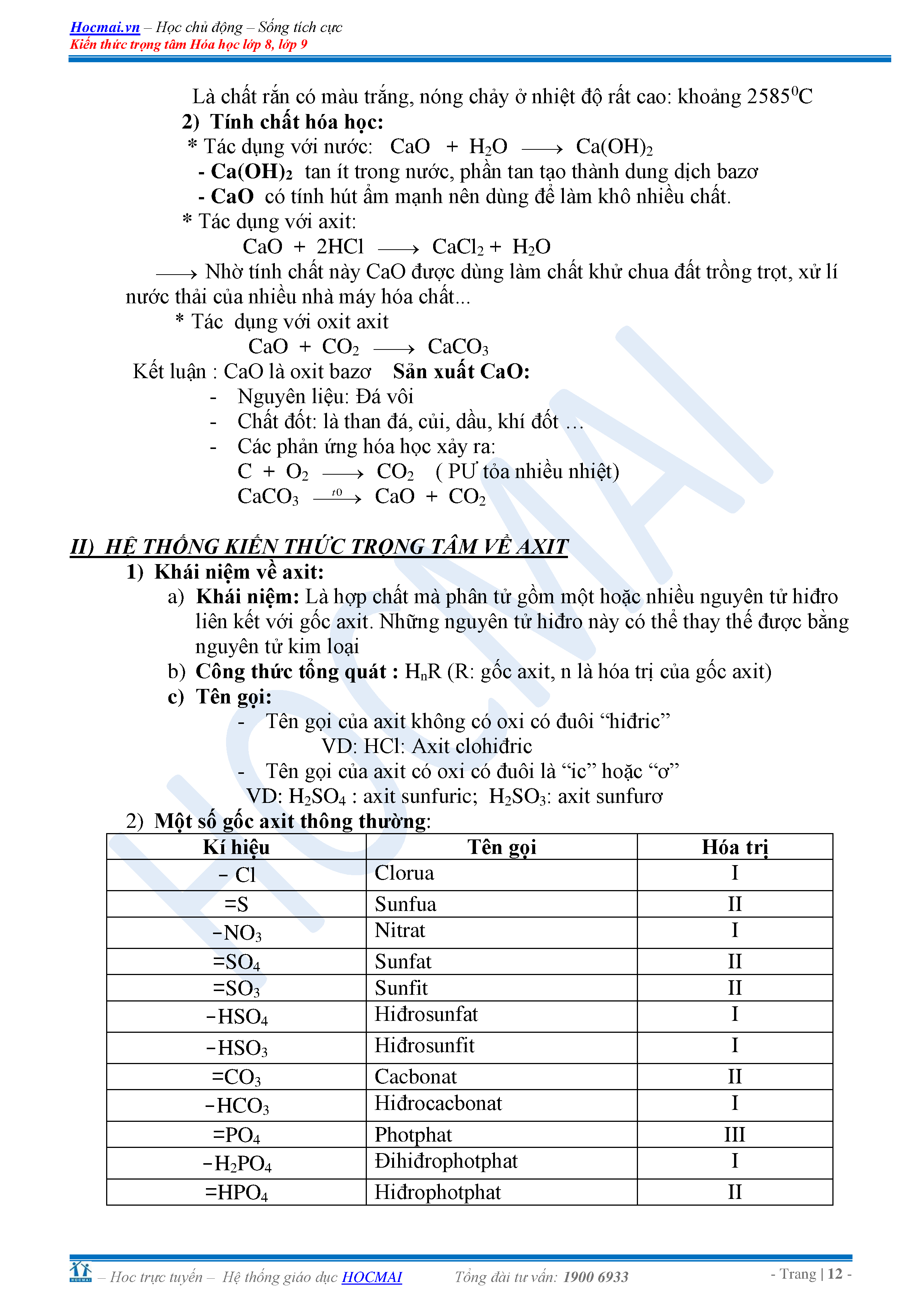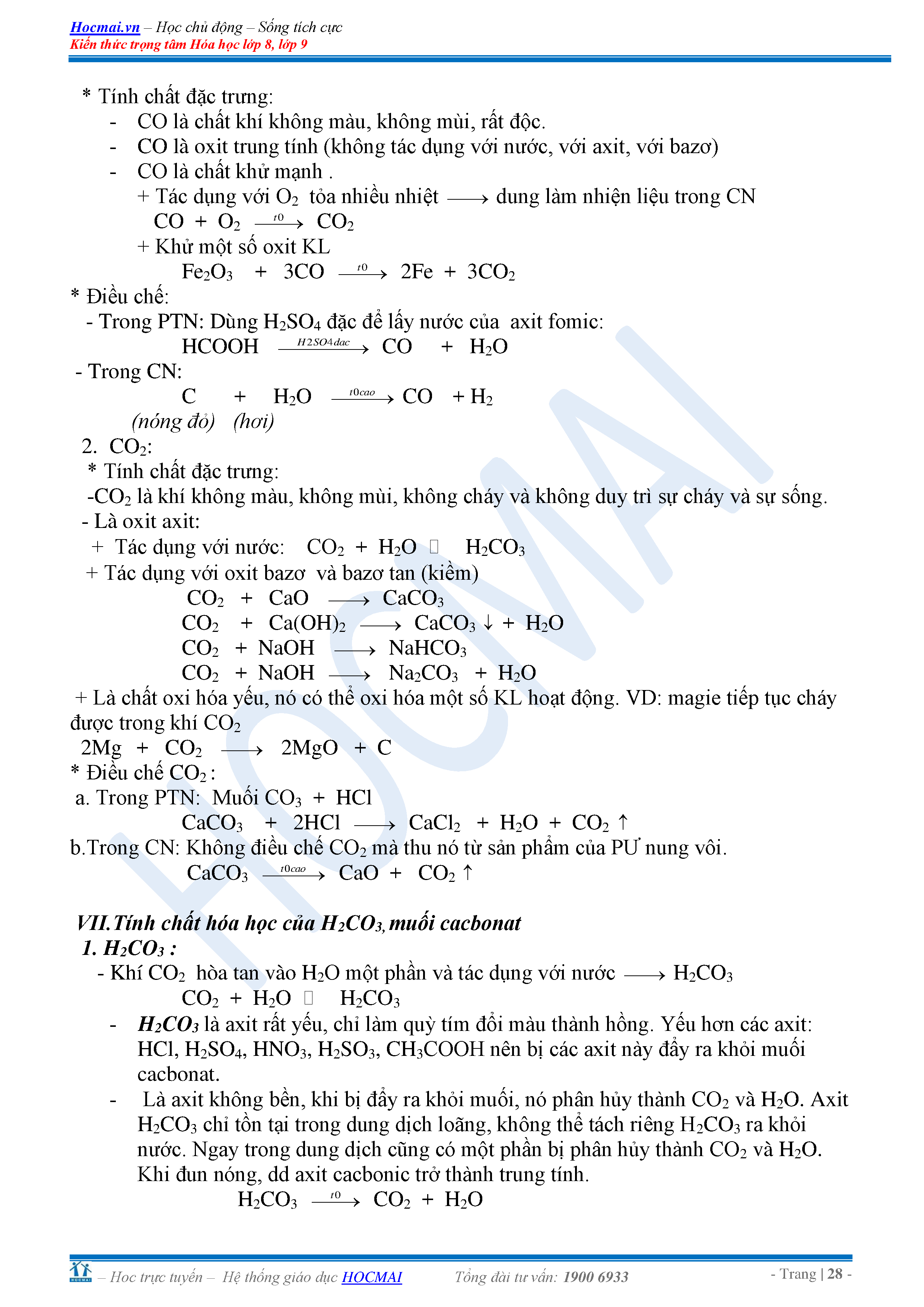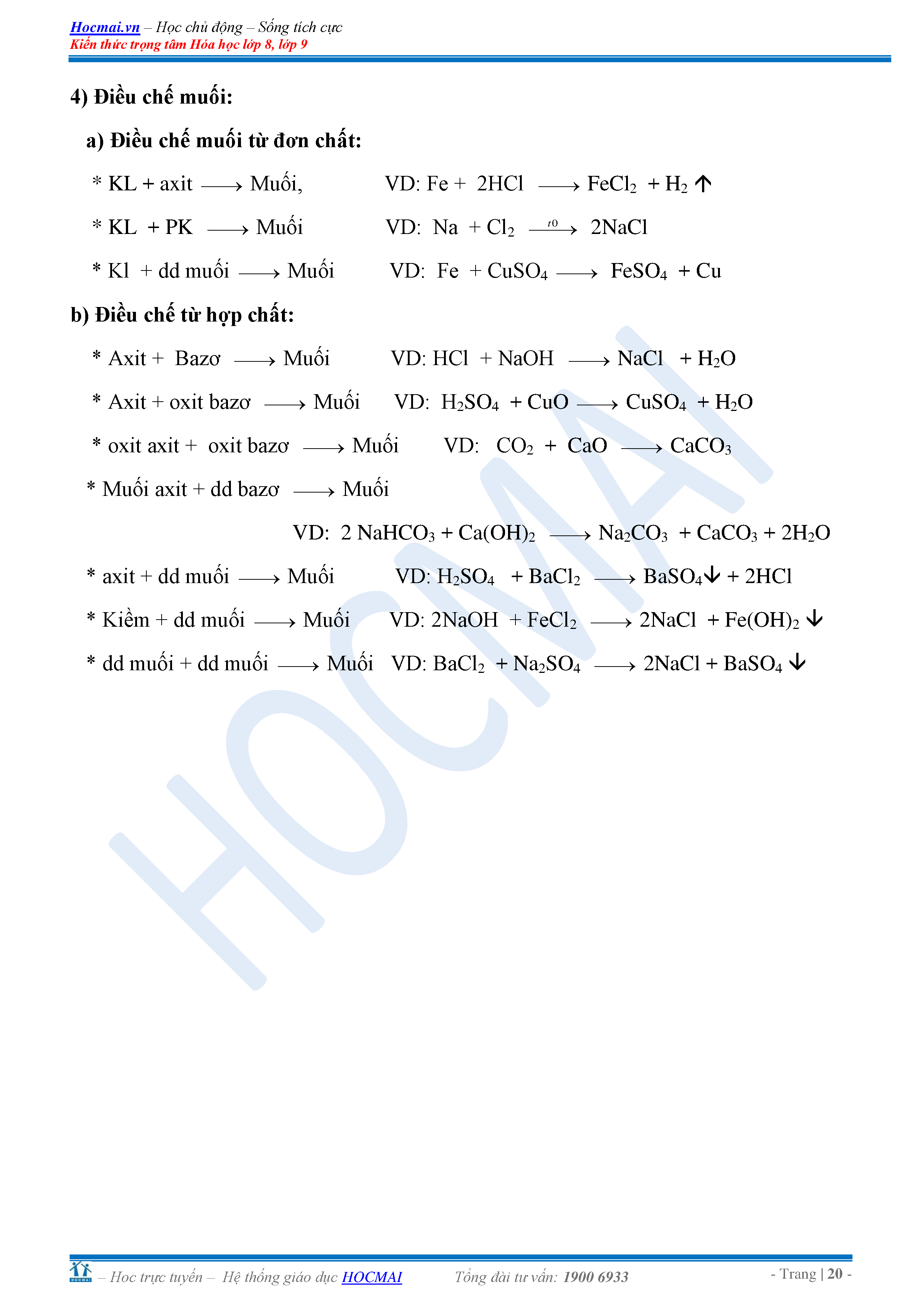 KIẾN THỨC TRỌNG TÂM HÓA LỚP 8 VÀ 9