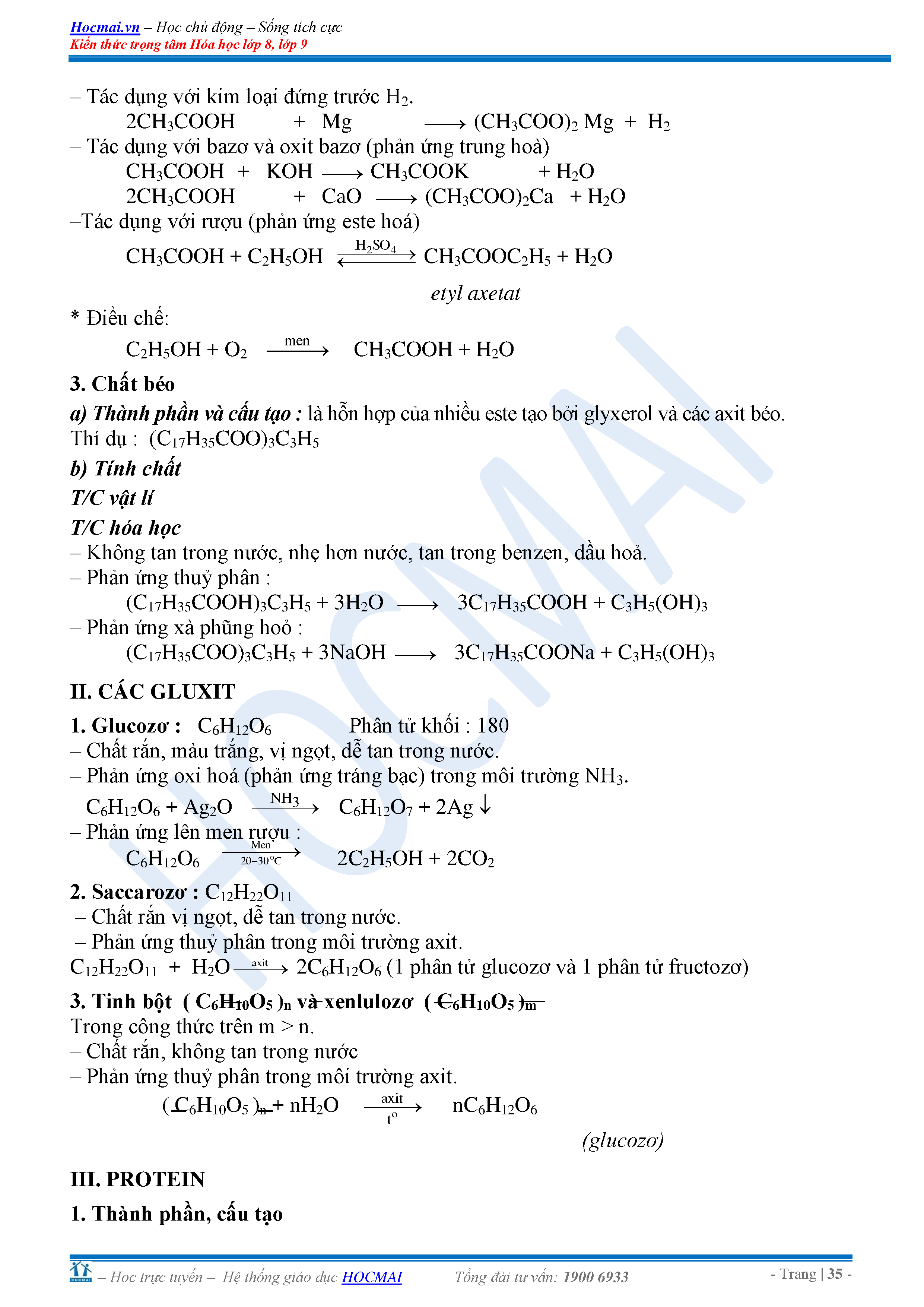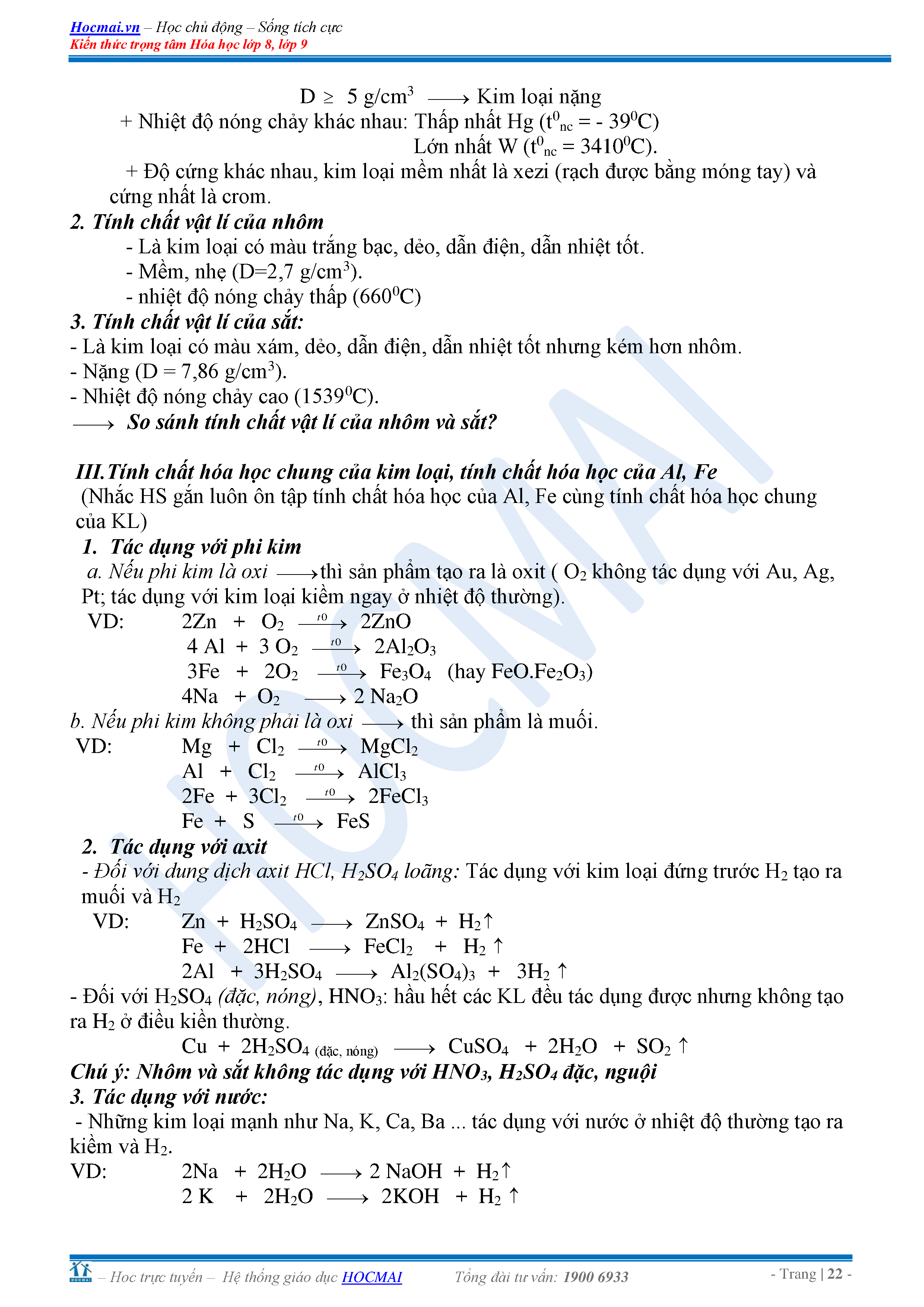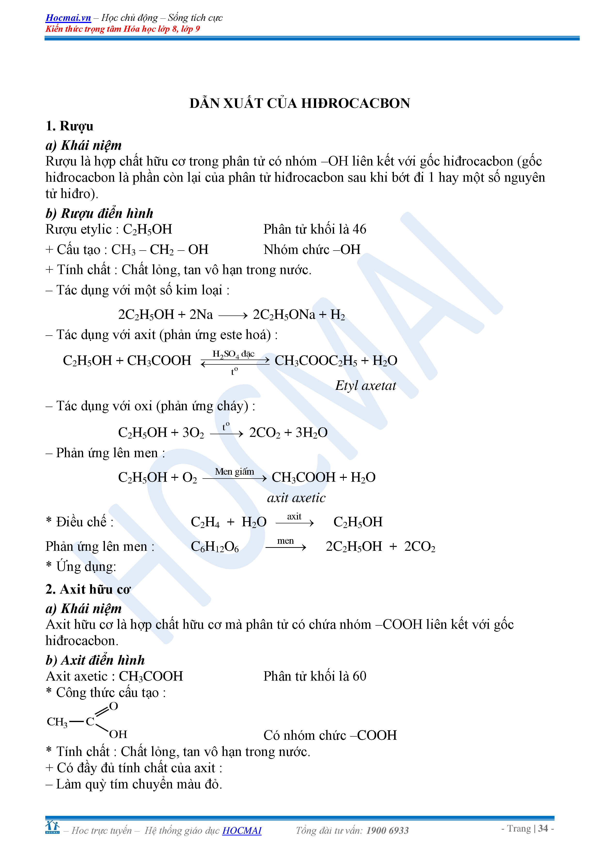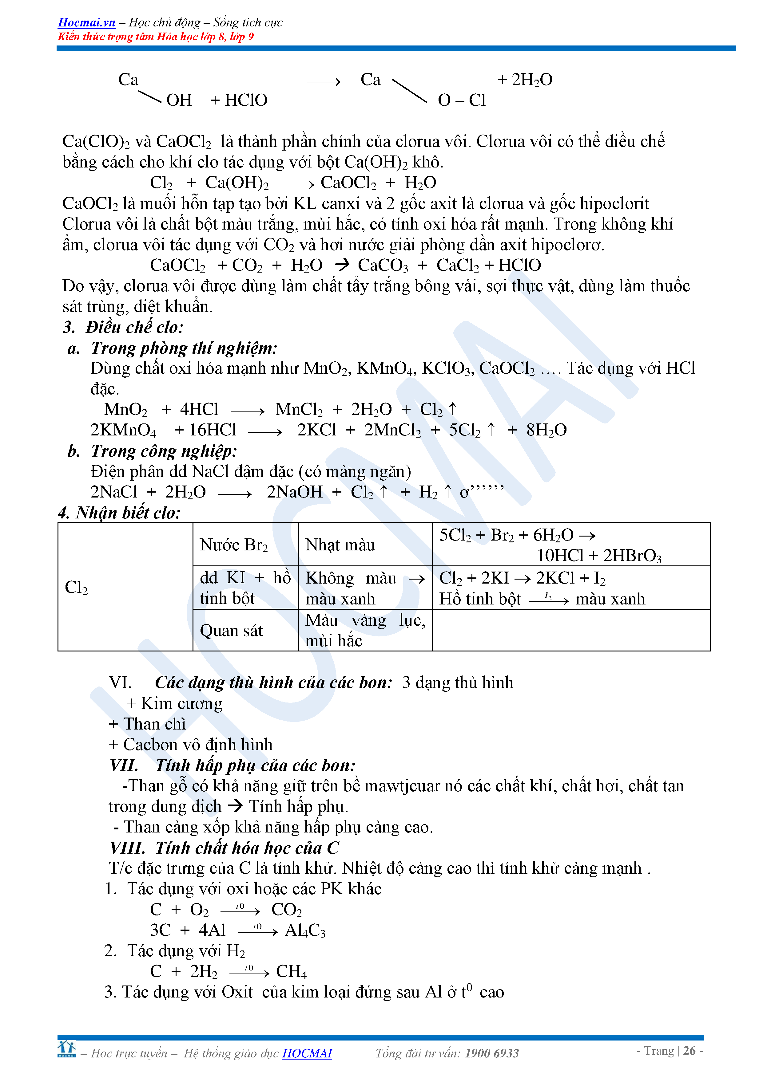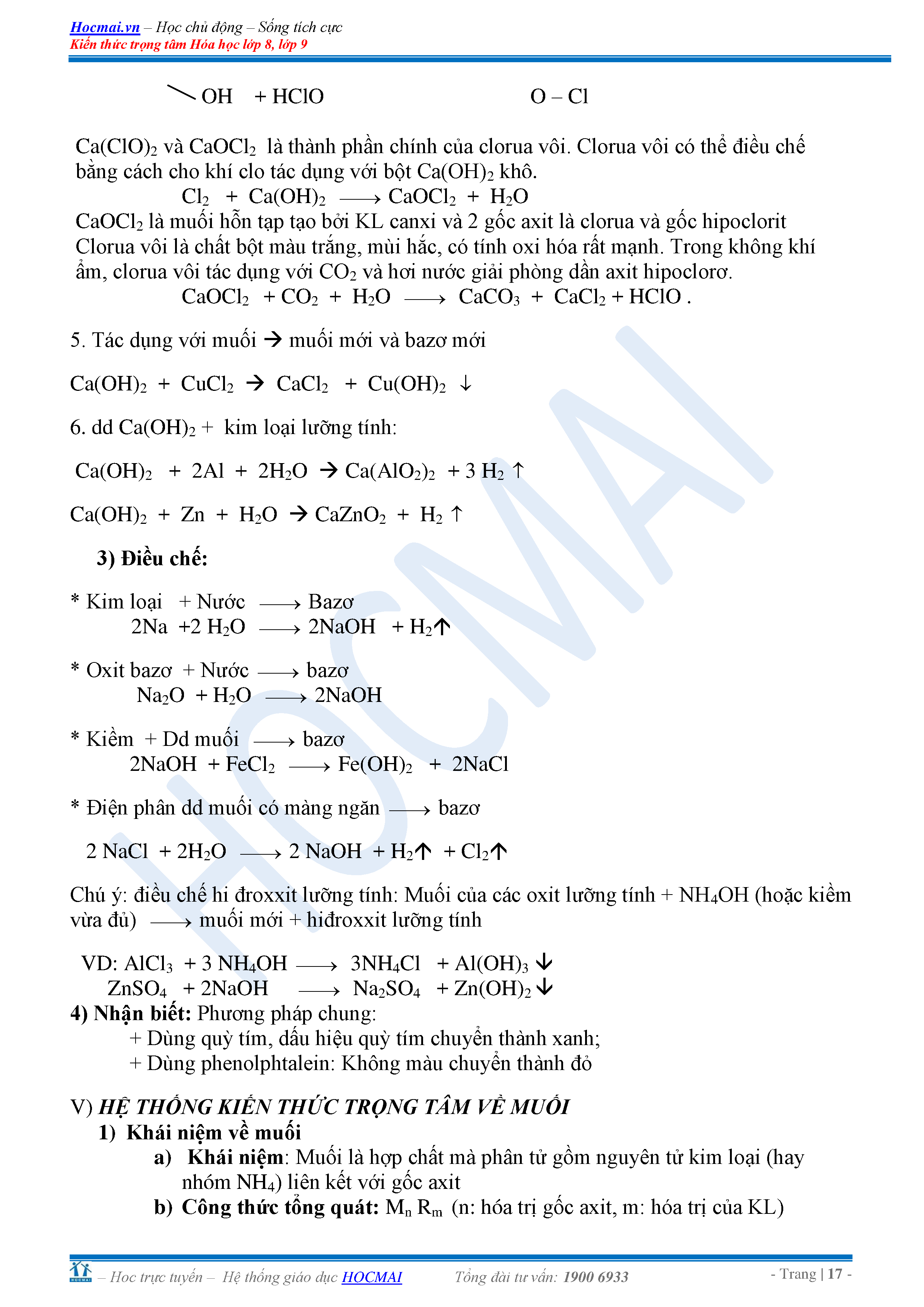 KIẾN THỨC TRỌNG TÂM HÓA LỚP 8 VÀ 9