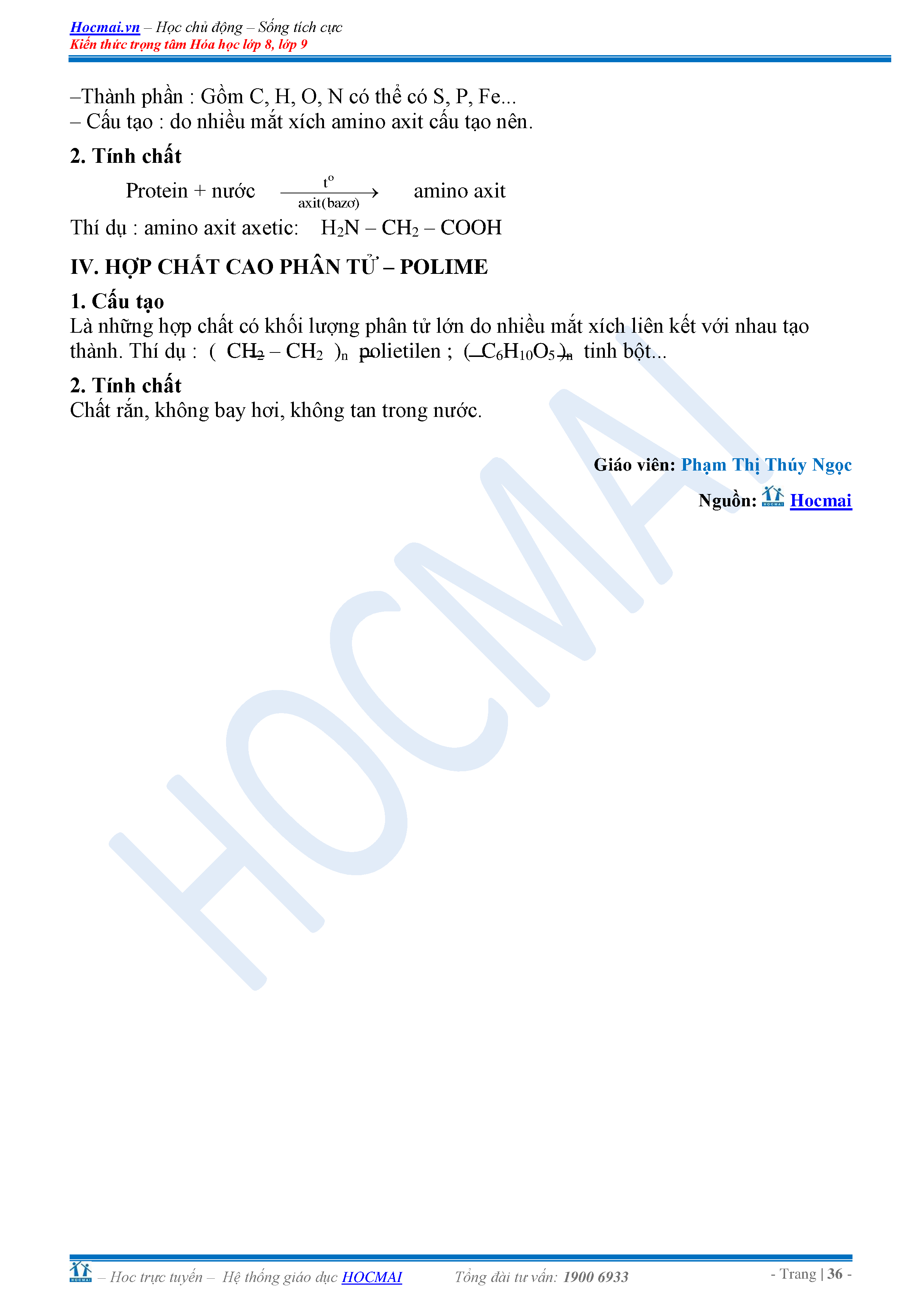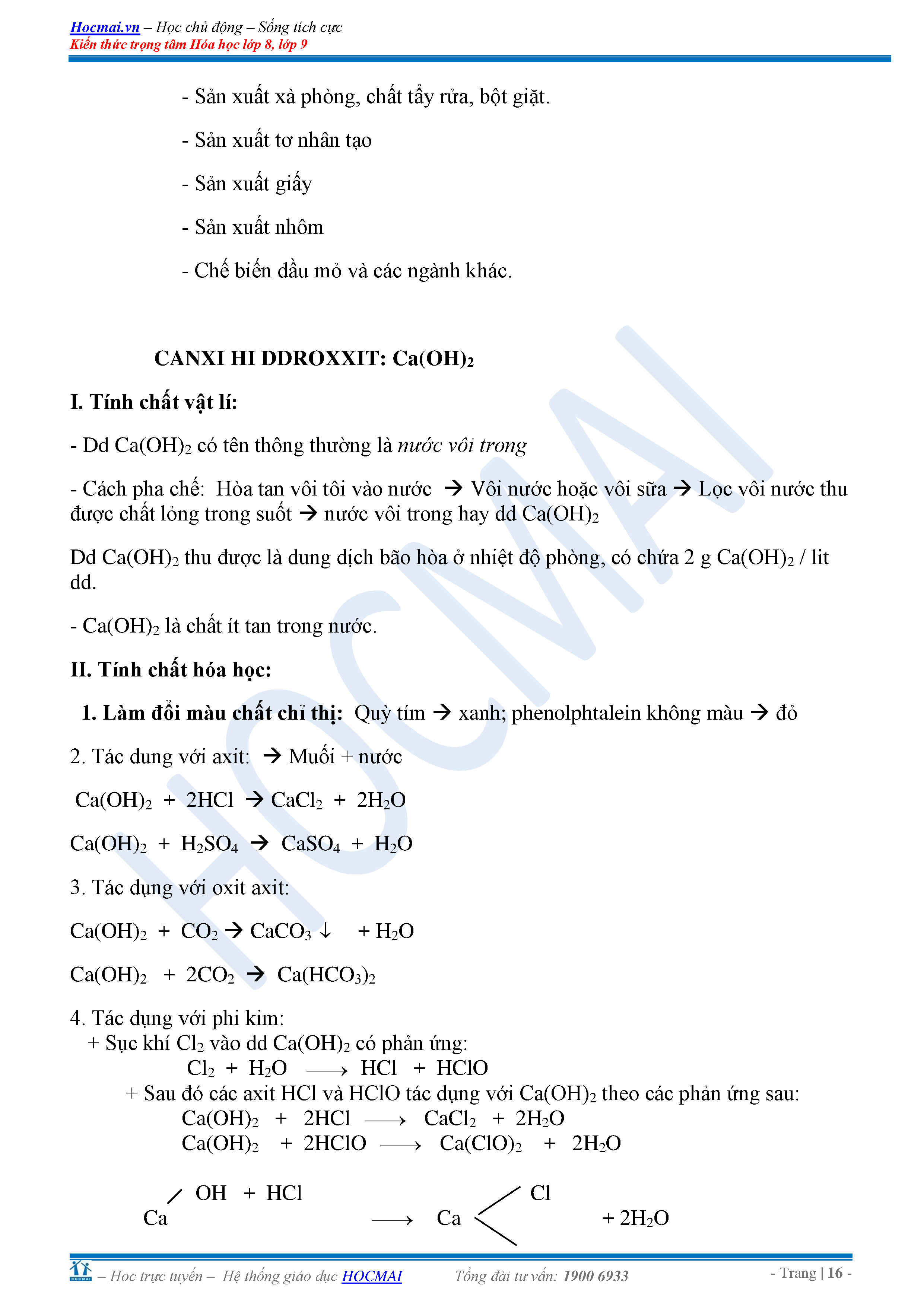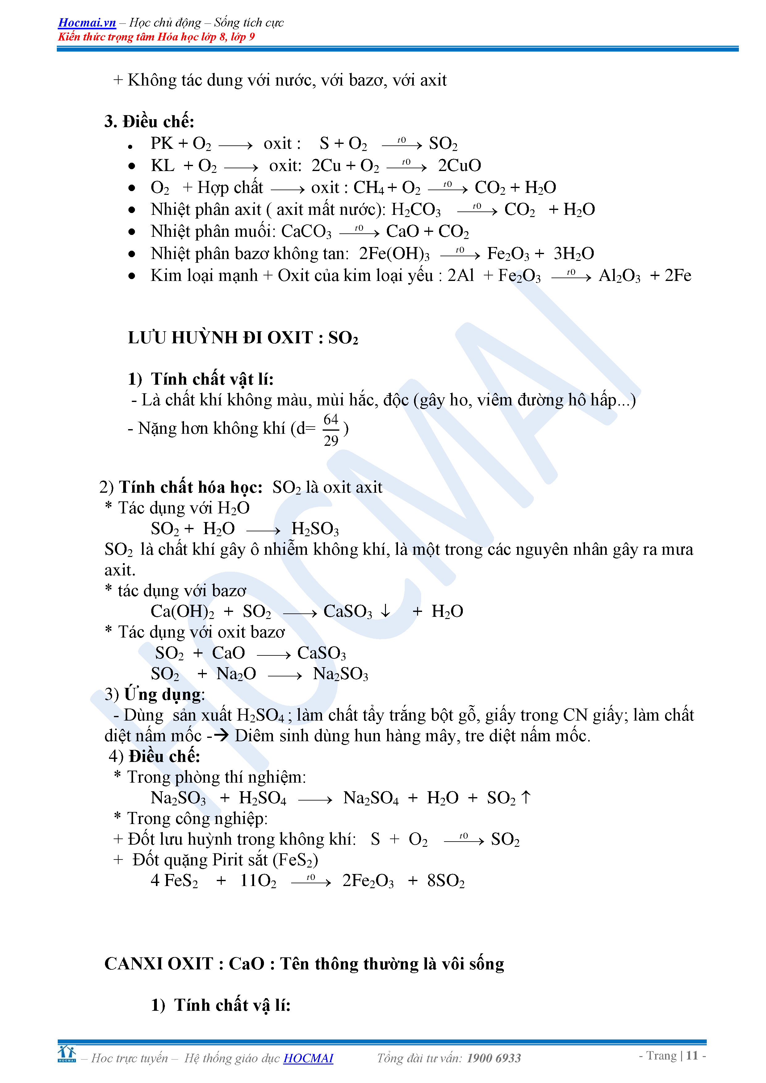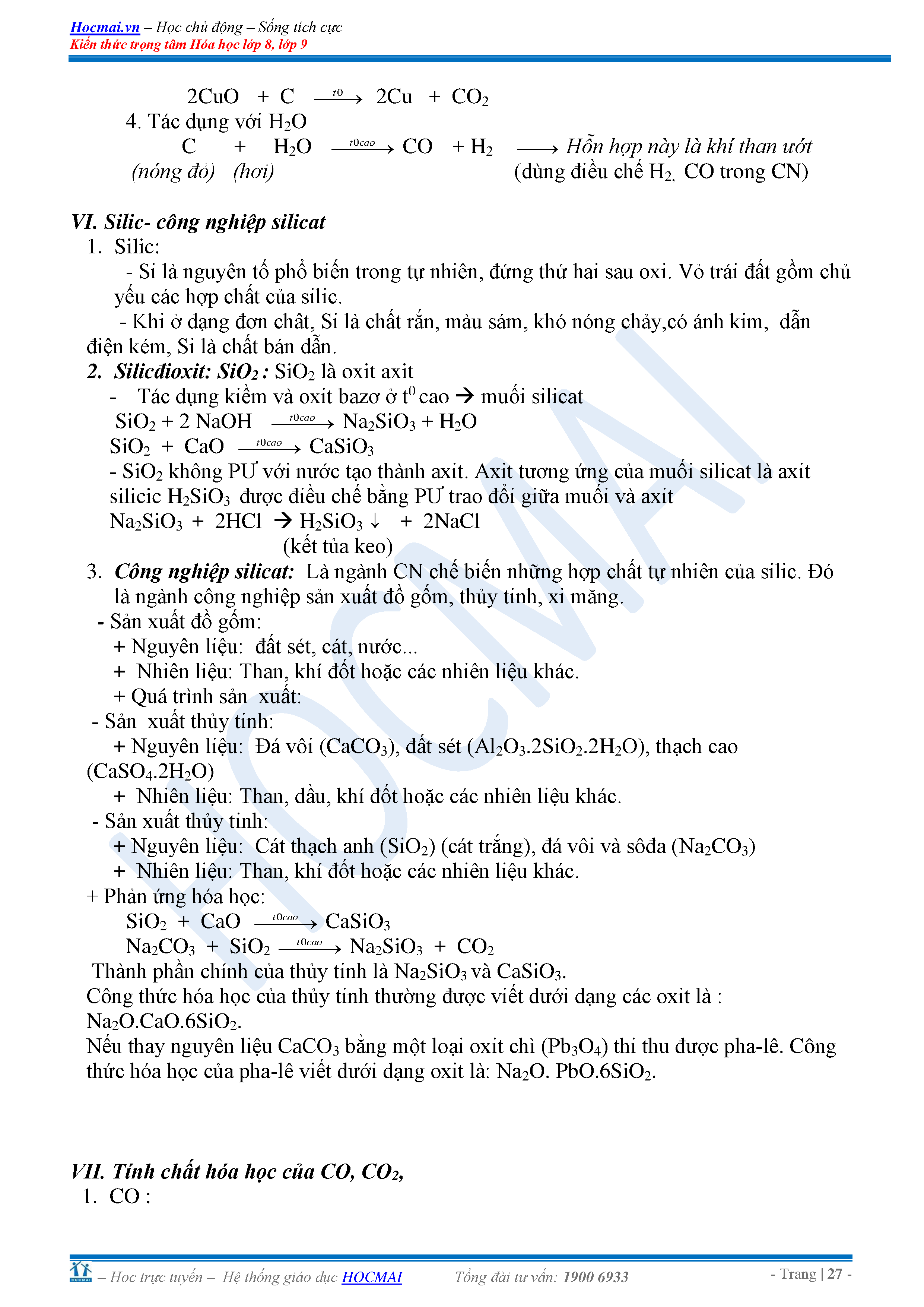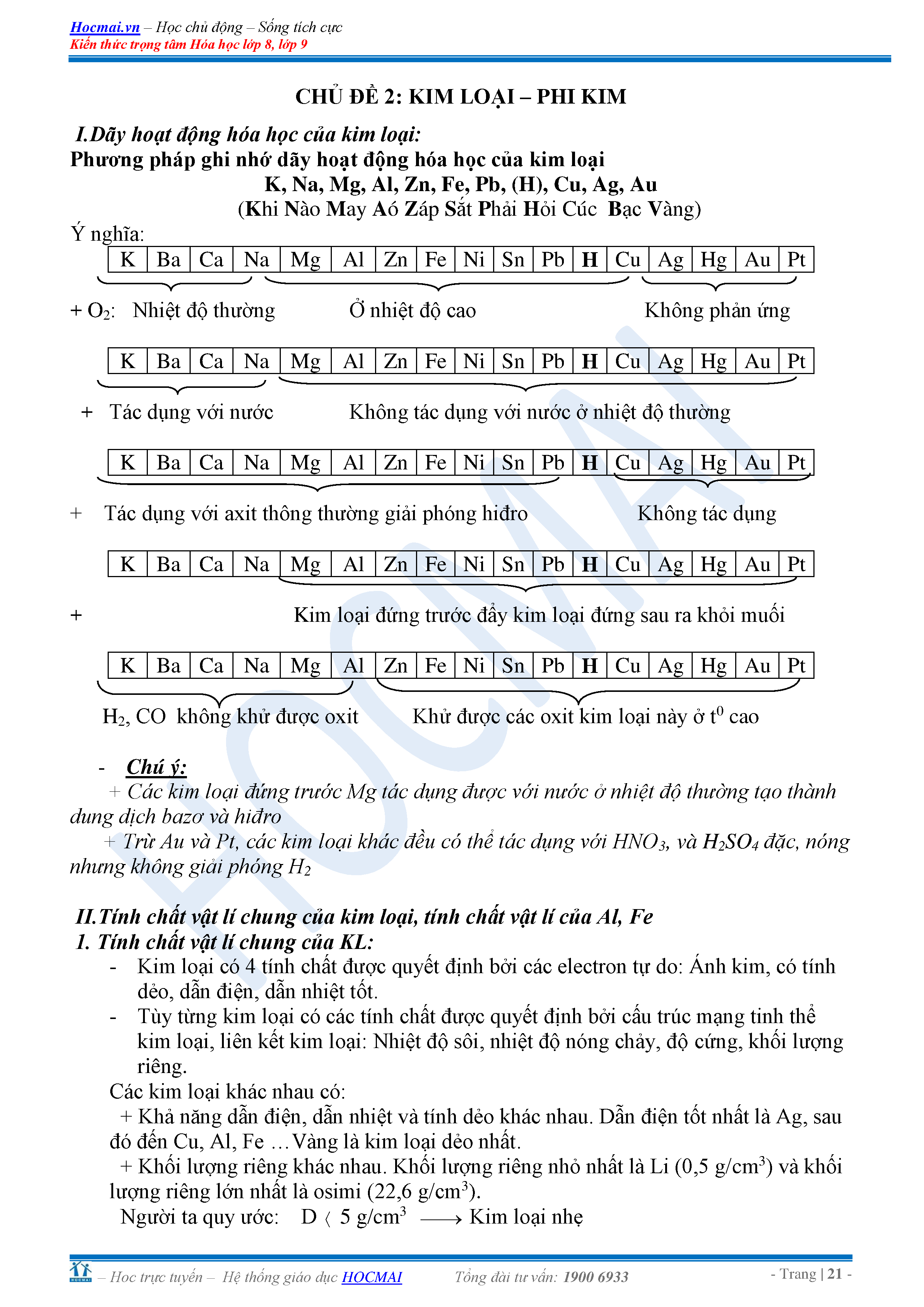 KIẾN THỨC TRỌNG TÂM HÓA LỚP 8 VÀ 9