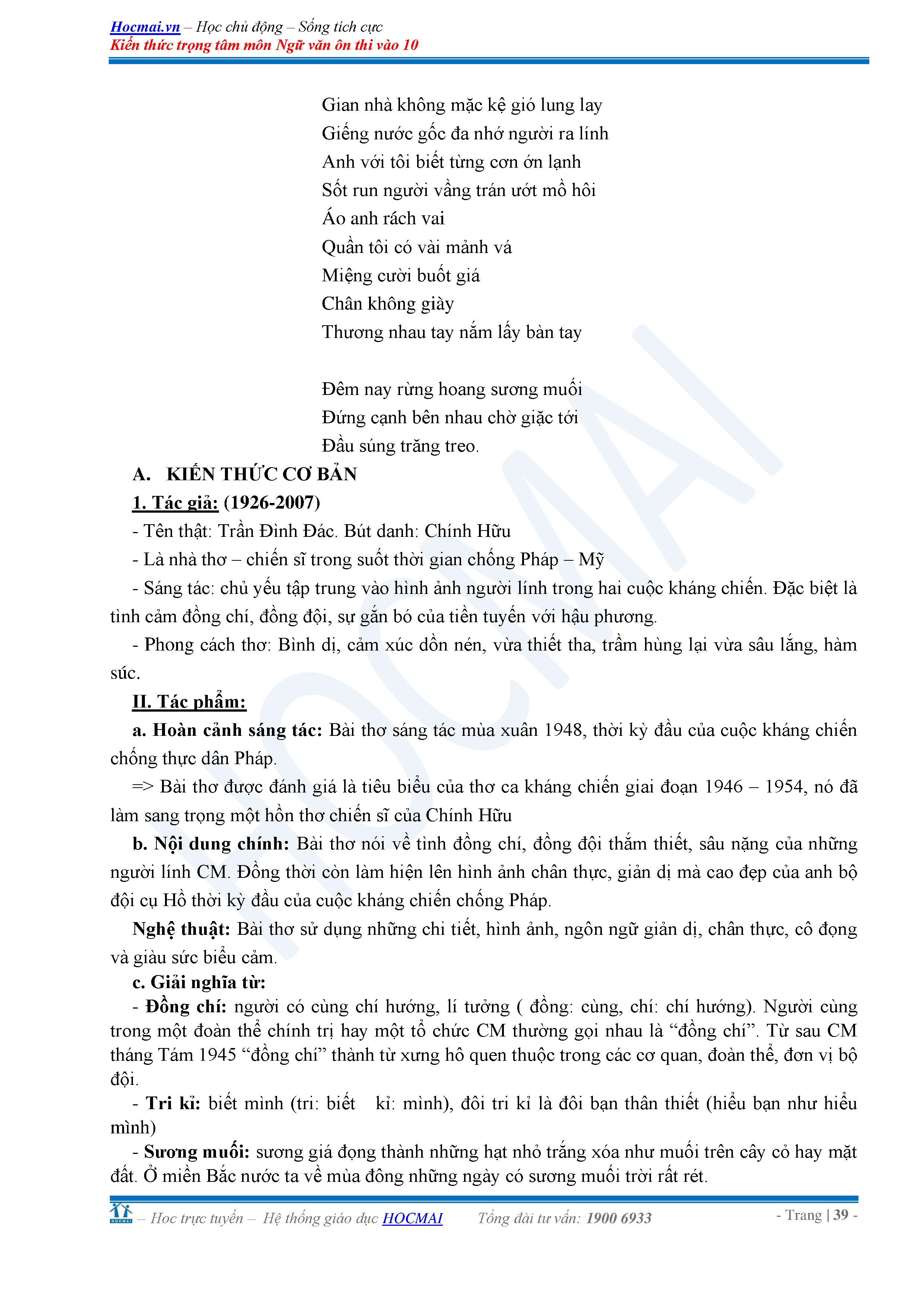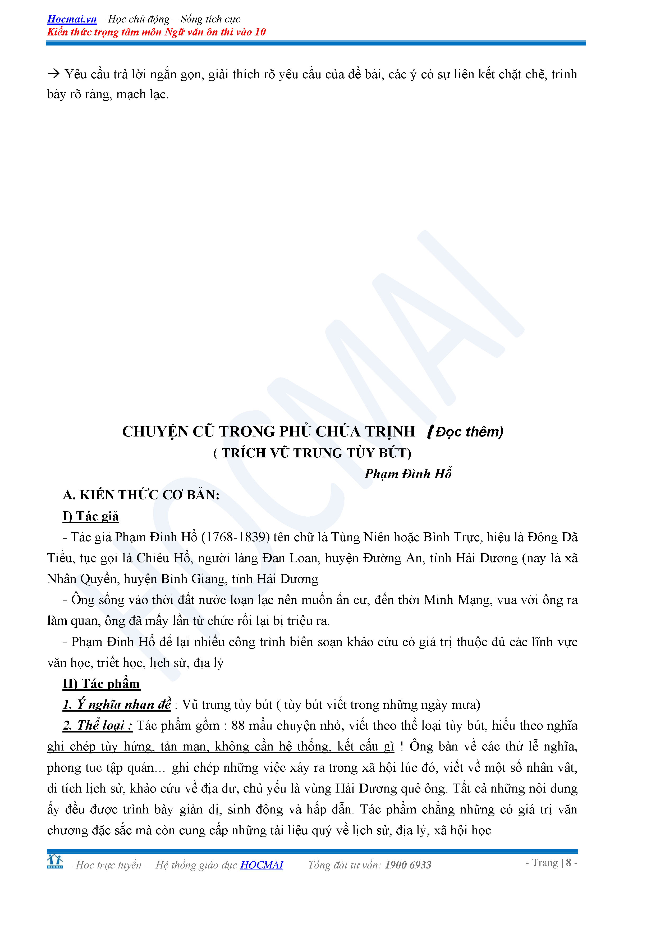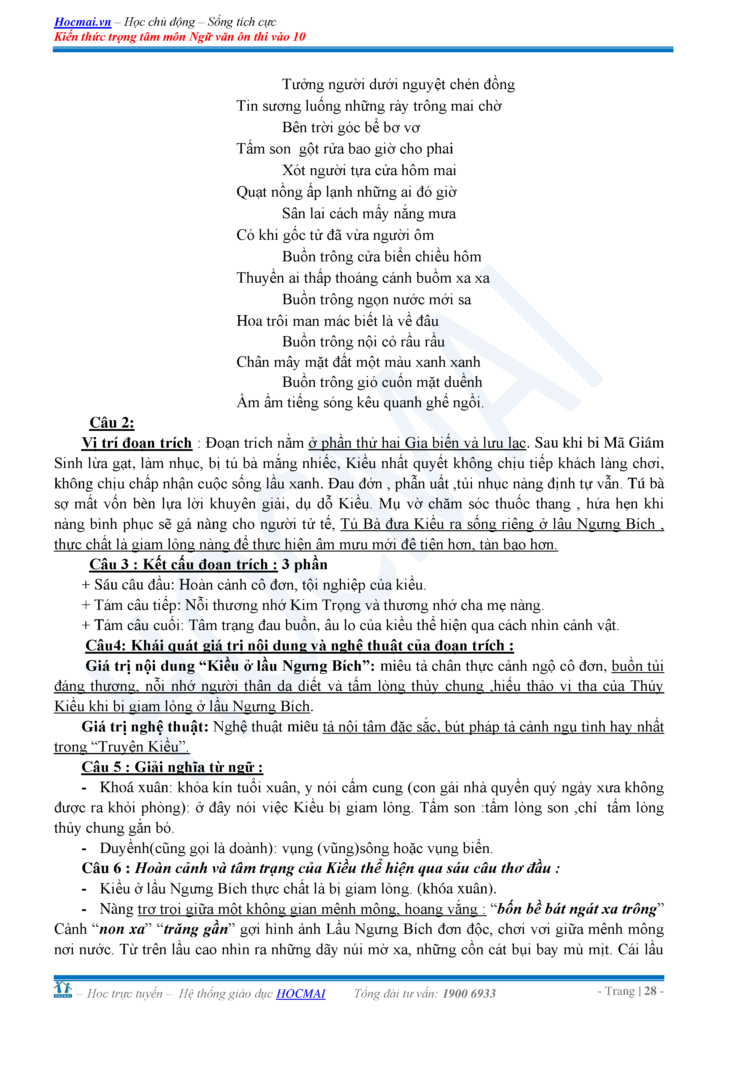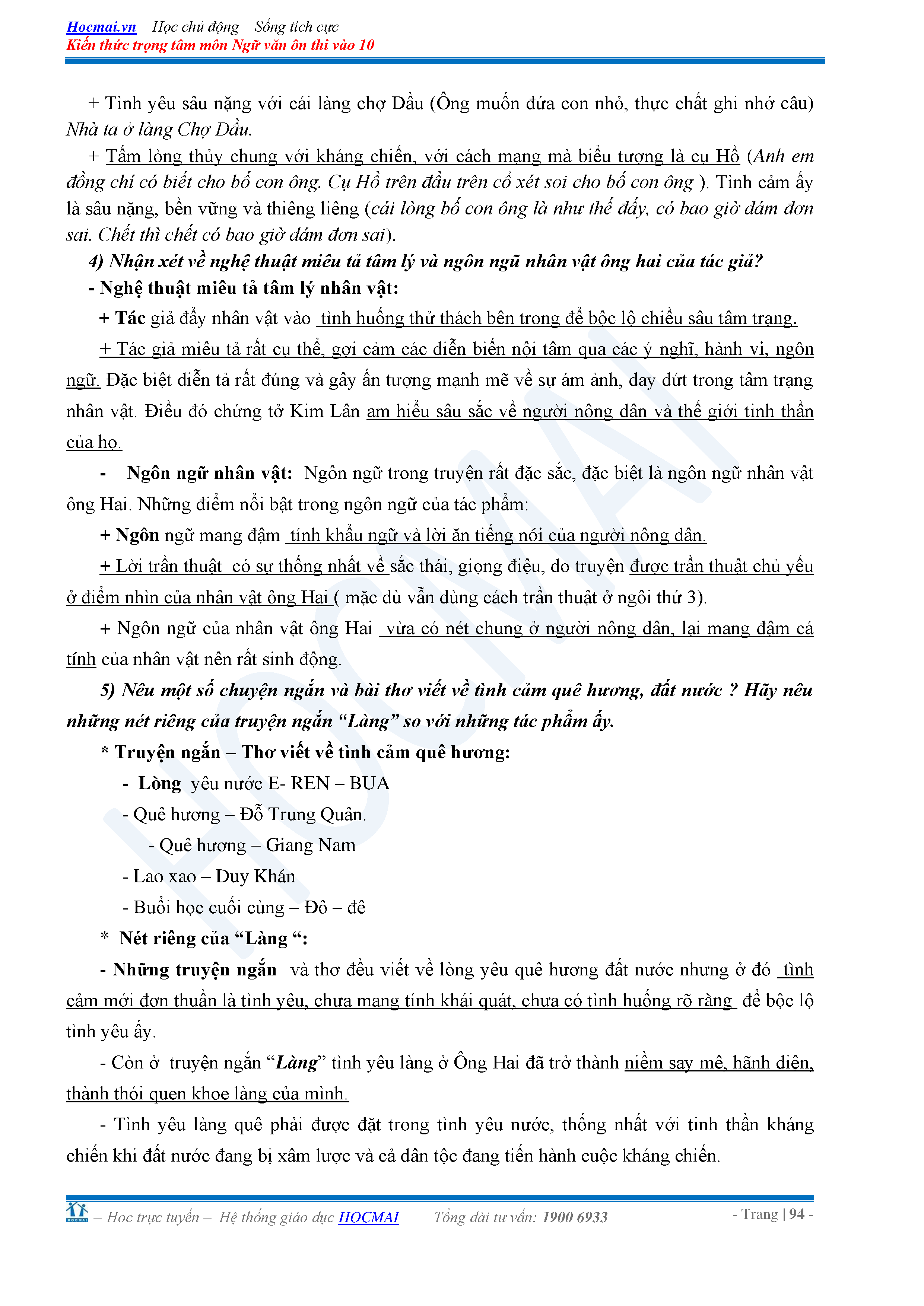 KIẾN THỨC TRỌNG TÂM MÔN NGỮ VĂN LỚP 9