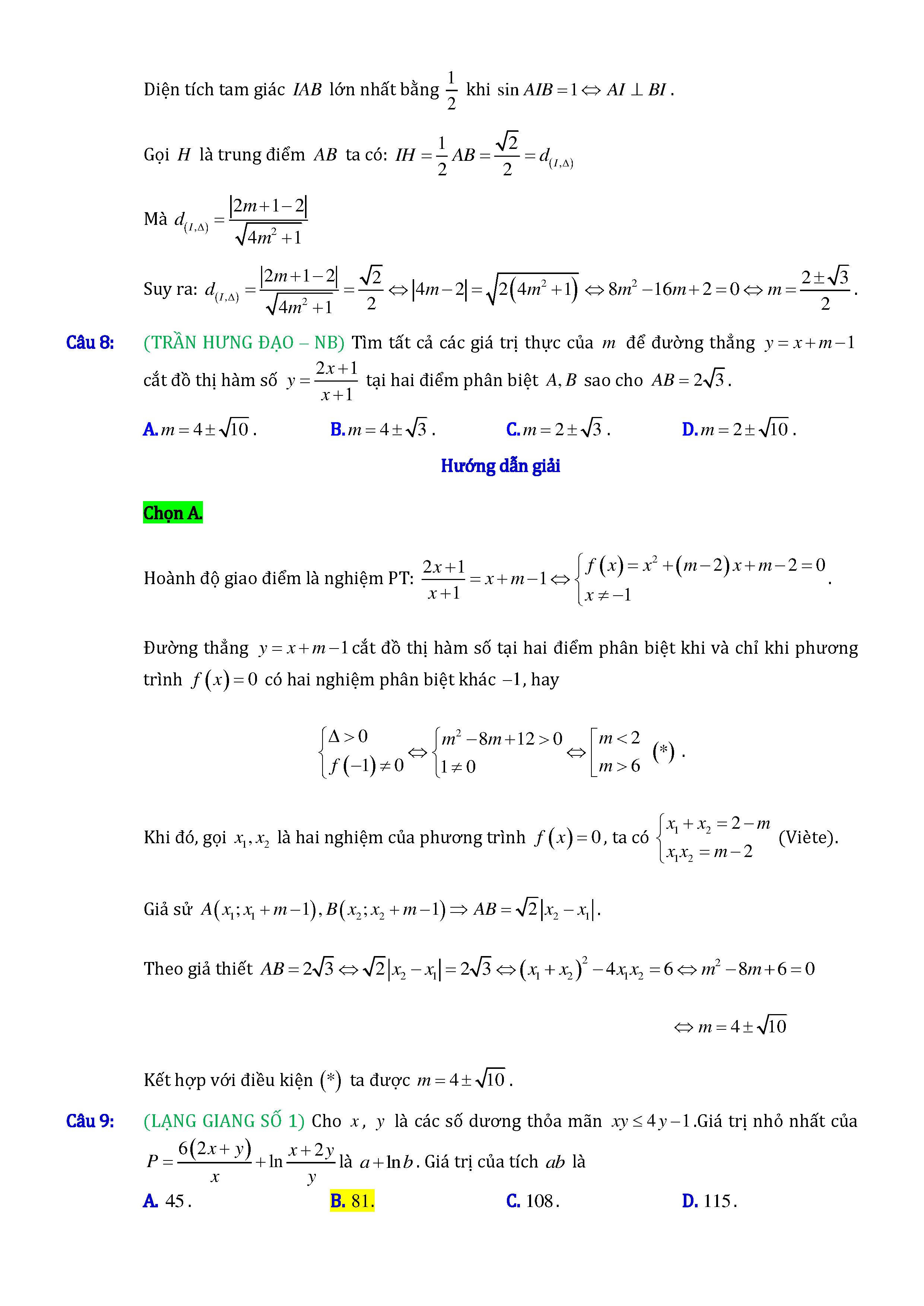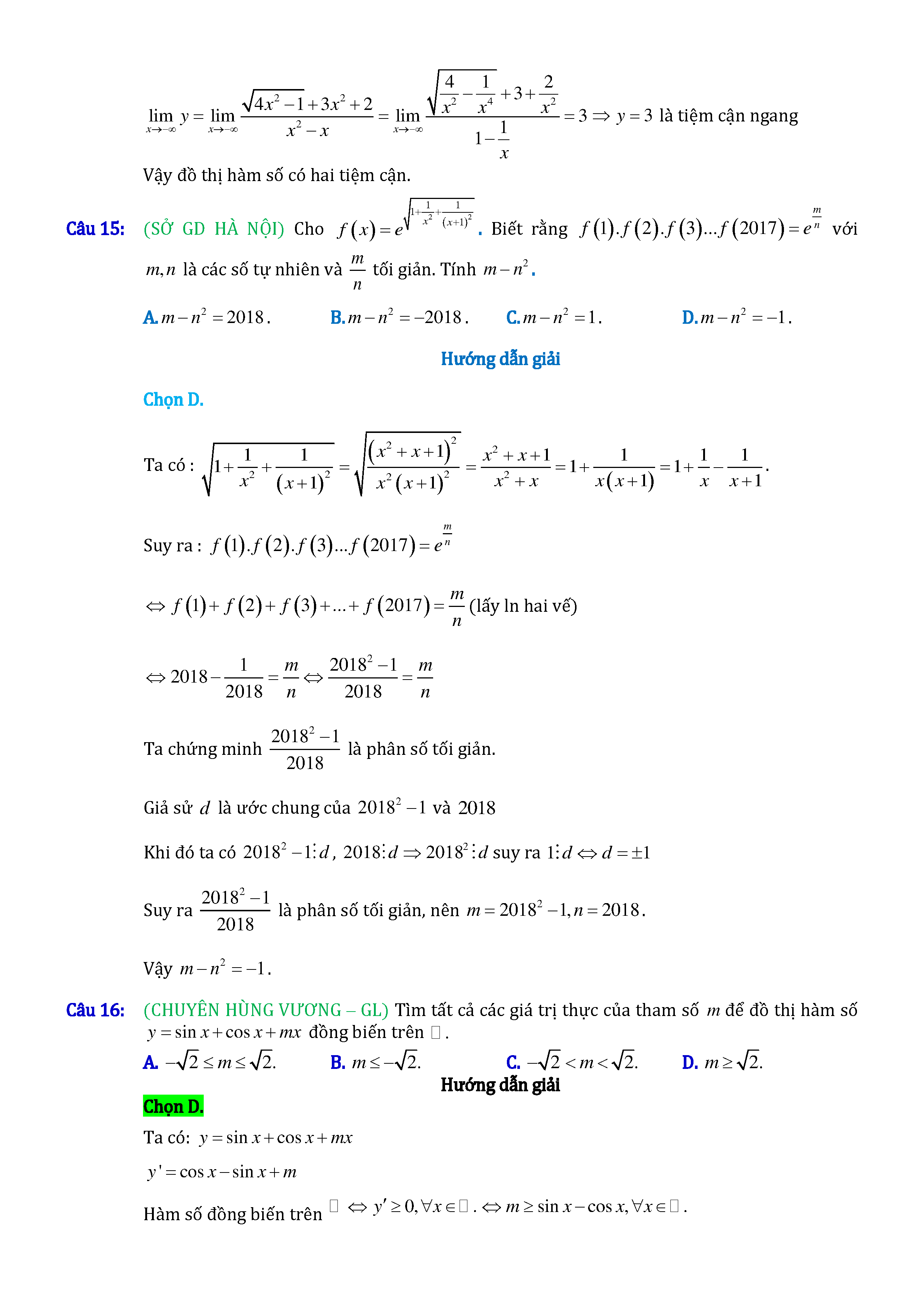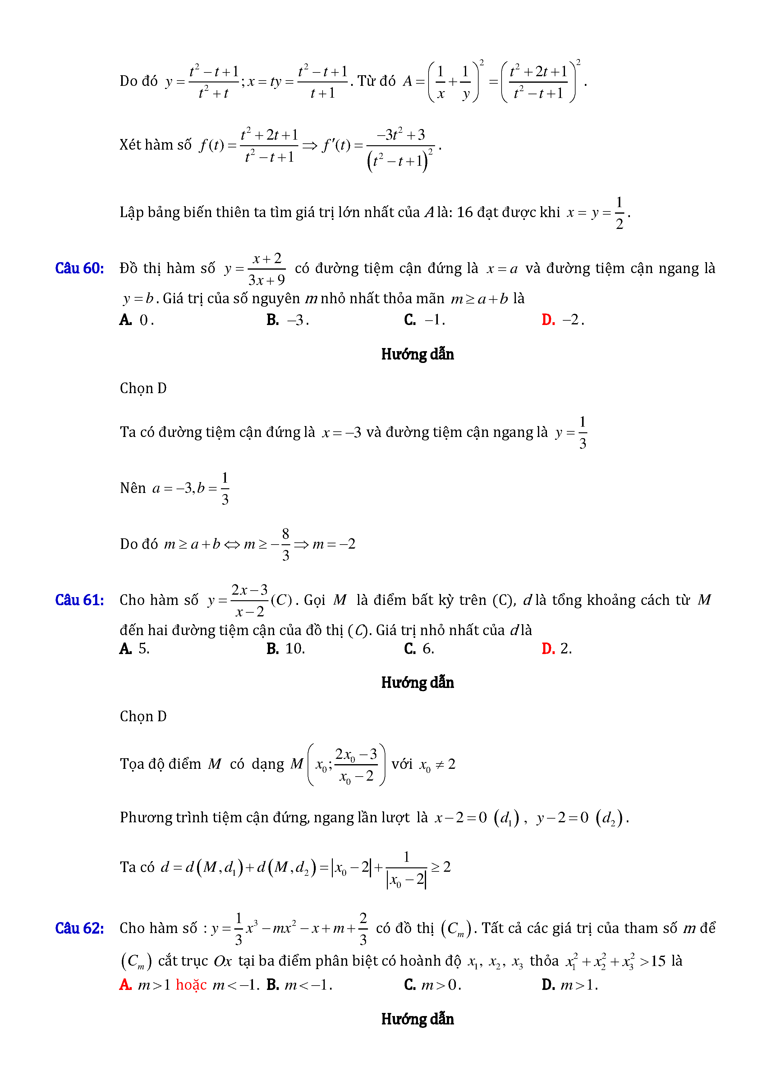VDC đồ thị hàm số - có hướng dẫn giải chi tiết