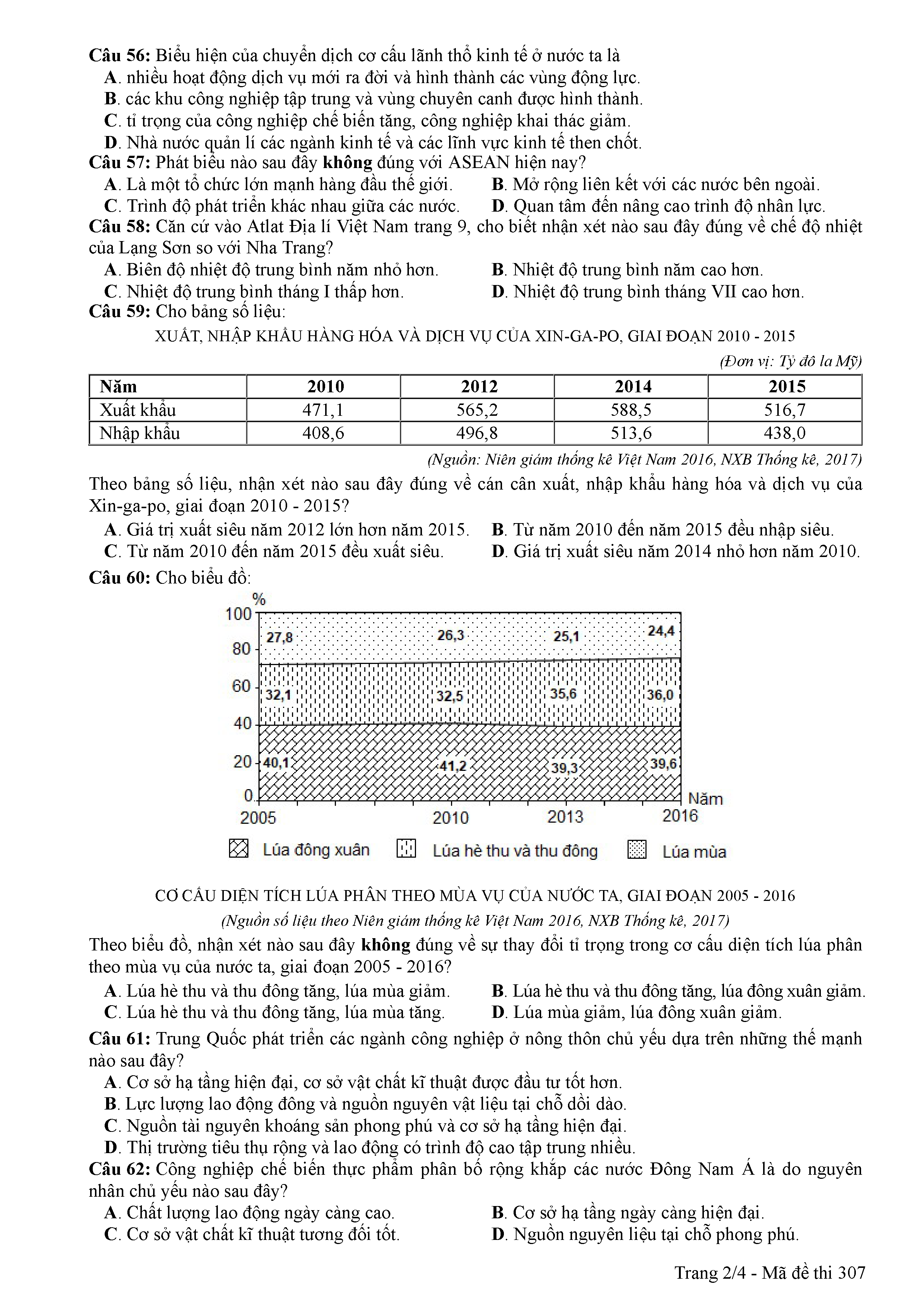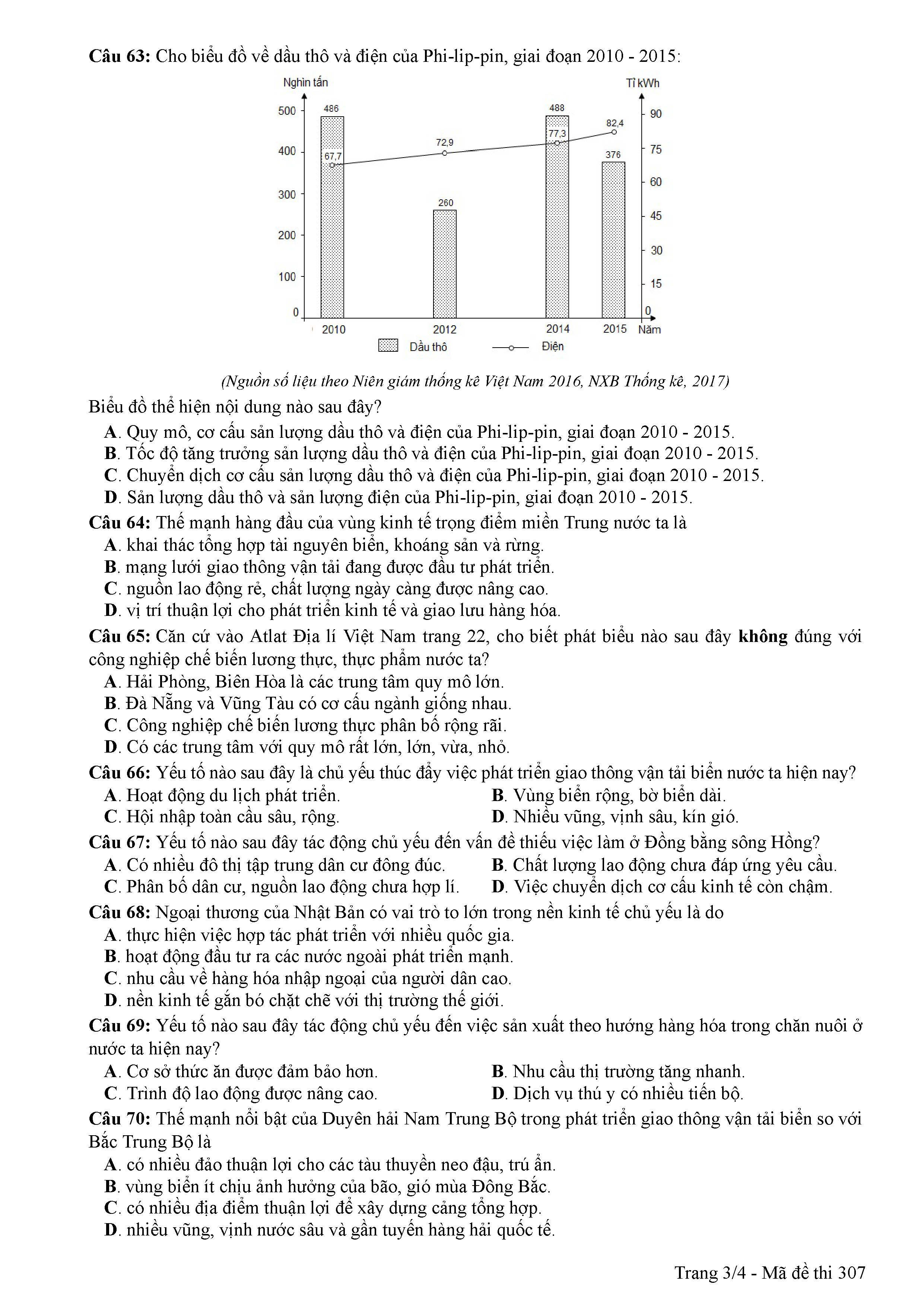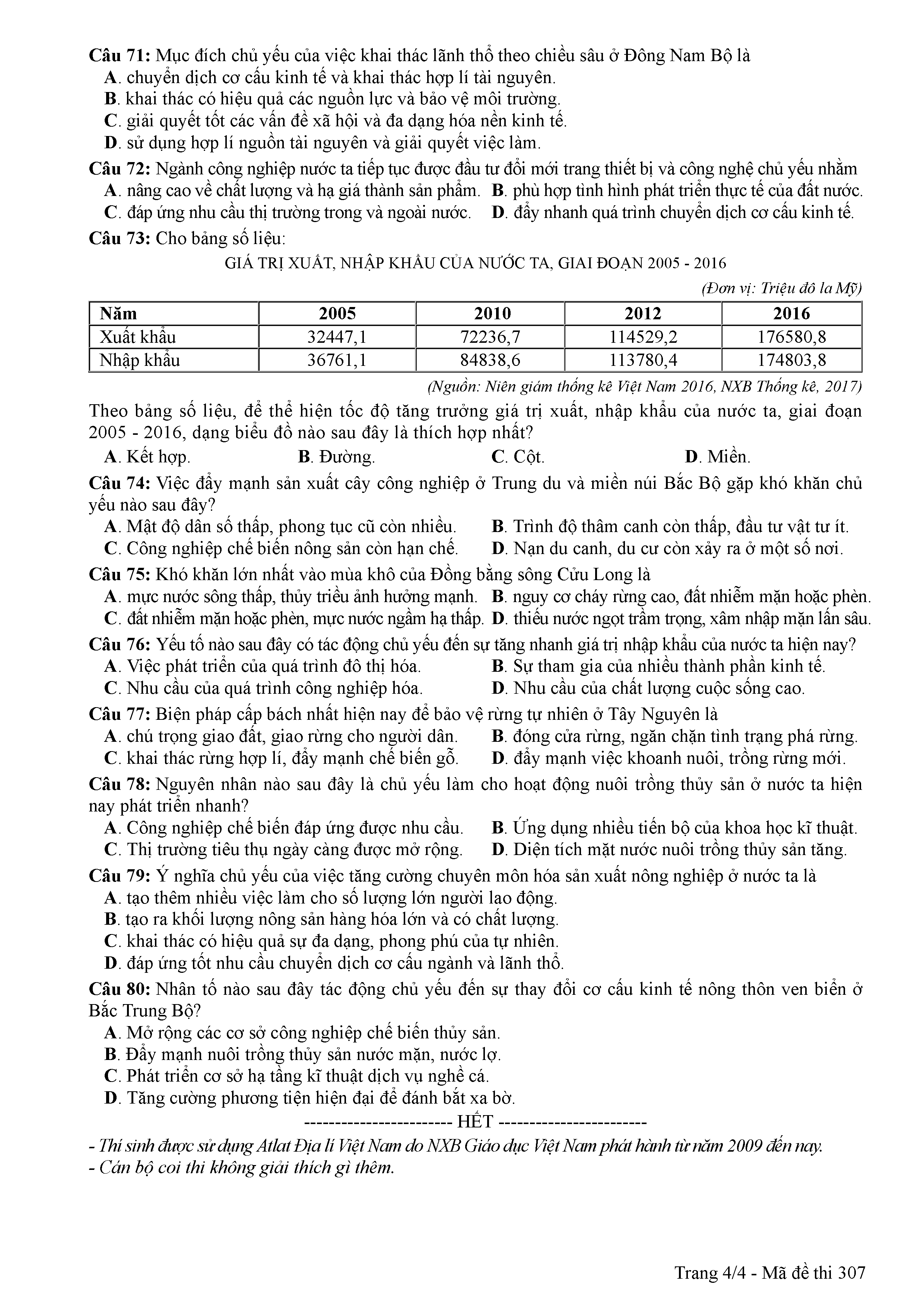 ĐỀ THI CHÍNH THỨC THPTQG NĂM 2017 - MÔN ĐỊA LÍ -MÃ ĐỀ 307