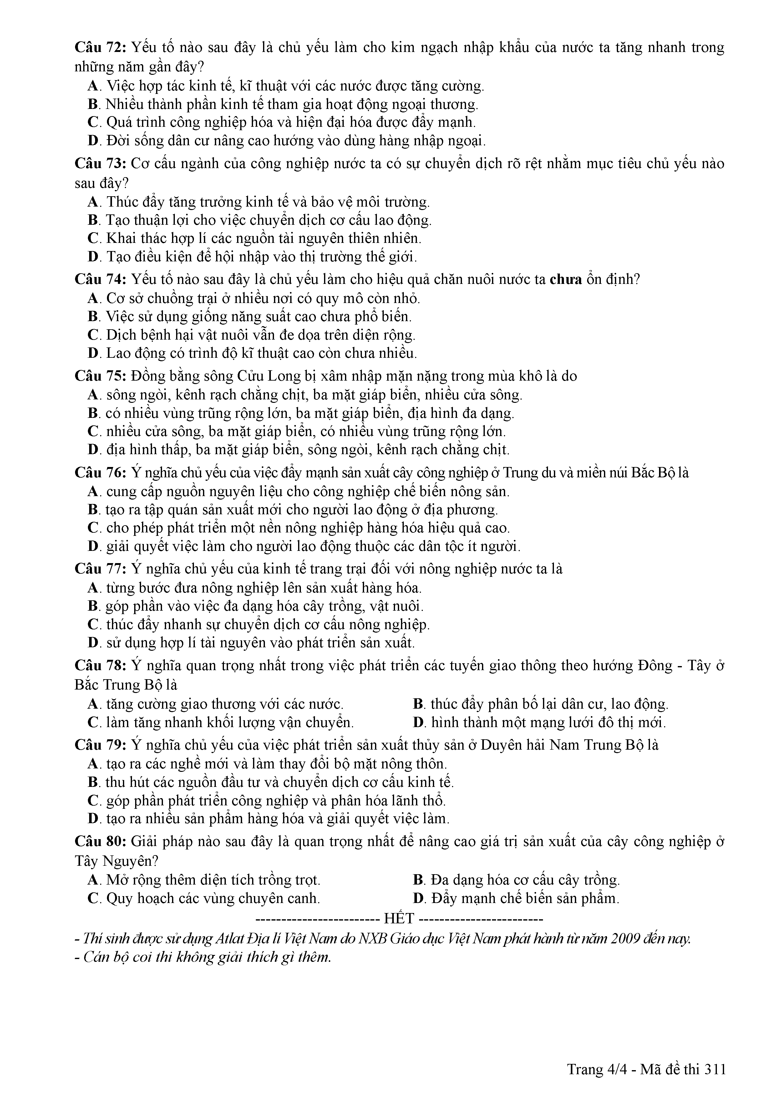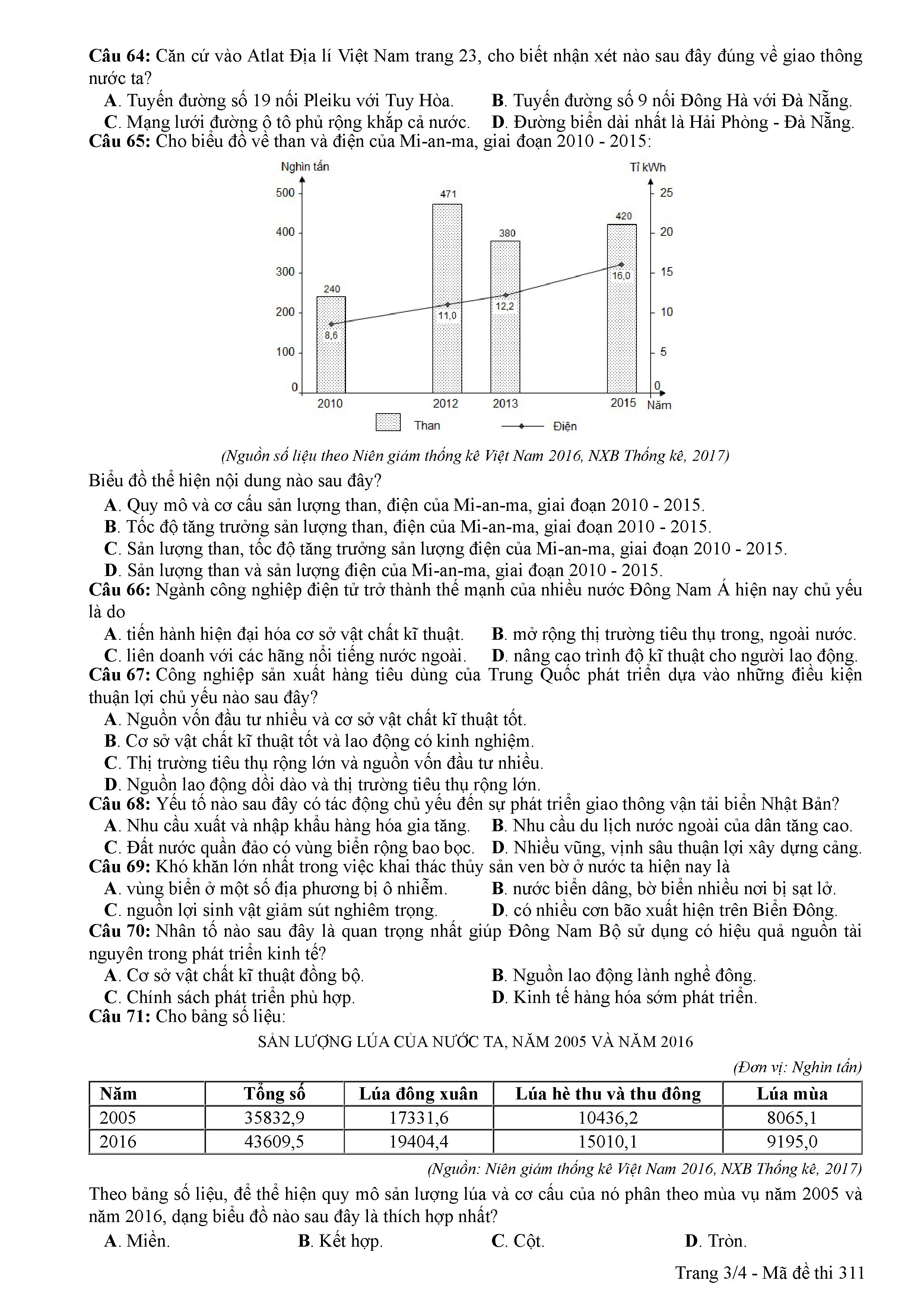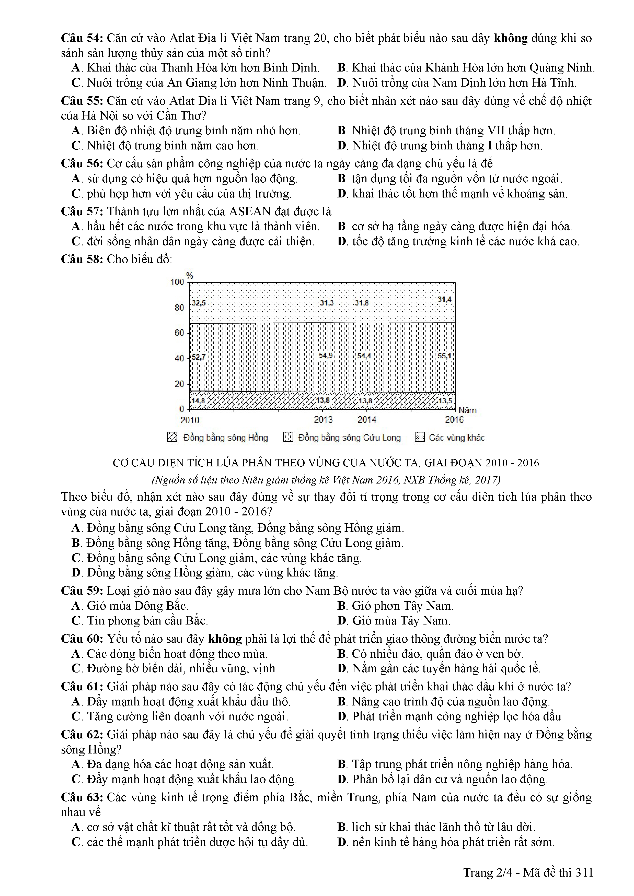 ĐỀ THI CHÍNH THỨC THPTQG NĂM 2017 - MÔN ĐỊA LÍ -MÃ ĐỀ 311