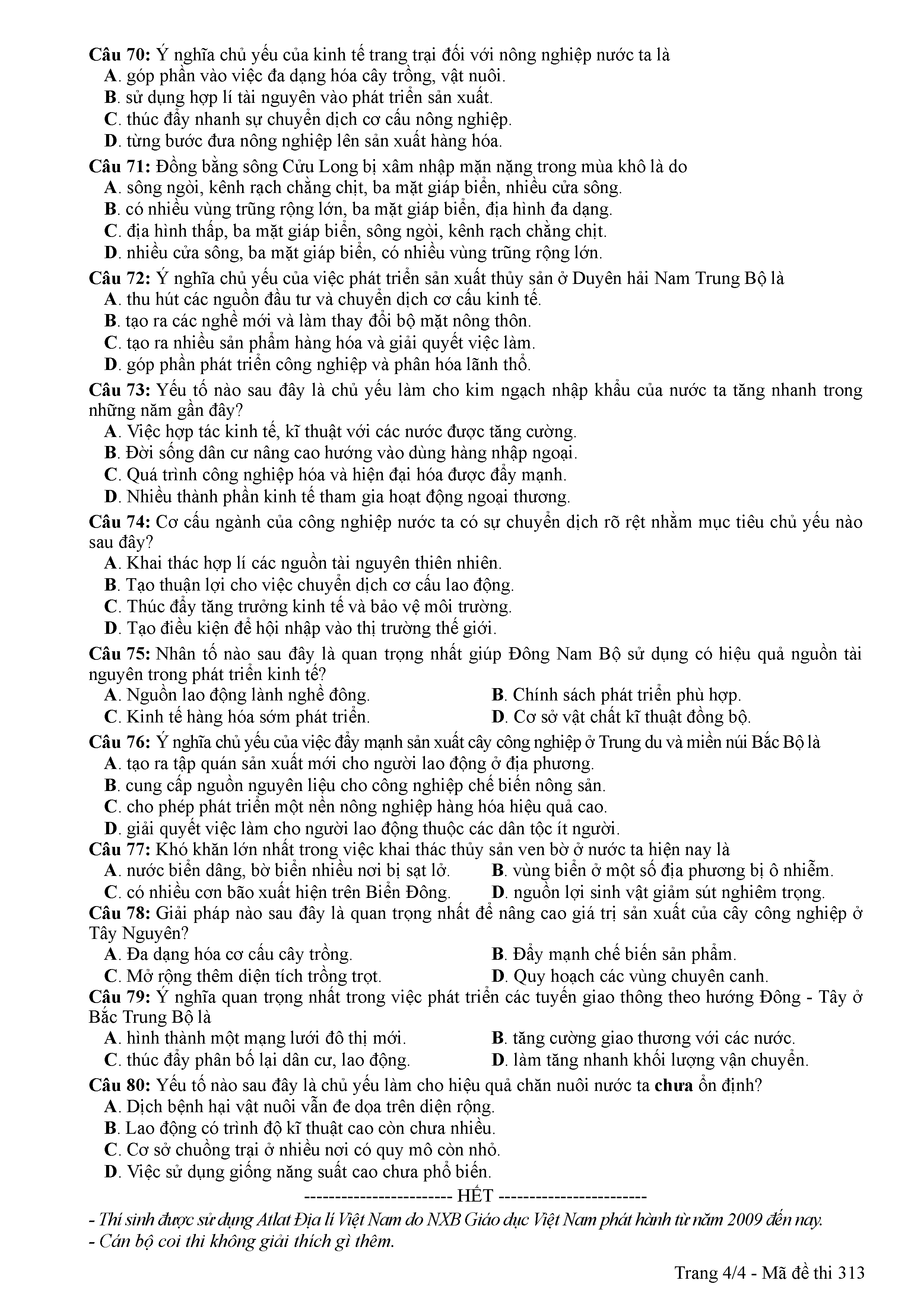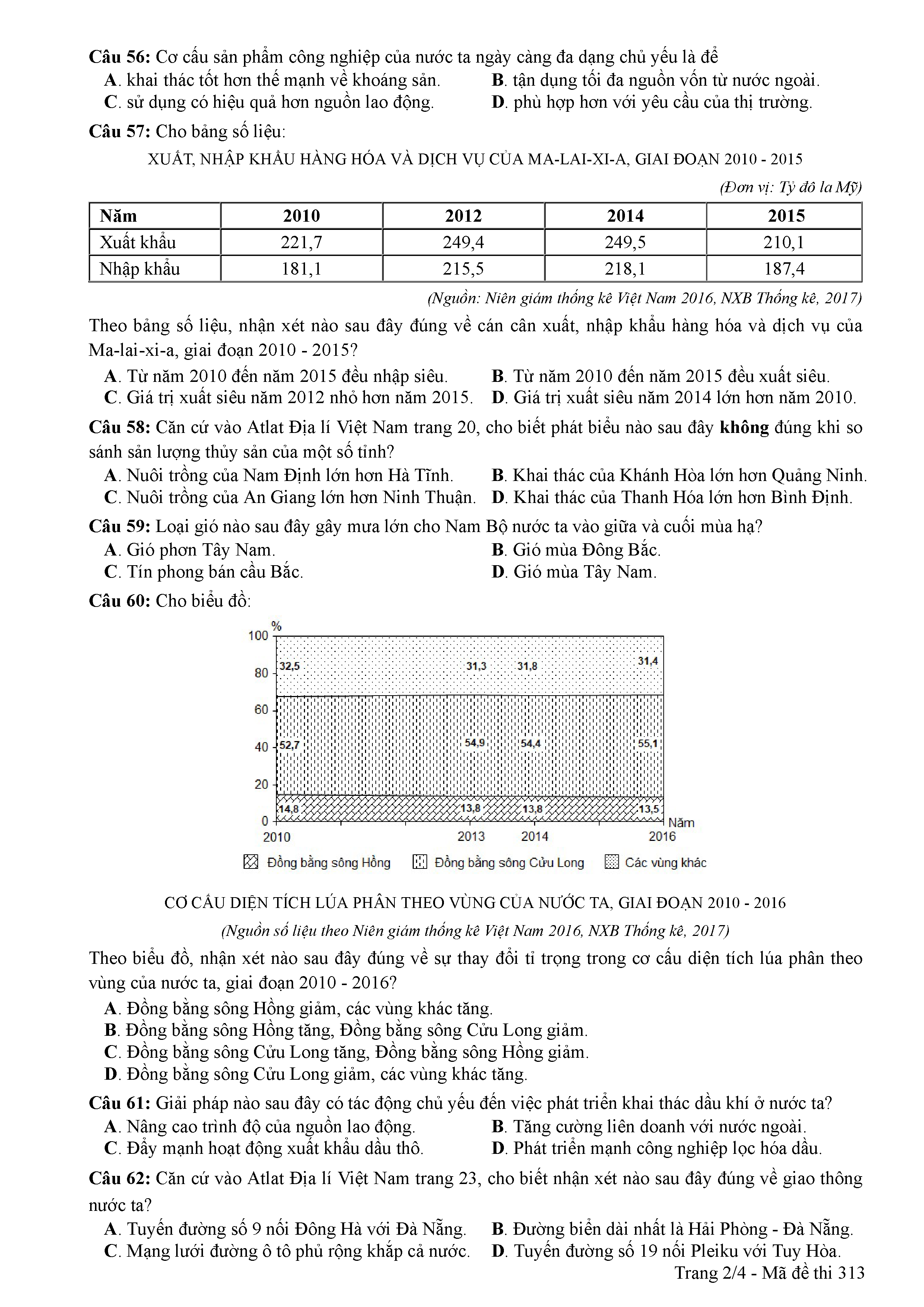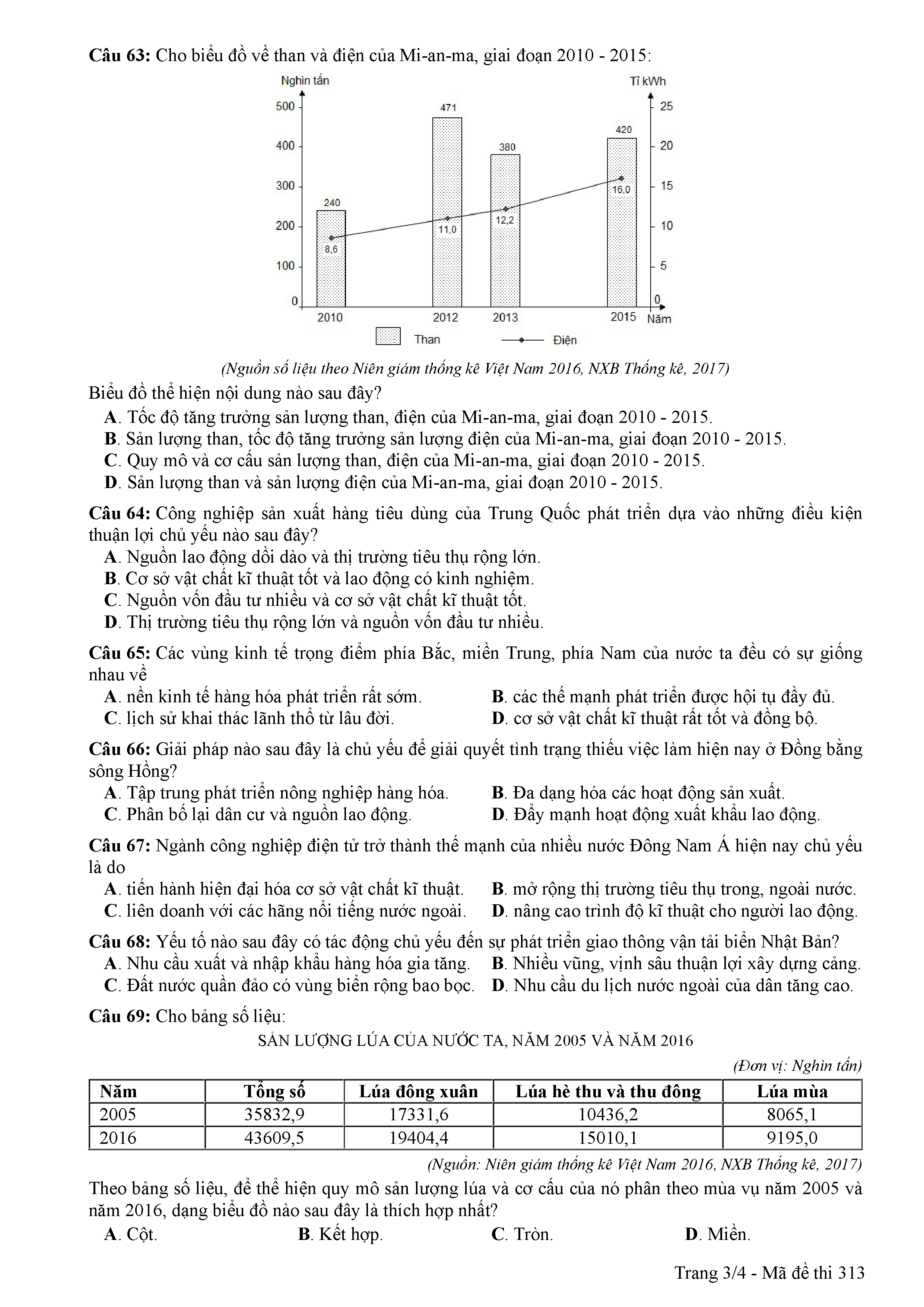 ĐỀ THI CHÍNH THỨC THPTQG NĂM 2017 - MÔN ĐỊA LÍ -MÃ ĐỀ 313