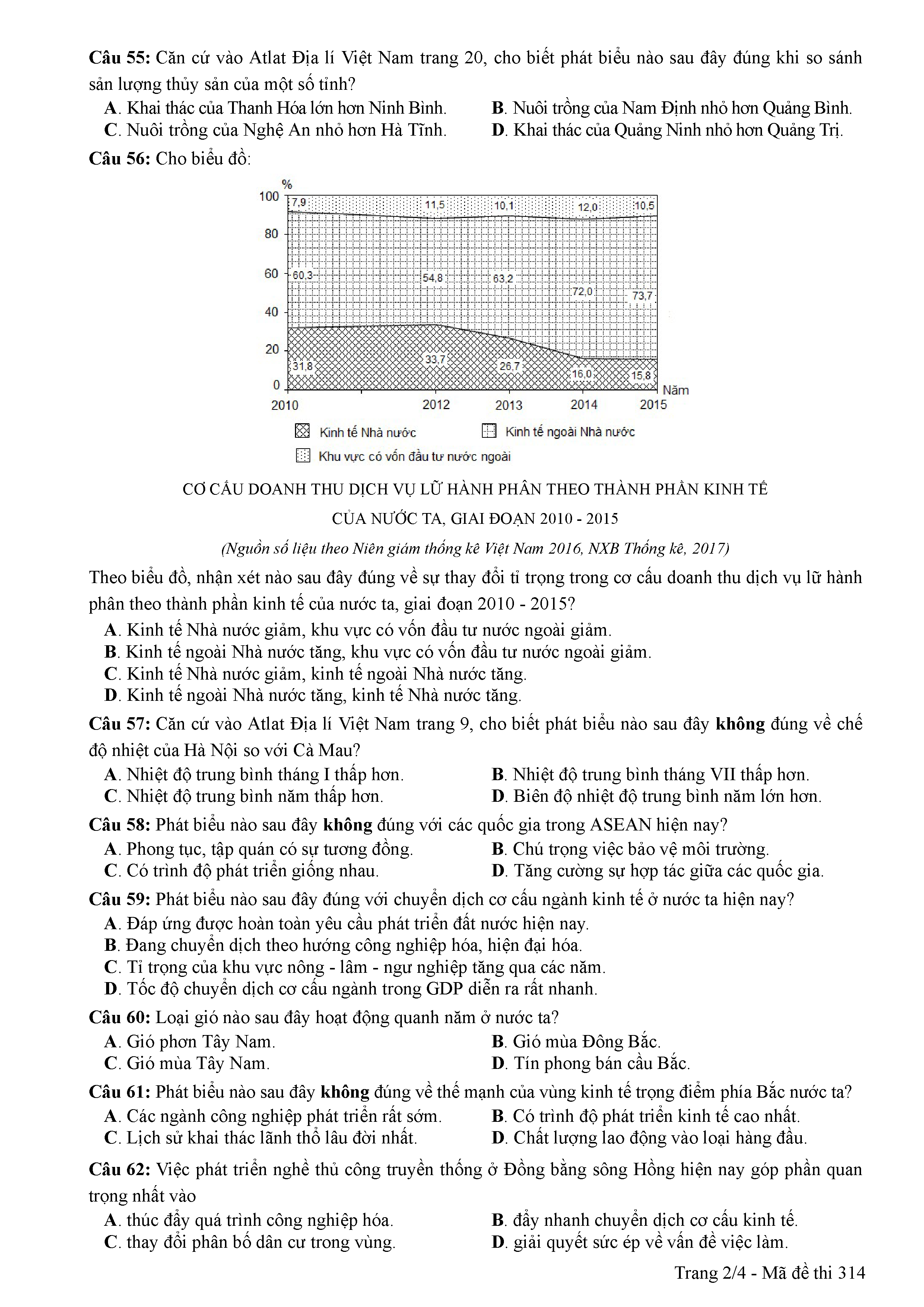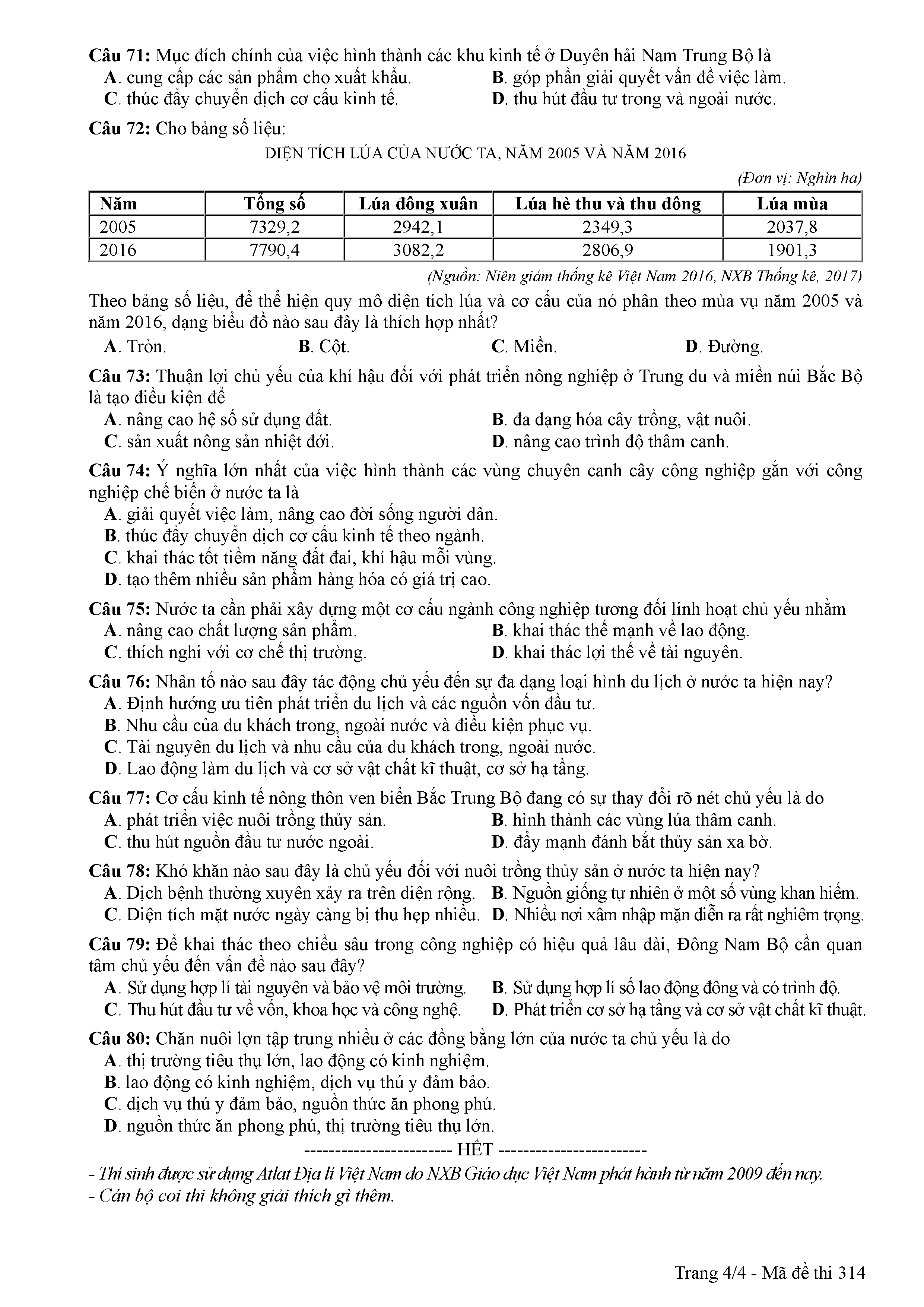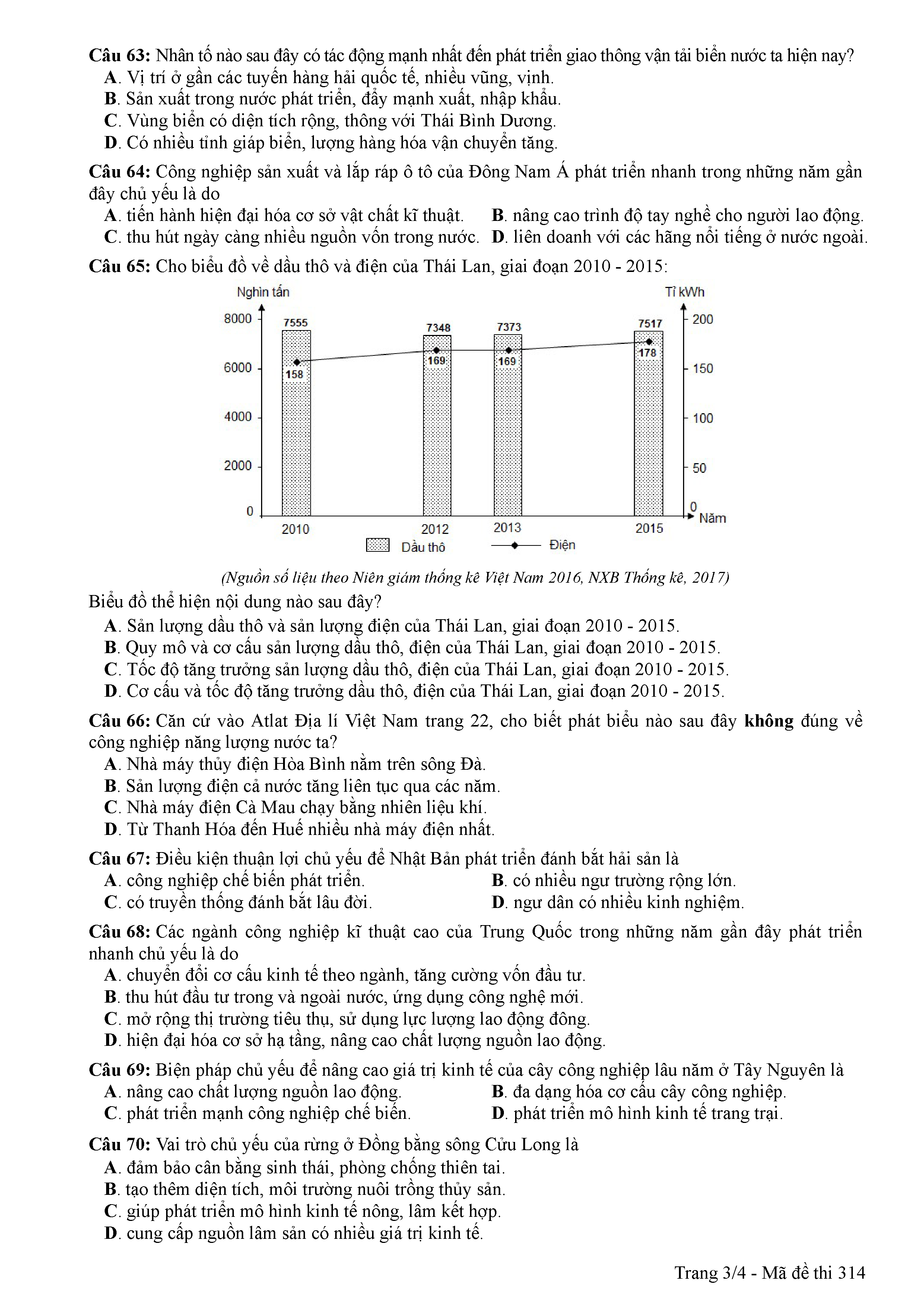 ĐỀ THI CHÍNH THỨC THPTQG NĂM 2017 - MÔN ĐỊA LÍ -MÃ ĐỀ 314