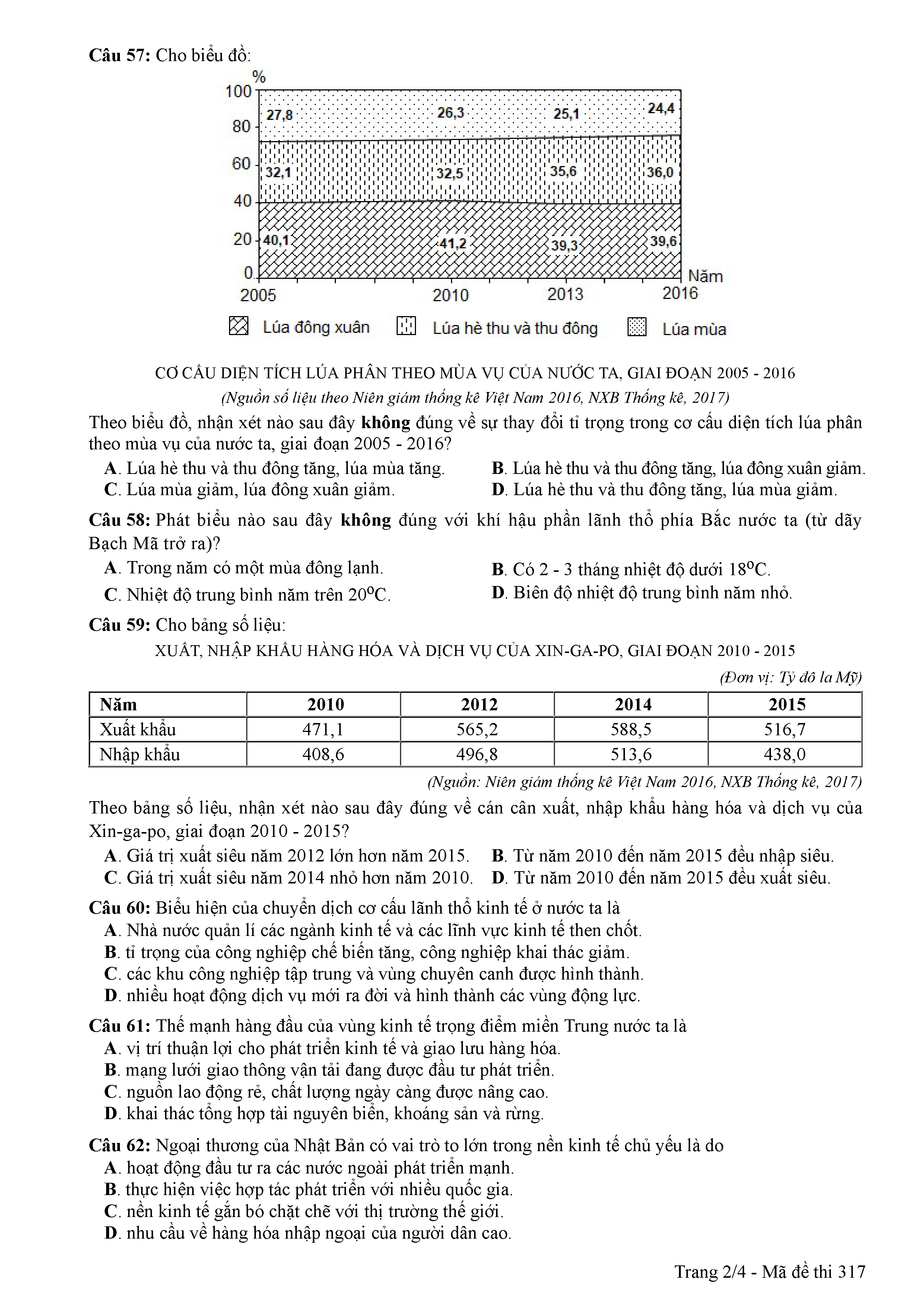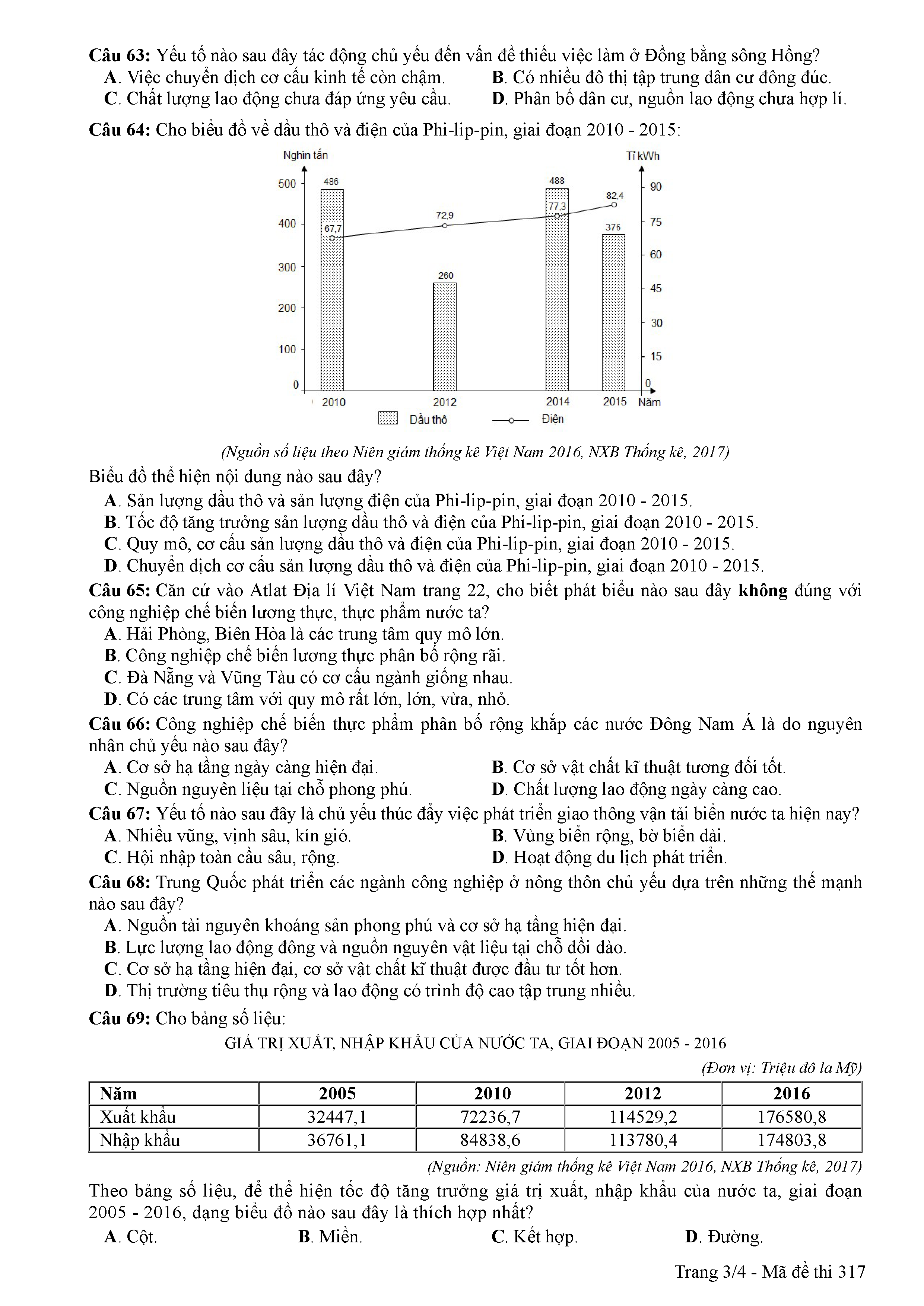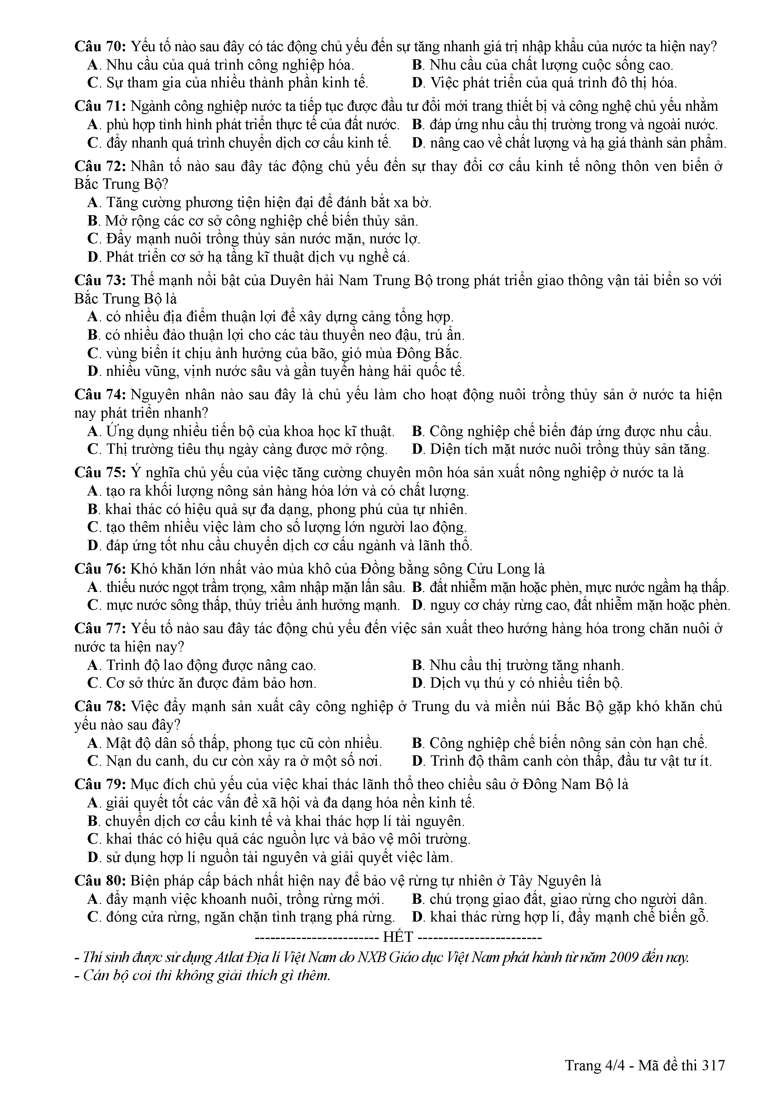ĐỀ THI CHÍNH THỨC THPTQG NĂM 2017 - MÔN ĐỊA LÍ -MÃ ĐỀ 317