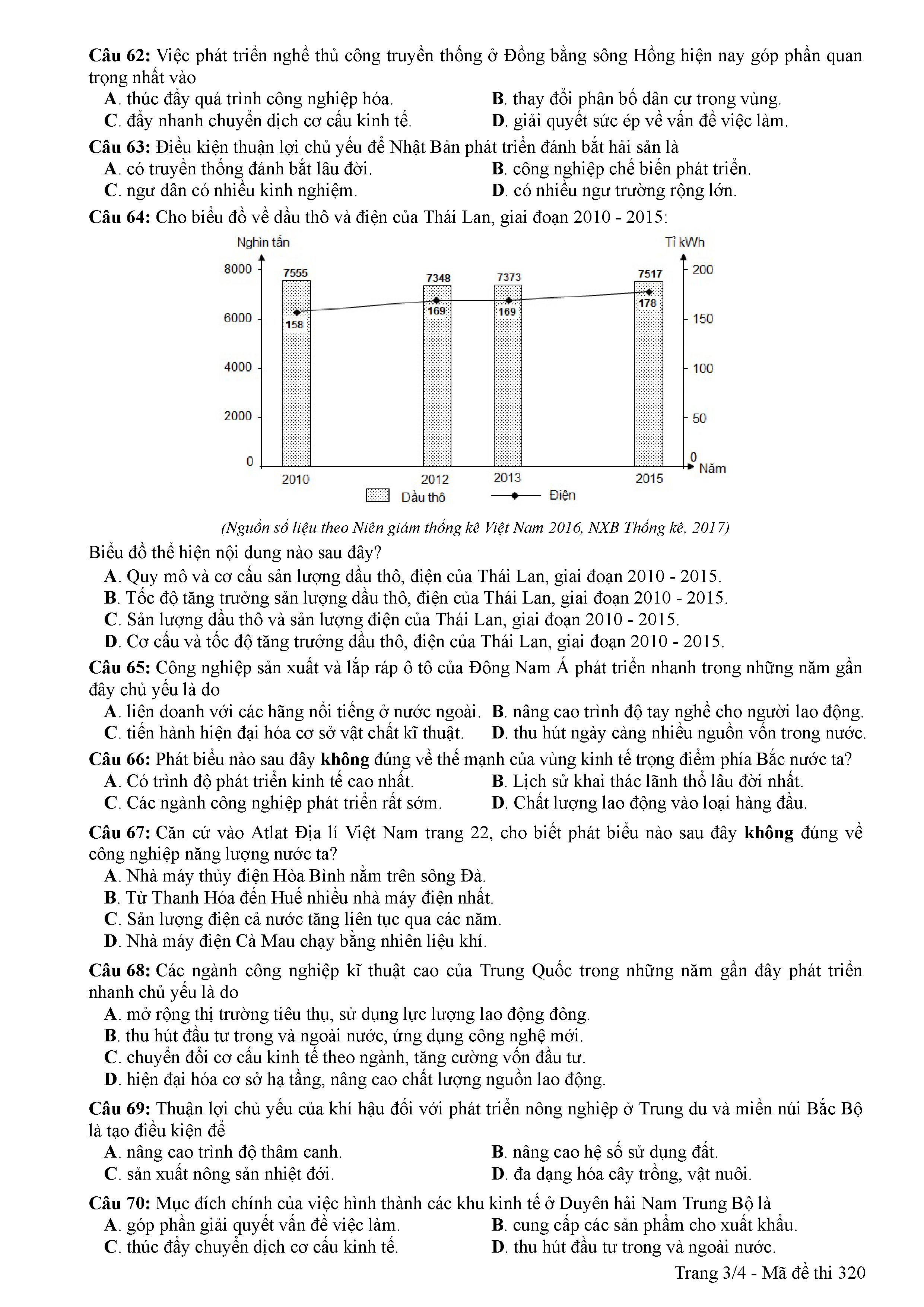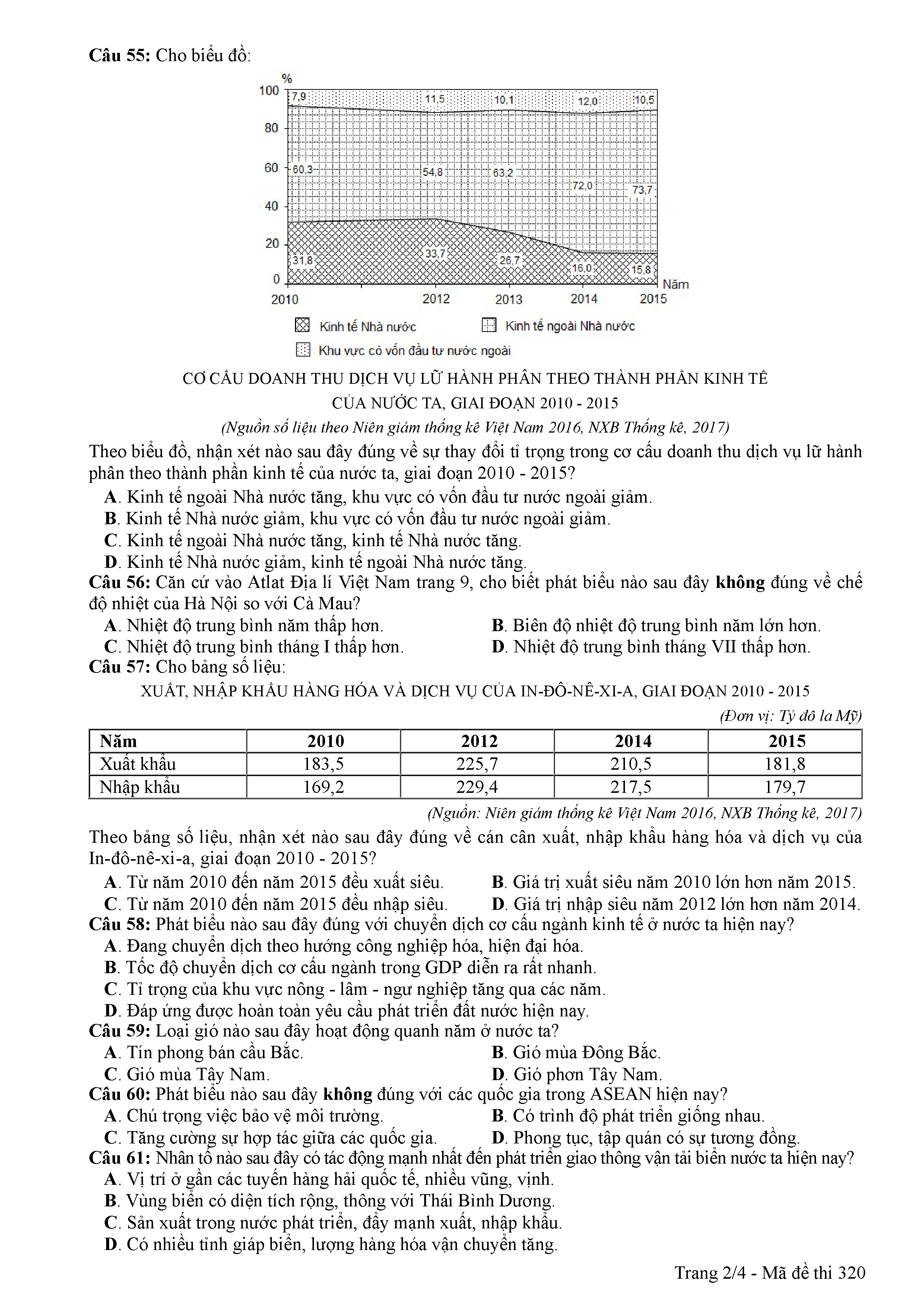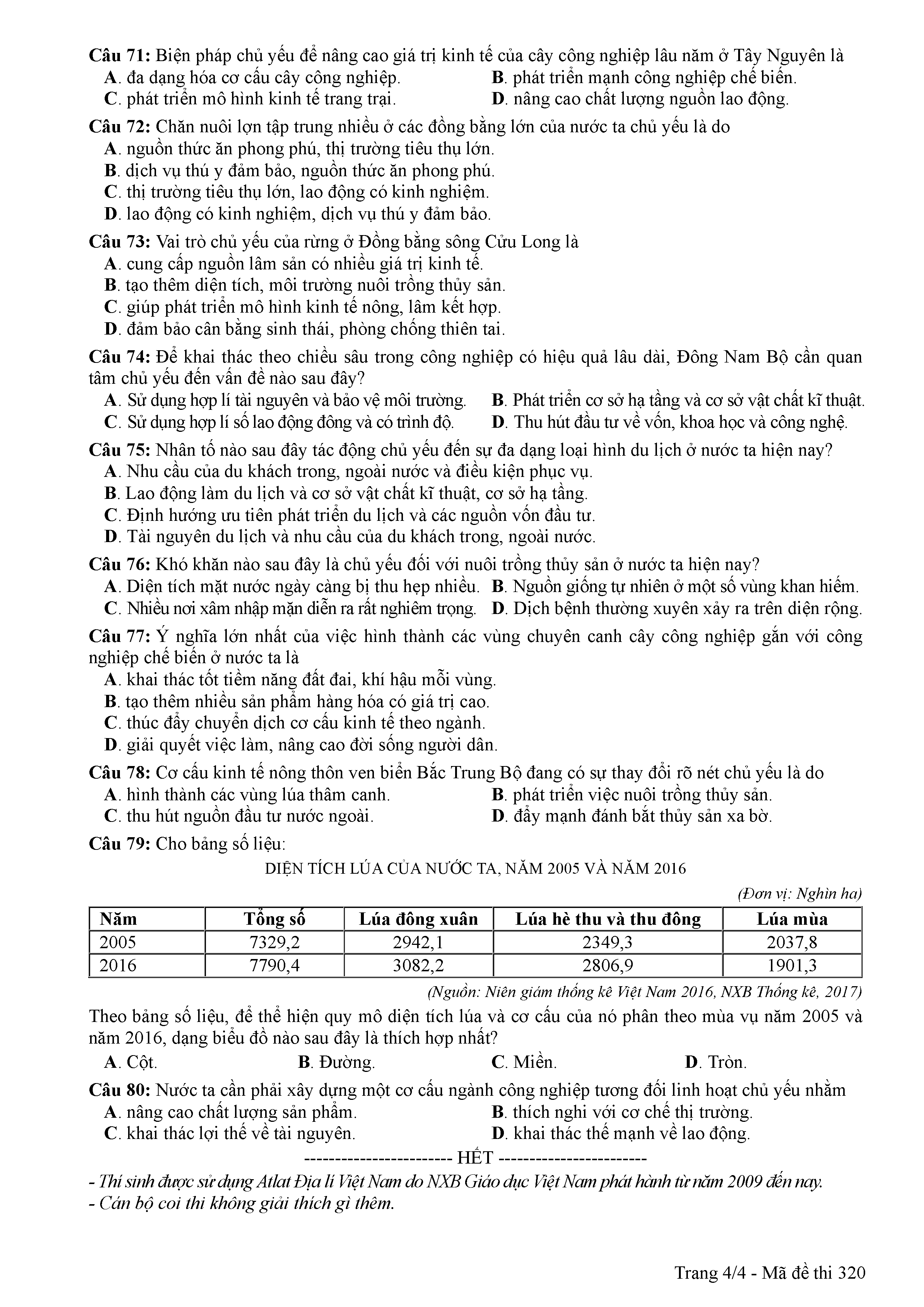 ĐỀ THI CHÍNH THỨC THPTQG NĂM 2017 - MÔN ĐỊA LÍ -MÃ ĐỀ 320