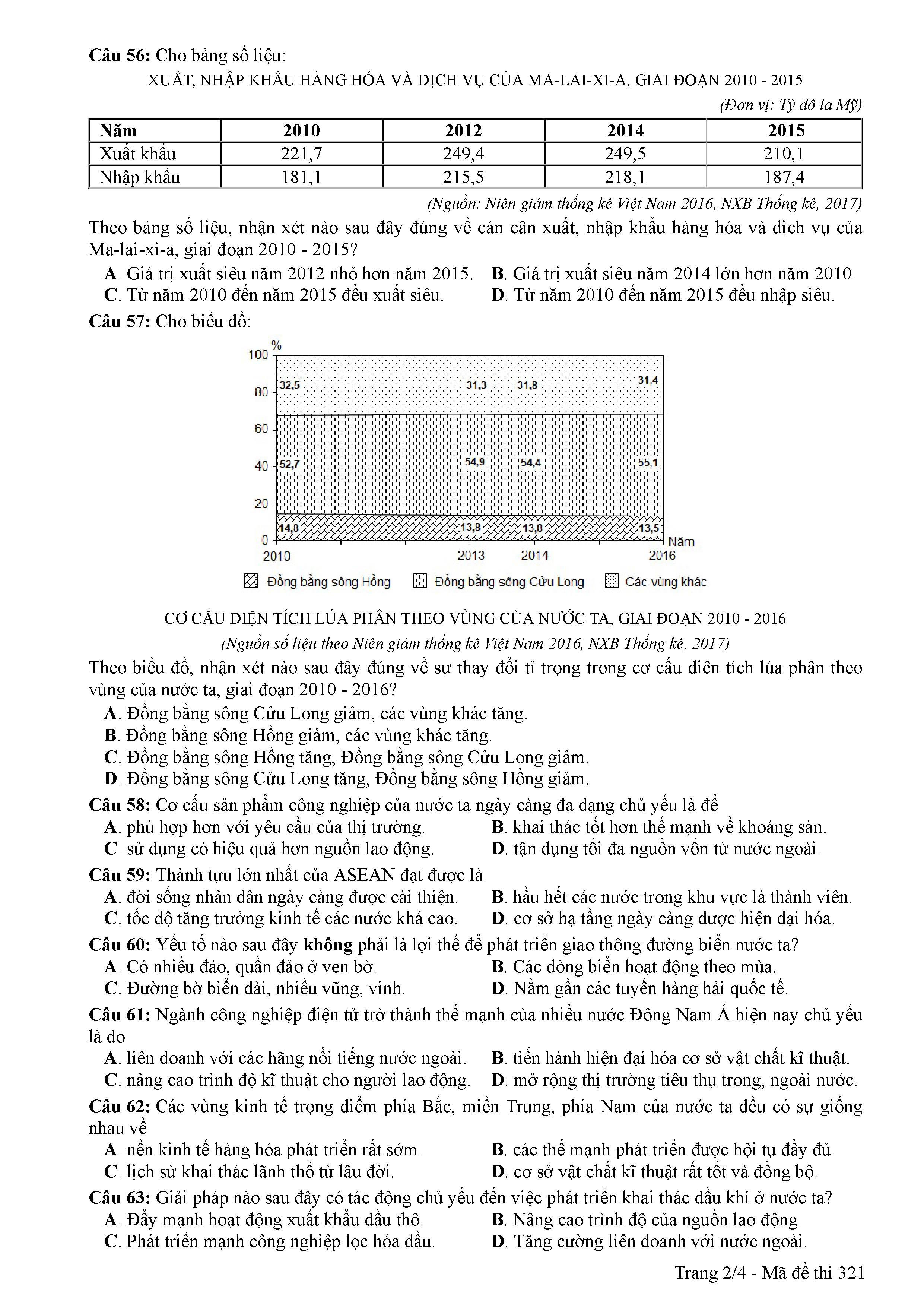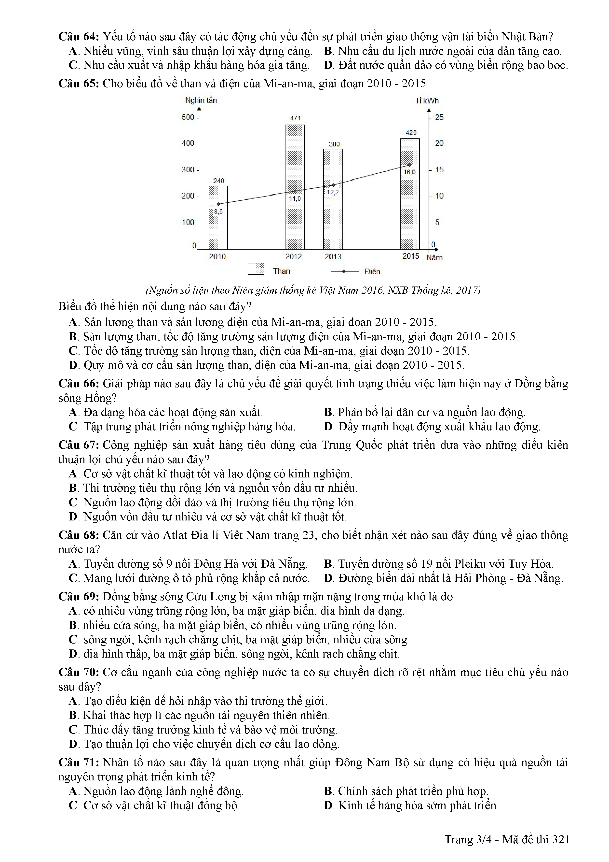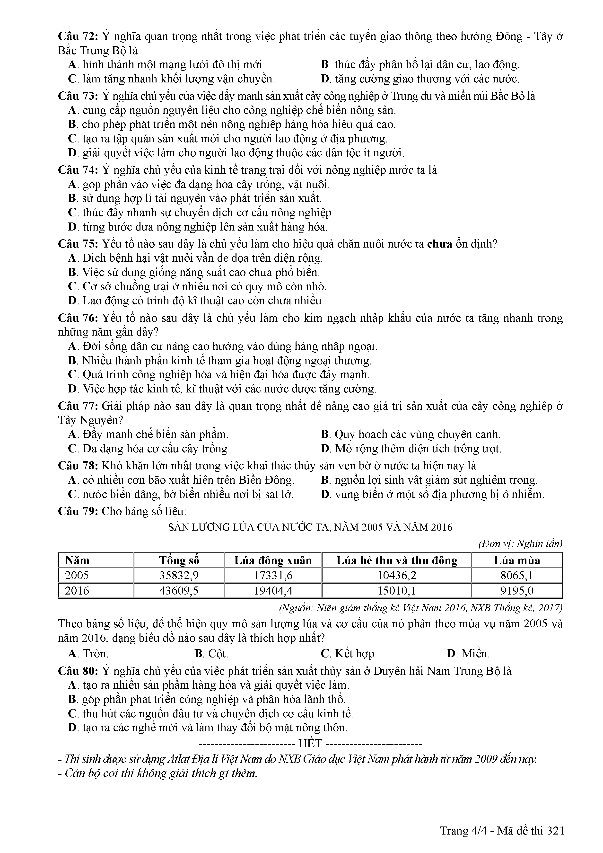 ĐỀ THI CHÍNH THỨC THPTQG NĂM 2017 - MÔN ĐỊA LÍ -MÃ ĐỀ 321