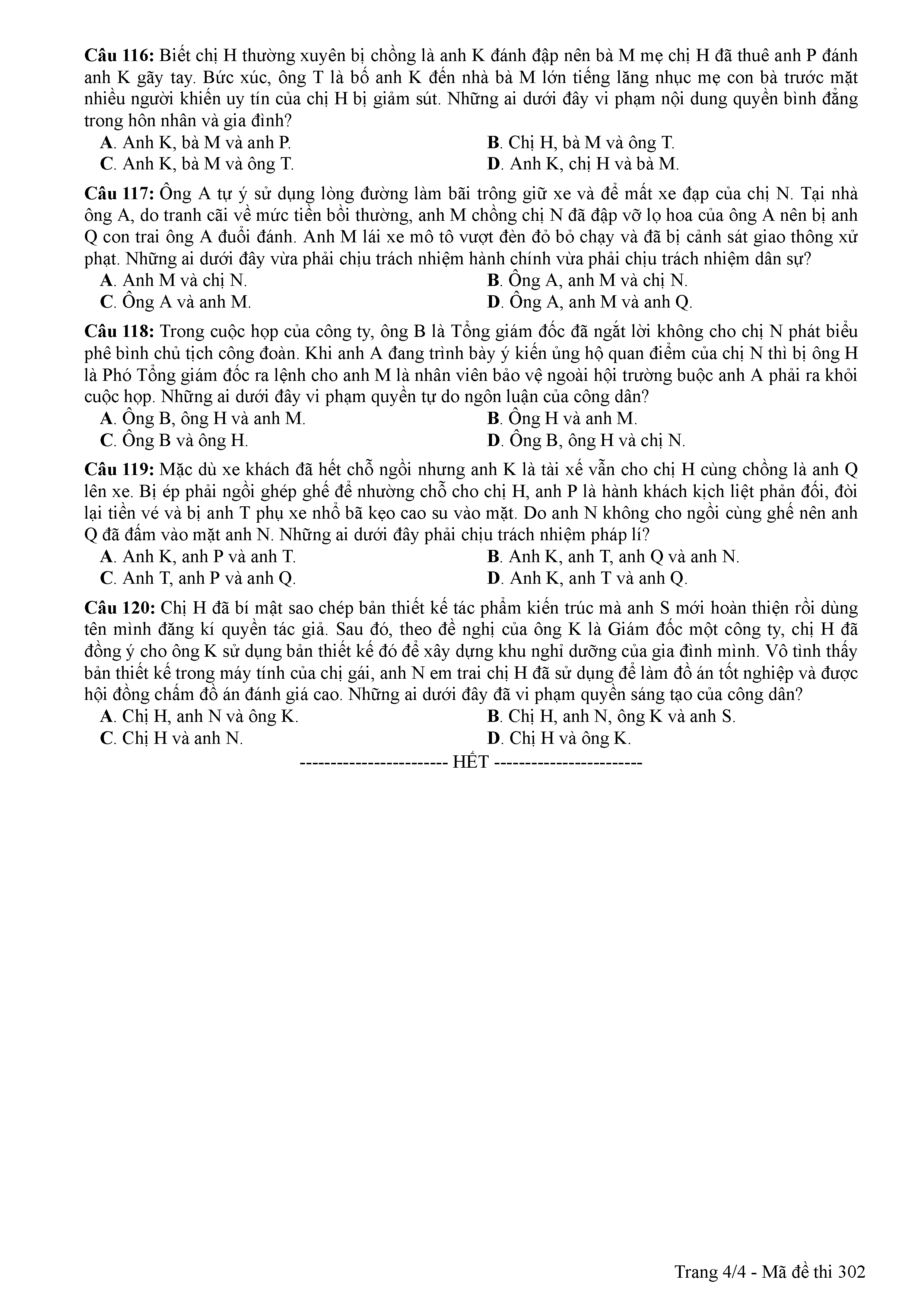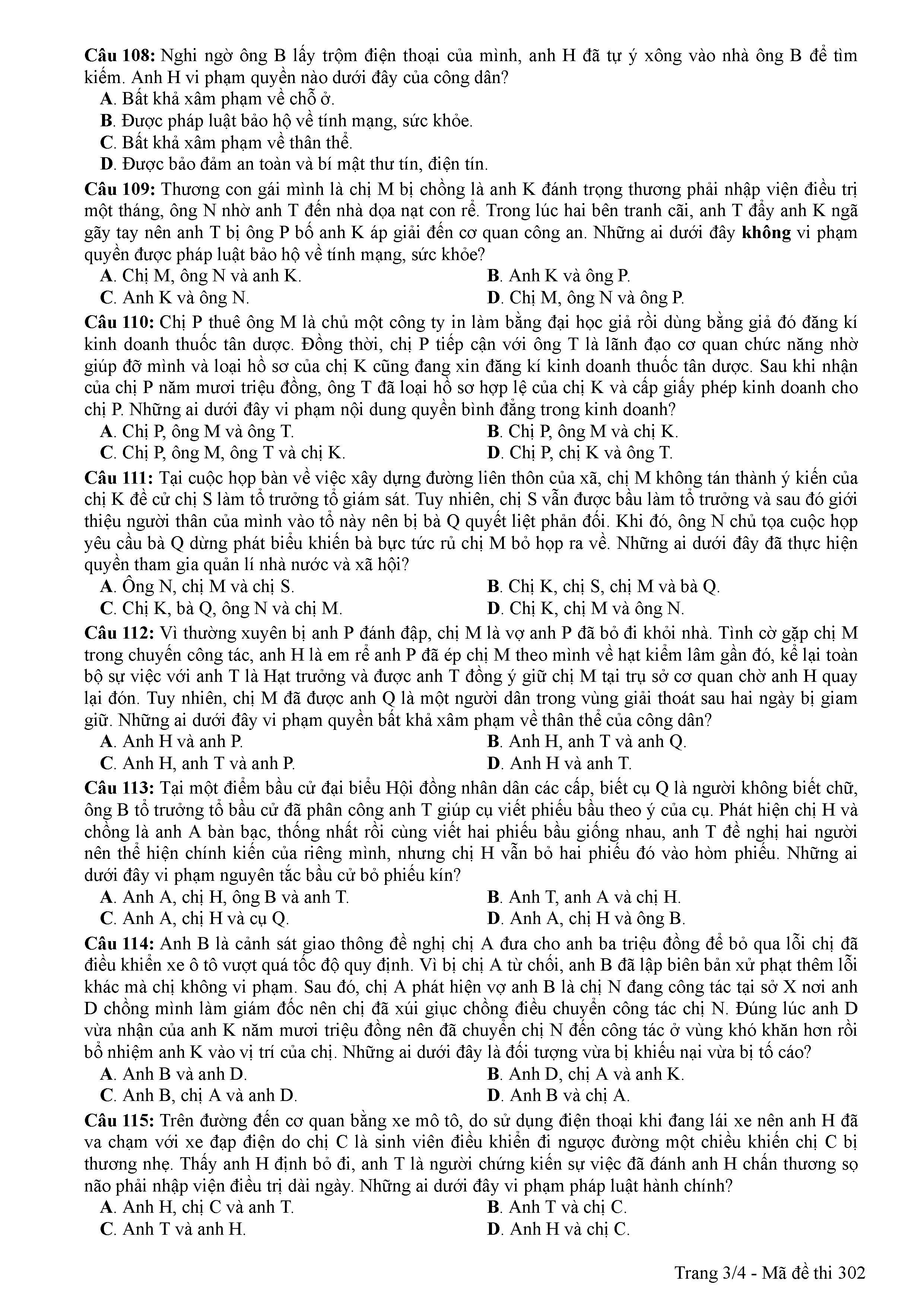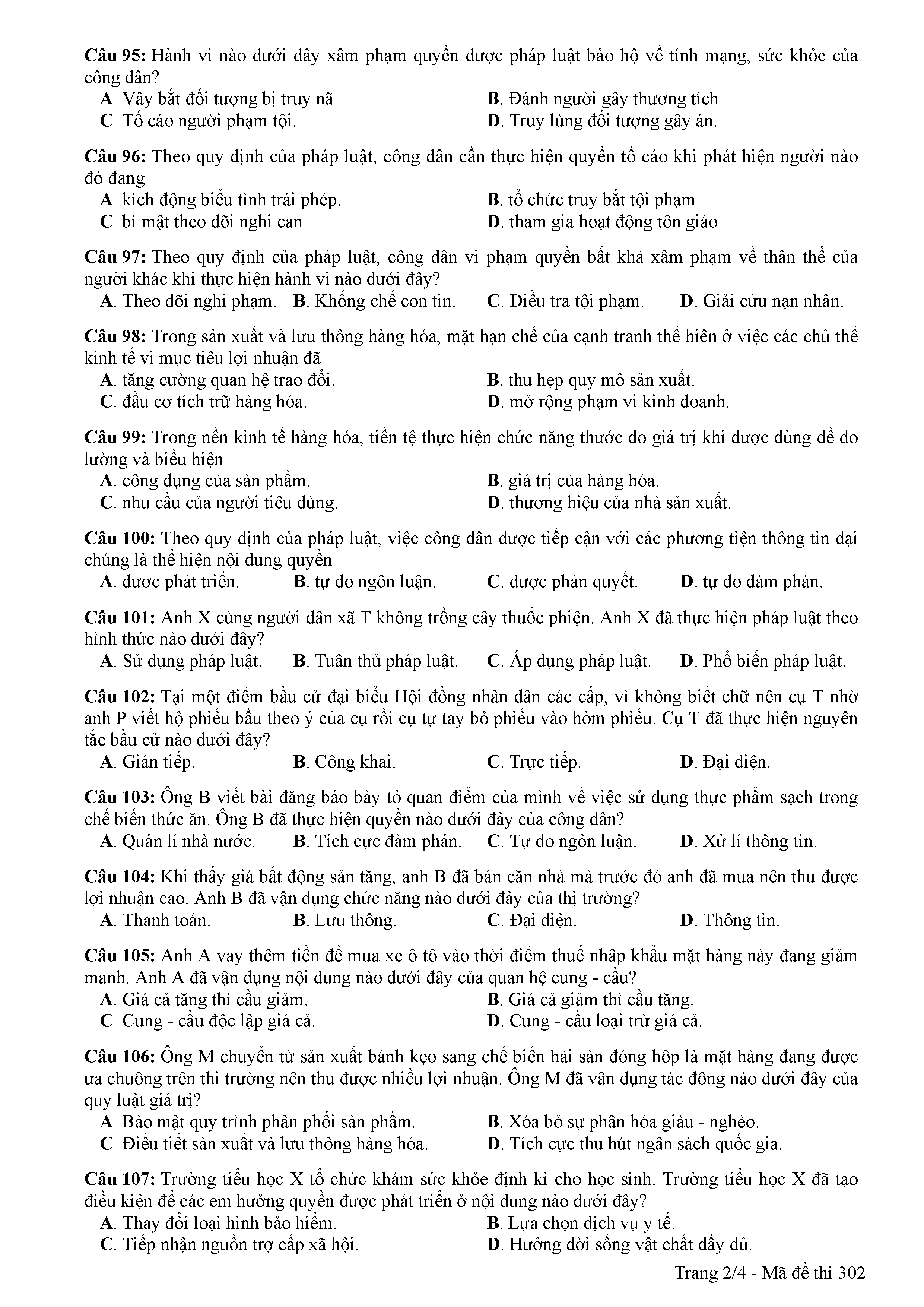 ĐỀ THI CHÍNH THỨC THPTQG NĂM 2017 - MÔN GDCD -MÃ ĐỀ 302