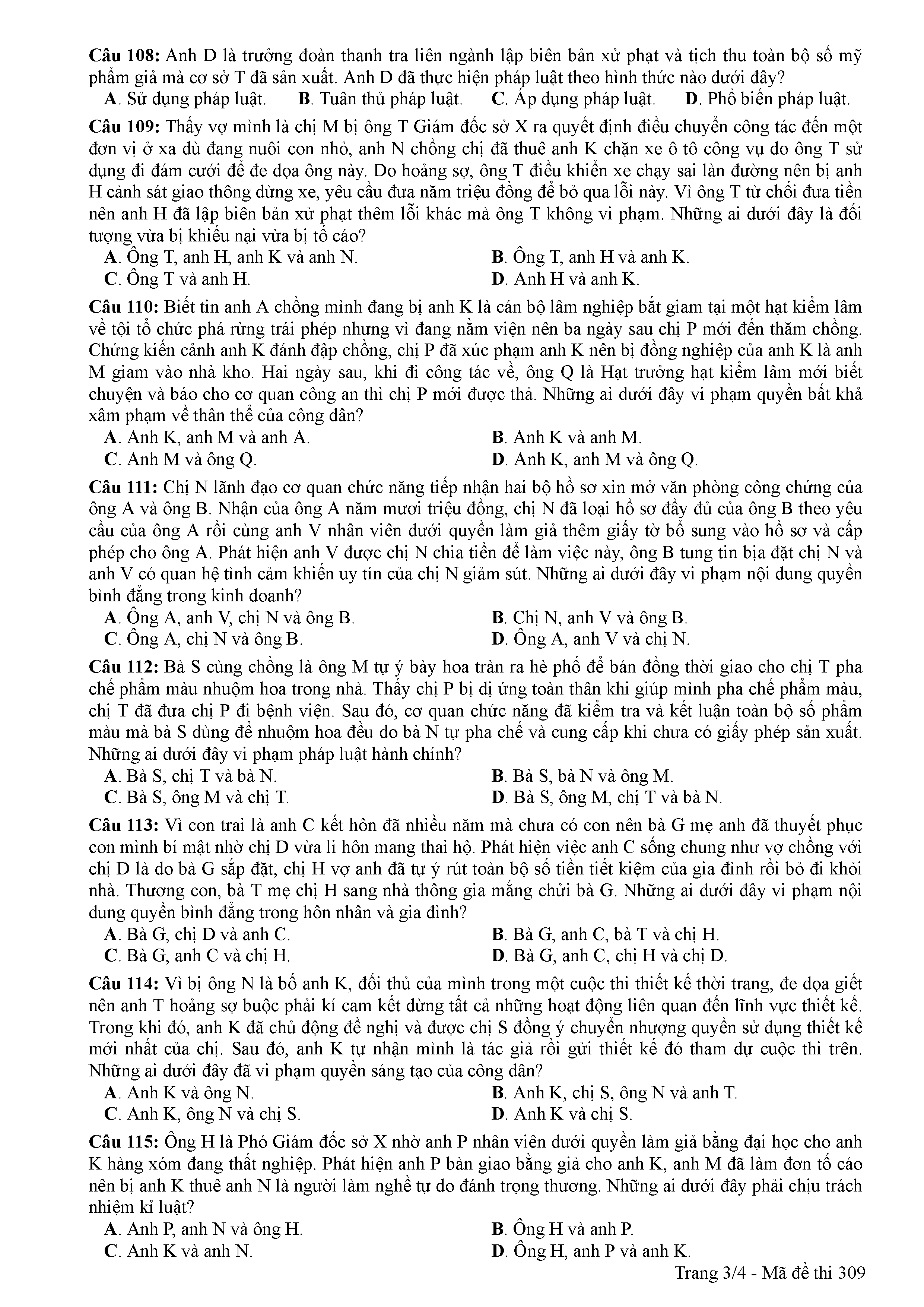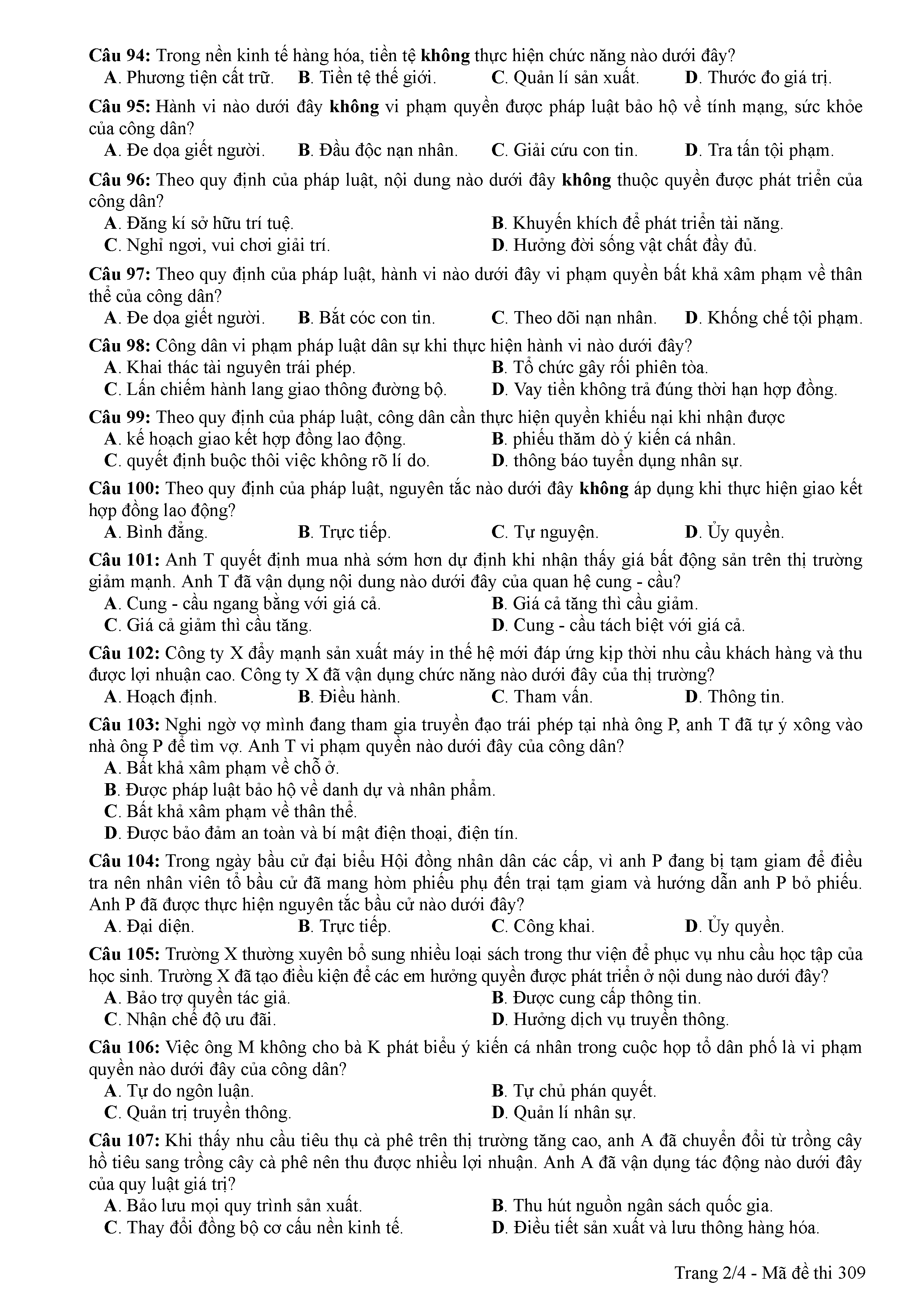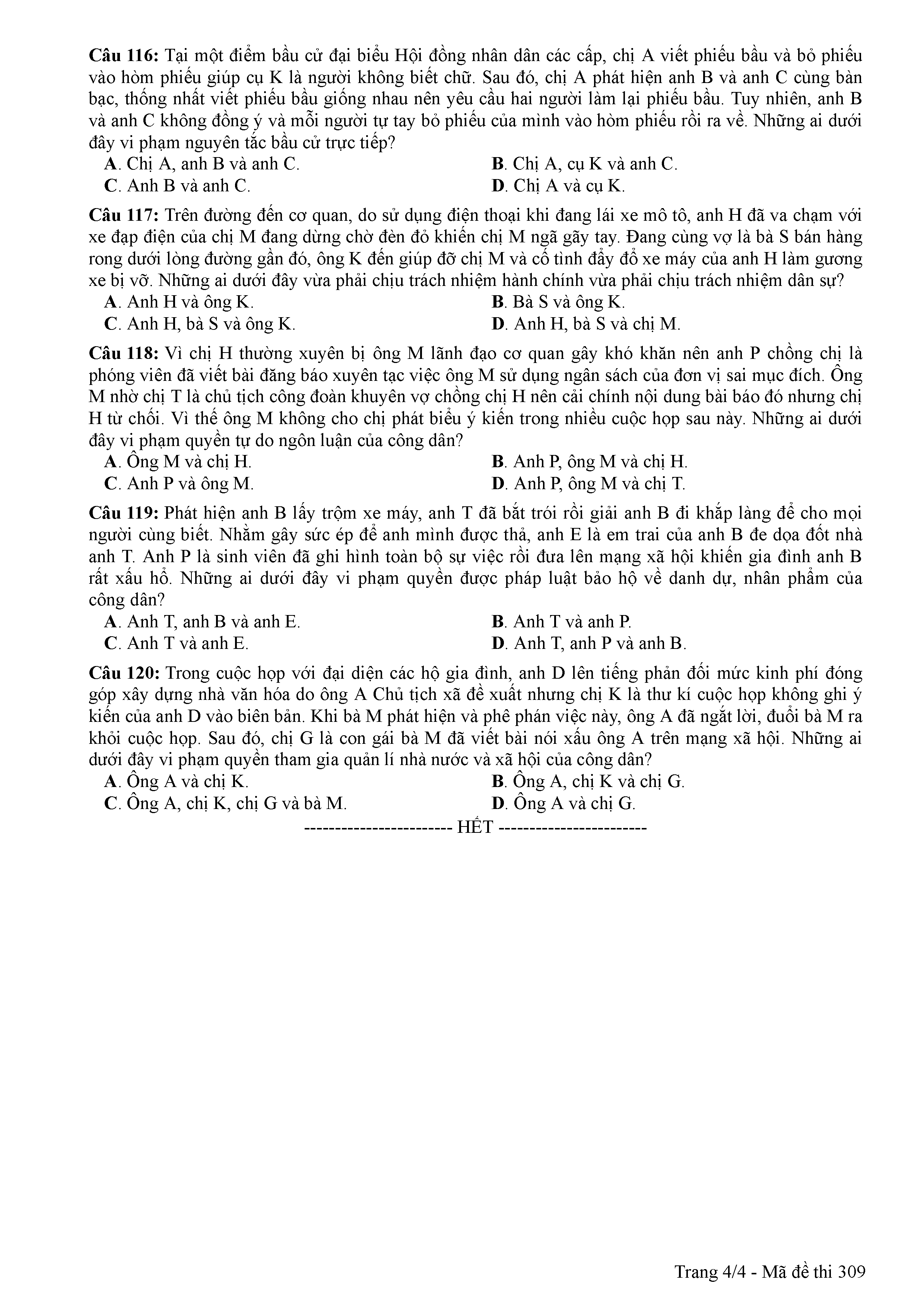 ĐỀ THI CHÍNH THỨC THPTQG NĂM 2017 - MÔN GDCD -MÃ ĐỀ 309