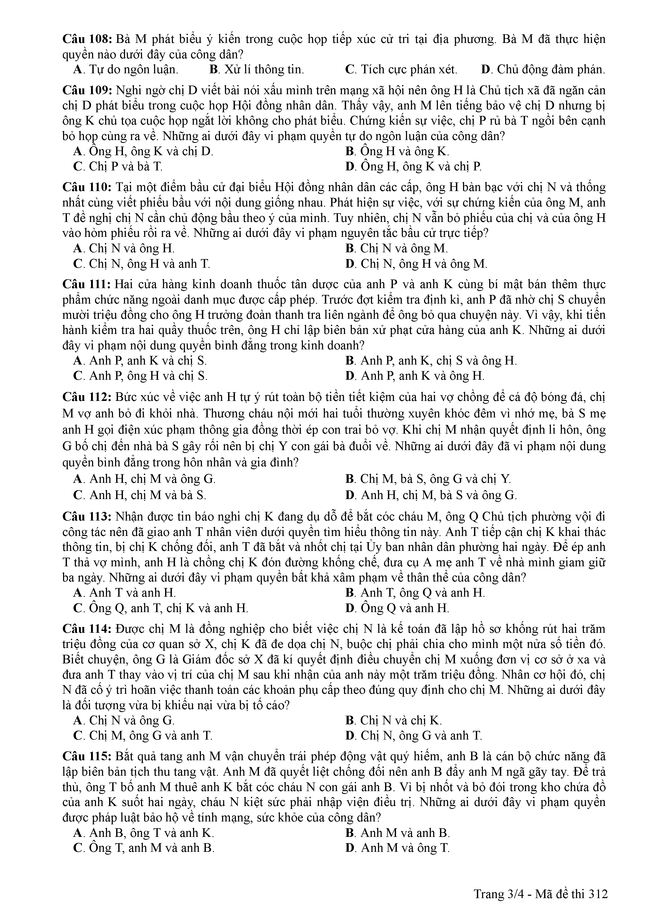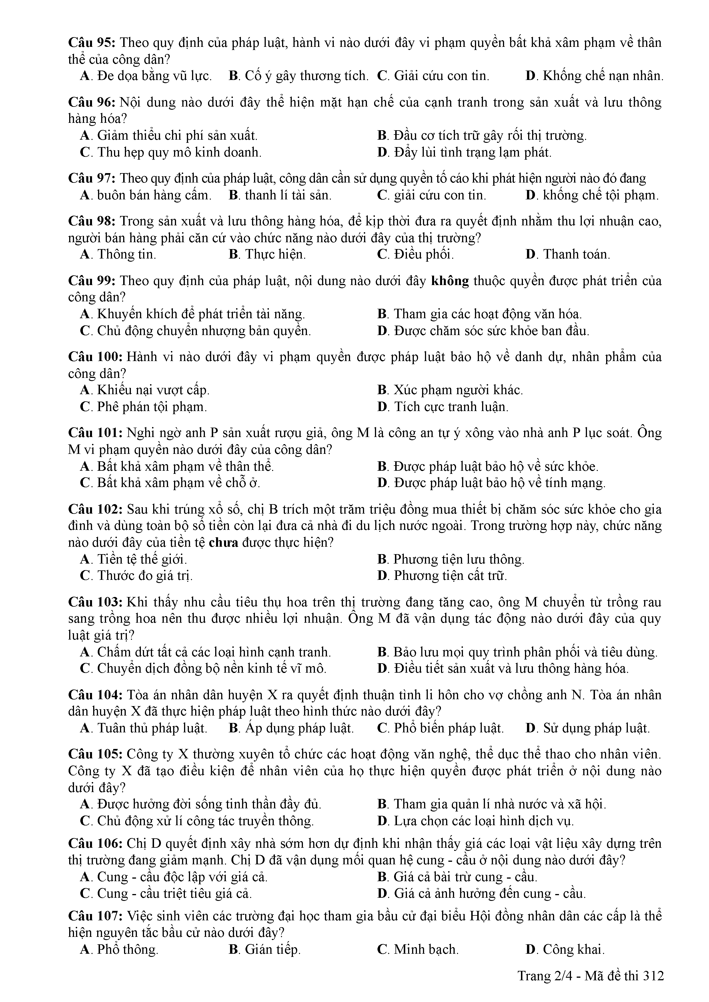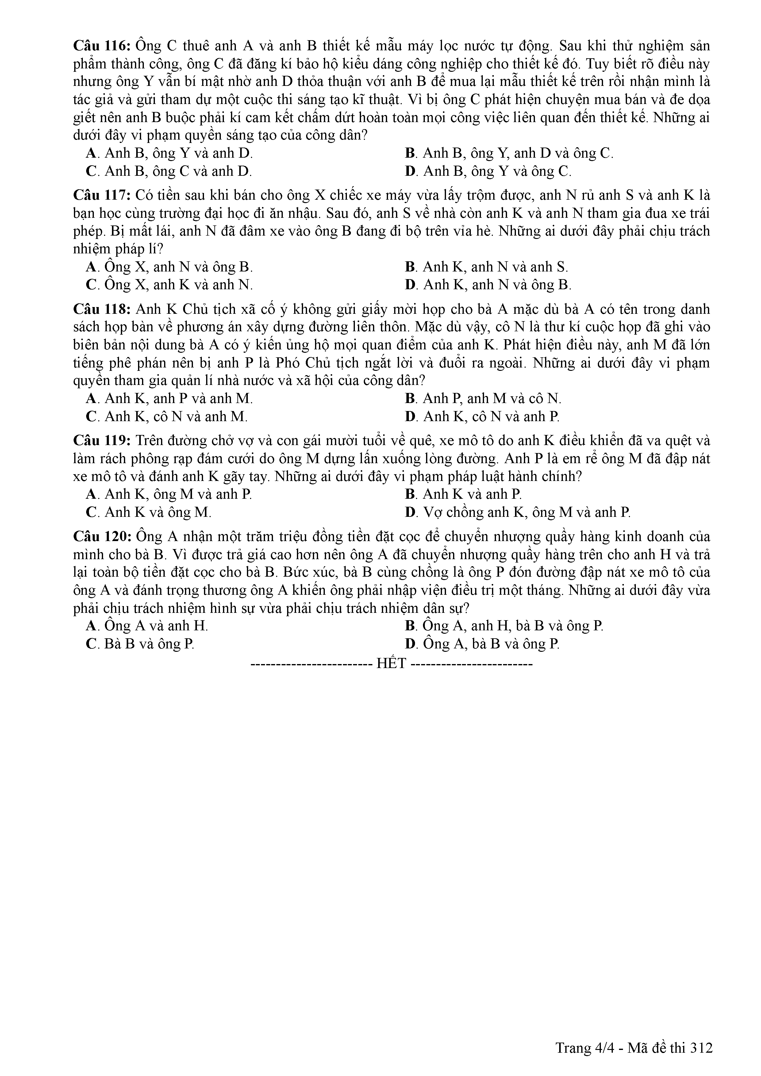 ĐỀ THI CHÍNH THỨC THPTQG NĂM 2017 - MÔN GDCD -MÃ ĐỀ 312