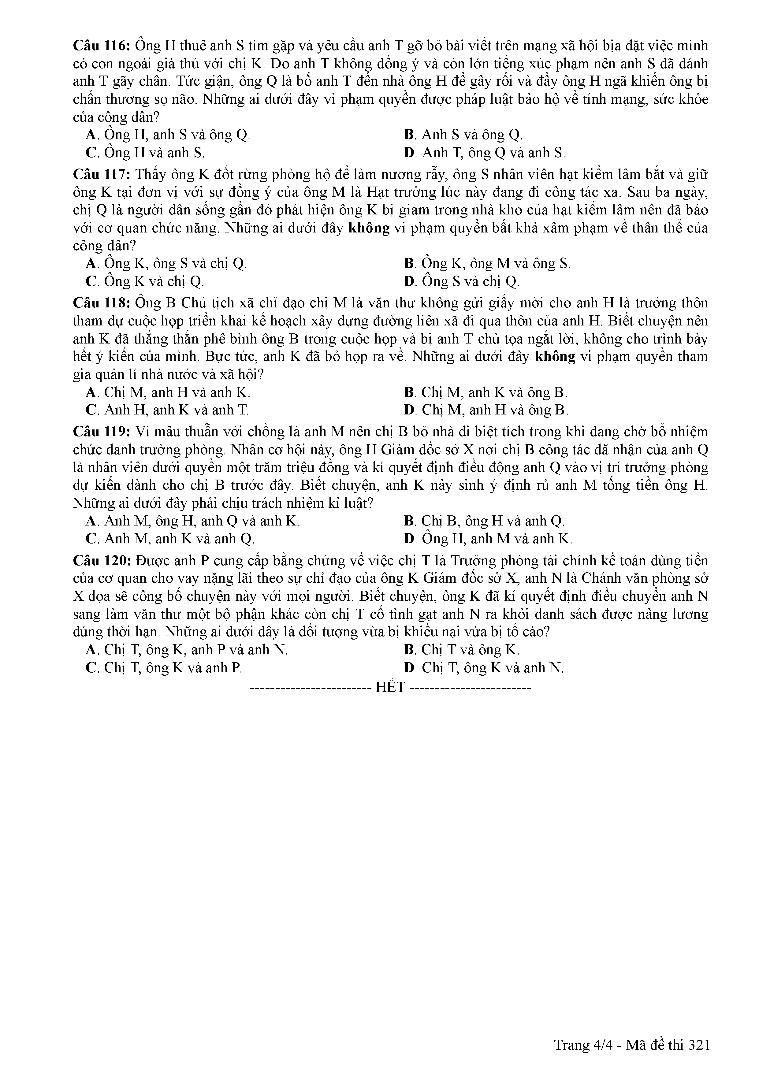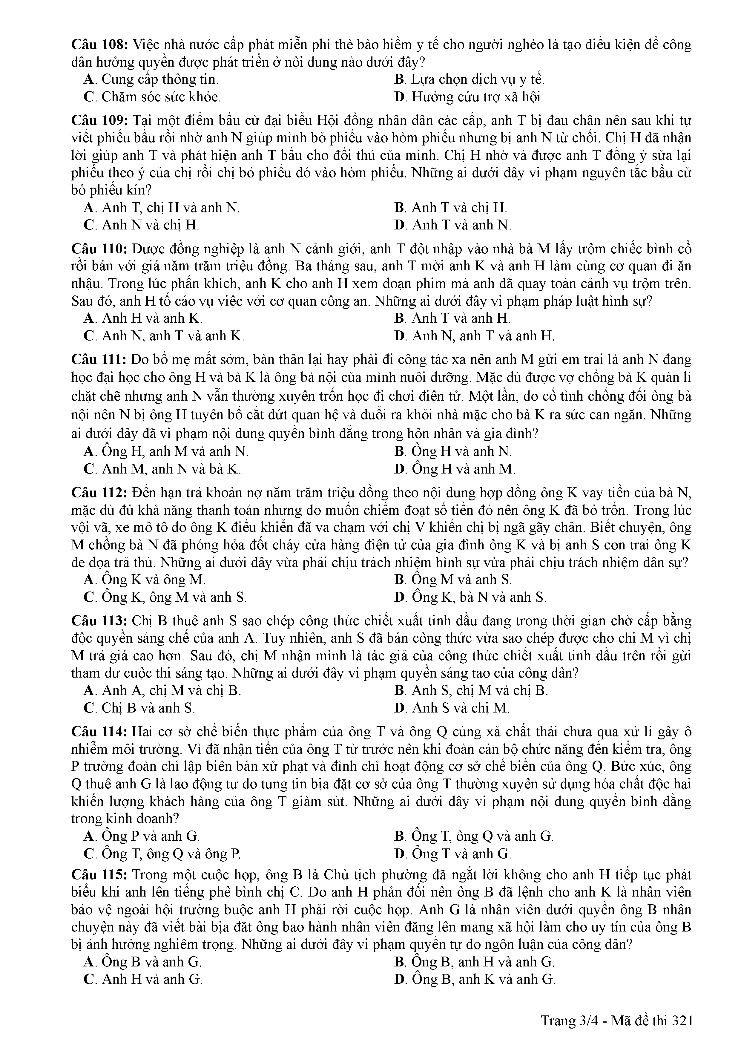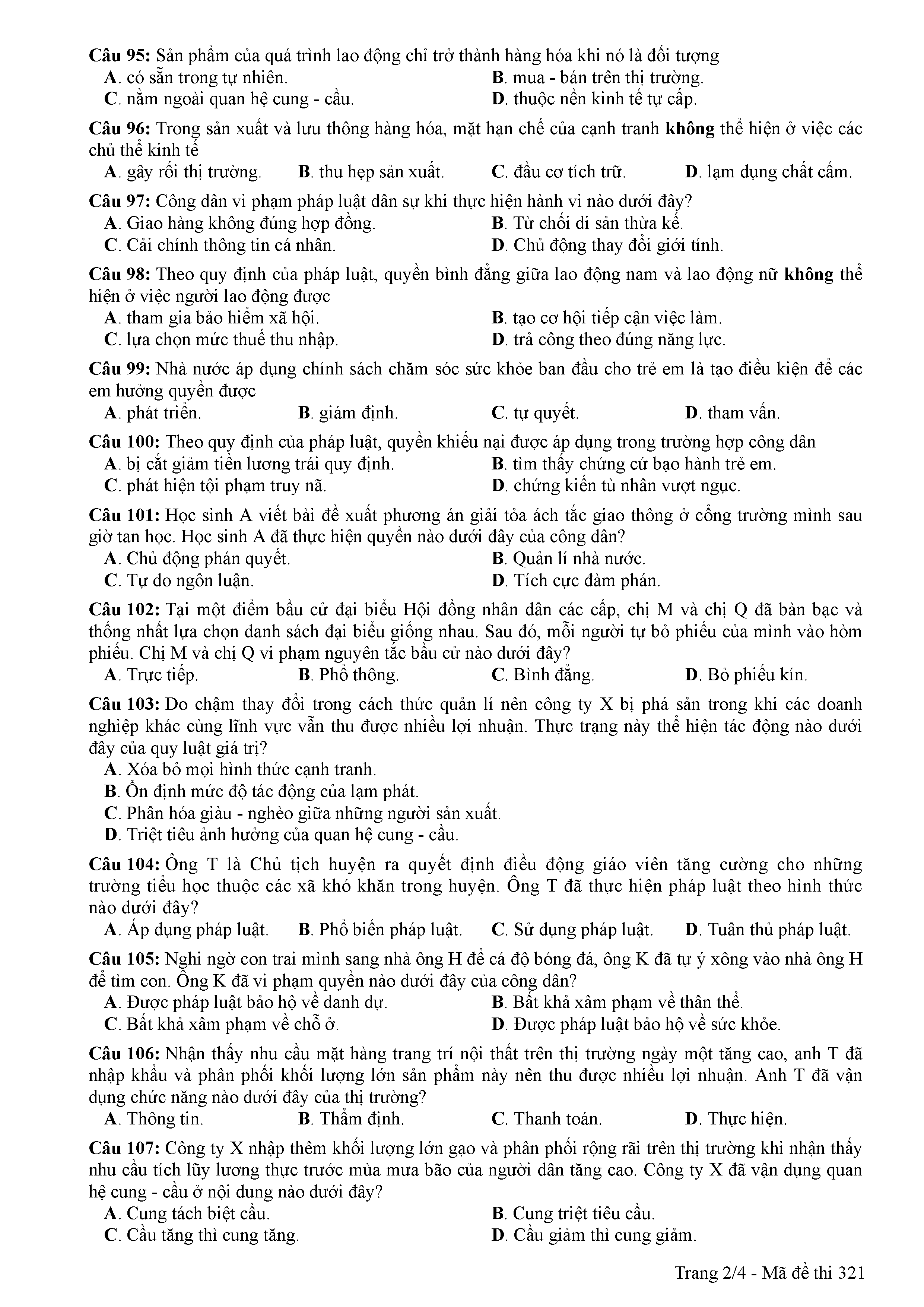 ĐỀ THI CHÍNH THỨC THPTQG NĂM 2017 - MÔN GDCD -MÃ ĐỀ 321
