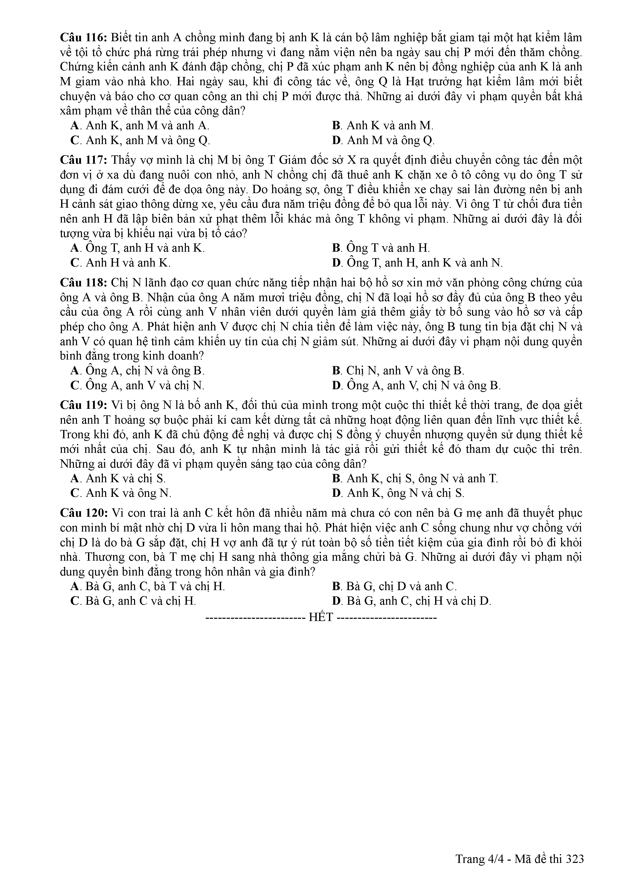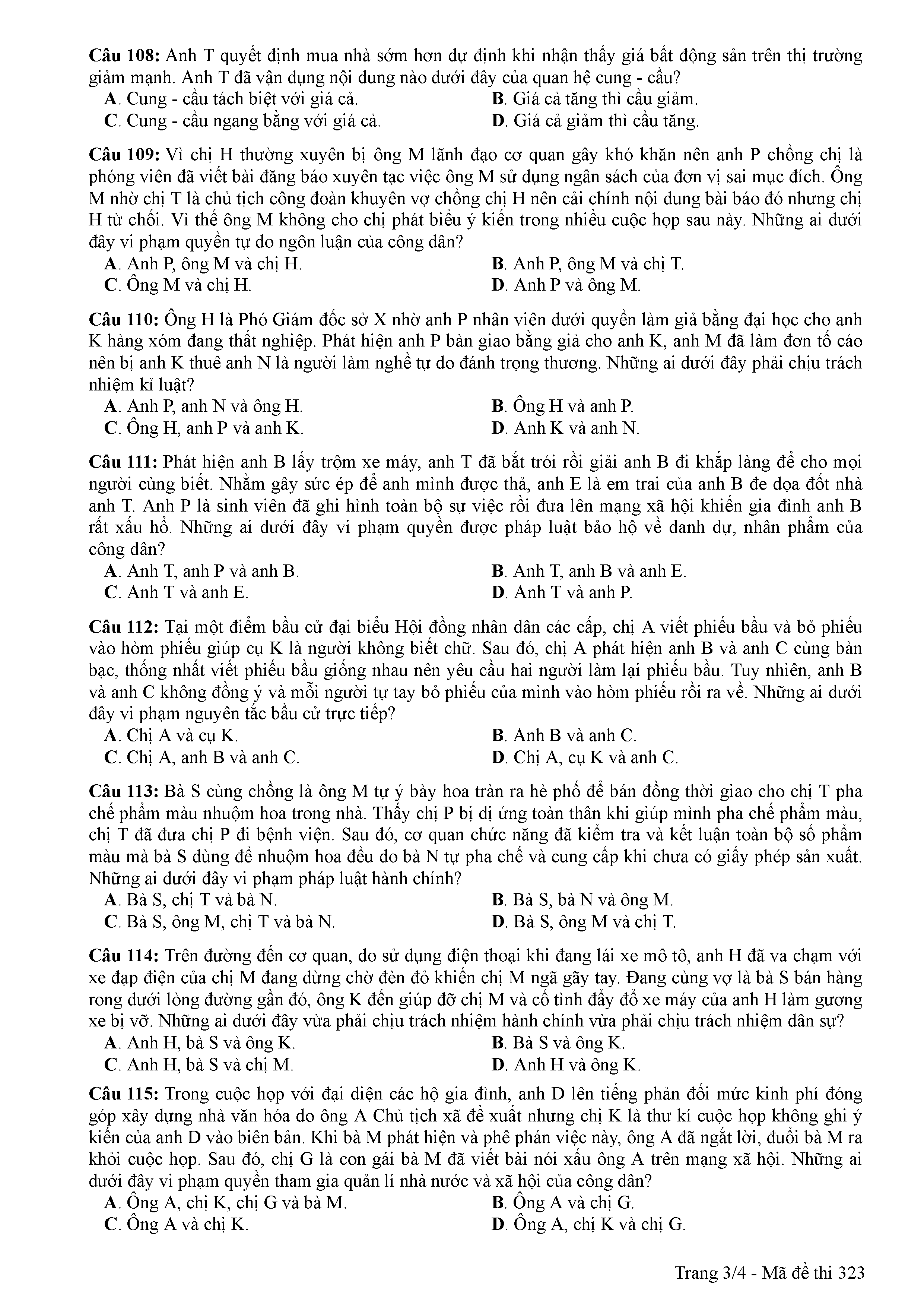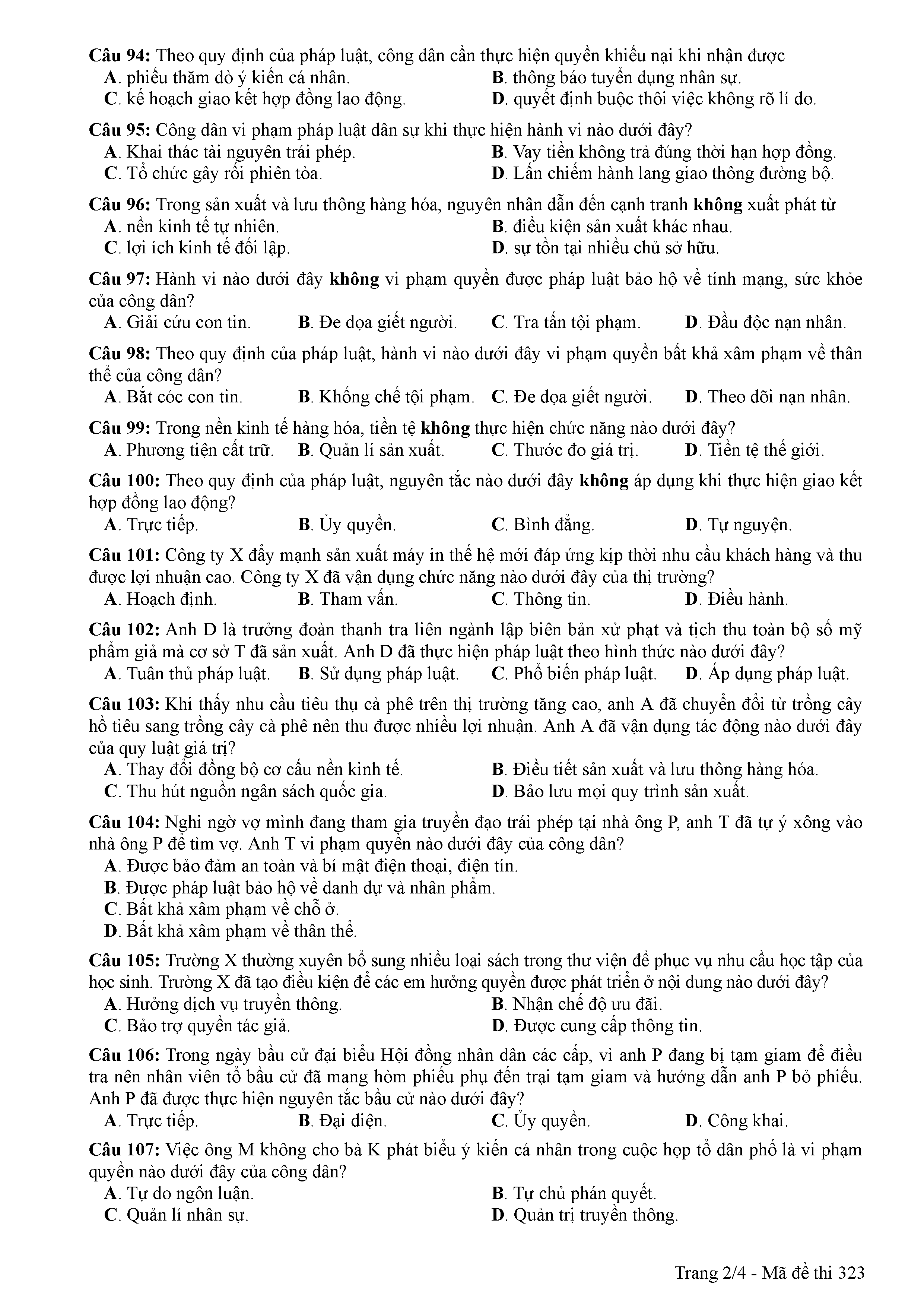 ĐỀ THI CHÍNH THỨC THPTQG NĂM 2017 - MÔN GDCD -MÃ ĐỀ 323