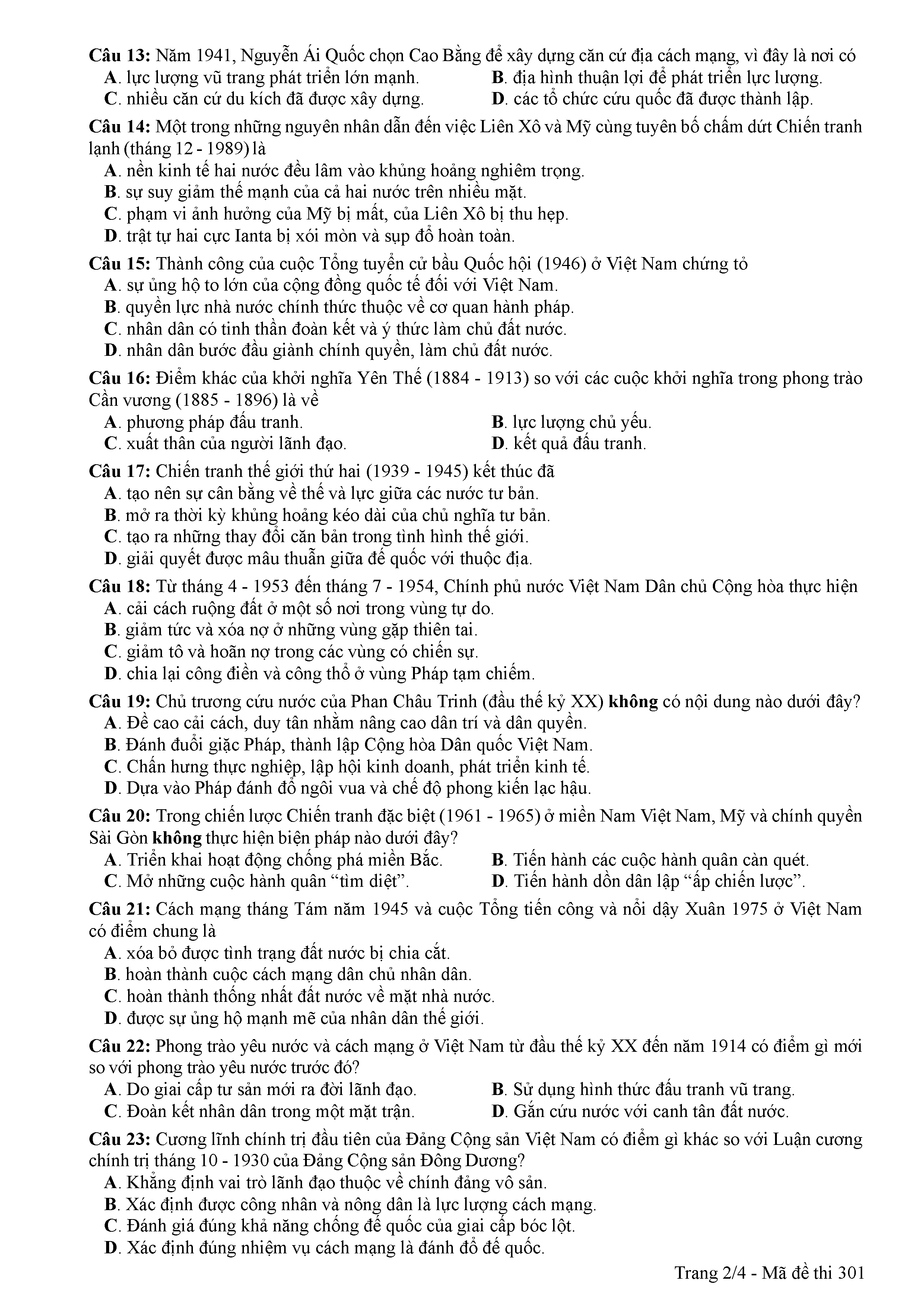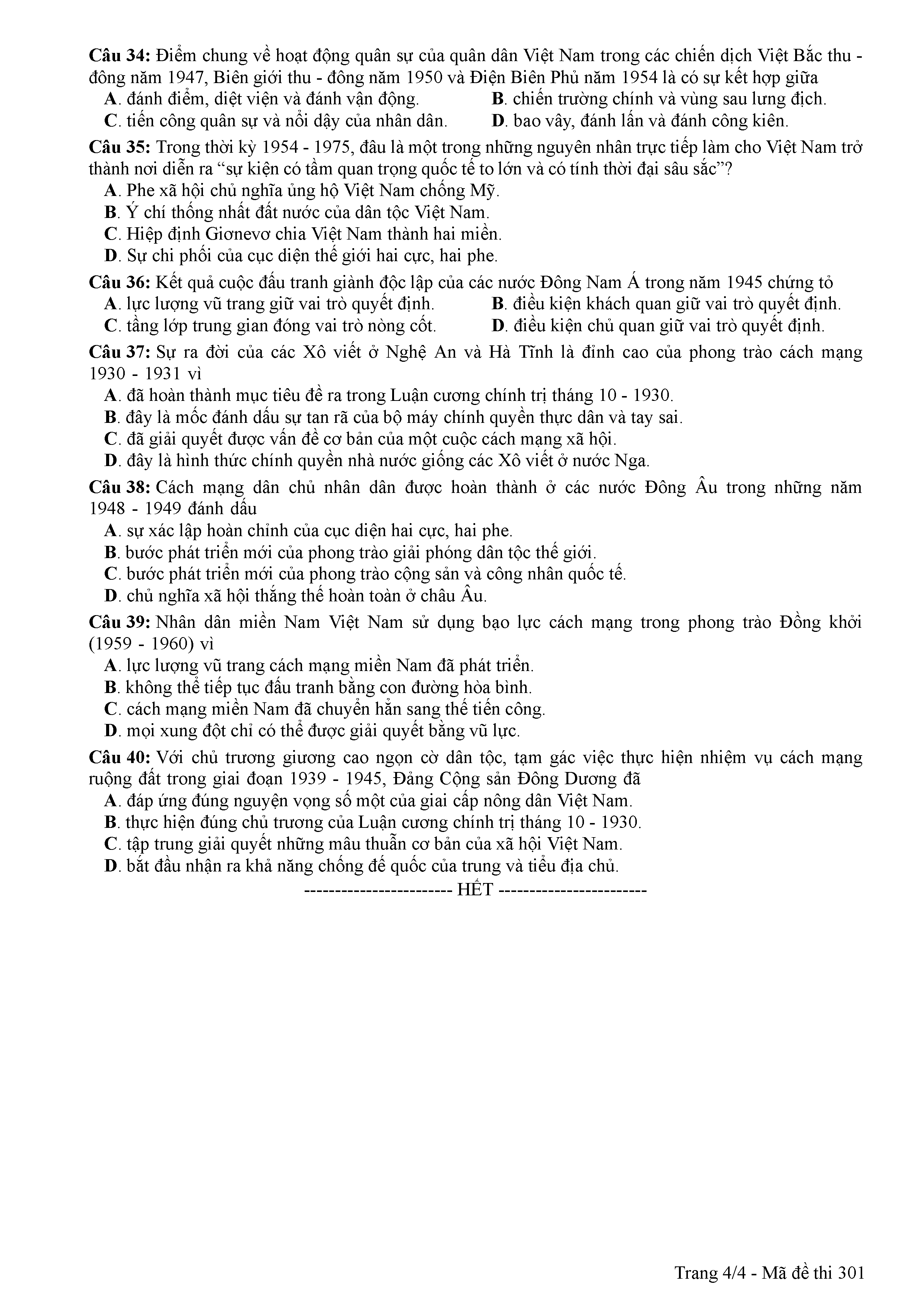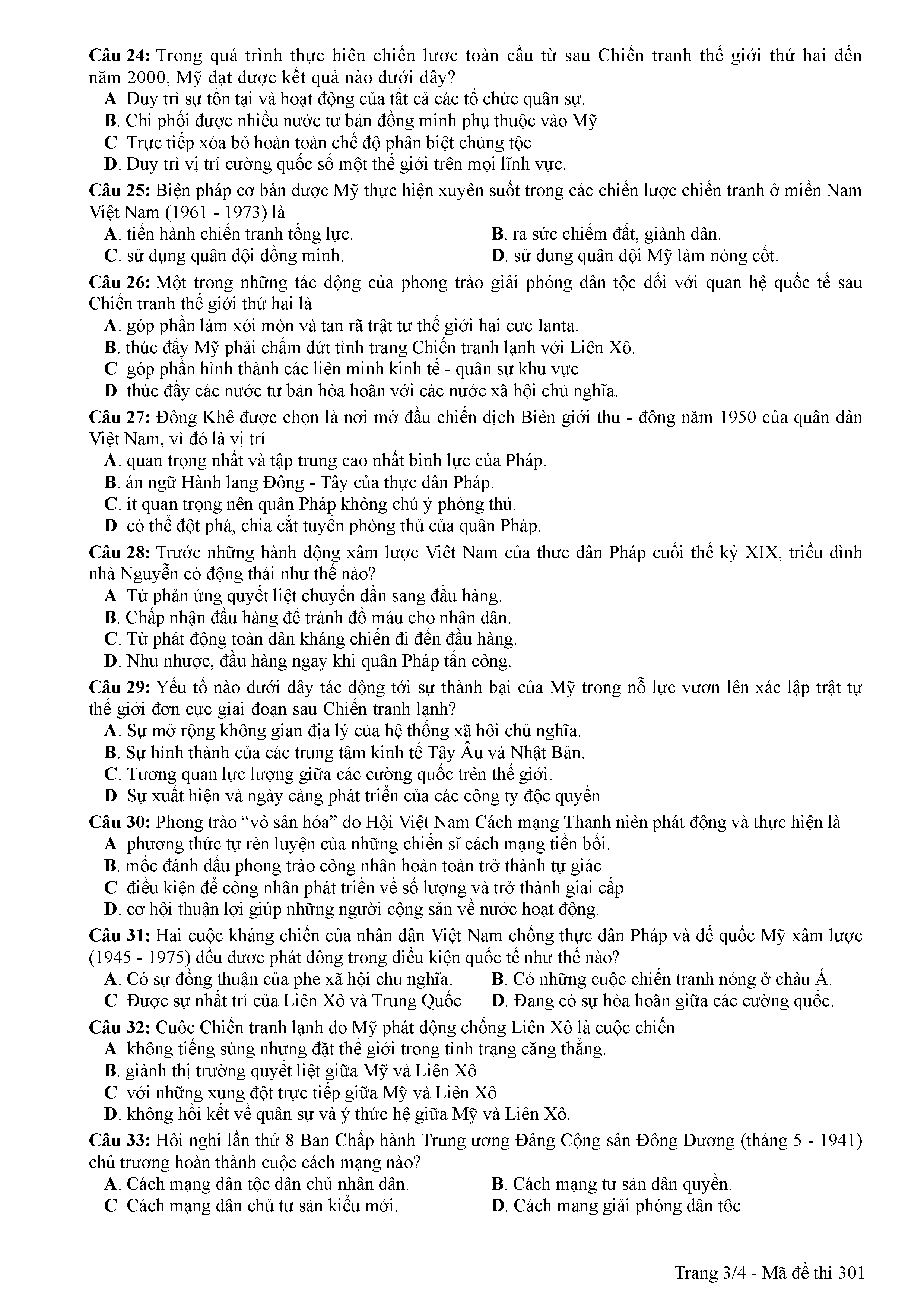 ĐỀ THI CHÍNH THỨC THPTQG NĂM 2017 - MÔN LỊCH SỬ-MÃ ĐỀ 301