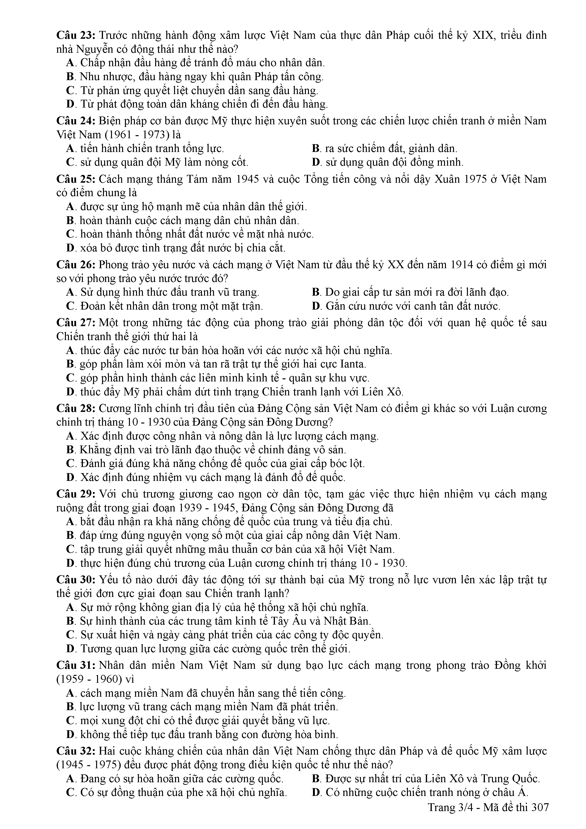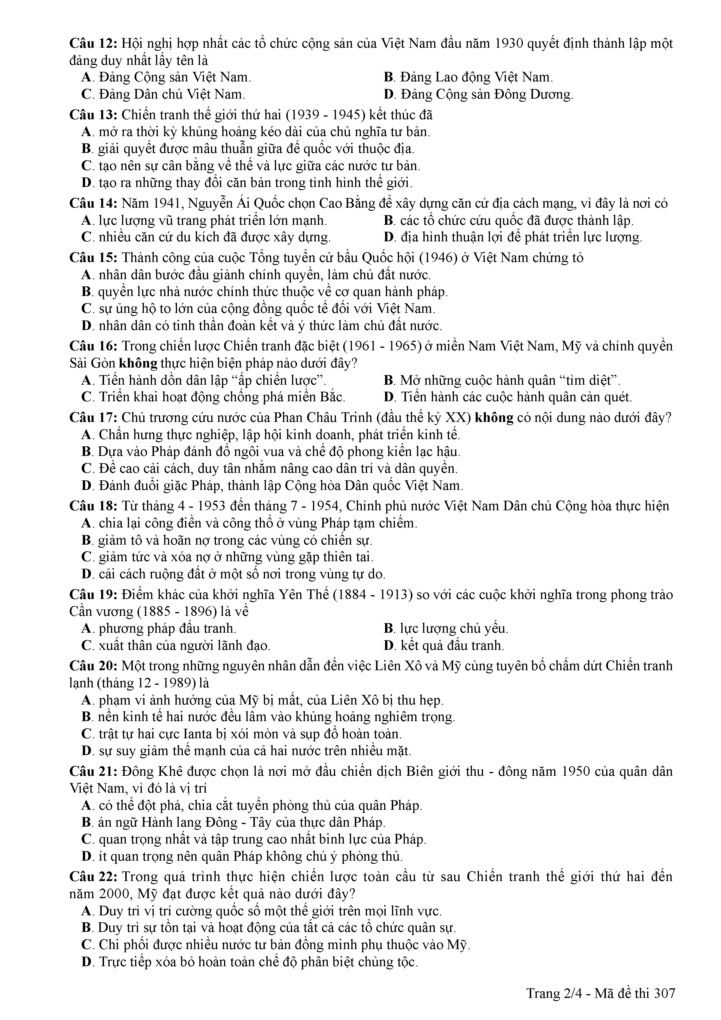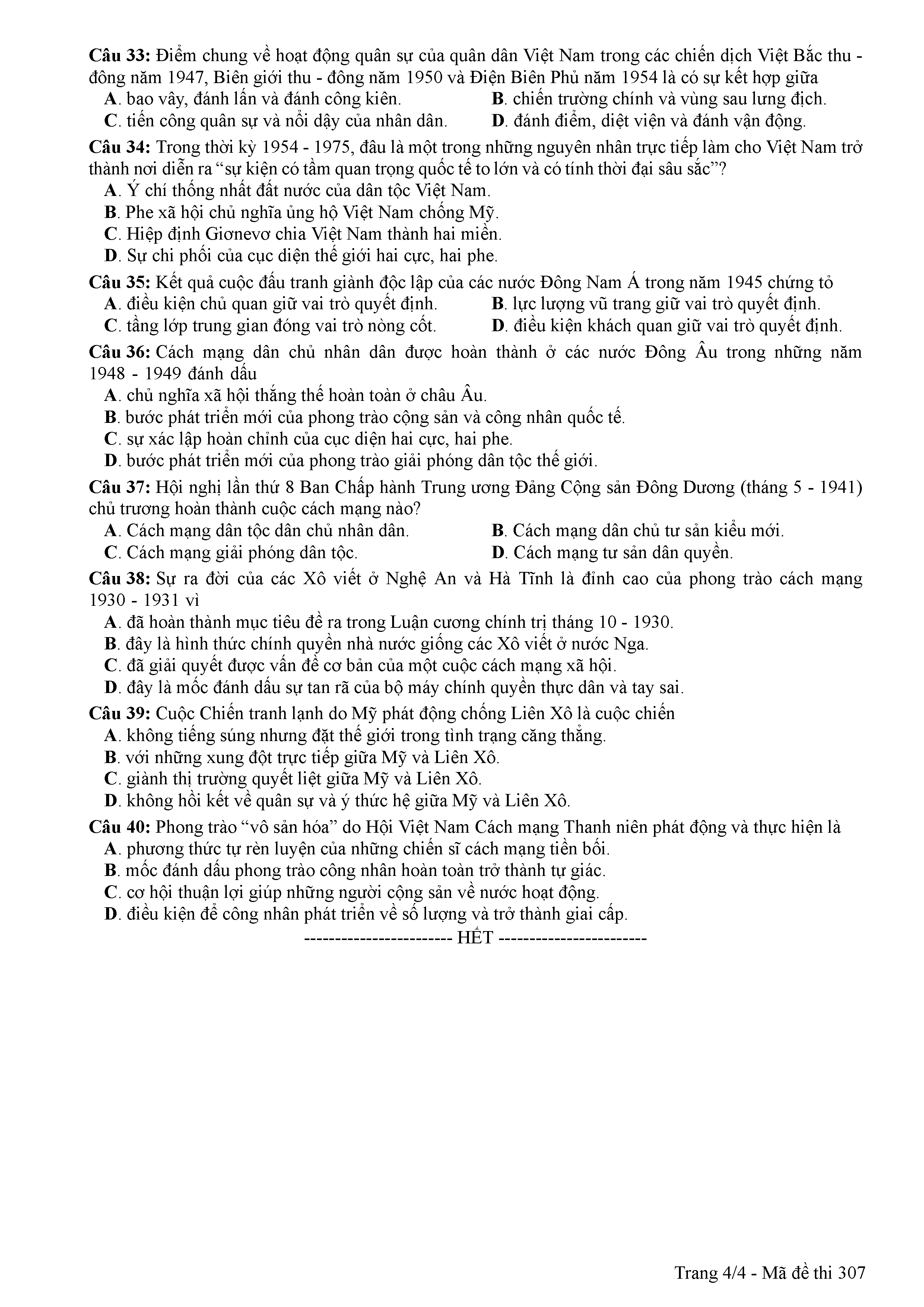ĐỀ THI CHÍNH THỨC THPTQG NĂM 2017 - MÔN LỊCH SỬ-MÃ ĐỀ 307