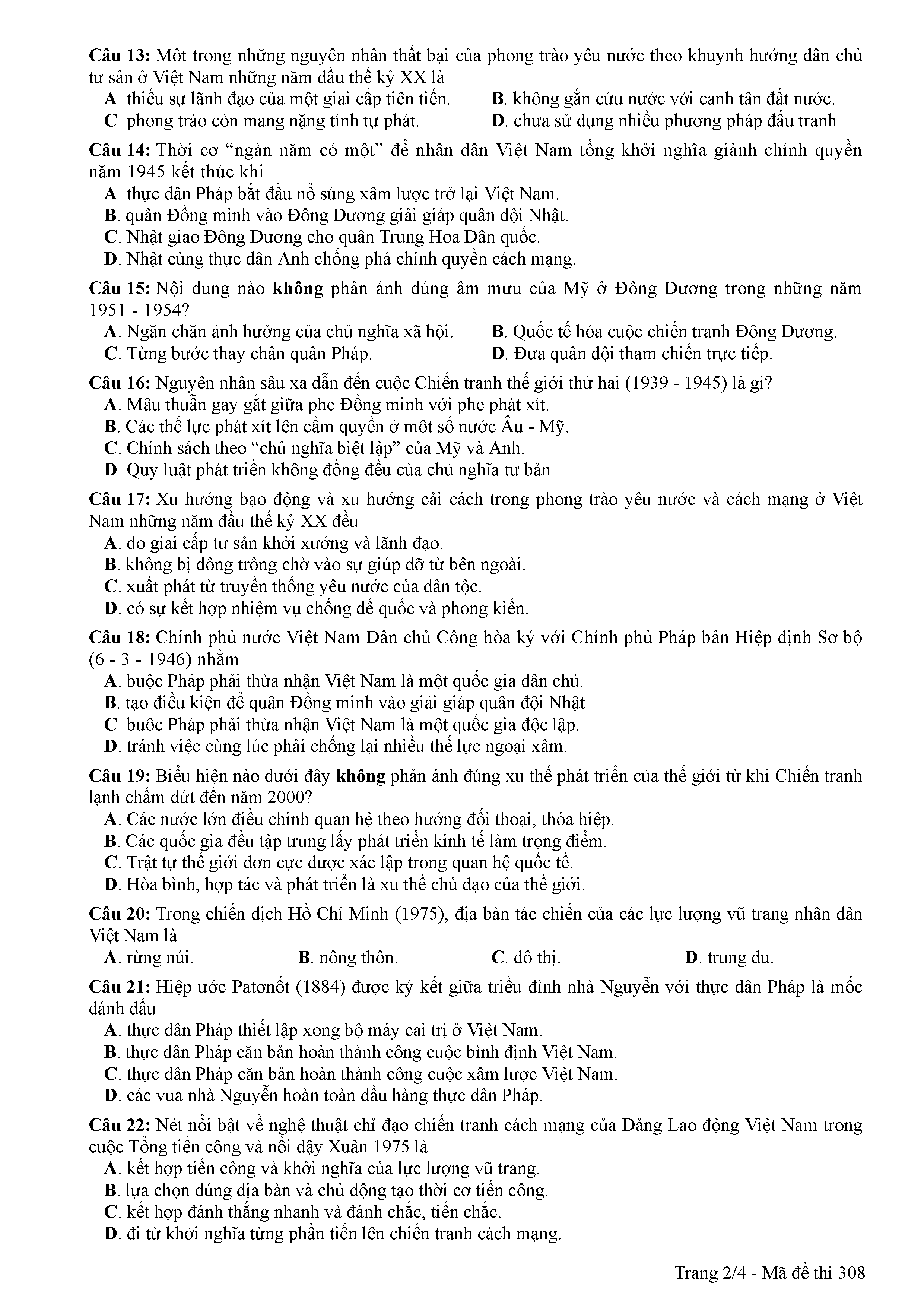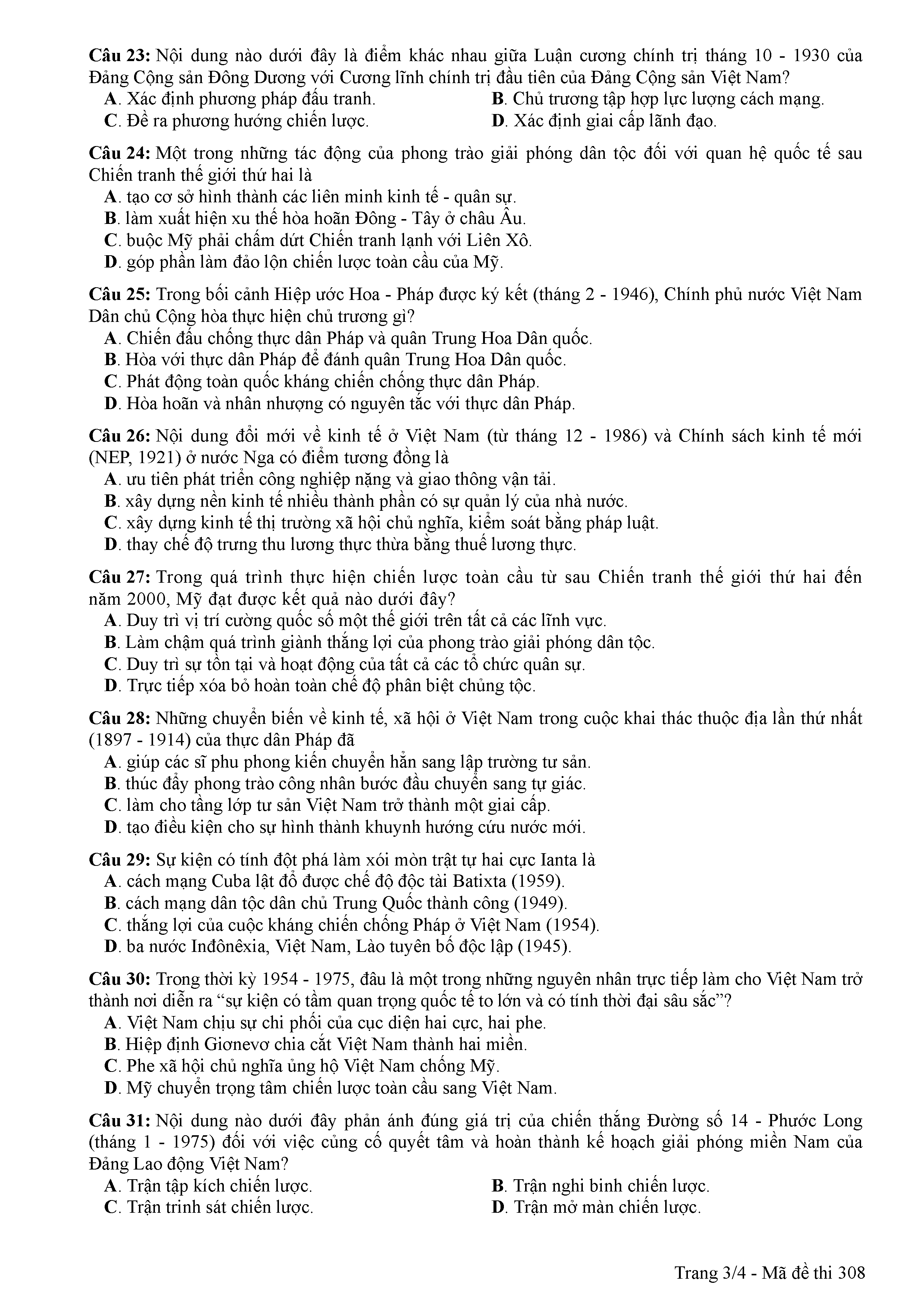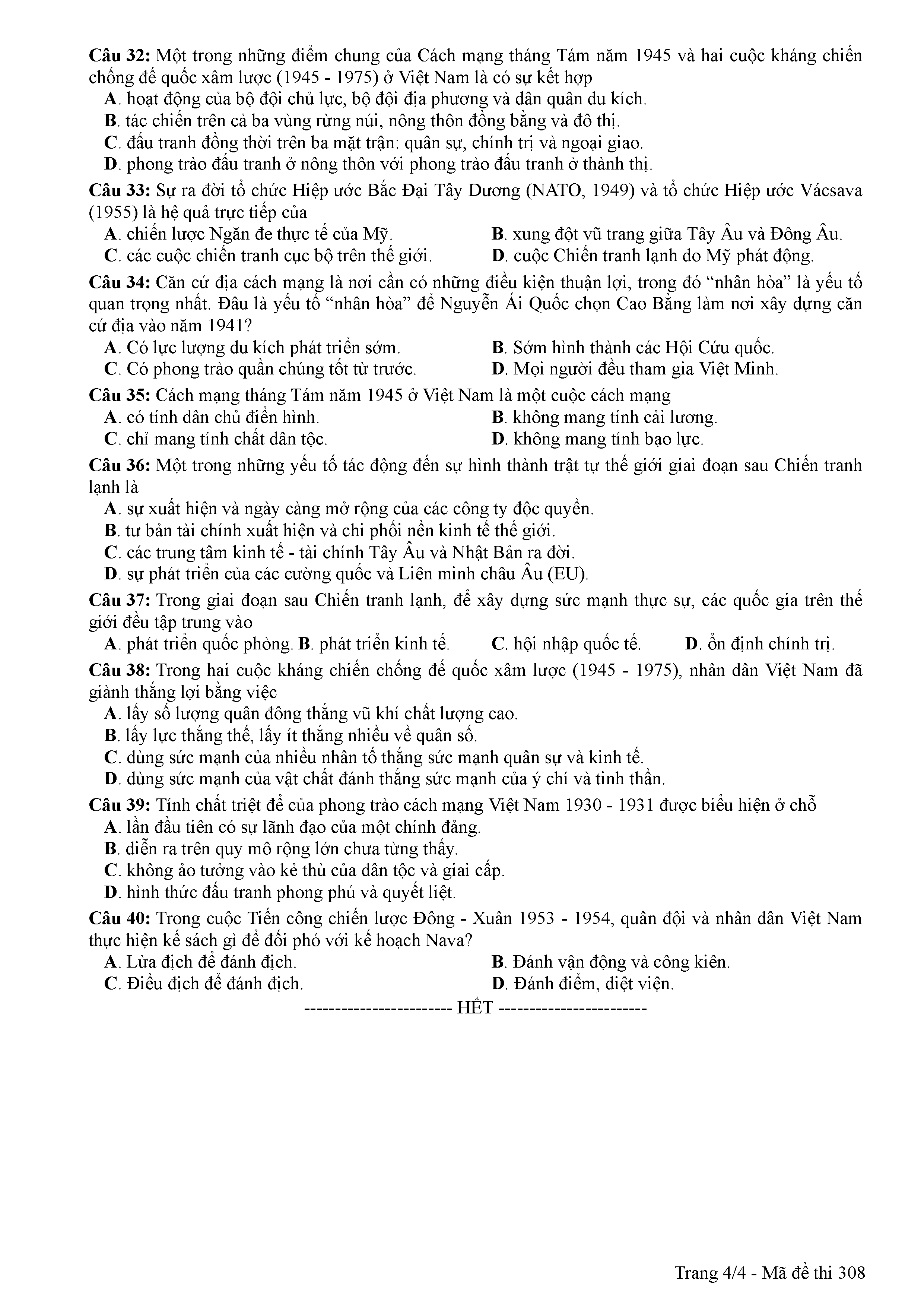 ĐỀ THI CHÍNH THỨC THPTQG NĂM 2017 - MÔN LỊCH SỬ-MÃ ĐỀ 308