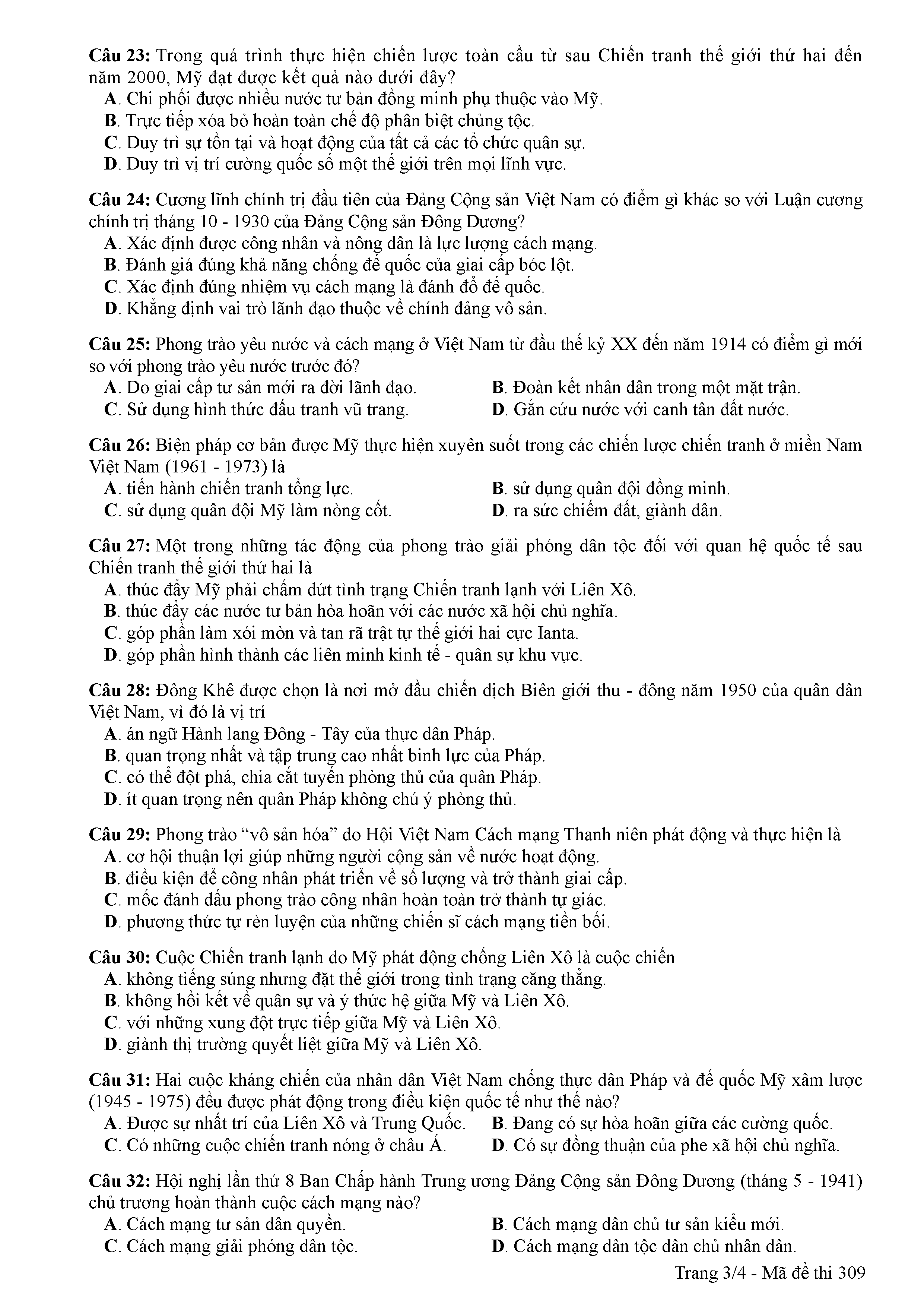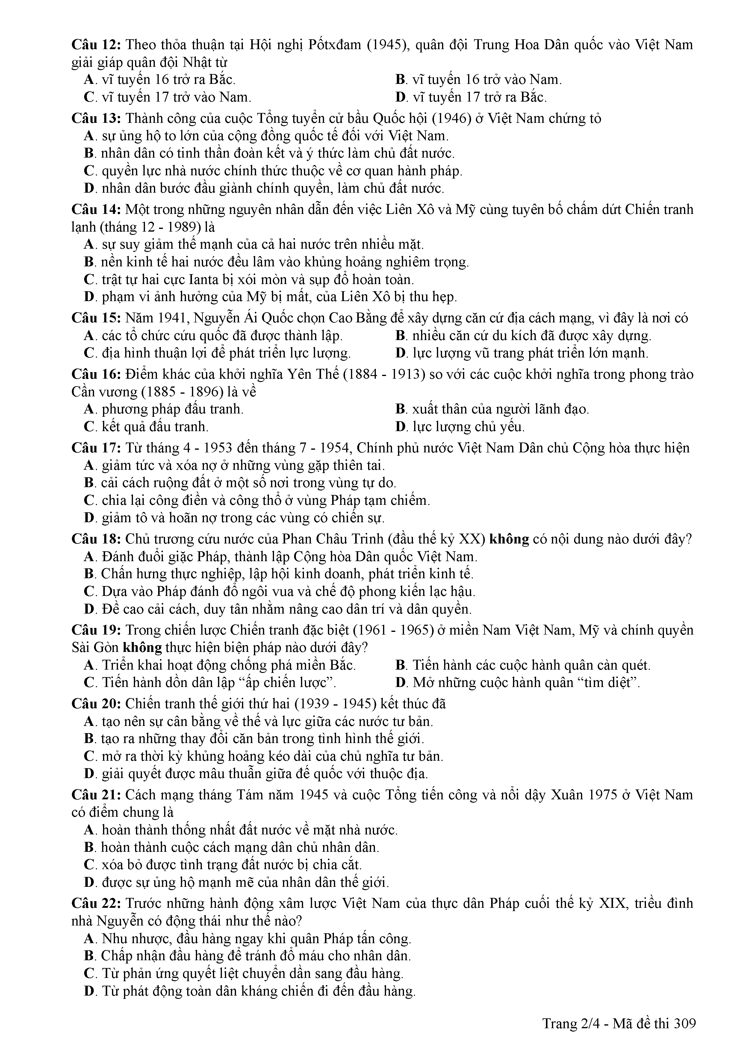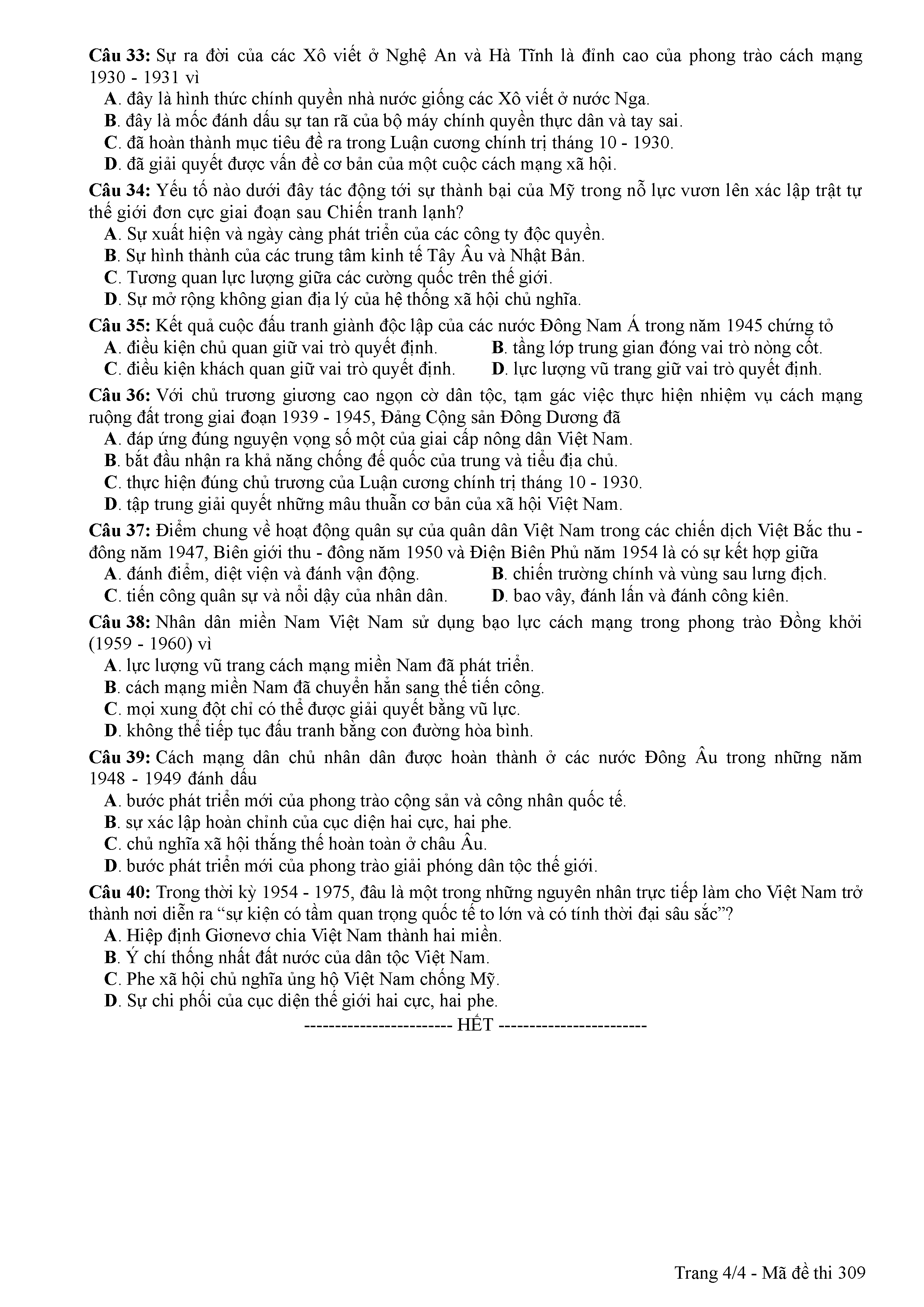 ĐỀ THI CHÍNH THỨC THPTQG NĂM 2017 - MÔN LỊCH SỬ-MÃ ĐỀ 309