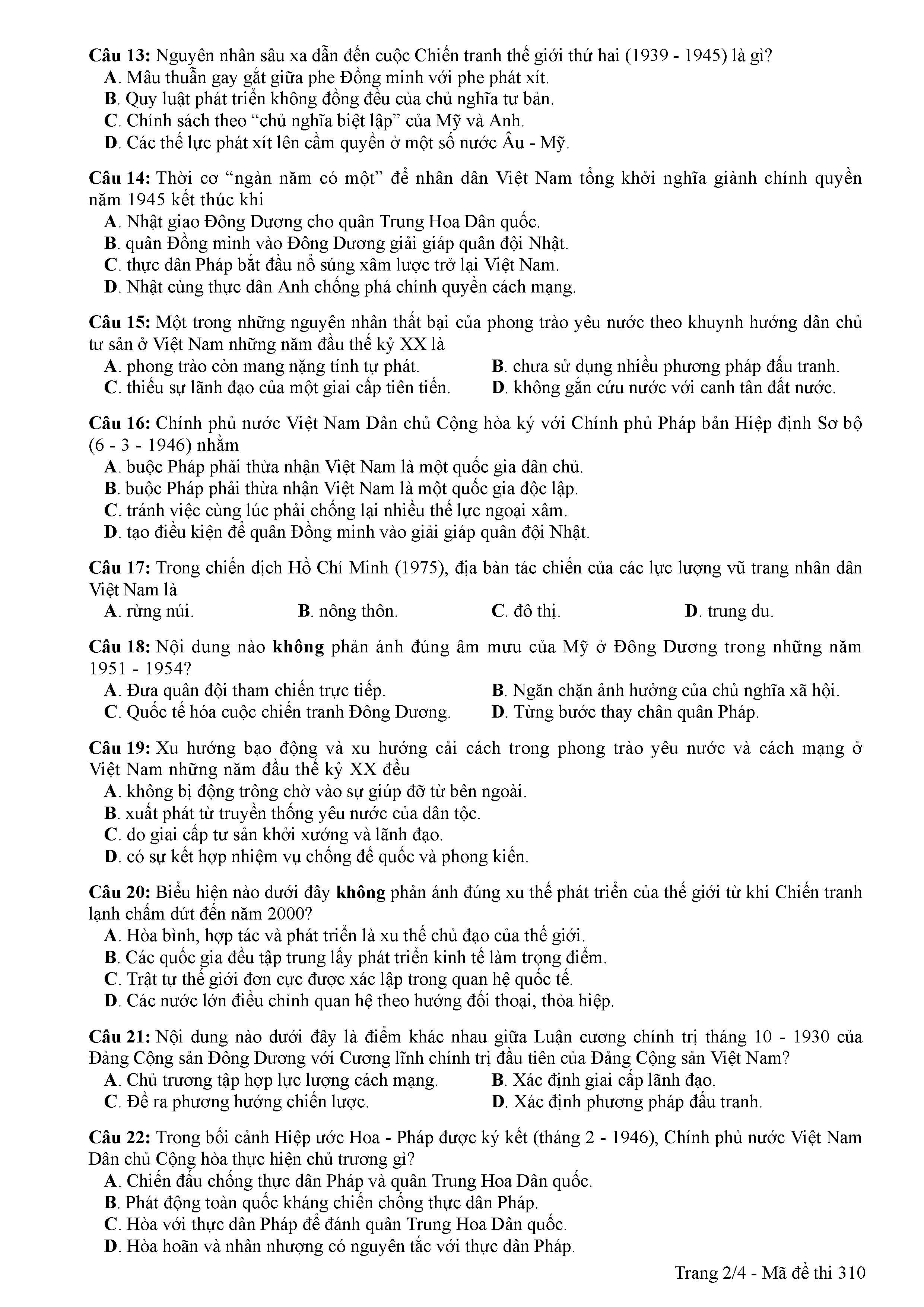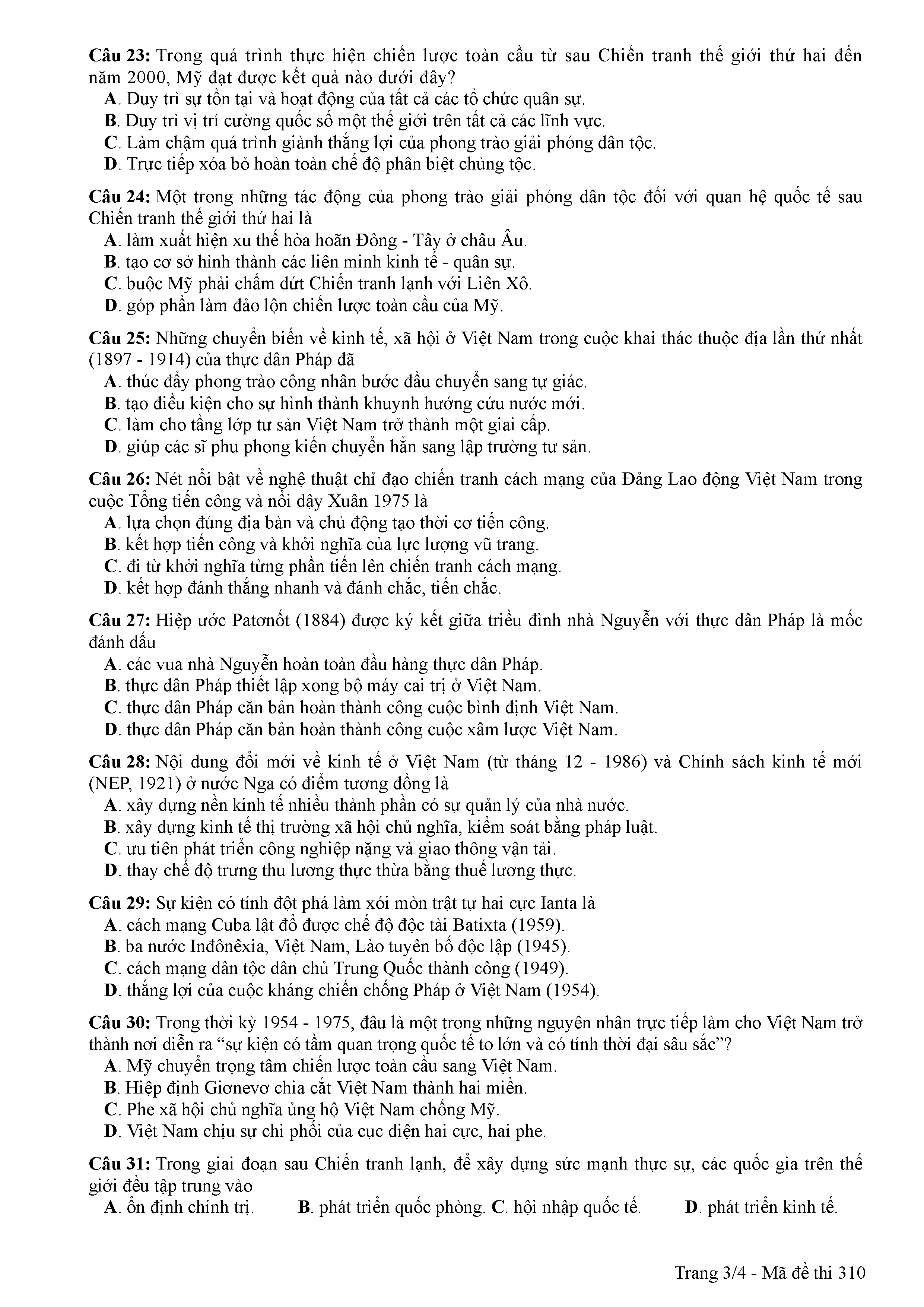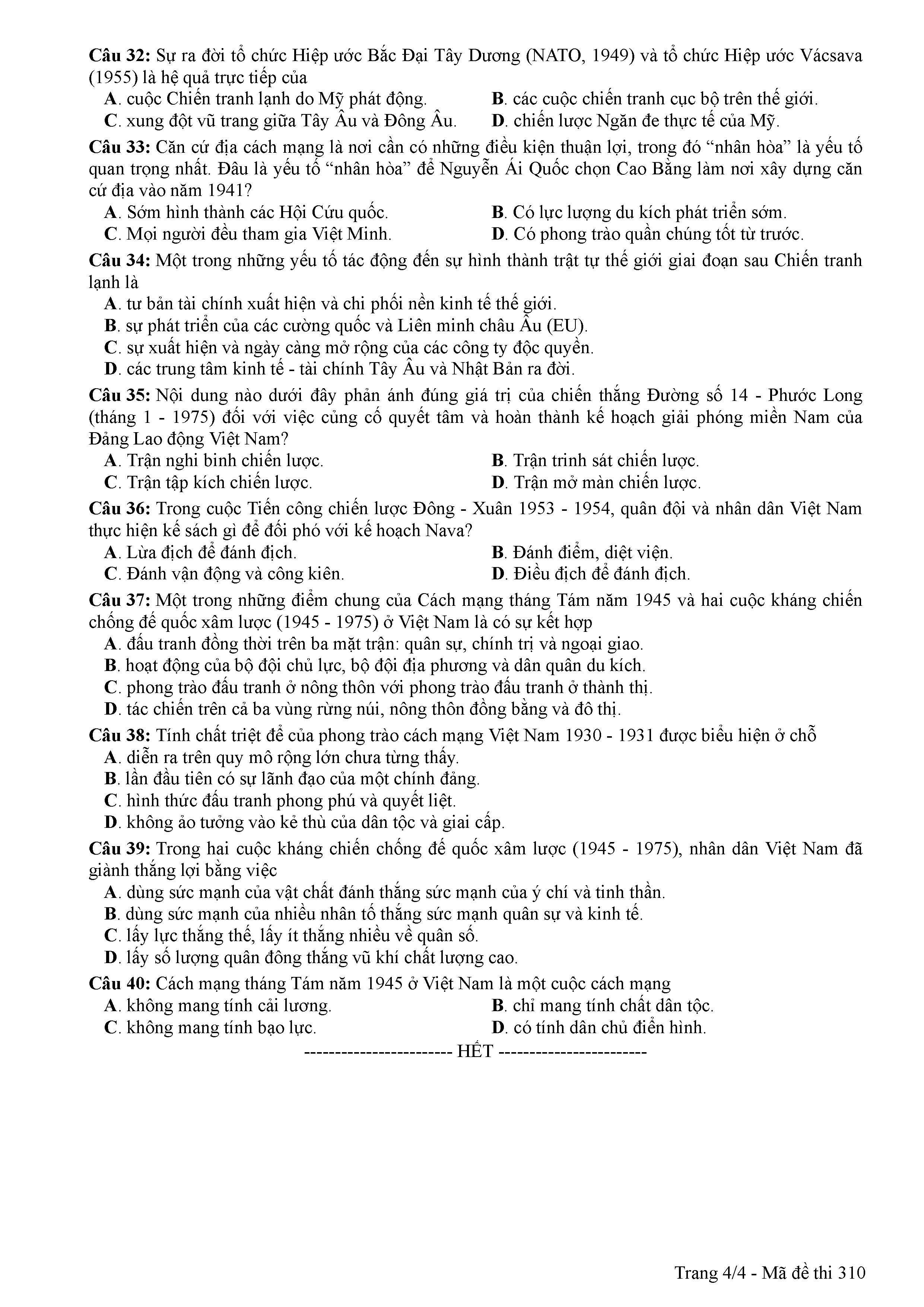 ĐỀ THI CHÍNH THỨC THPTQG NĂM 2017 - MÔN LỊCH SỬ-MÃ ĐỀ 310