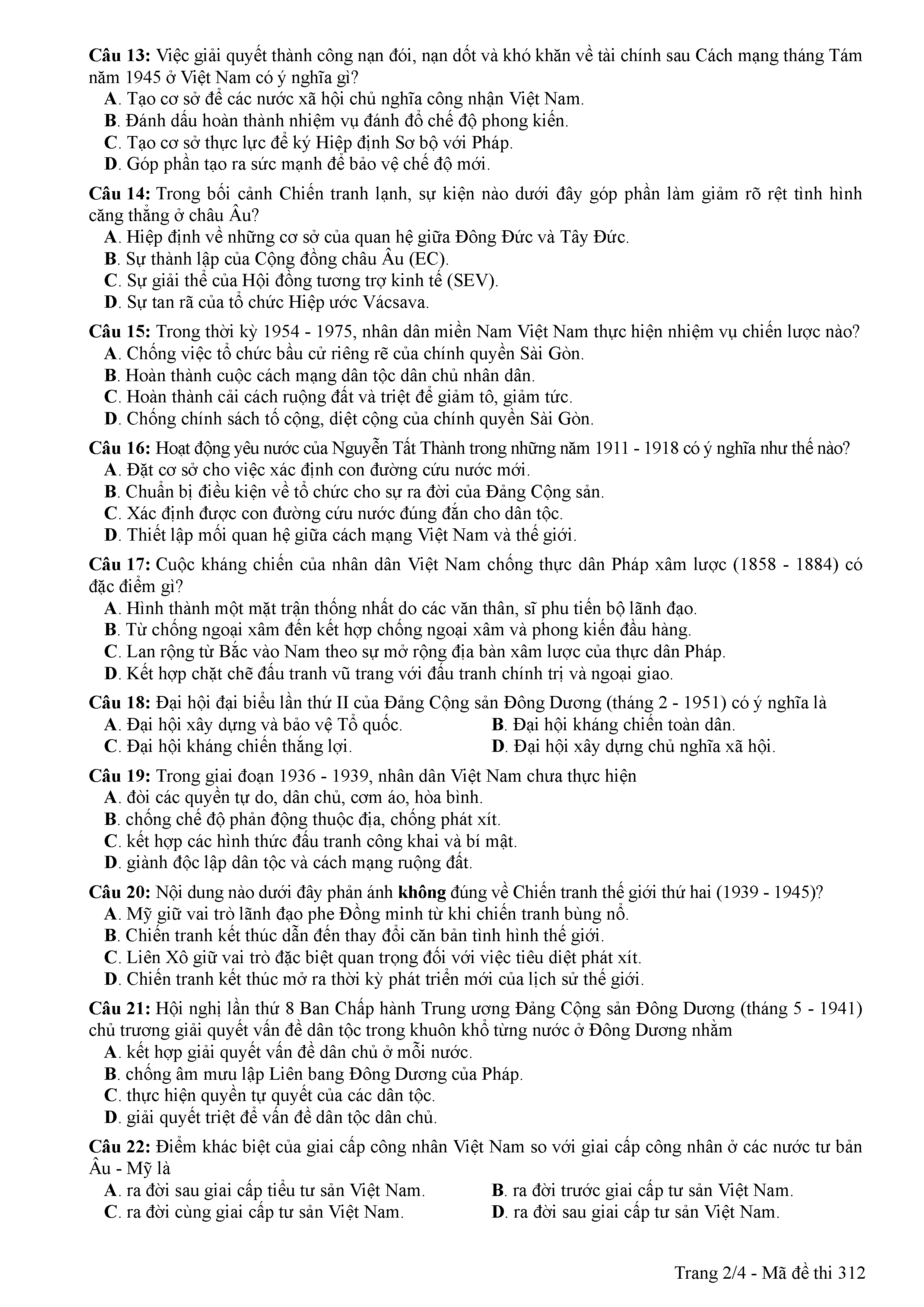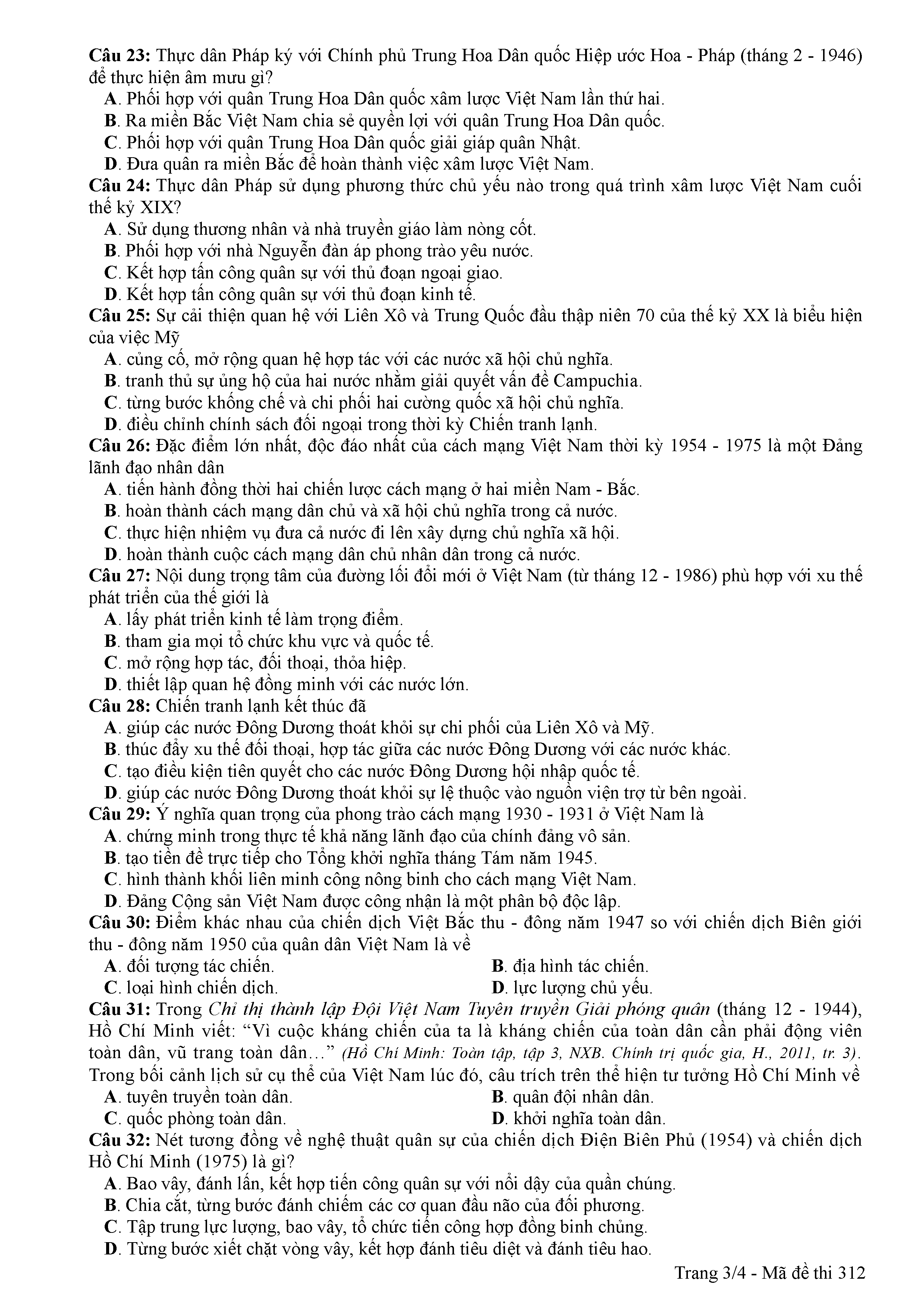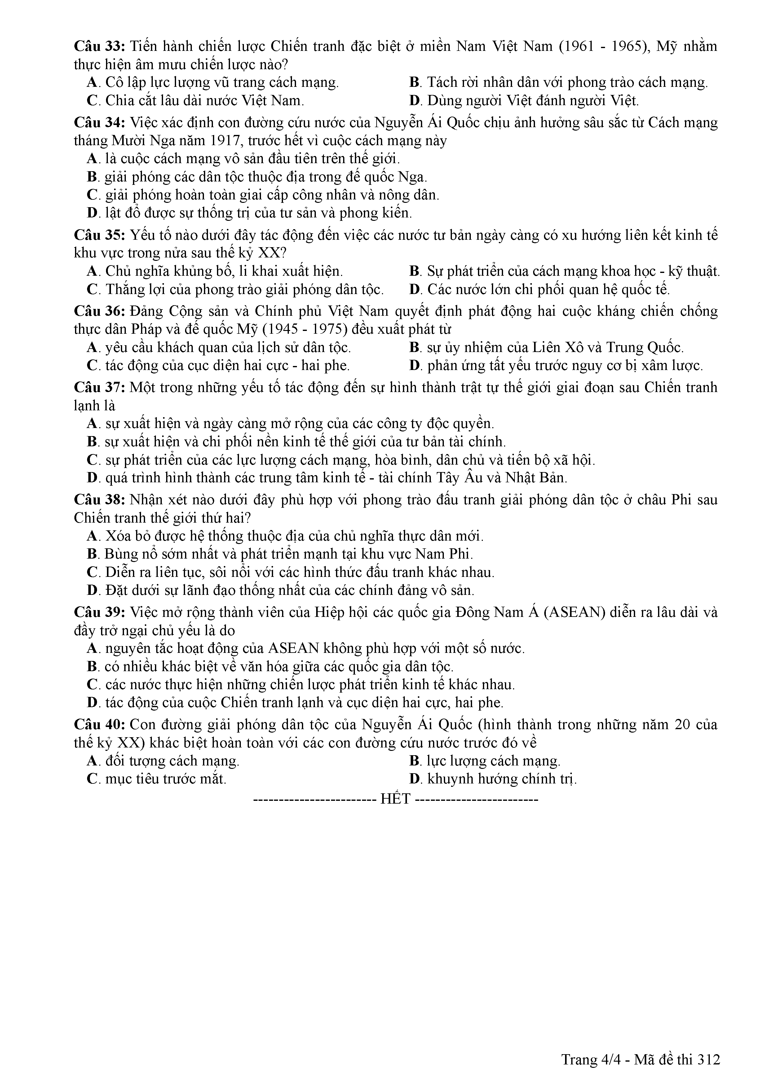 ĐỀ THI CHÍNH THỨC THPTQG NĂM 2017 - MÔN LỊCH SỬ-MÃ ĐỀ 312