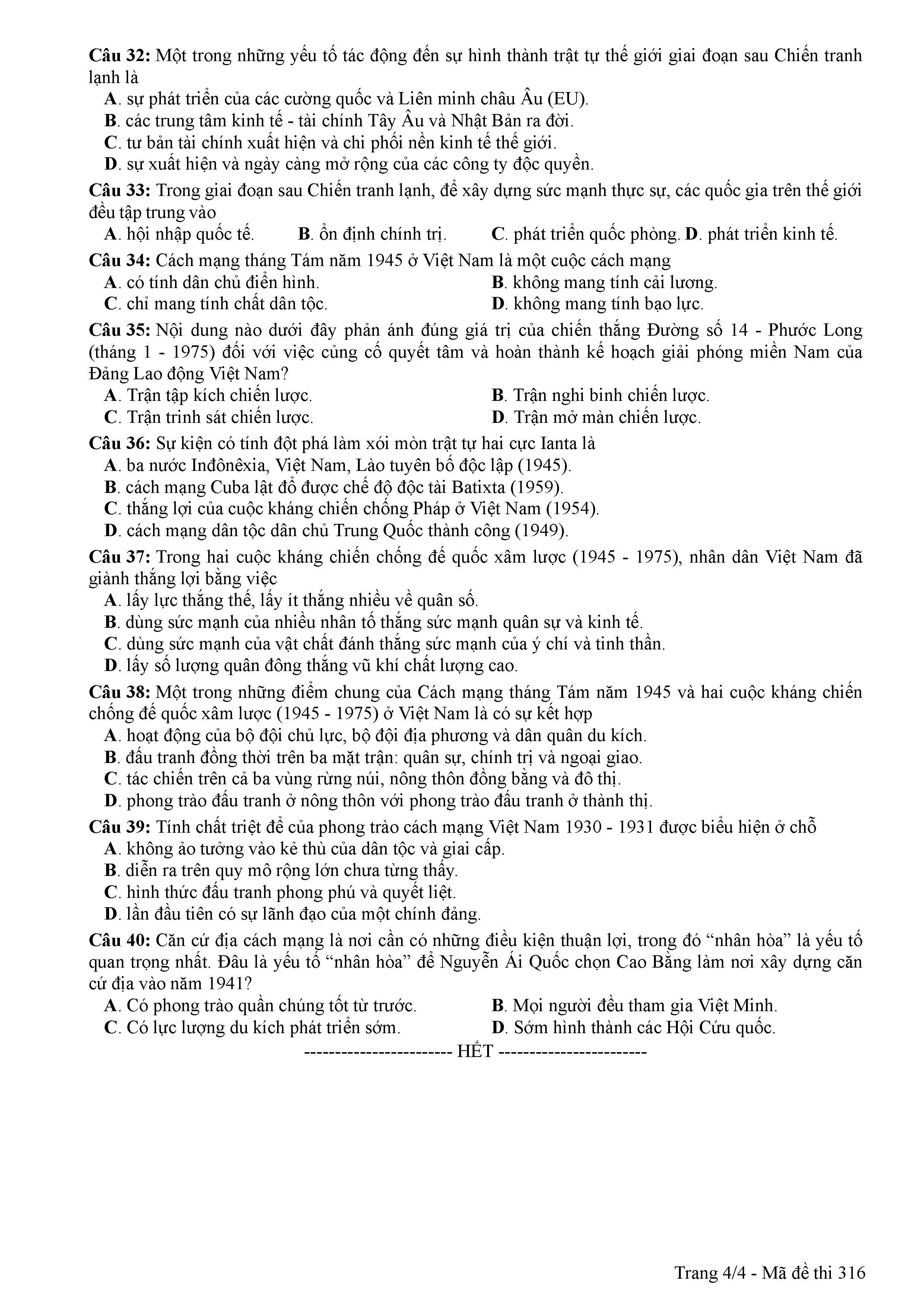 ĐỀ THI CHÍNH THỨC THPTQG NĂM 2017 - MÔN LỊCH SỬ-MÃ ĐỀ 316