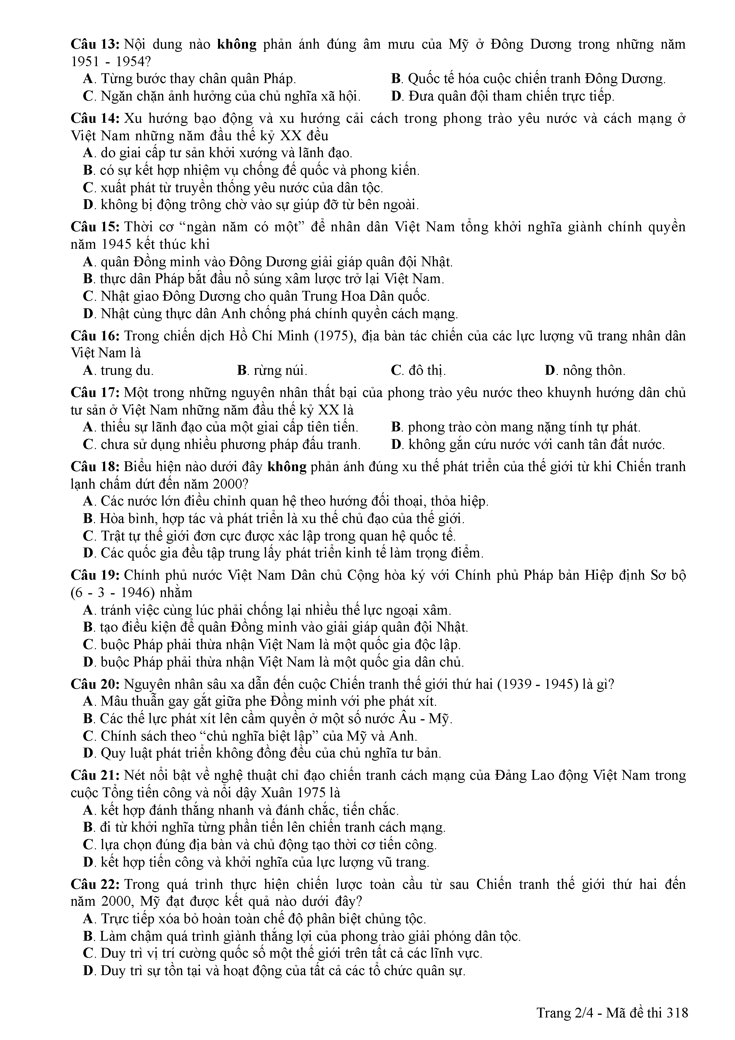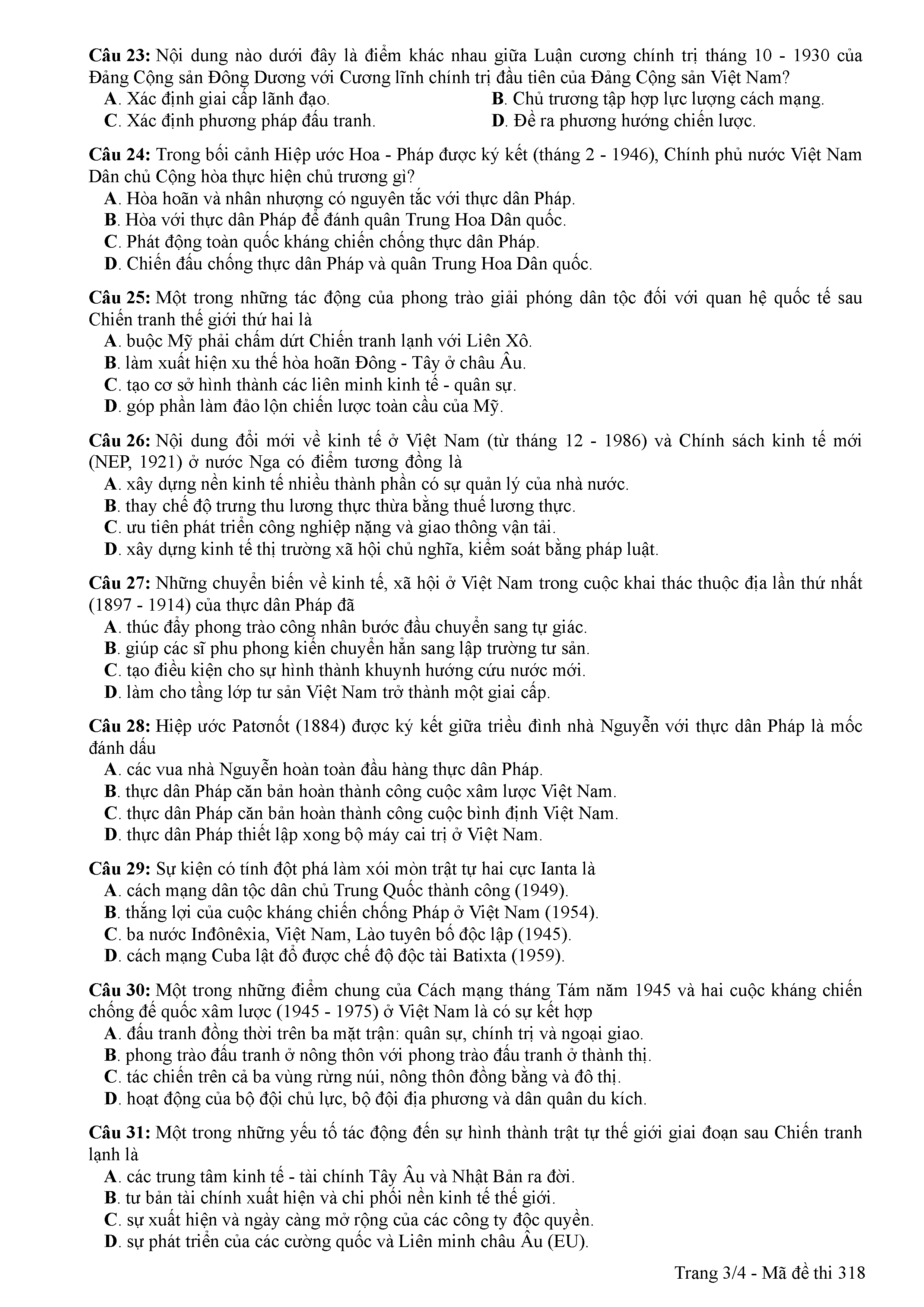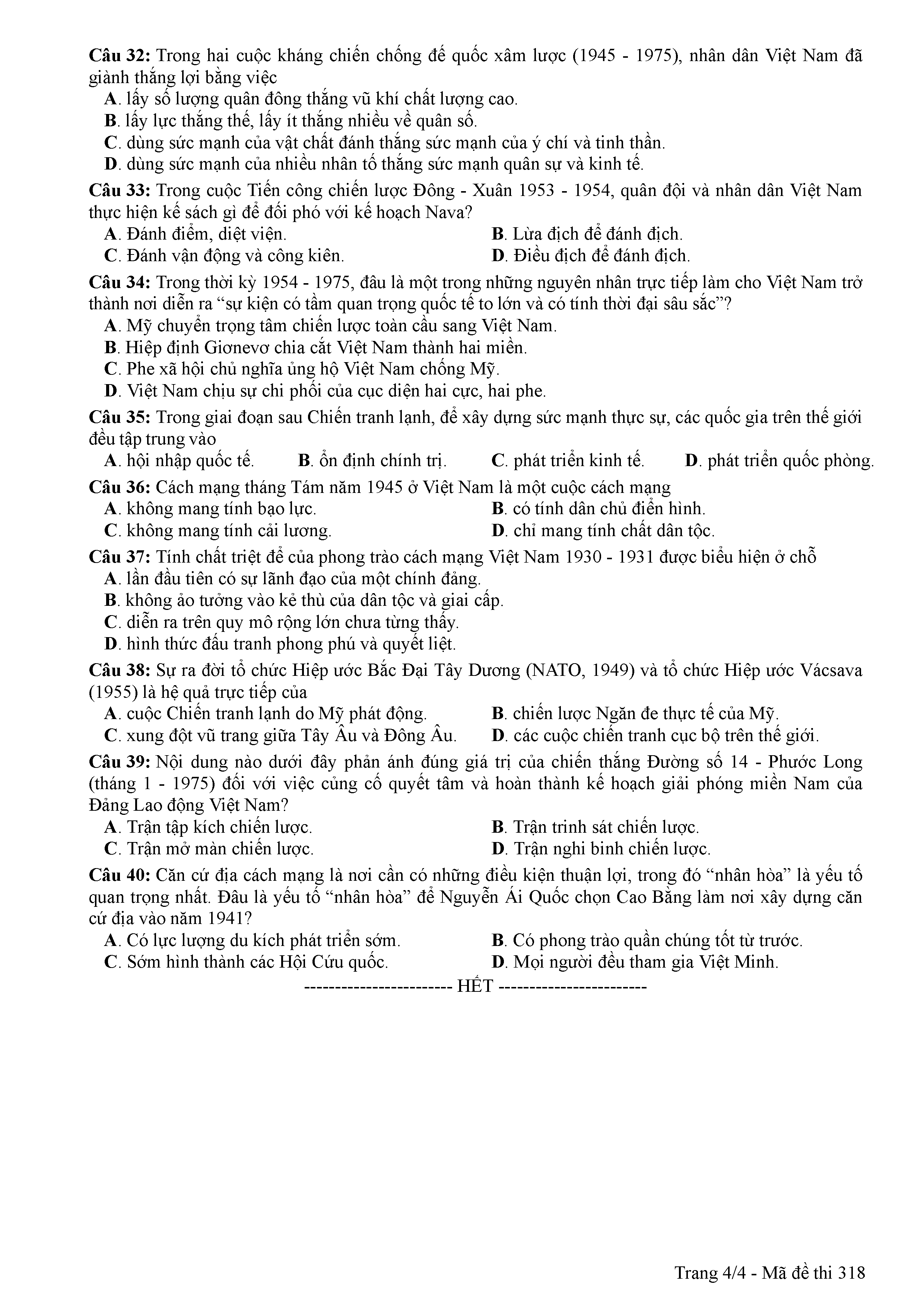 ĐỀ THI CHÍNH THỨC THPTQG NĂM 2017 - MÔN LỊCH SỬ-MÃ ĐỀ 318