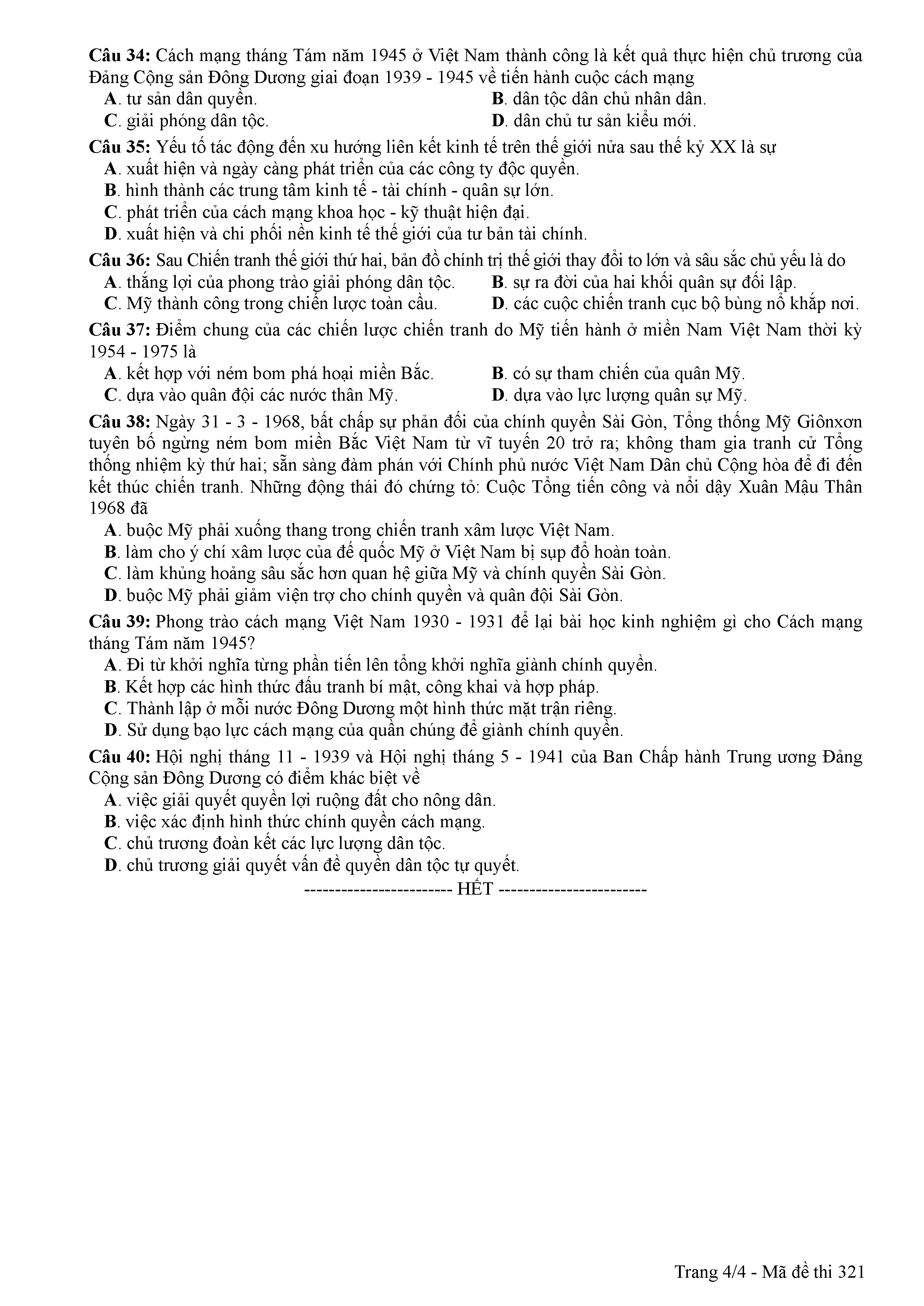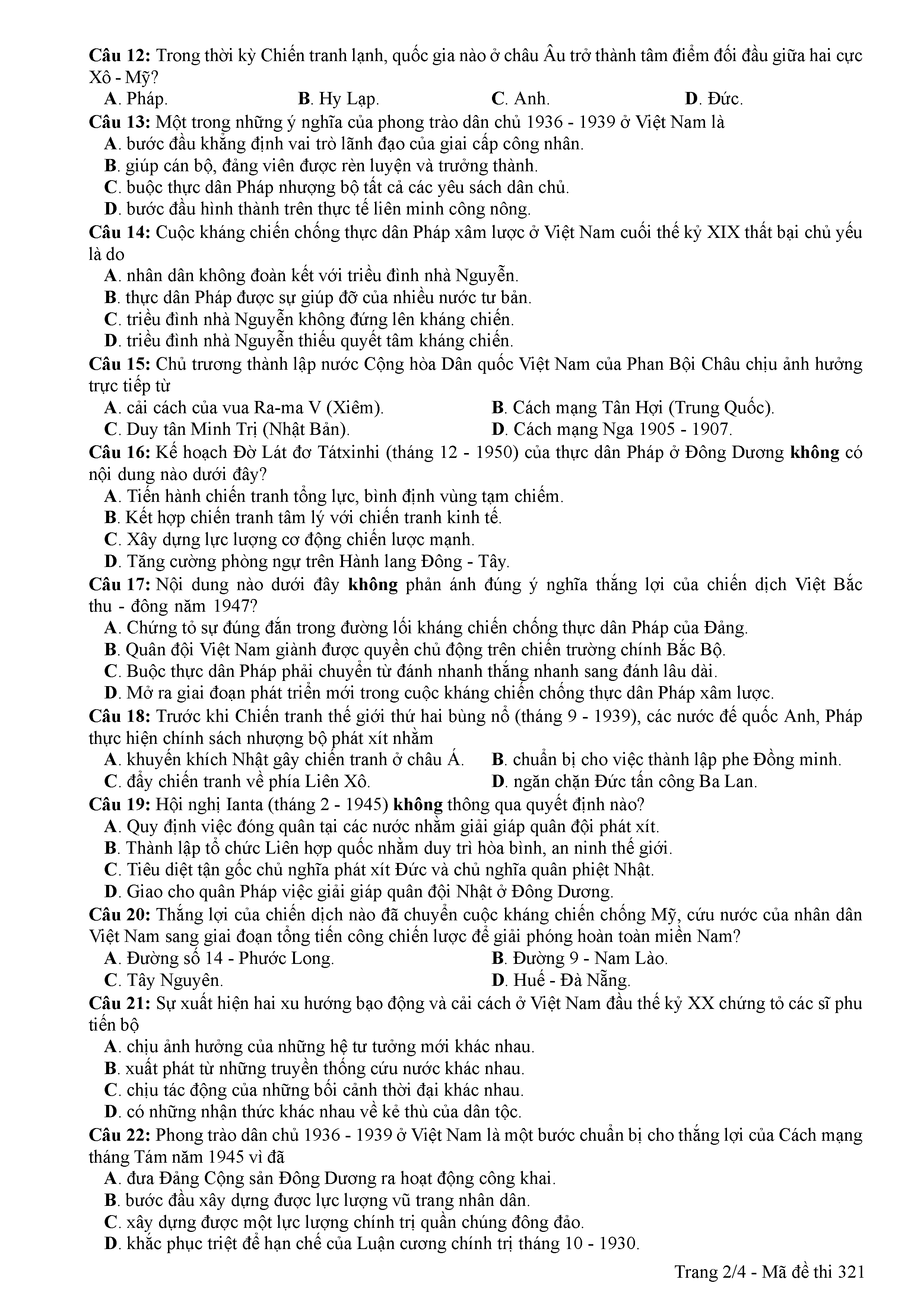 ĐỀ THI CHÍNH THỨC THPTQG NĂM 2017 - MÔN LỊCH SỬ-MÃ ĐỀ 321