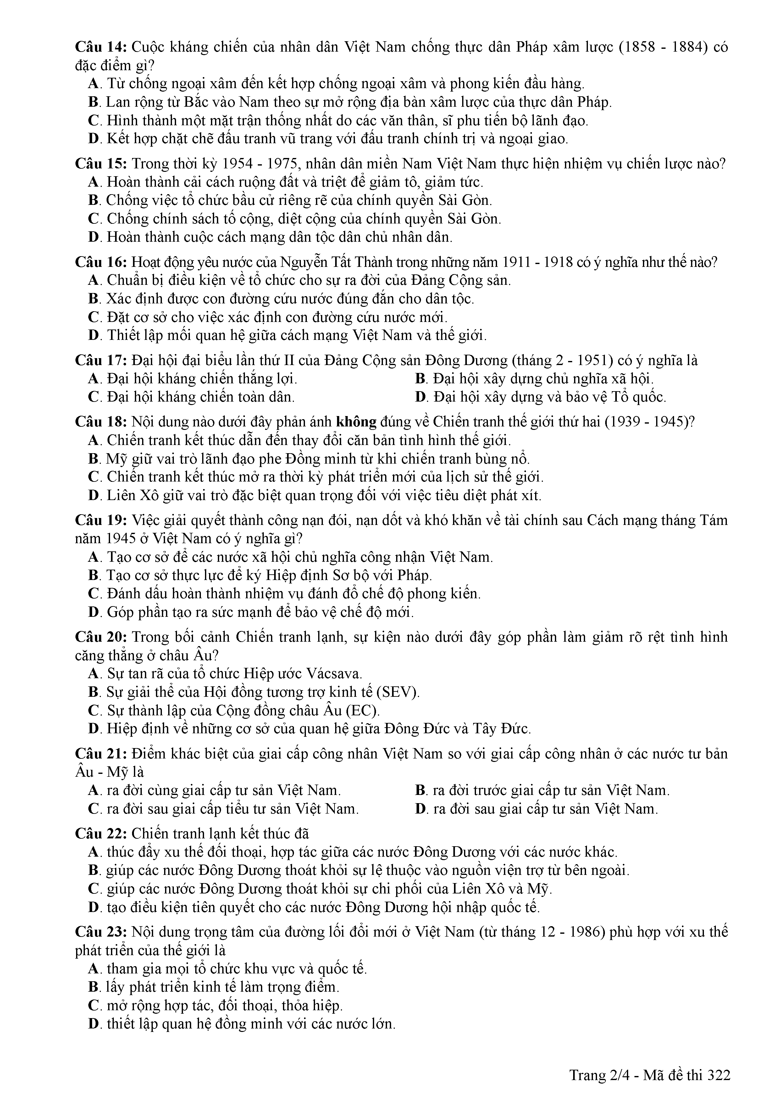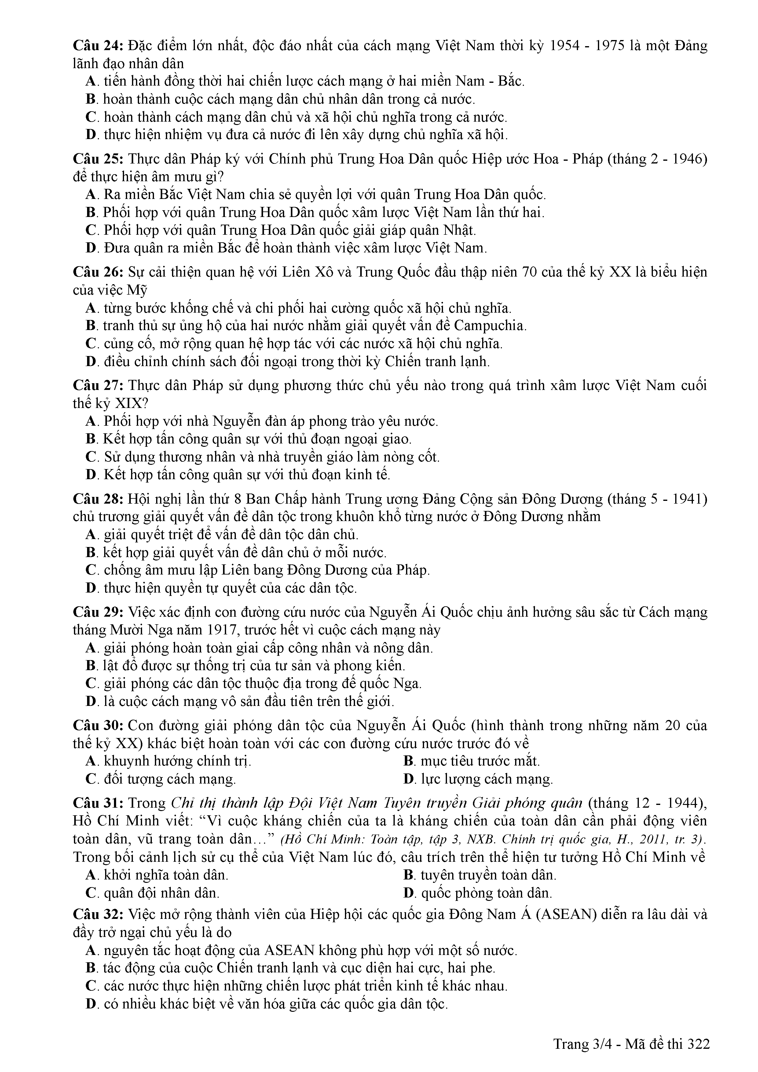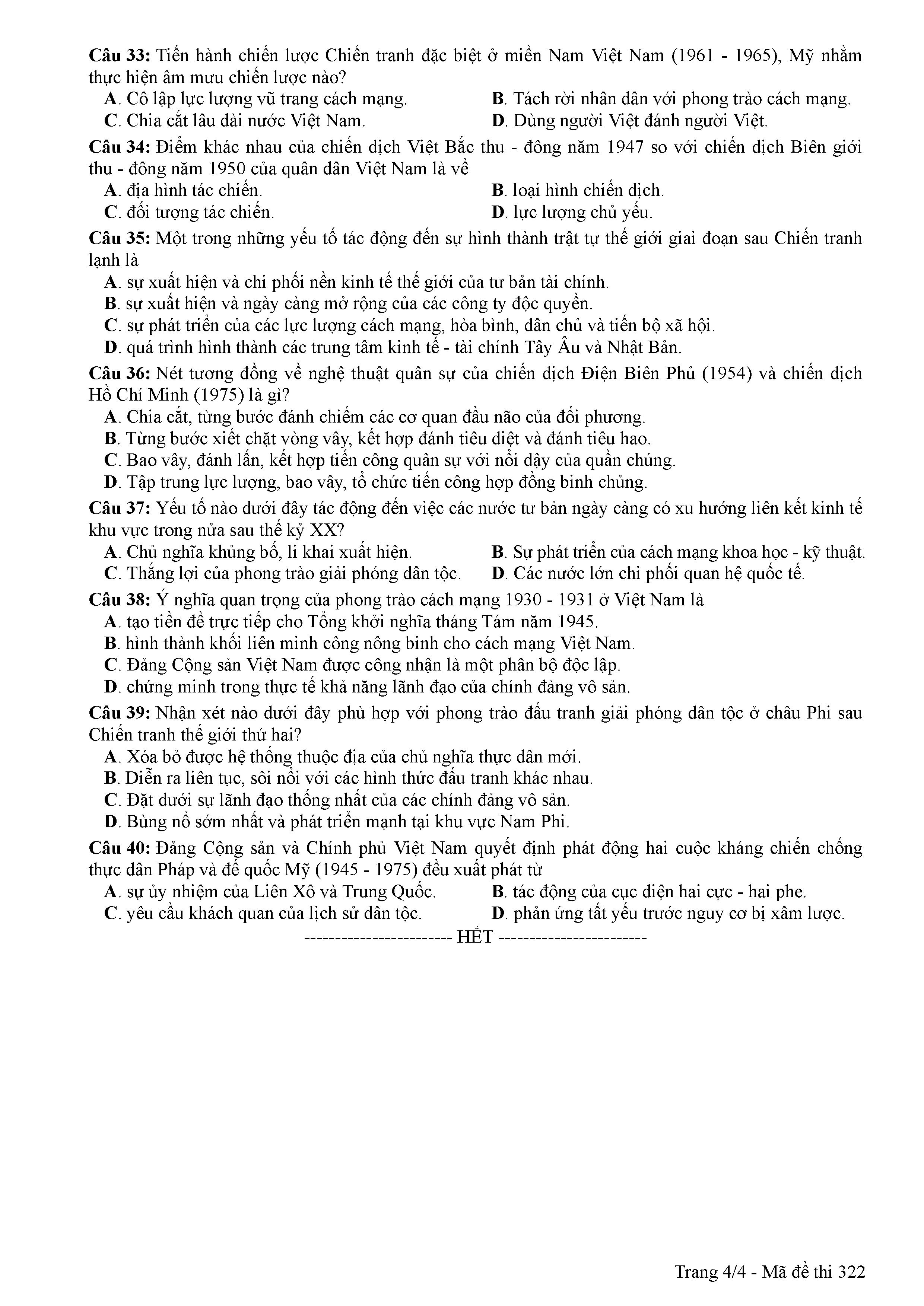 ĐỀ THI CHÍNH THỨC THPTQG NĂM 2017 - MÔN LỊCH SỬ-MÃ ĐỀ 322