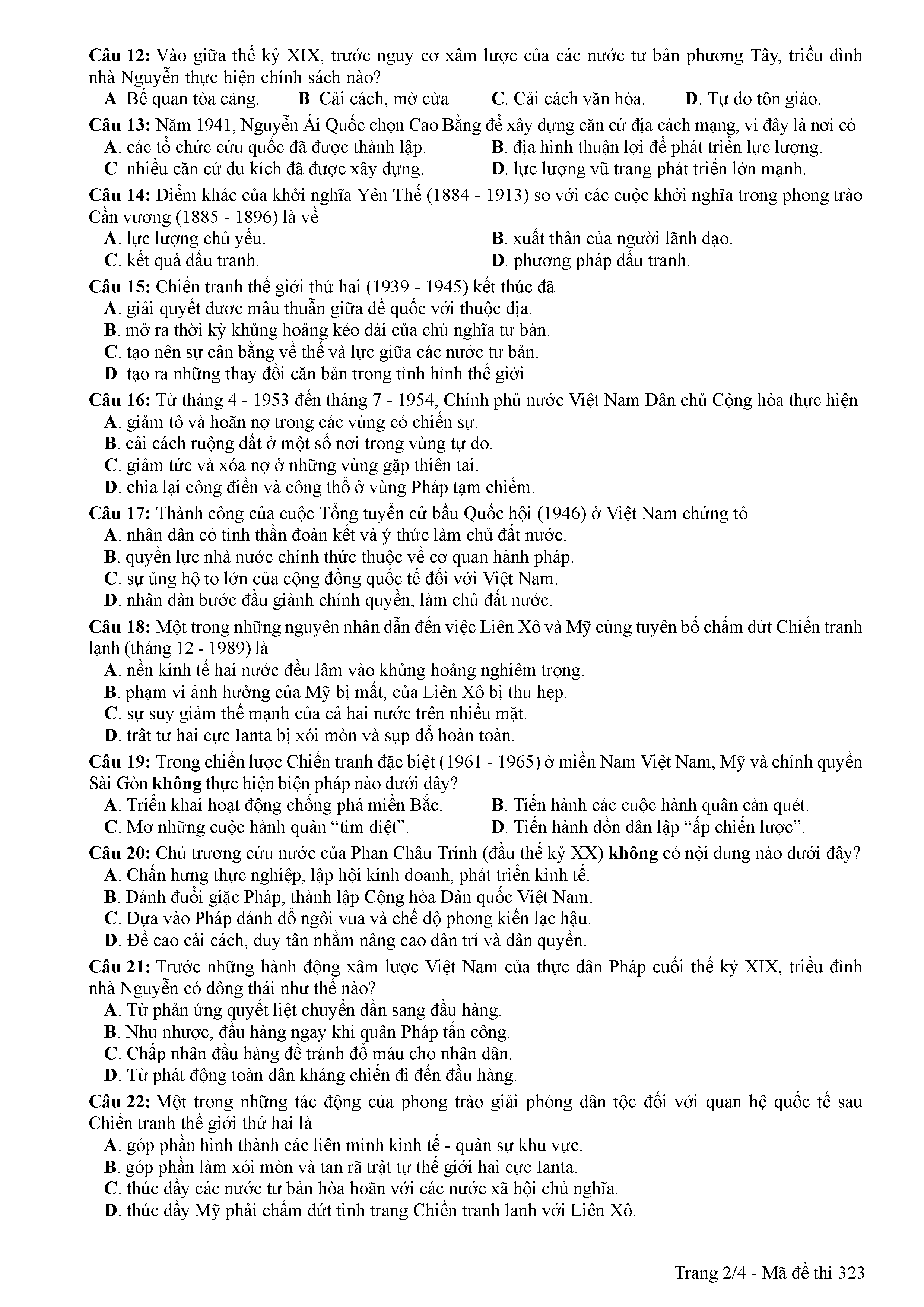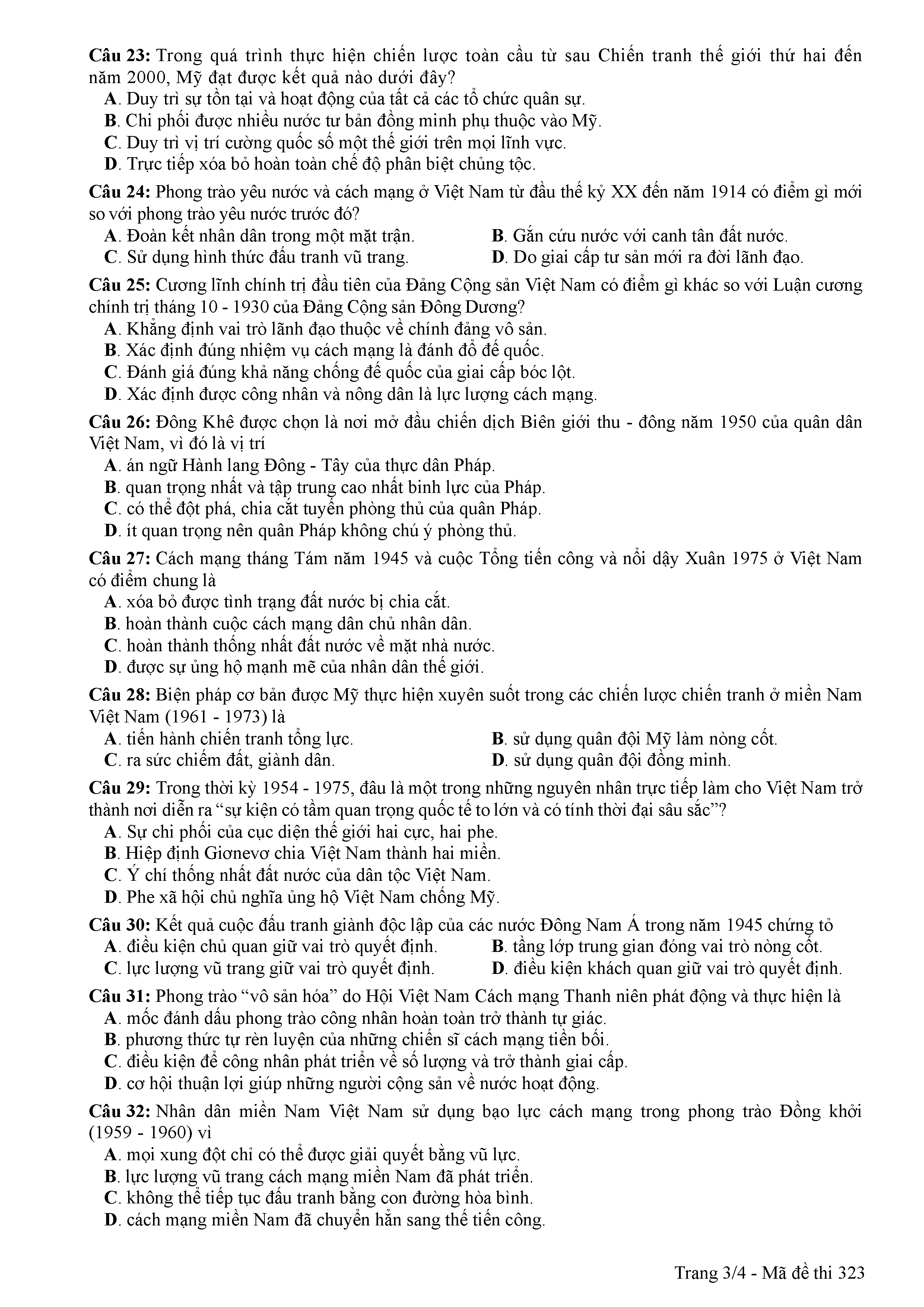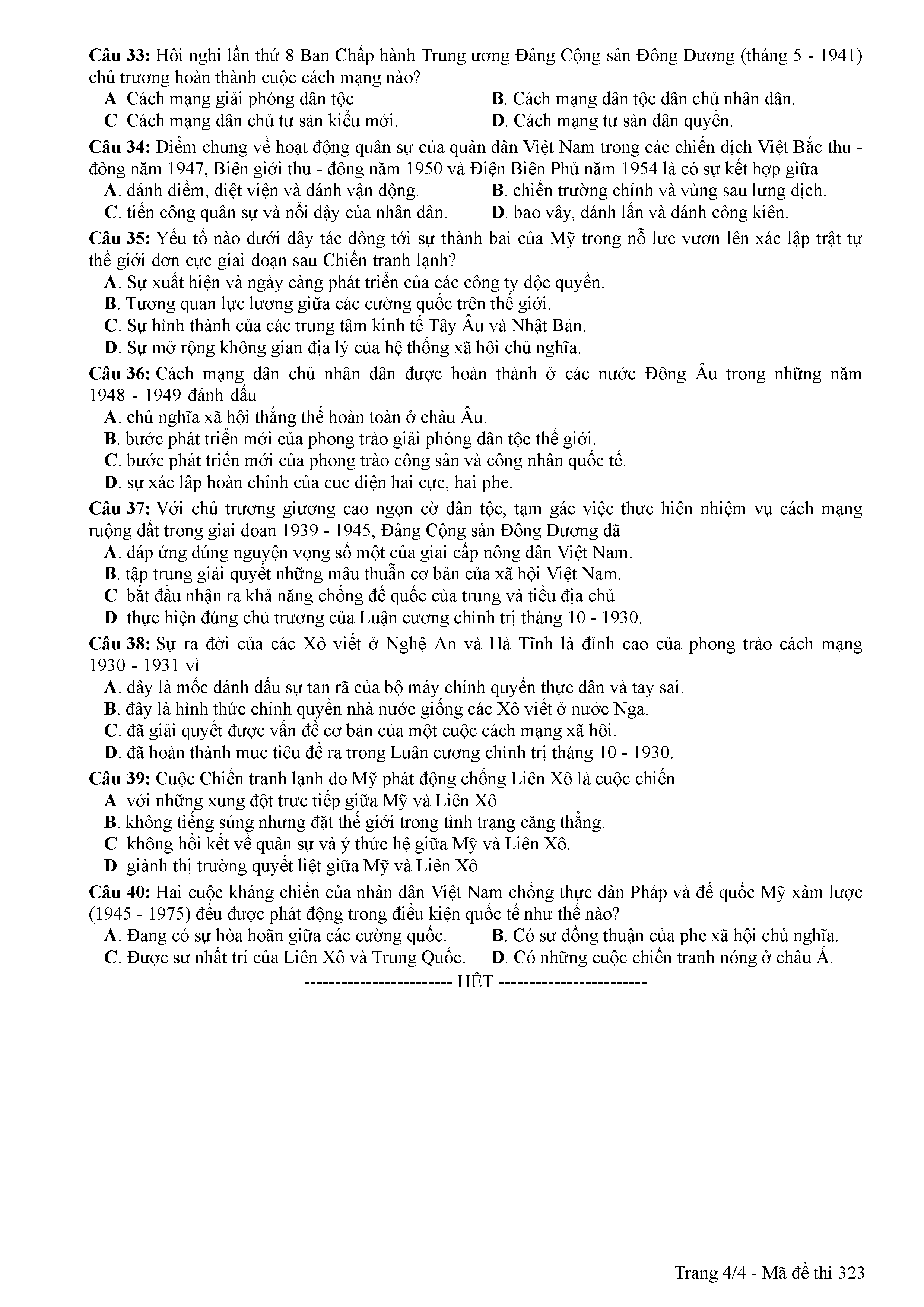 ĐỀ THI CHÍNH THỨC THPTQG NĂM 2017 - MÔN LỊCH SỬ-MÃ ĐỀ 323