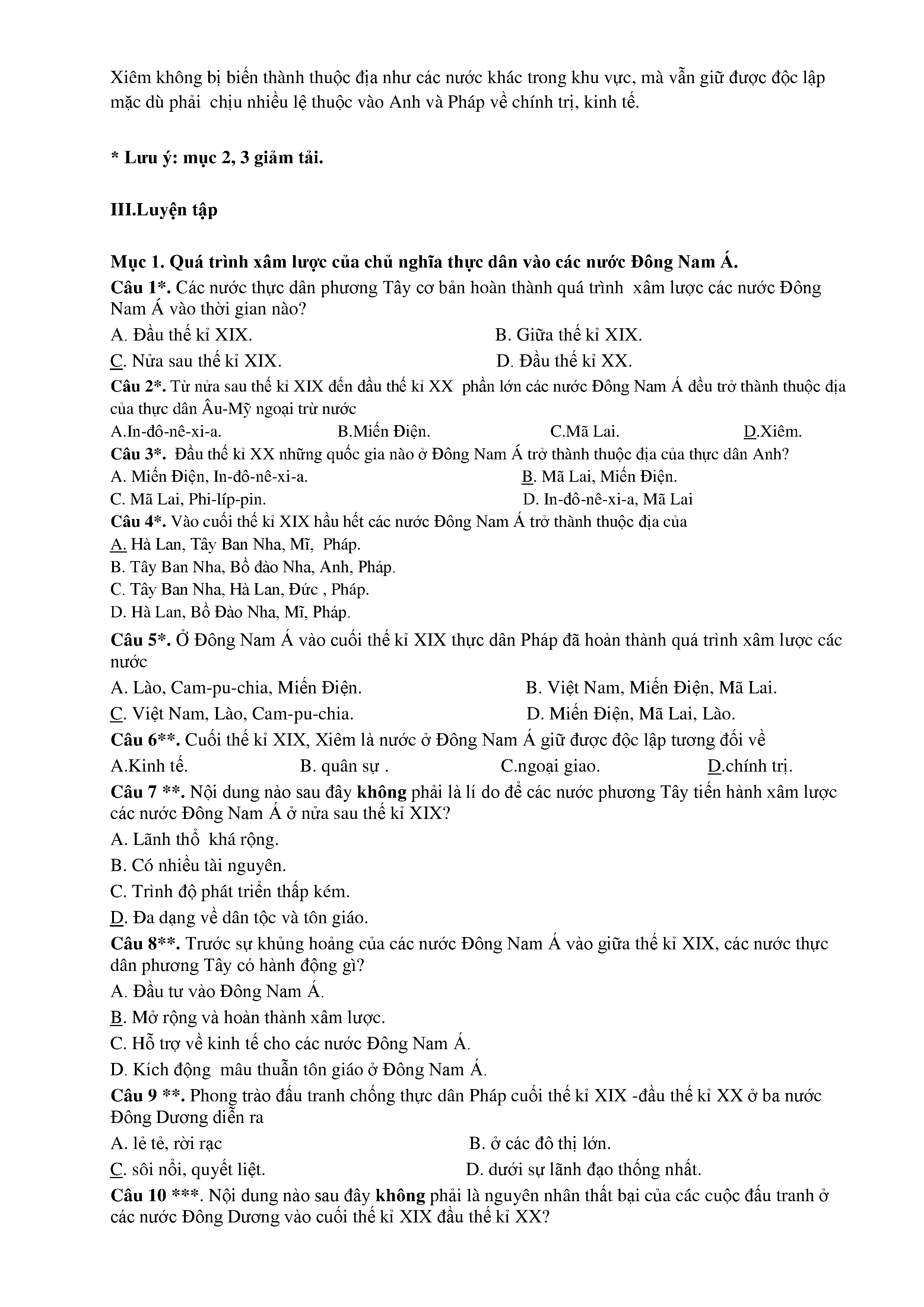 CÁC NƯỚC ĐÔNG NAM Á - LỊCH SỬ - LỚP 11