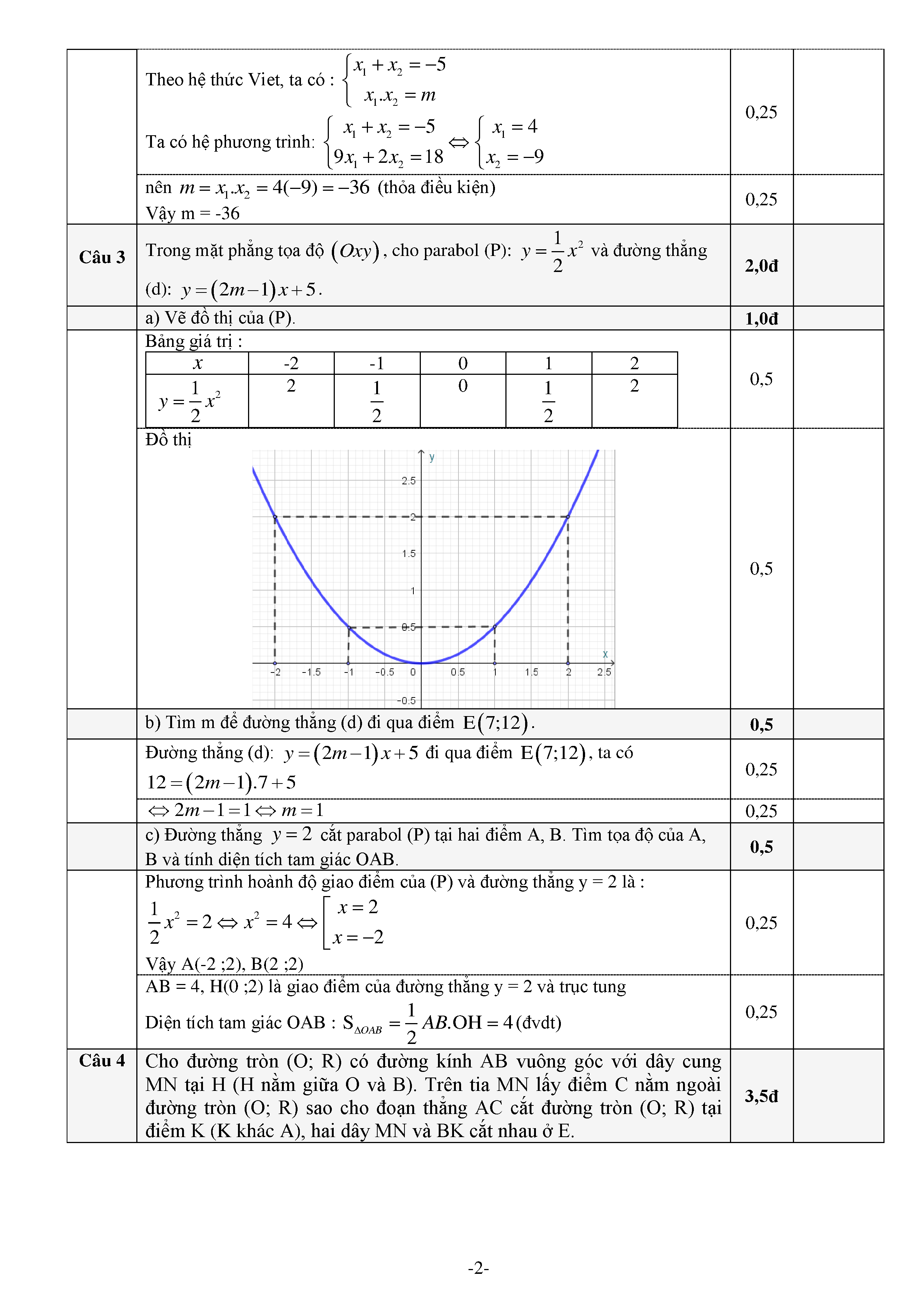 ĐÁP ÁN ĐỀ THI TUYỂN SINH VÀO 10 - MÔN TOÁN - BẾN TRE - NĂM 2018