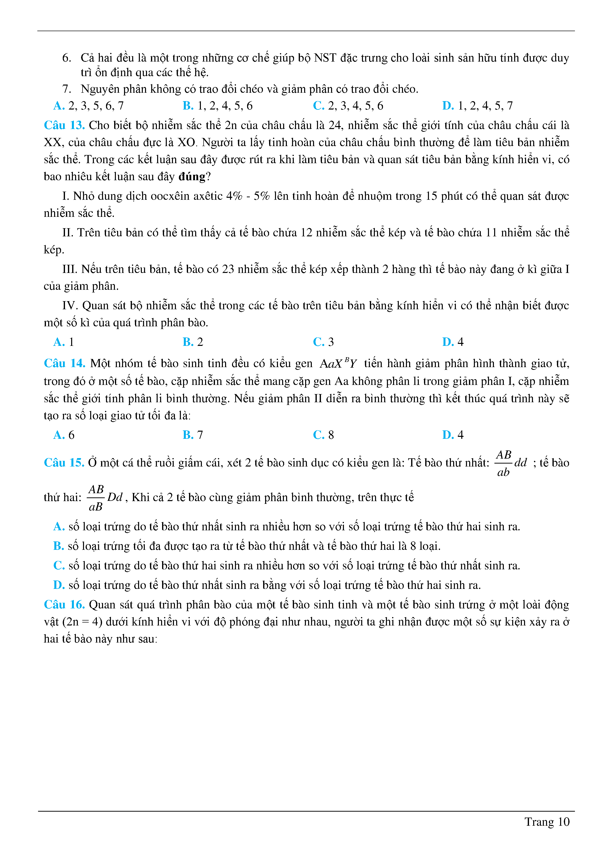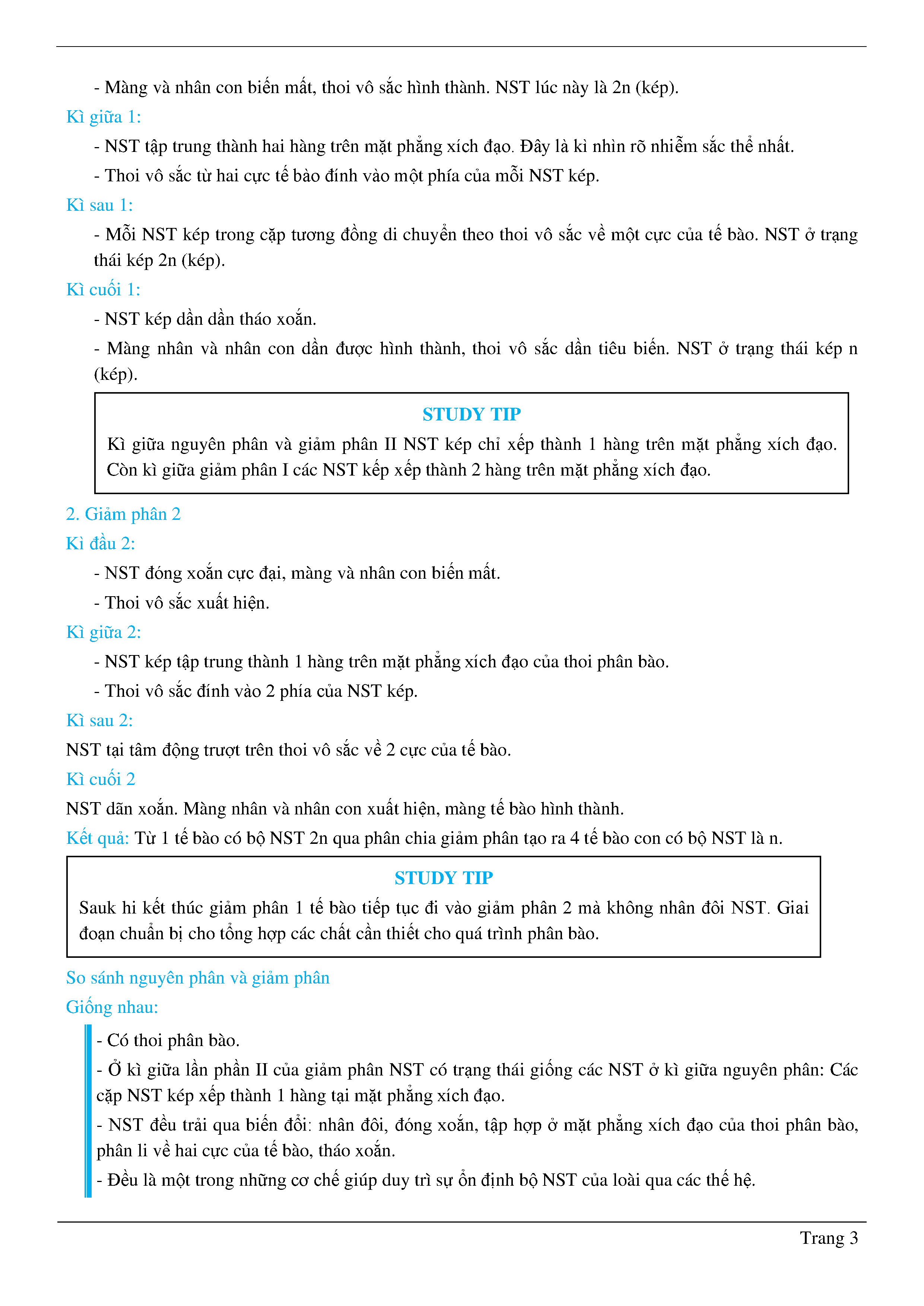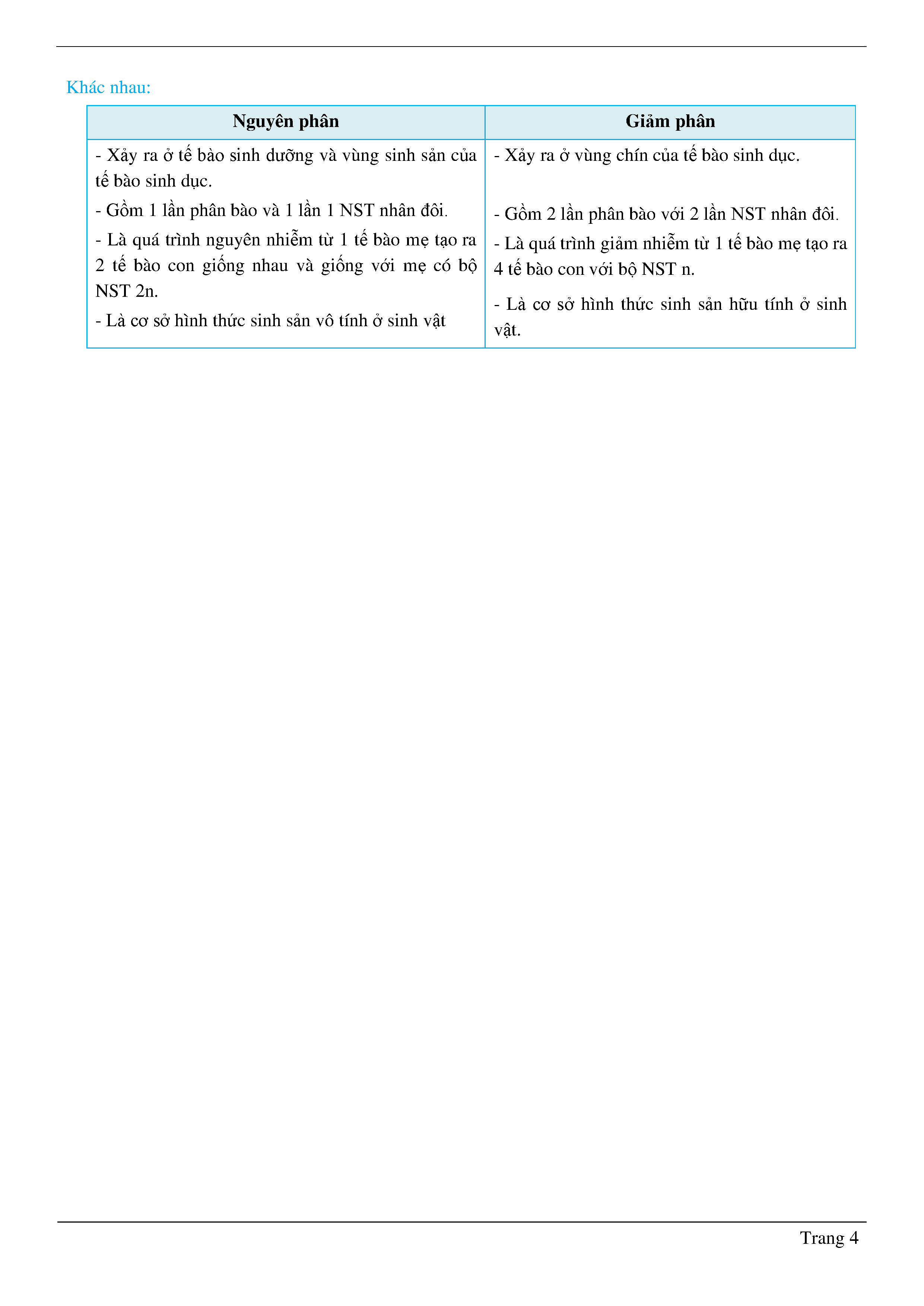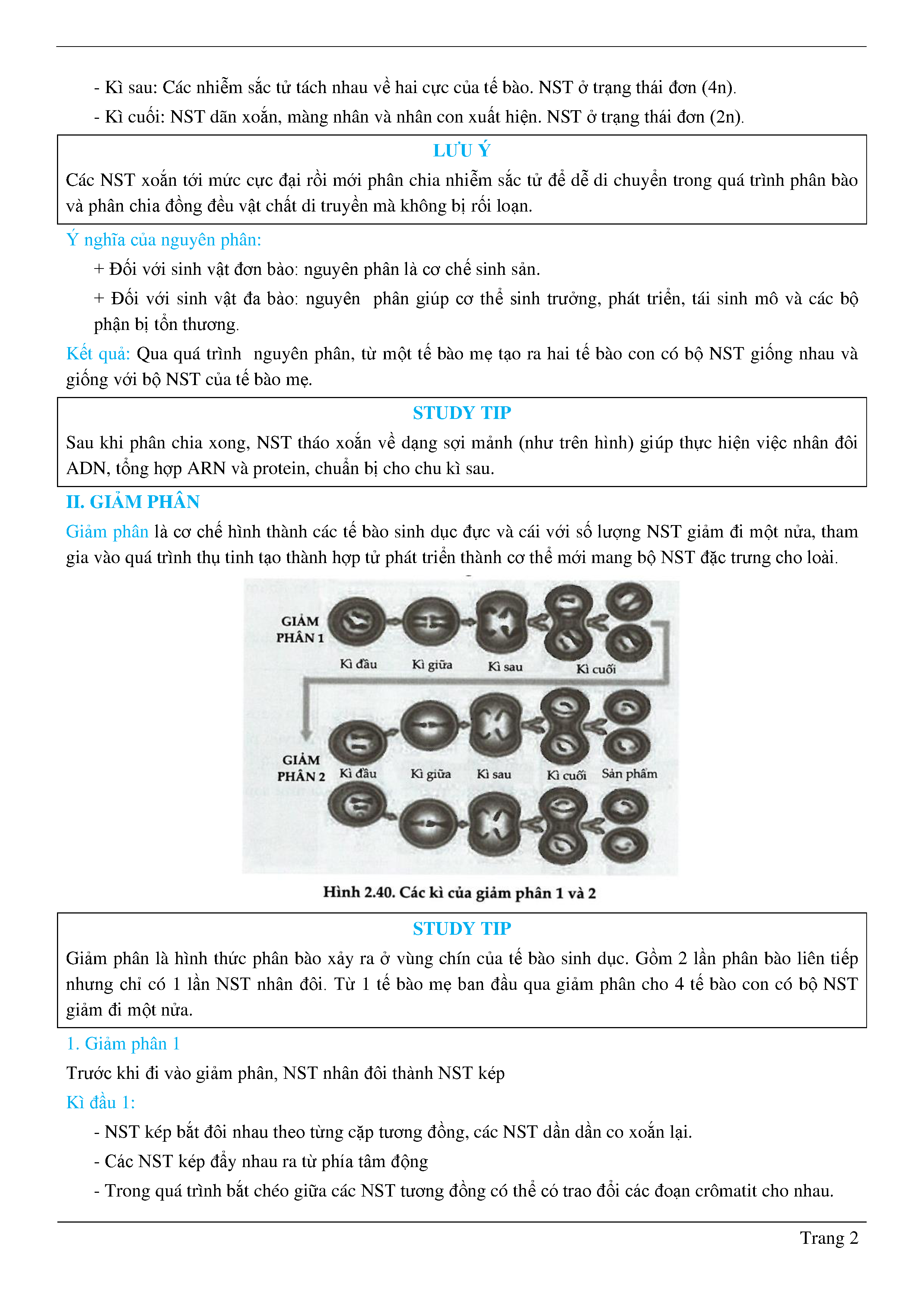 Lý thuyết nguyên phân, giảm phân - Sinh học - Lớp 10