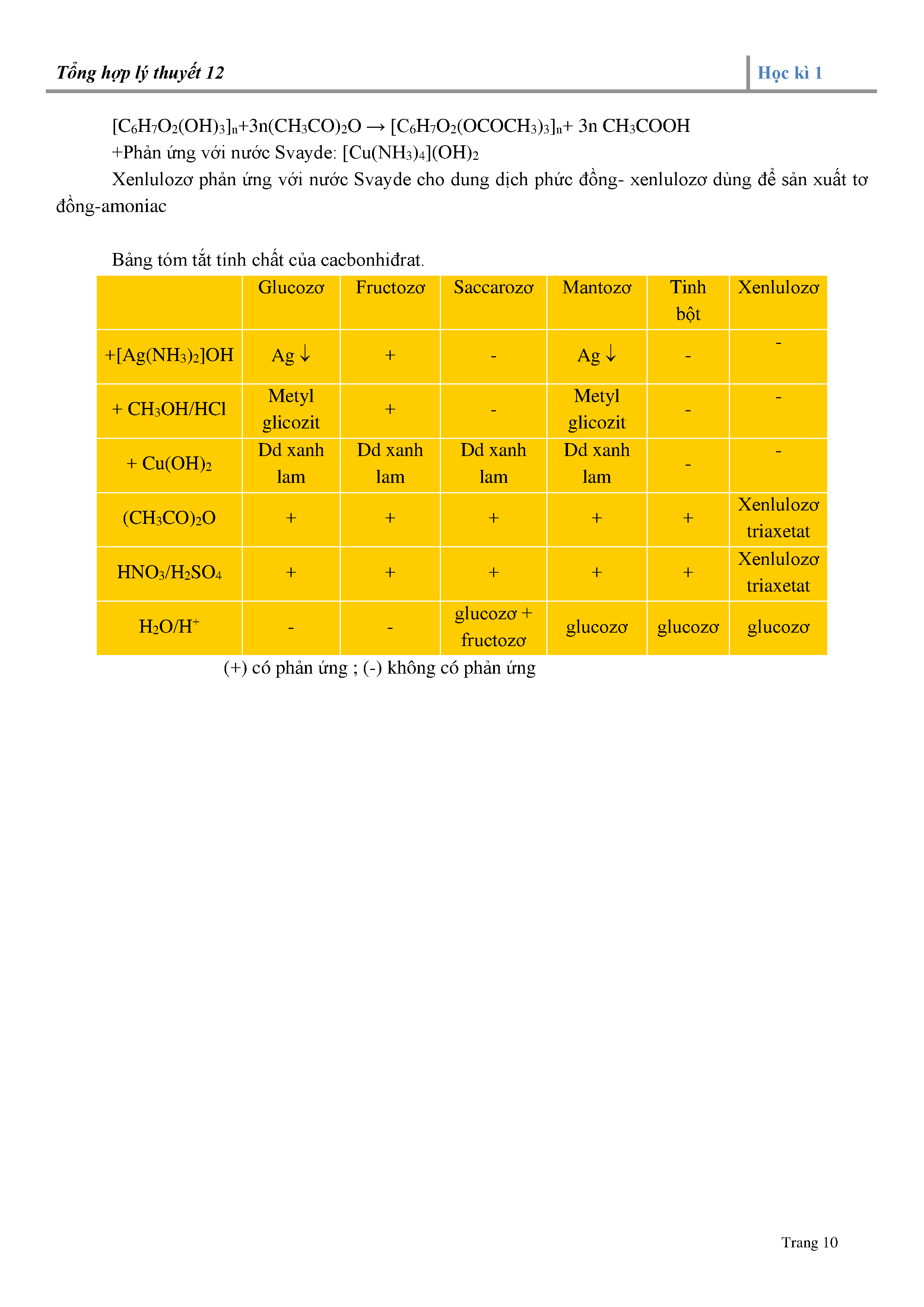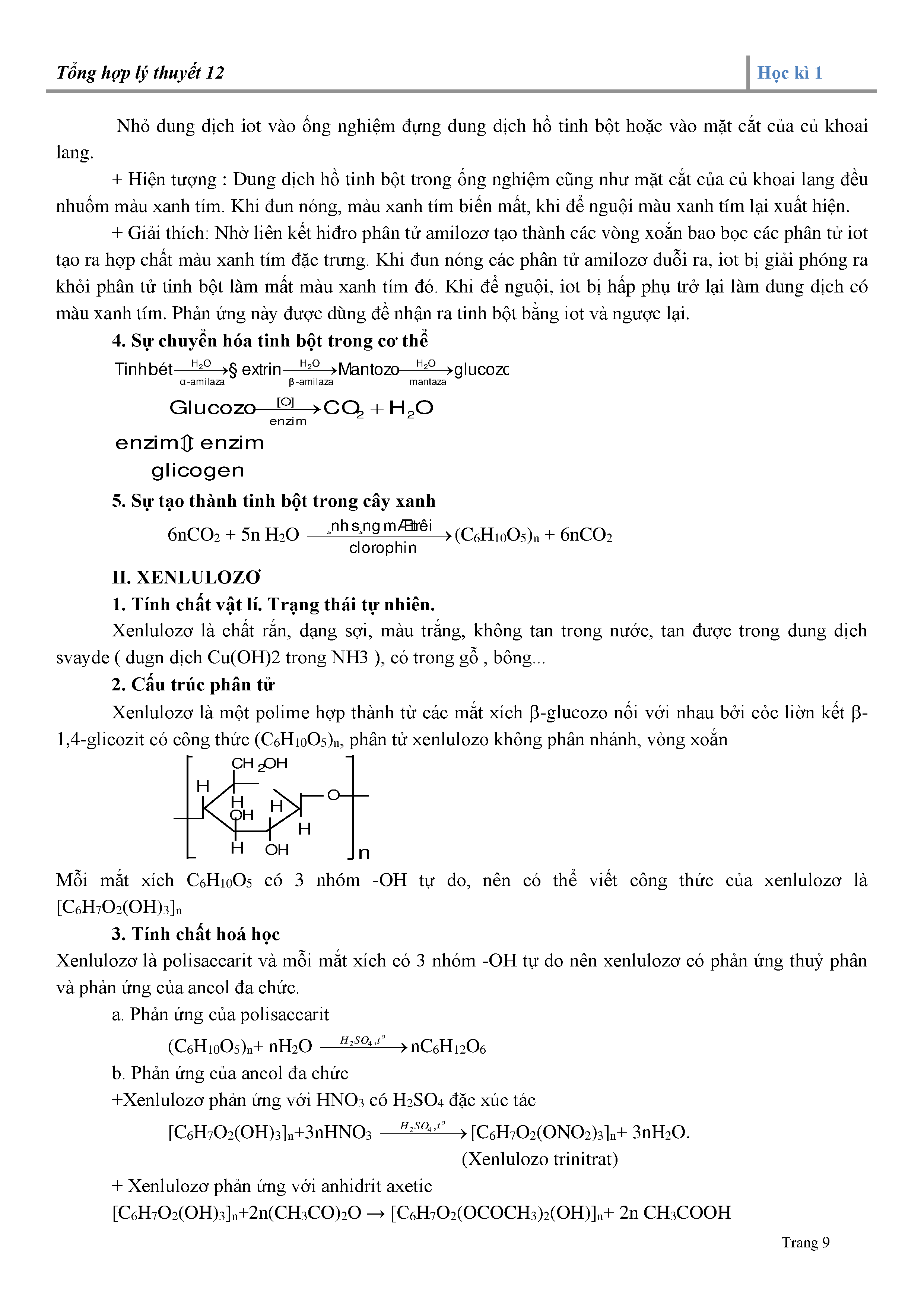 + Xenlulozo: Tính chất vật lý, trạng thái tự nhiên; cấu trúc phân tử; tính chất hóa học.
