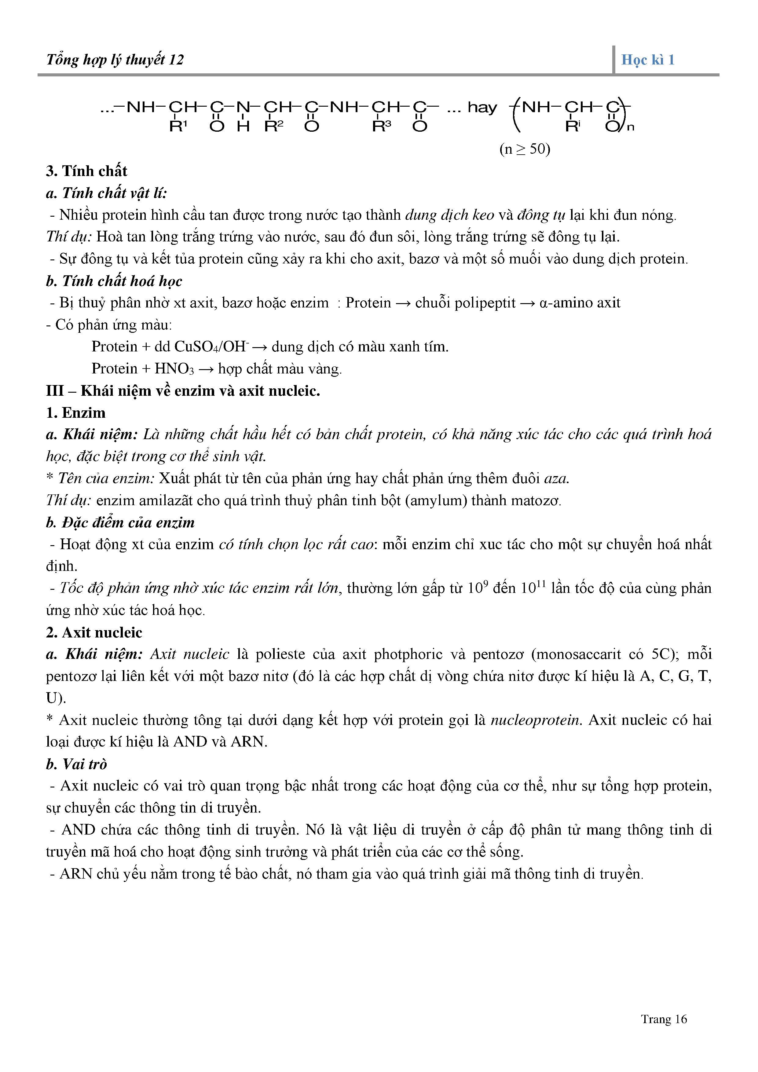 - Protein: Khái niệm; cấu tạo phân tử; tính chất vật lý, tính chất hóa học.