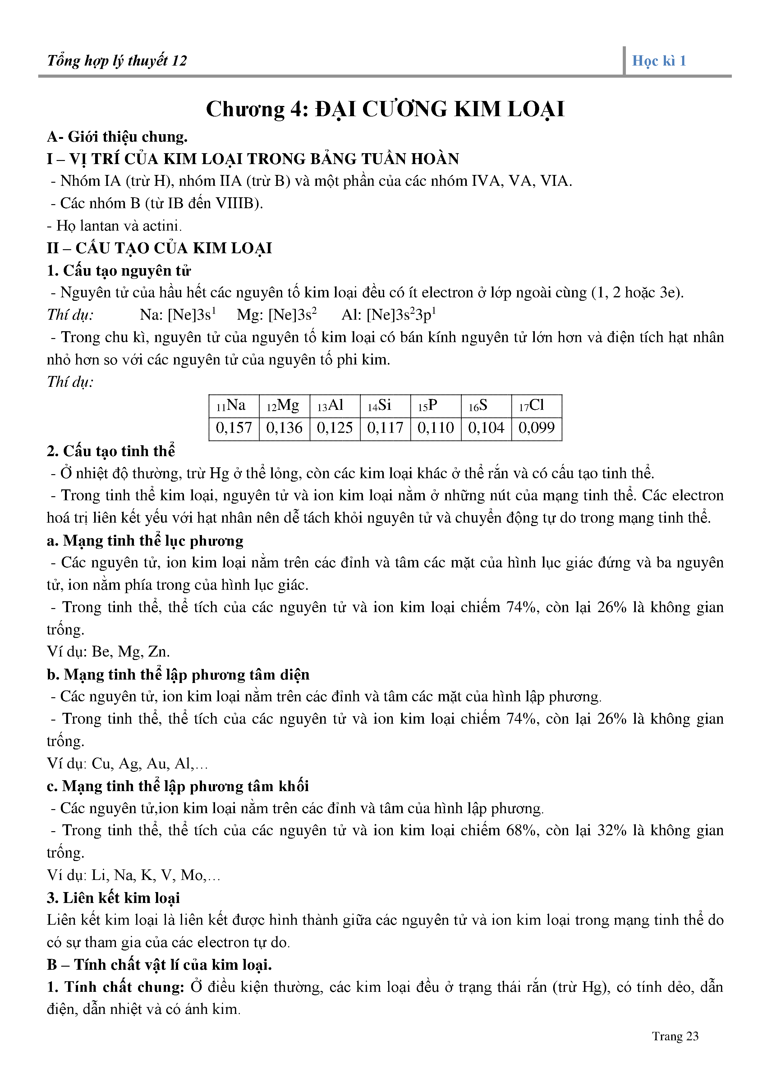 1. Giới thiệu chung về đại cương kim loại