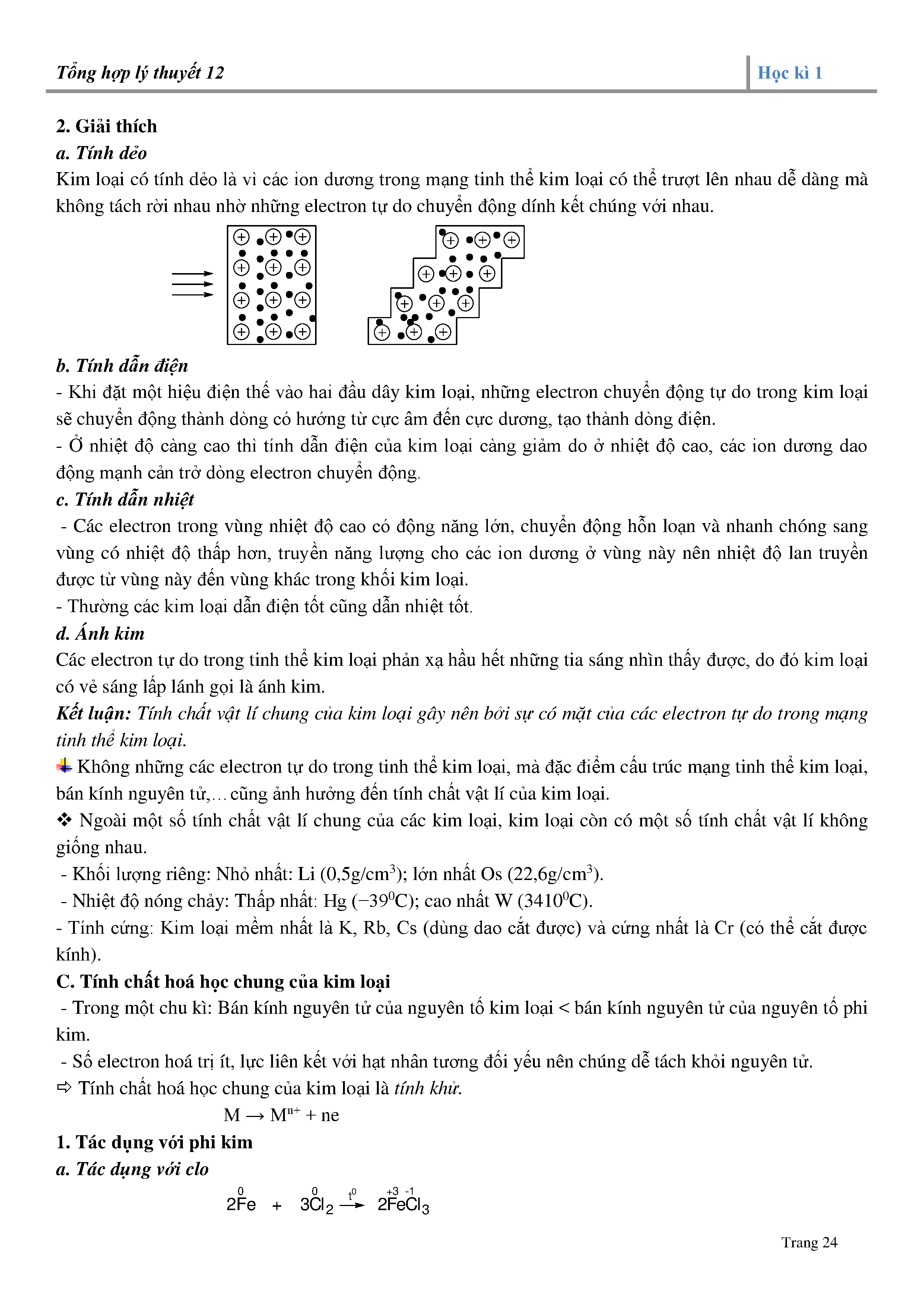 - Giải thích các tính chất của kim loại