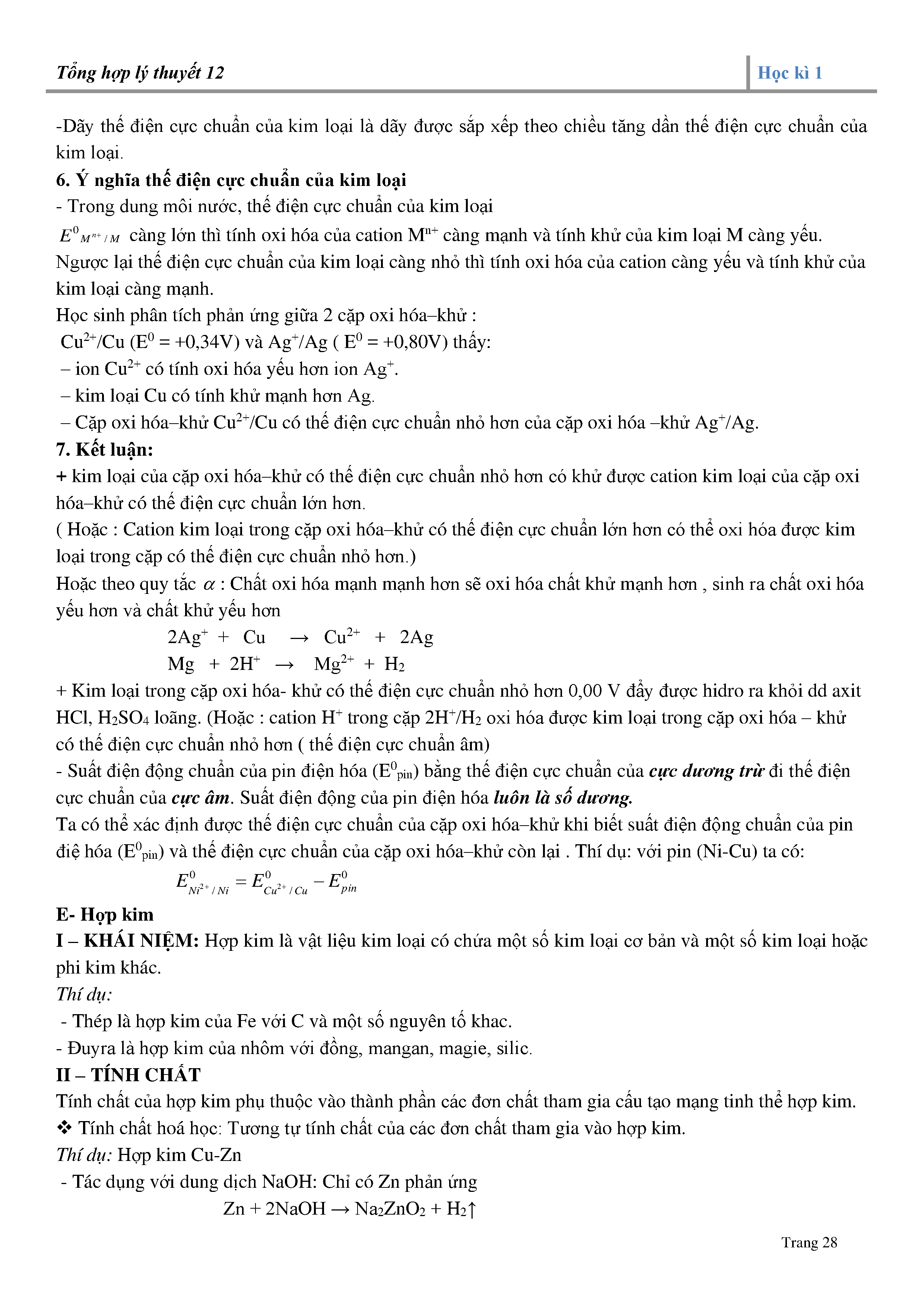 4. Dãy điện hóa của kim loại